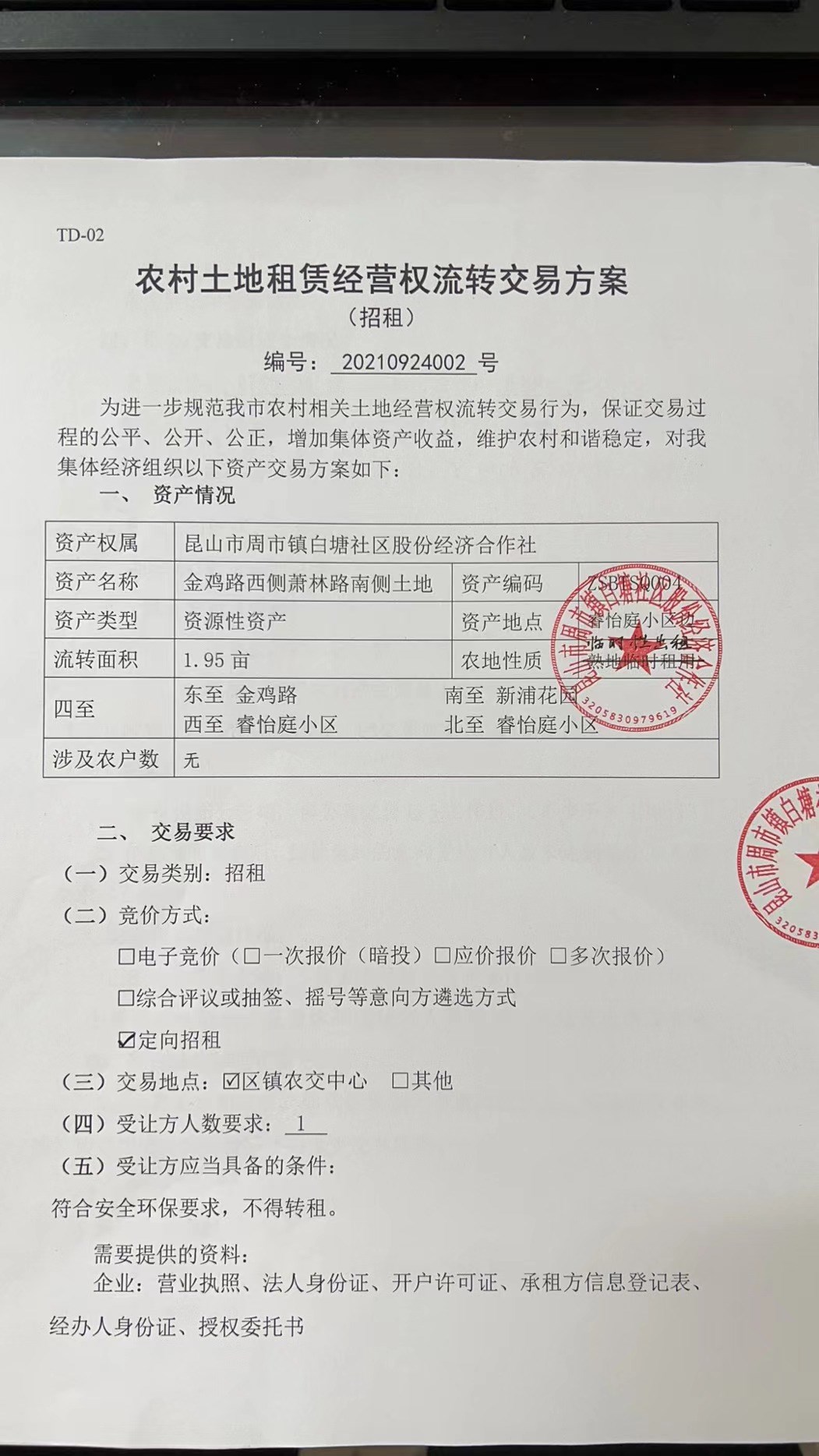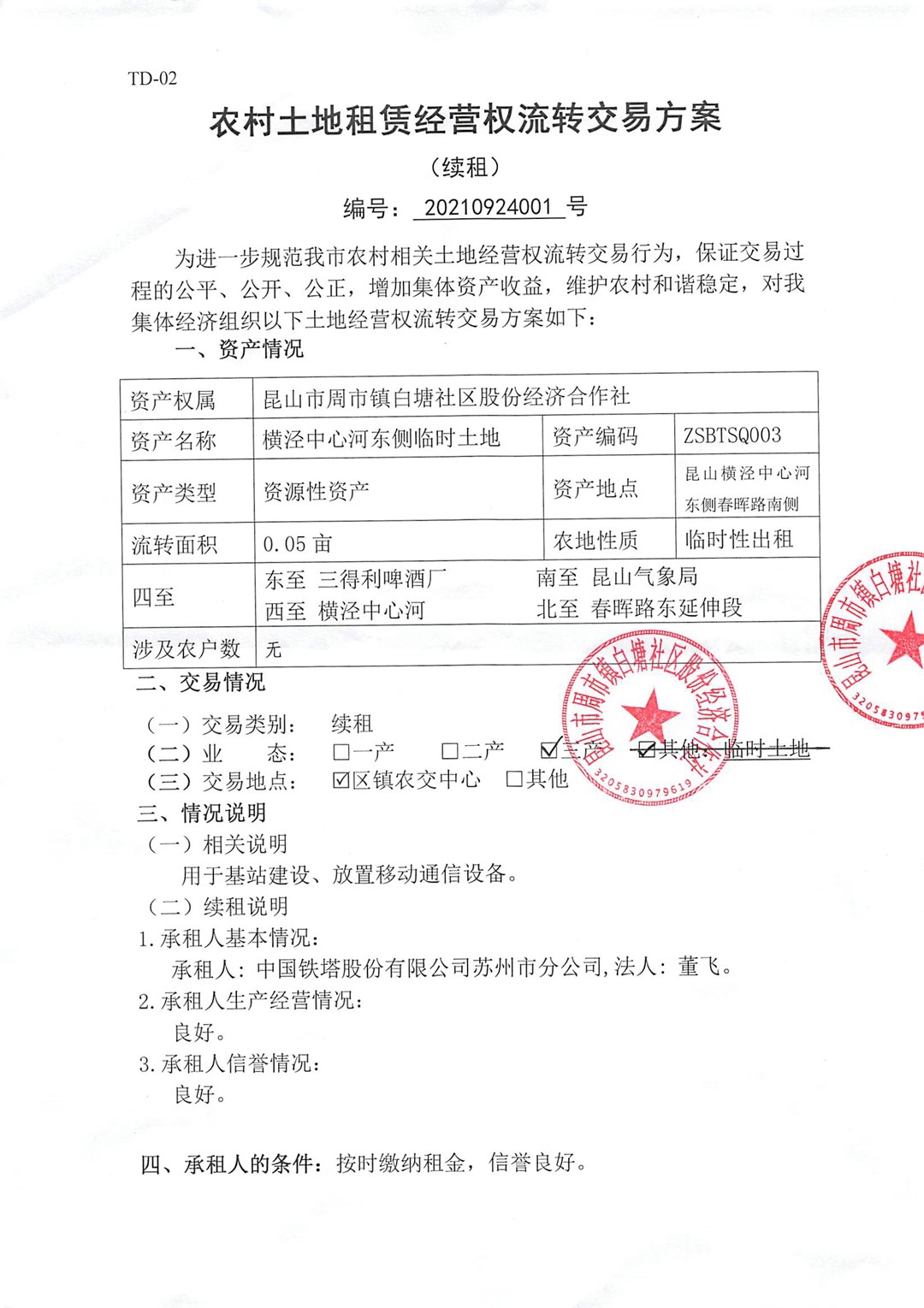 白塘社區(qū)農(nóng)村集體土地流轉交易公告——鐵塔和城南建設