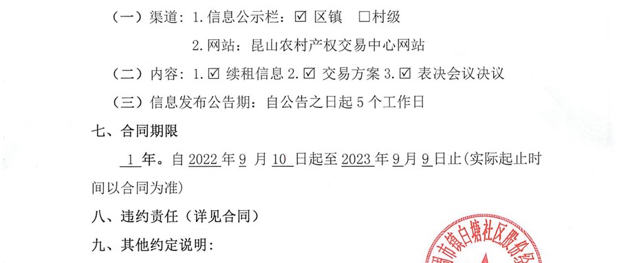 2022下半年白塘社區(qū)農(nóng)村集體資產(chǎn)流轉(zhuǎn)交易公告1