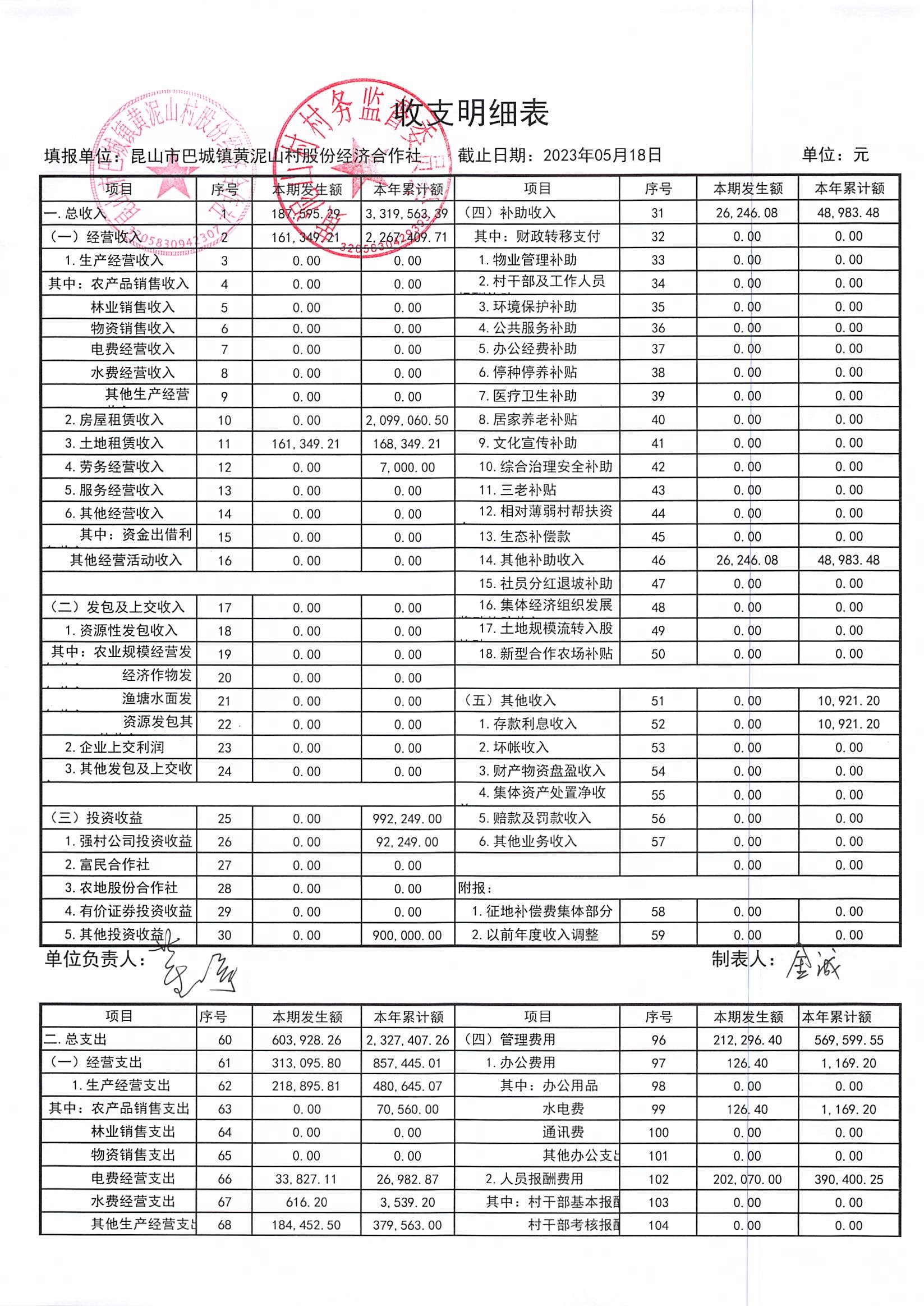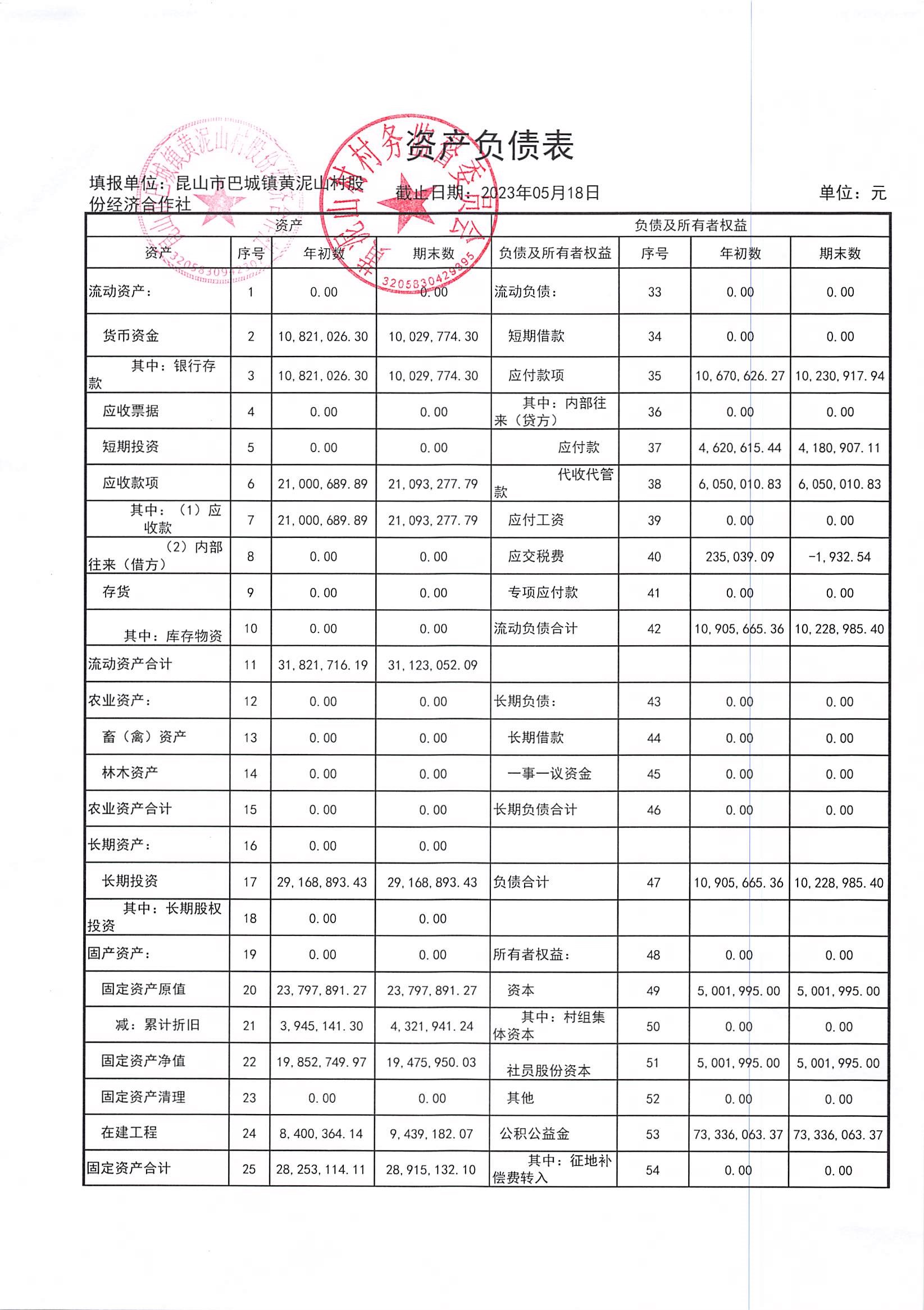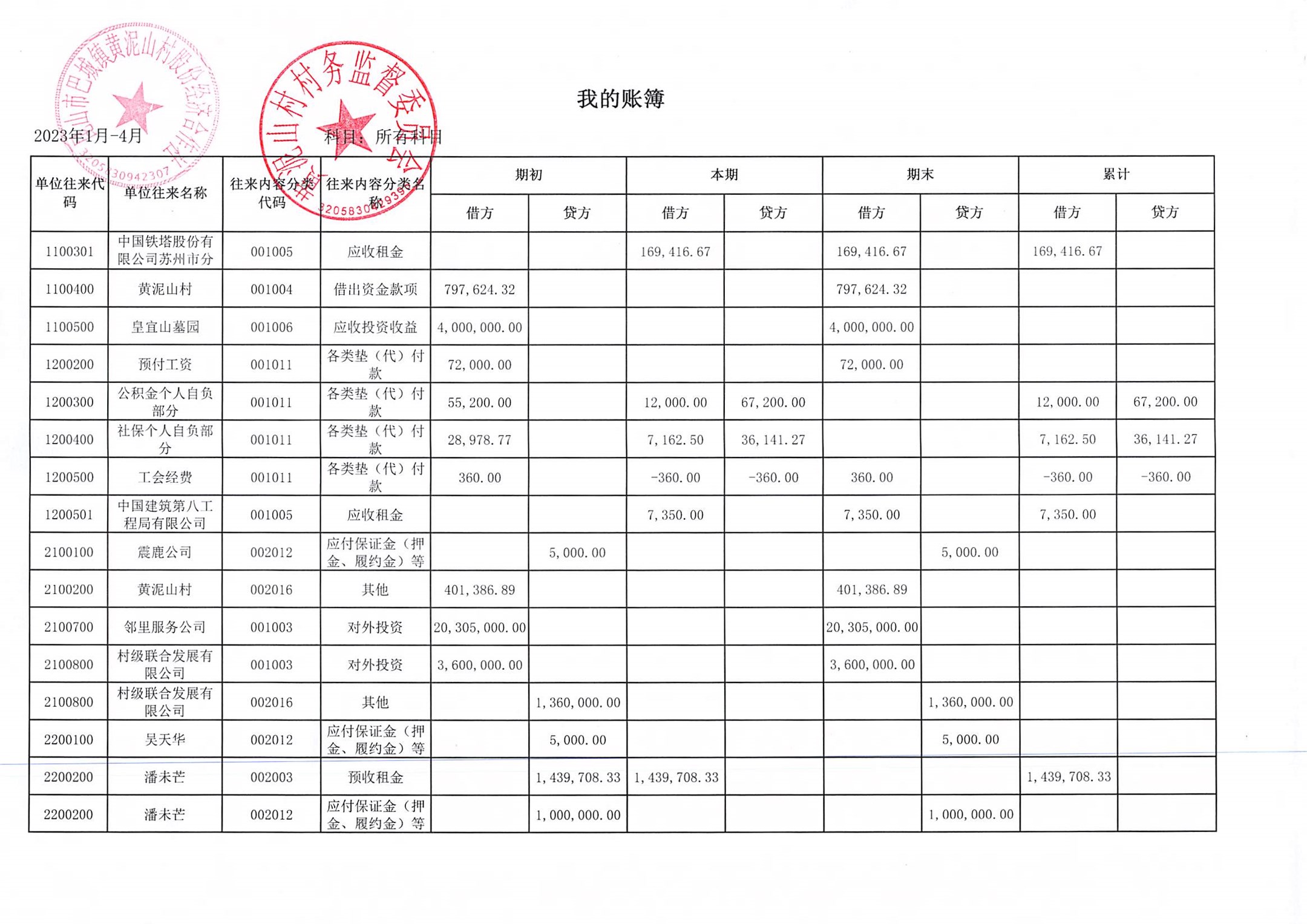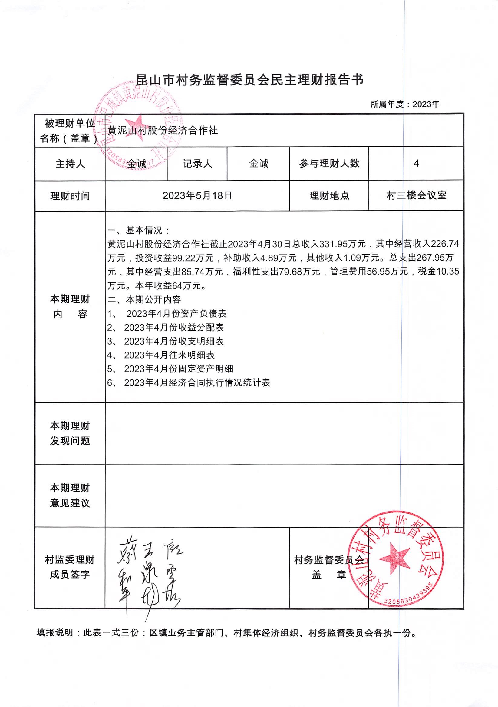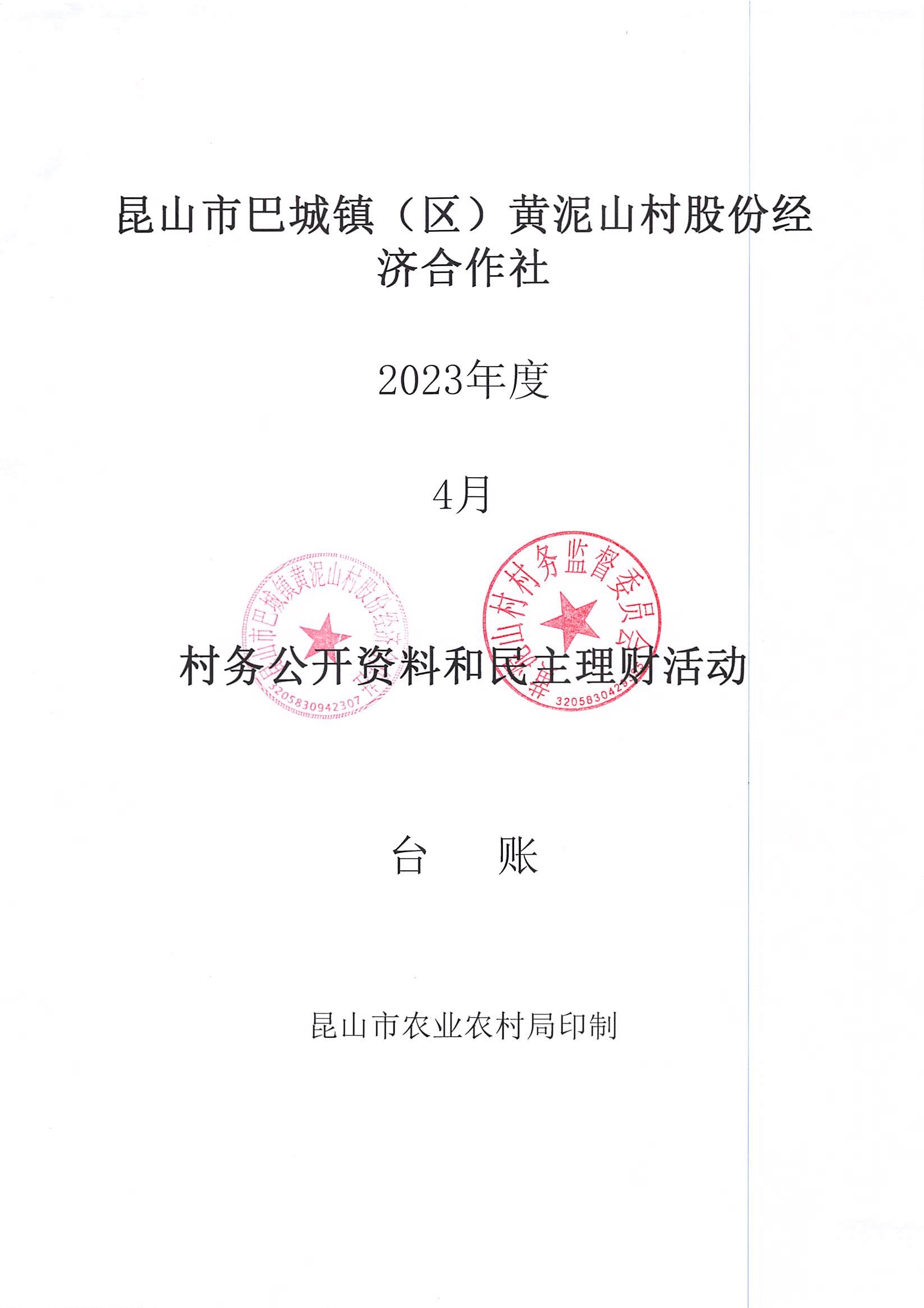 黃泥山村股份經(jīng)濟(jì)合作社4月份財(cái)務(wù)公開