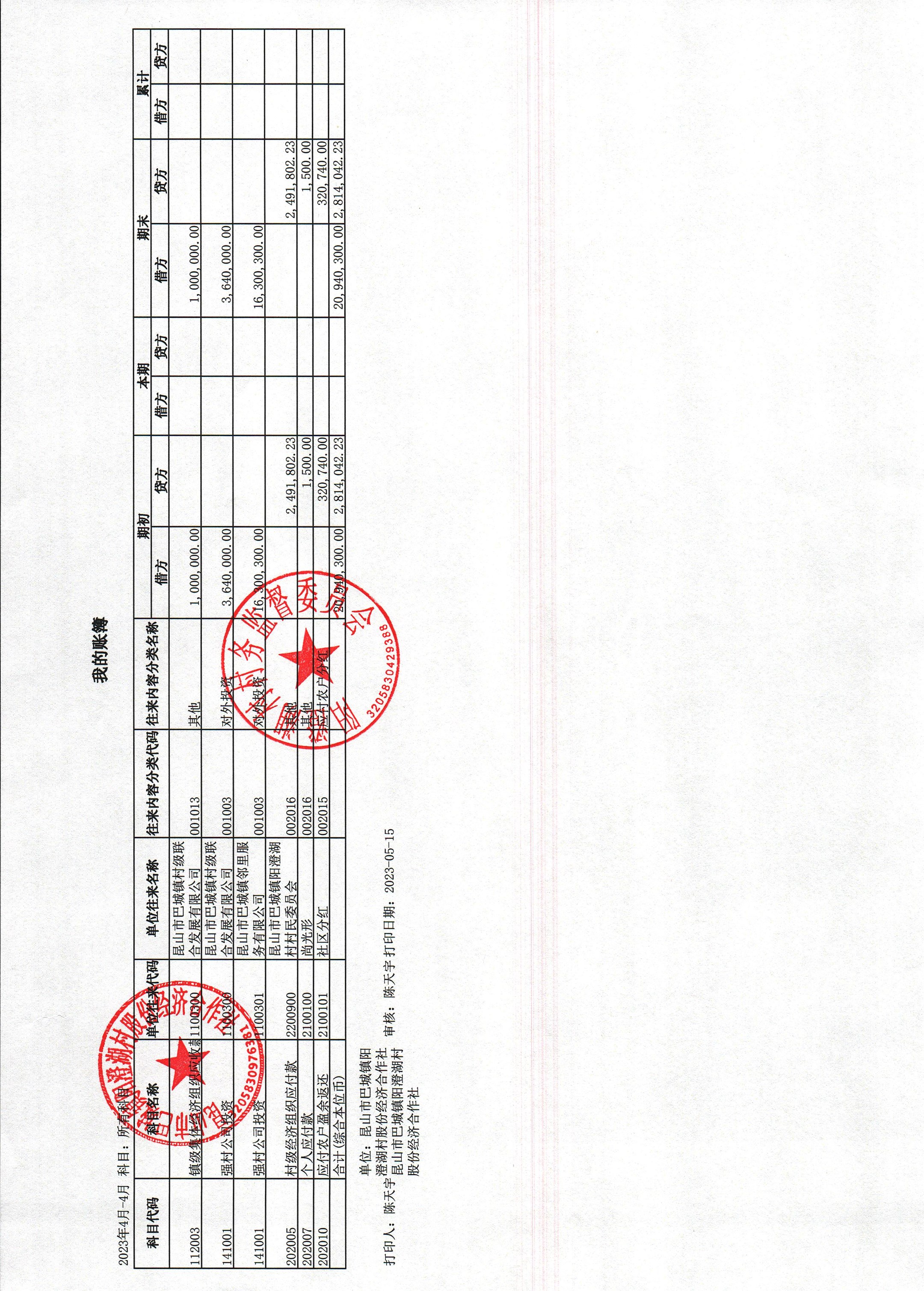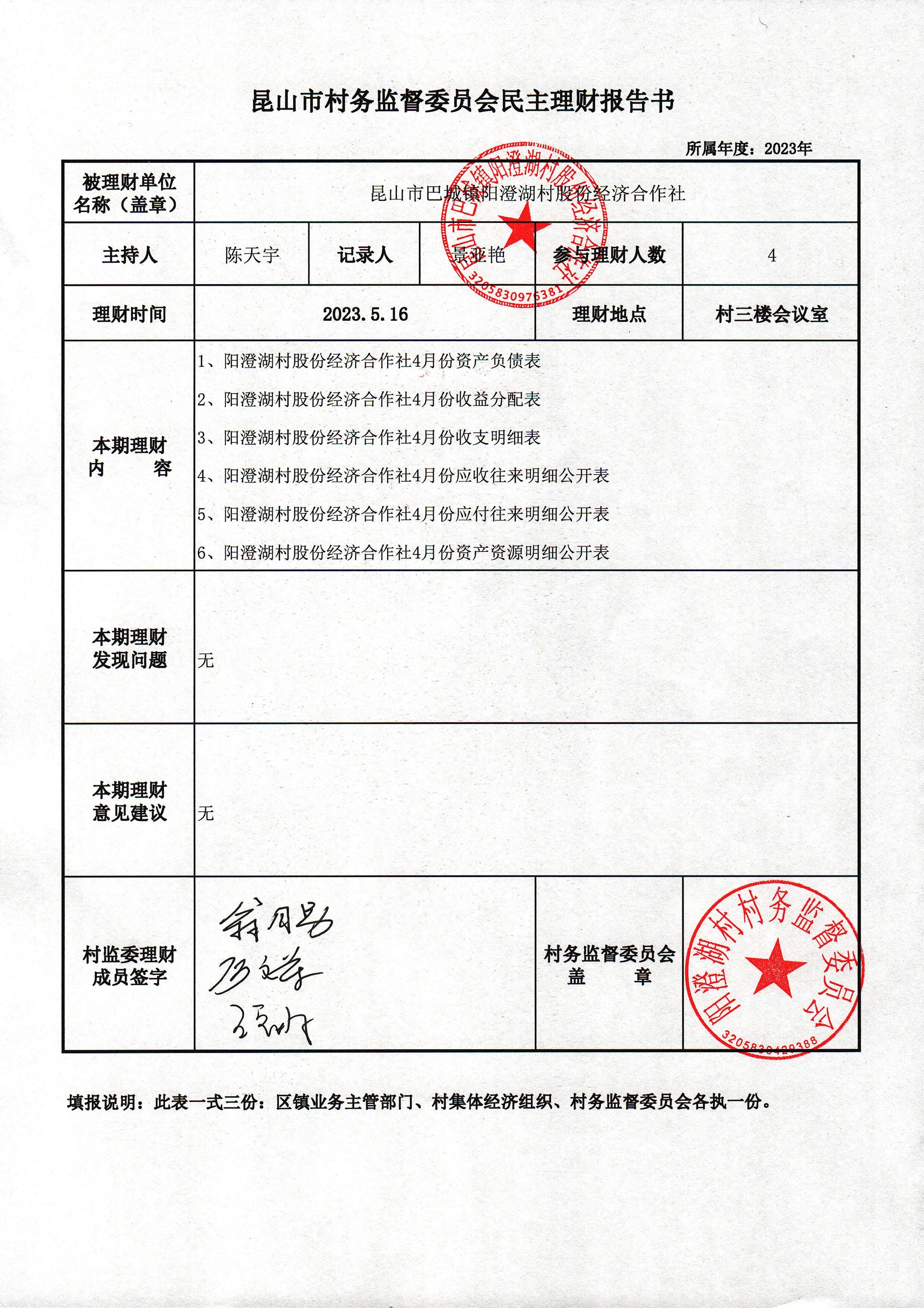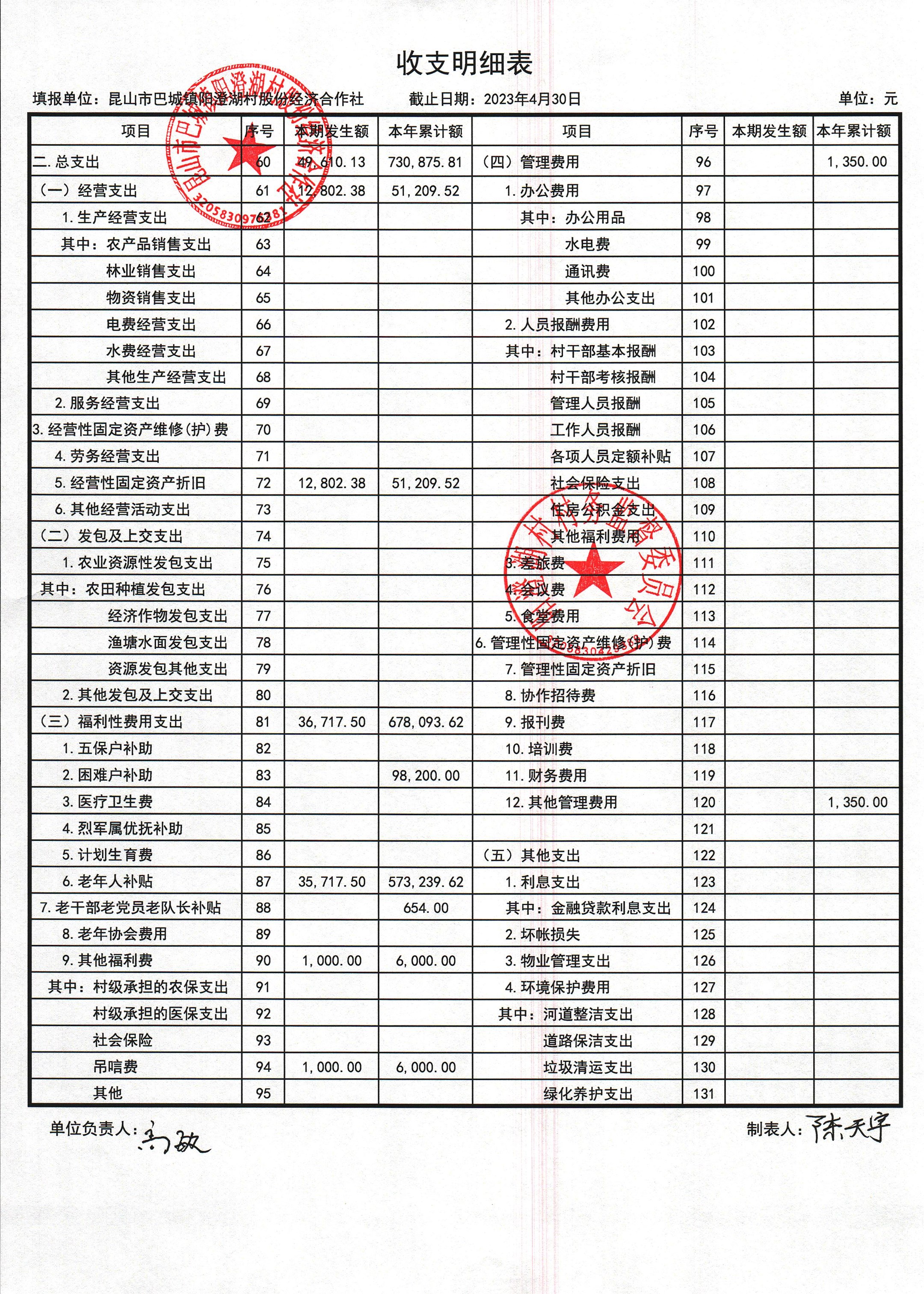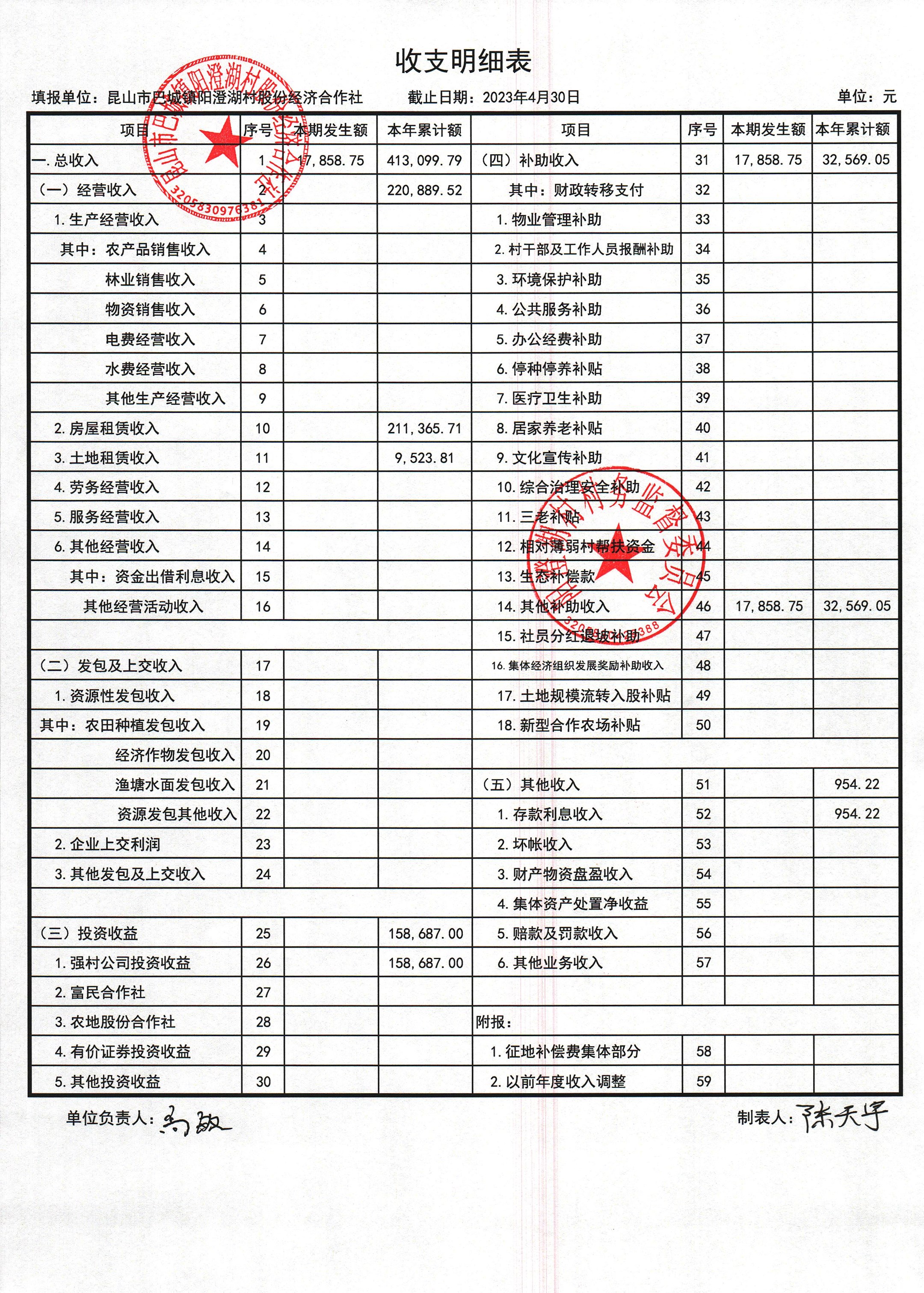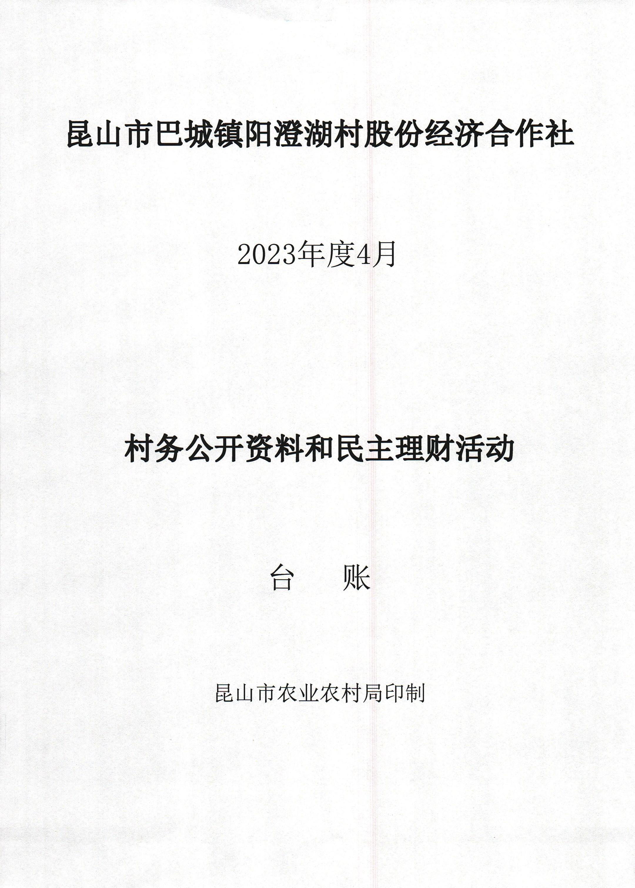 巴城鎮(zhèn)陽澄湖村股份經(jīng)濟(jì)合作社2023年4月份財(cái)務(wù)公開