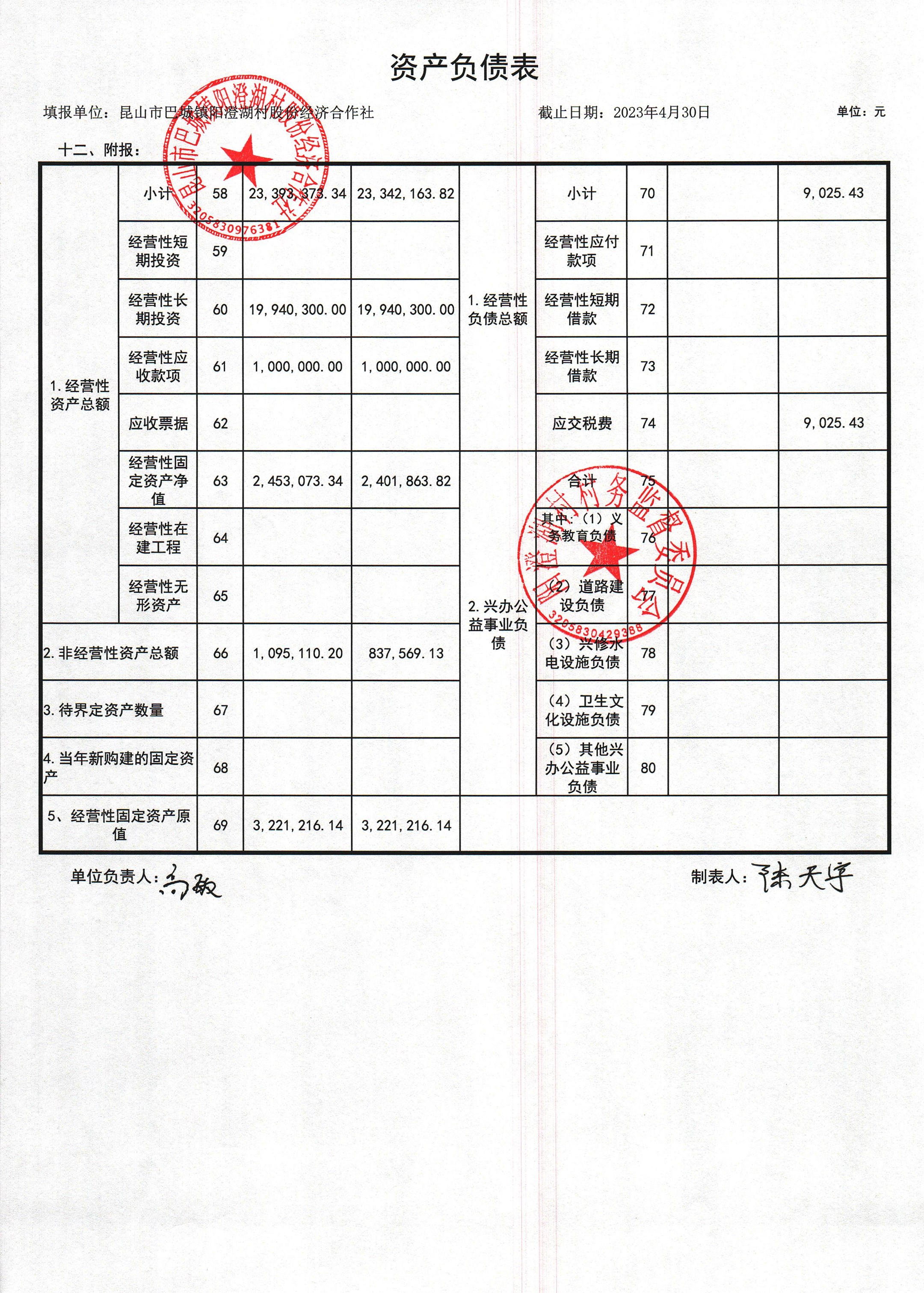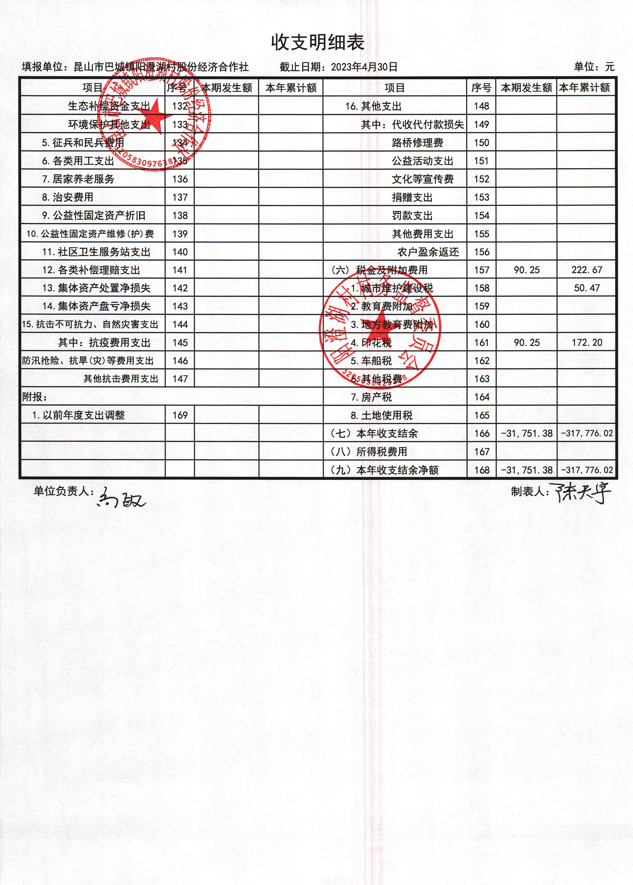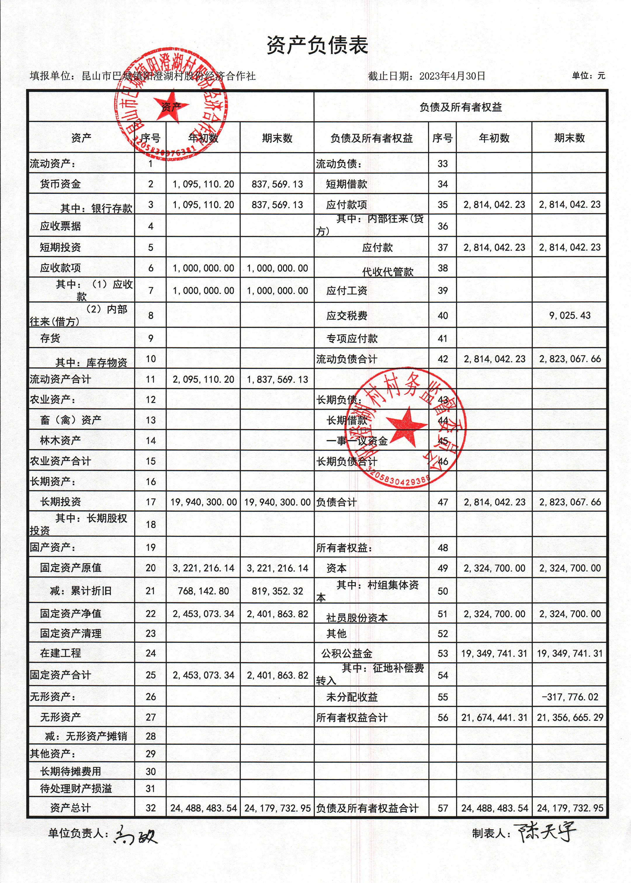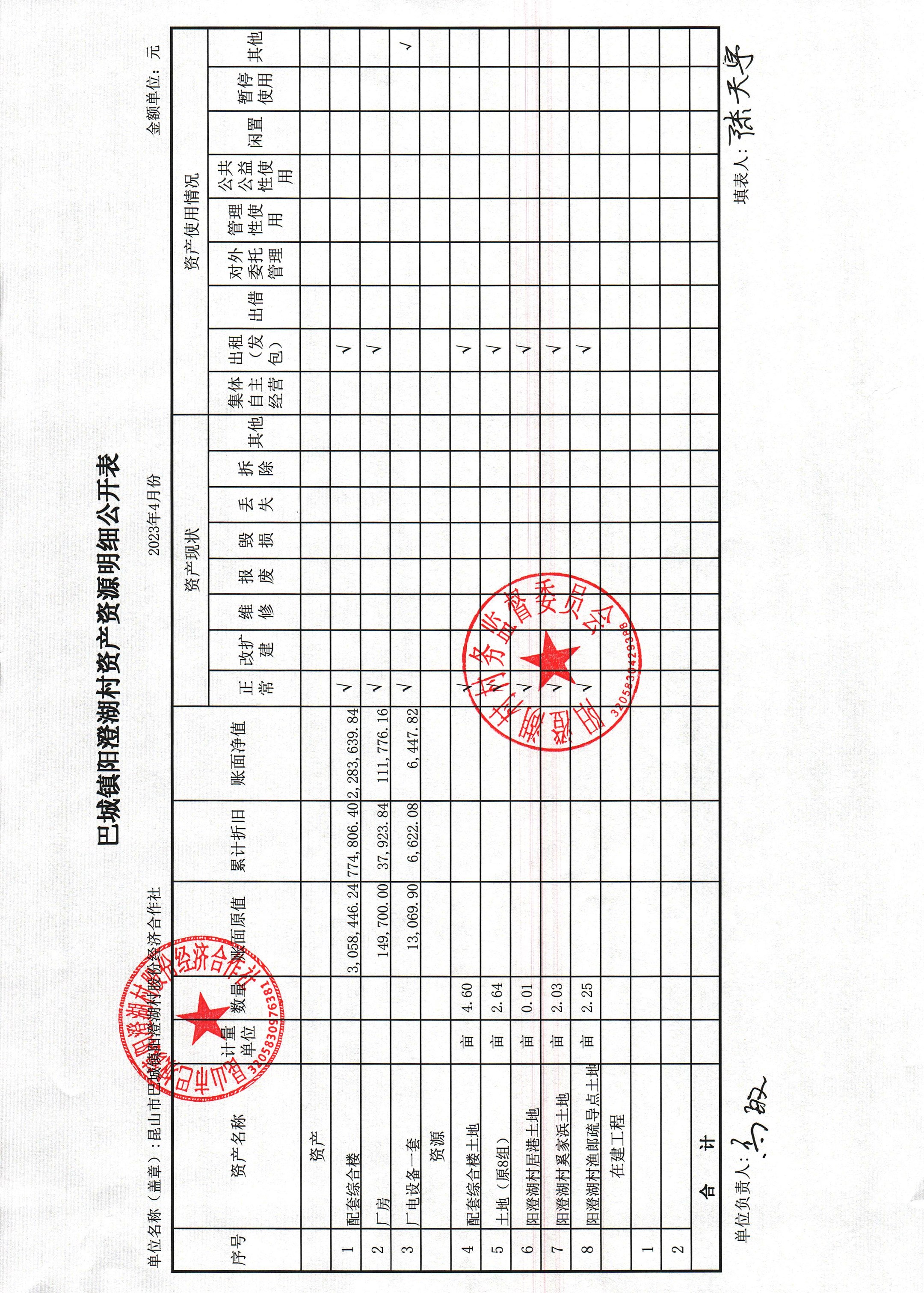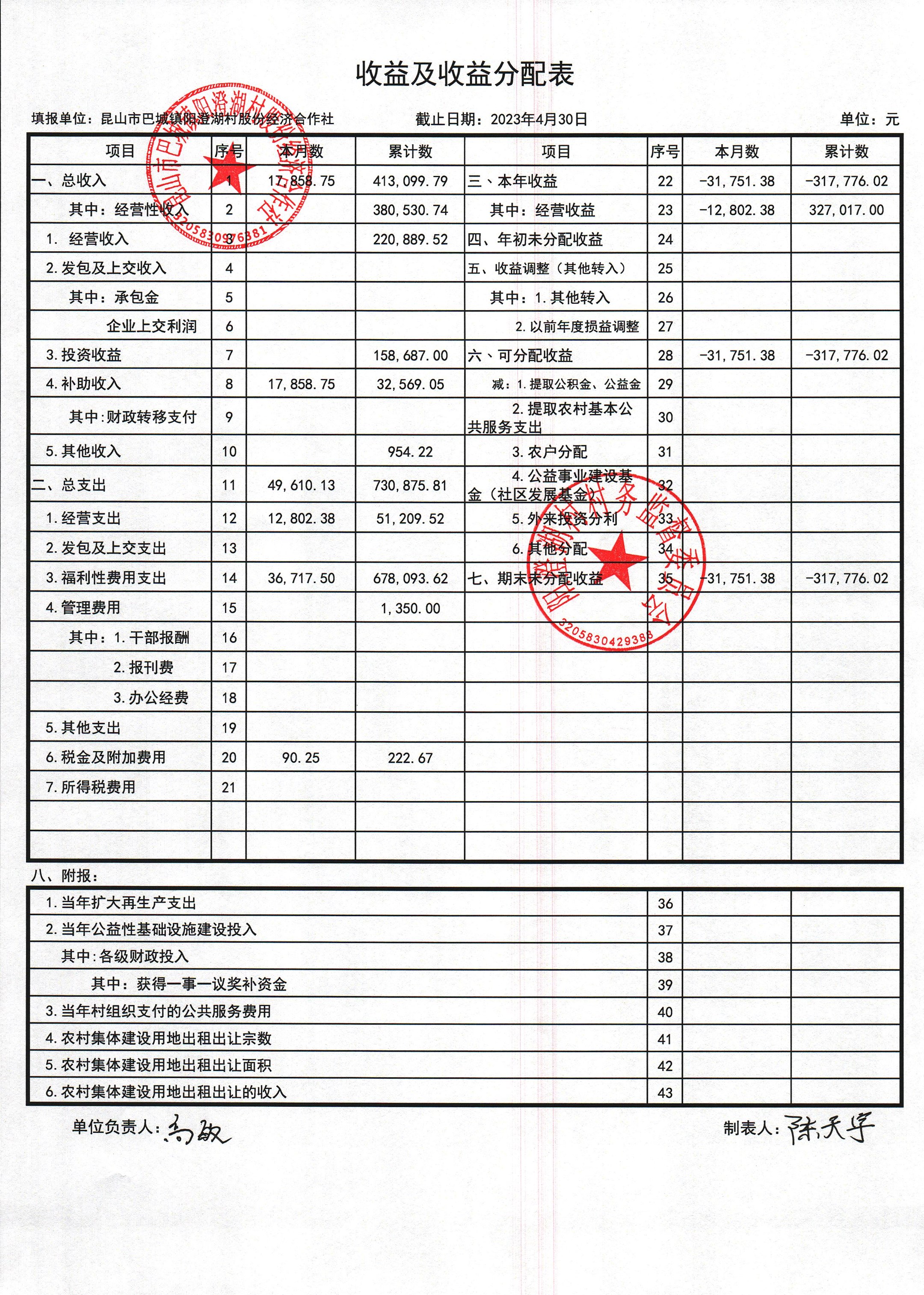 巴城鎮(zhèn)陽澄湖村股份經(jīng)濟(jì)合作社2023年4月份財(cái)務(wù)公開
