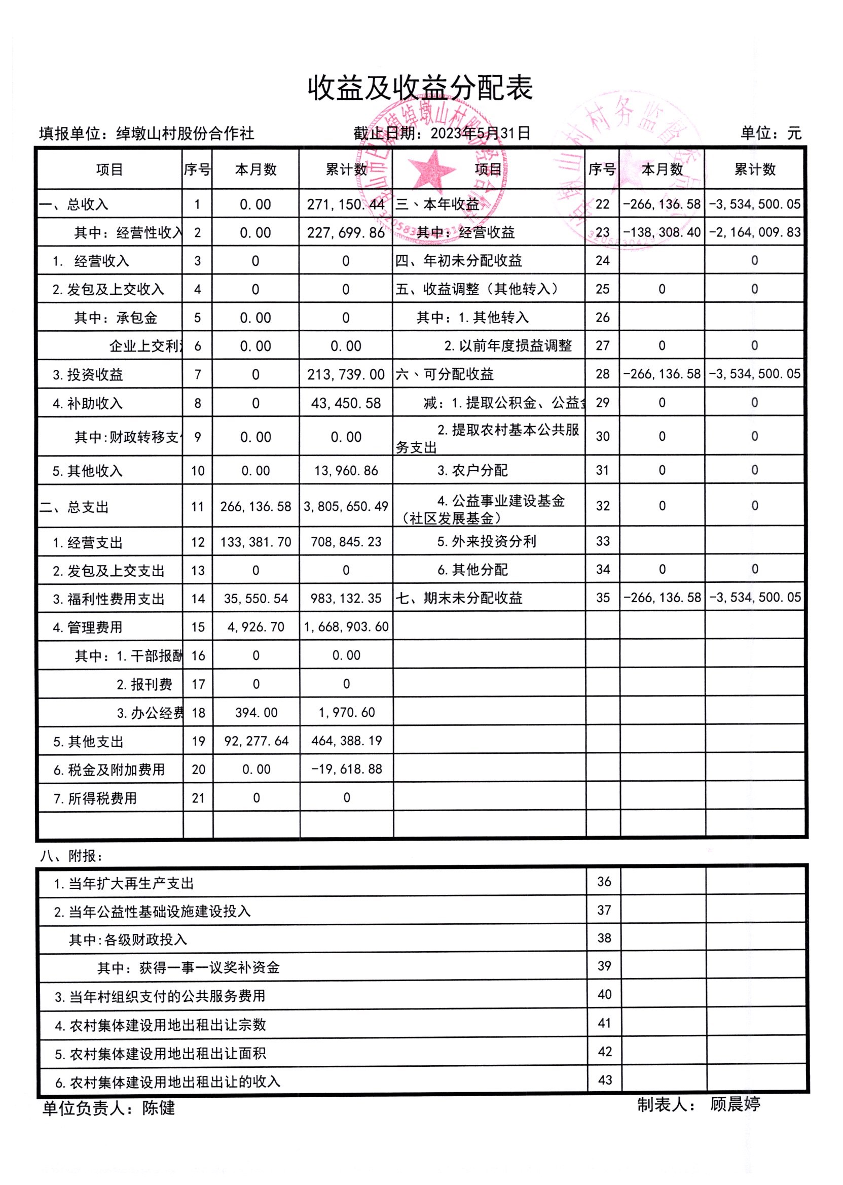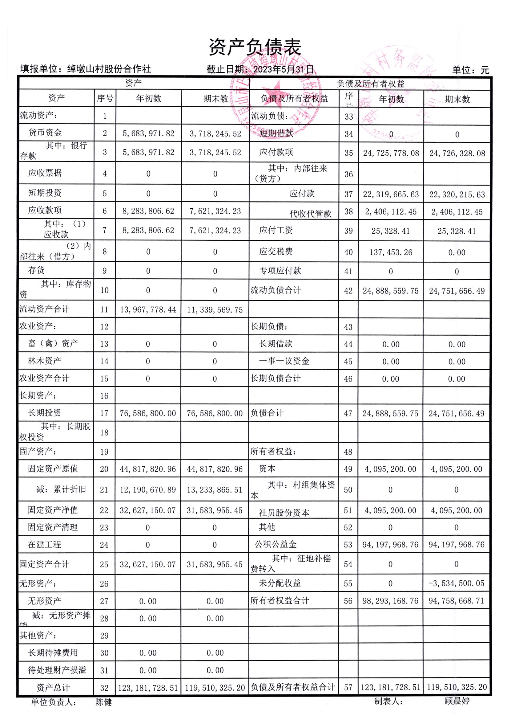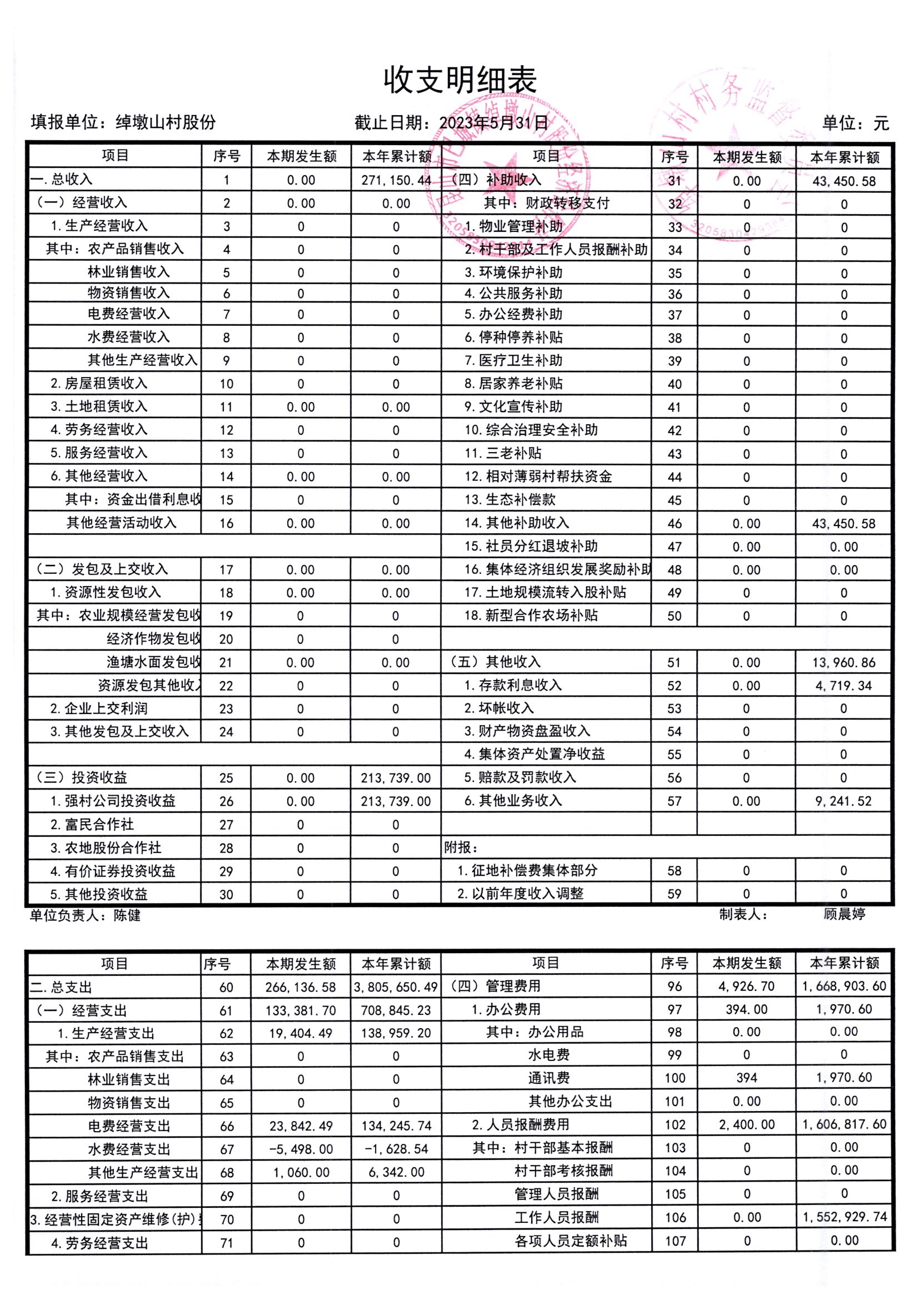 2023年5月份綽墩山村股份經(jīng)濟(jì)合作社財務(wù)公開