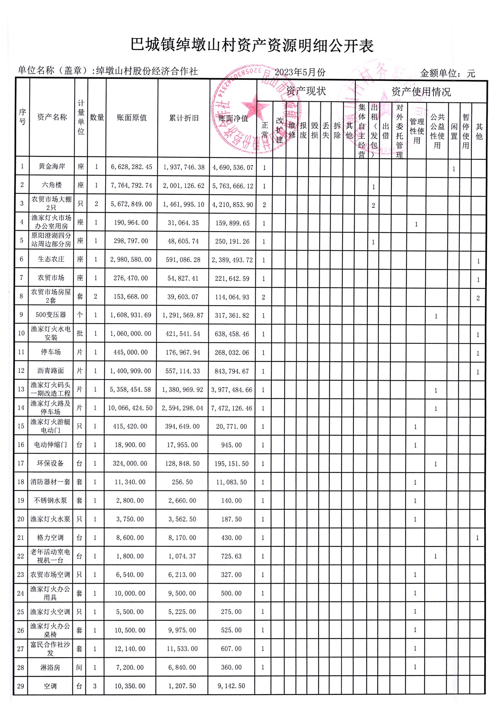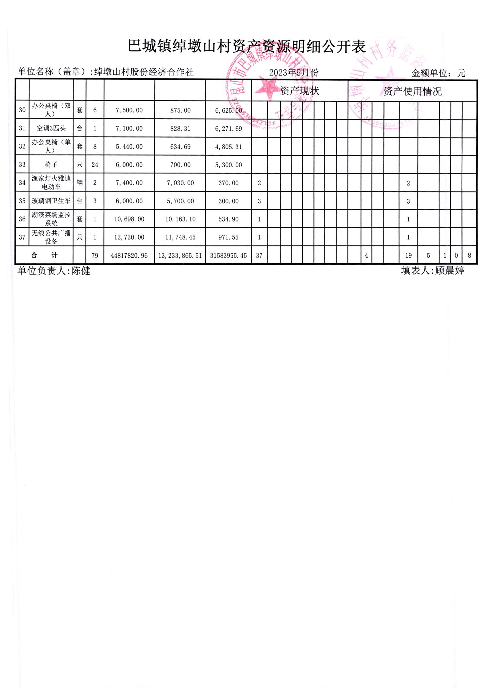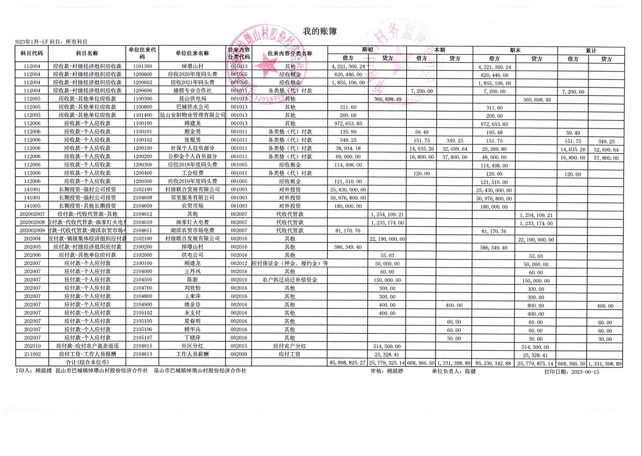 2023年5月份綽墩山村股份經(jīng)濟(jì)合作社財務(wù)公開