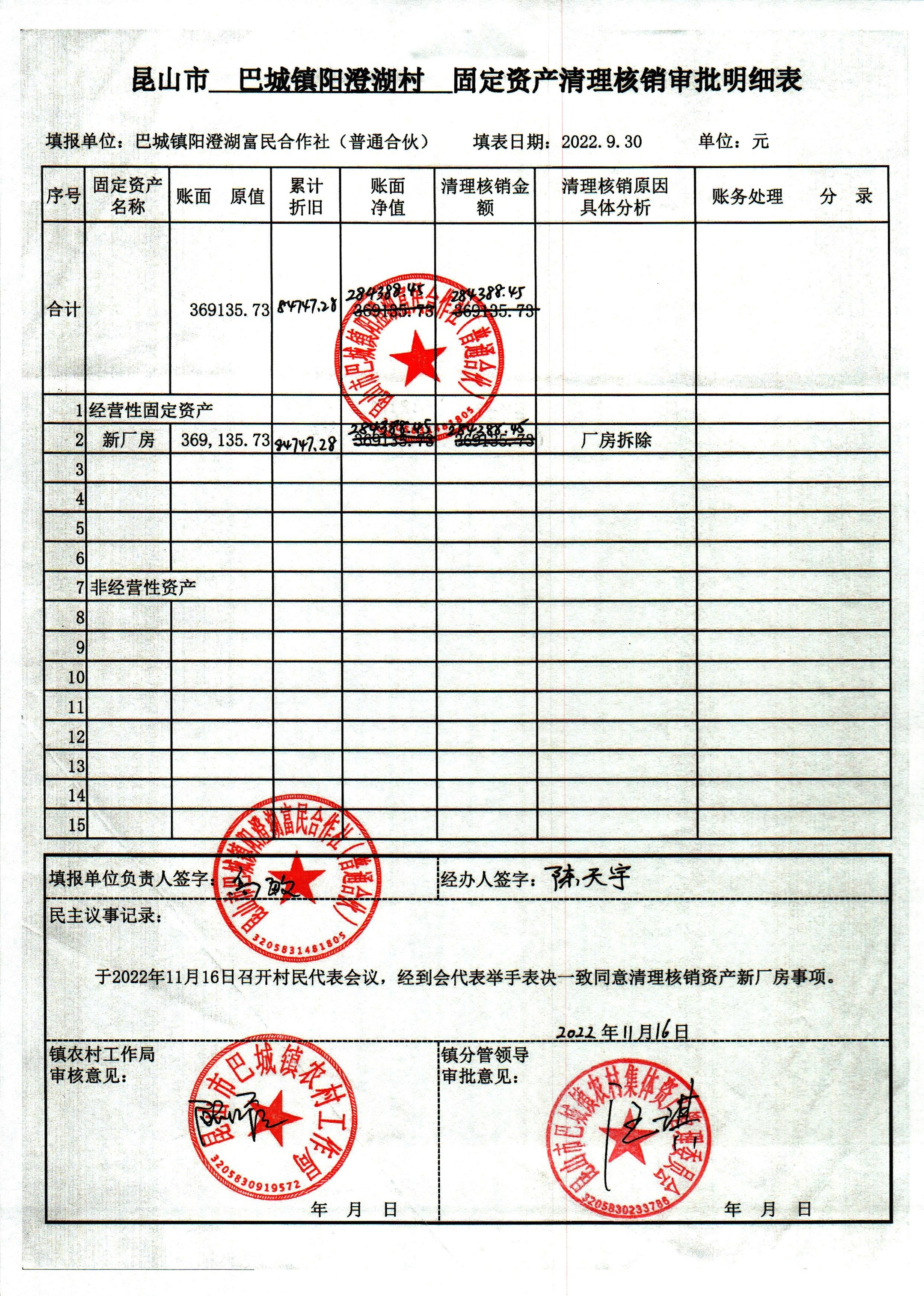 巴城鎮(zhèn)陽澄湖村資產(chǎn)清理核銷不定期公開