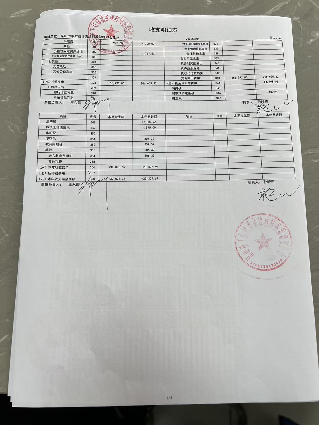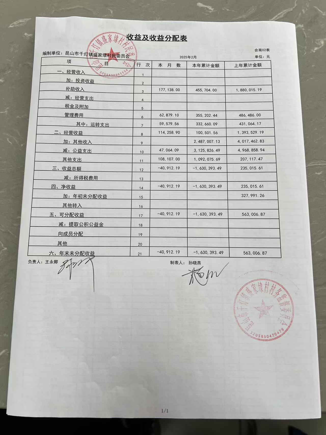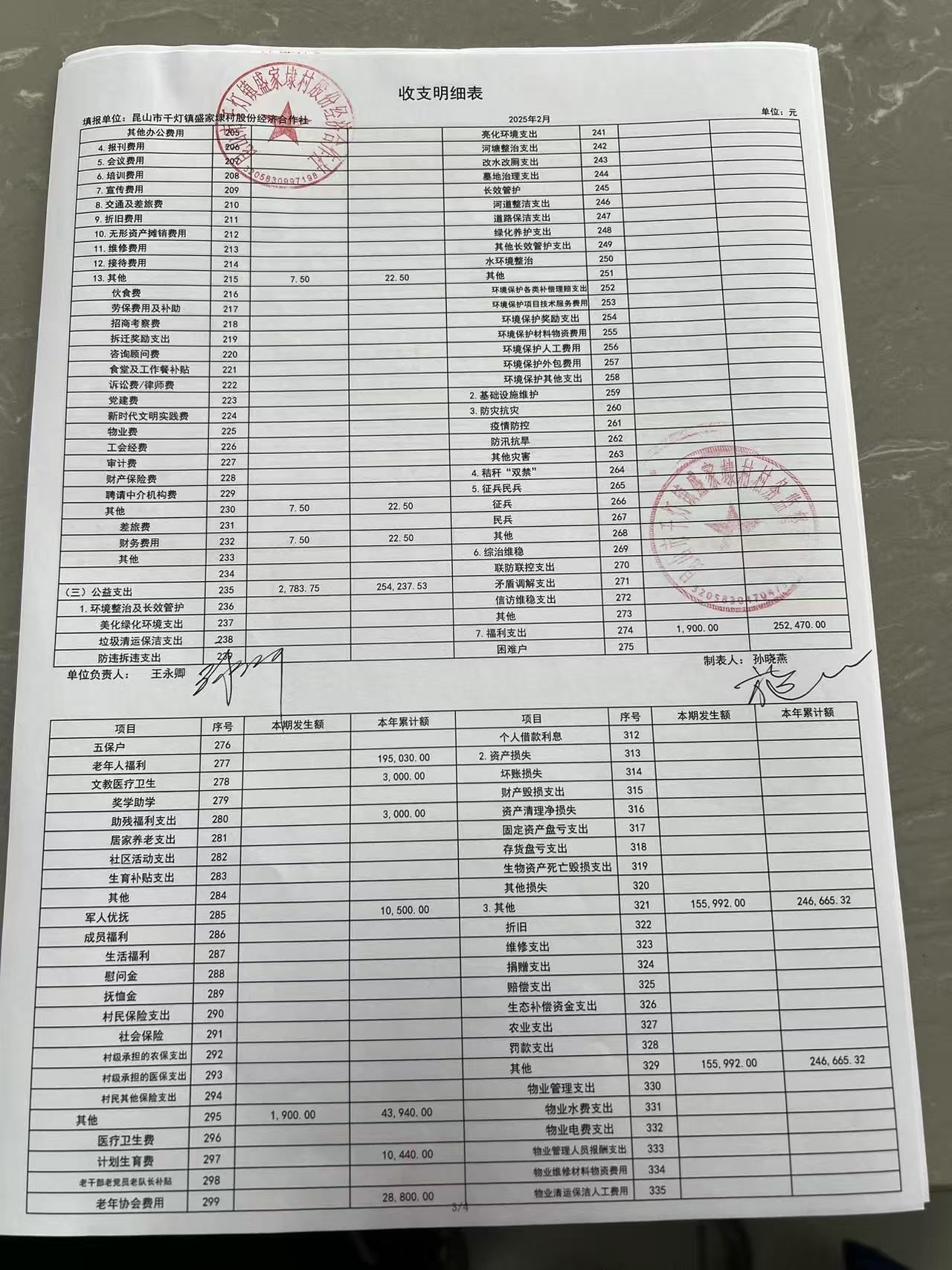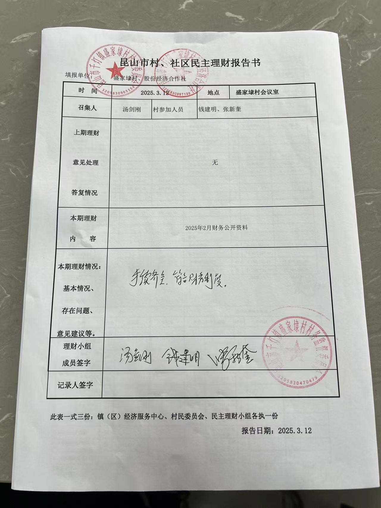 2025年2月份盛家埭村、股份經濟合作社定期公開