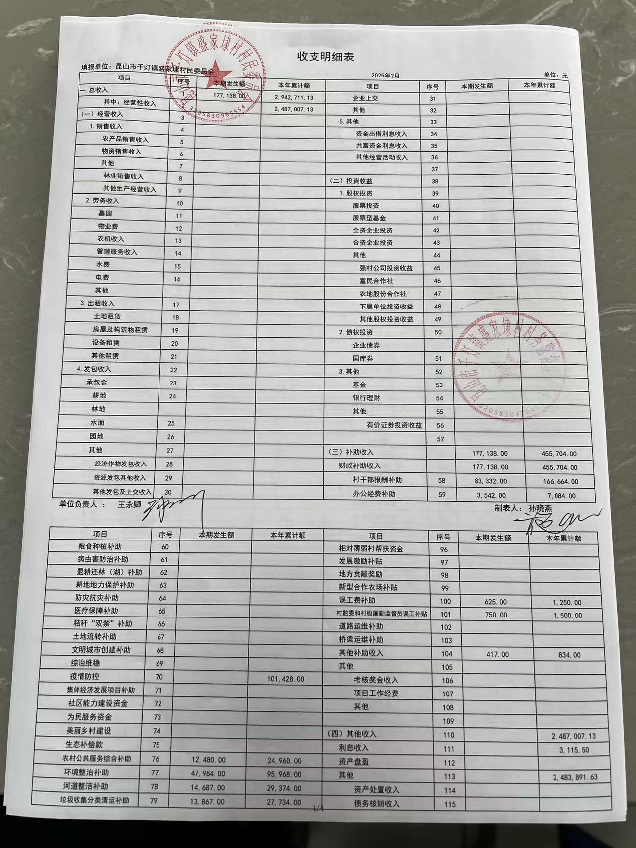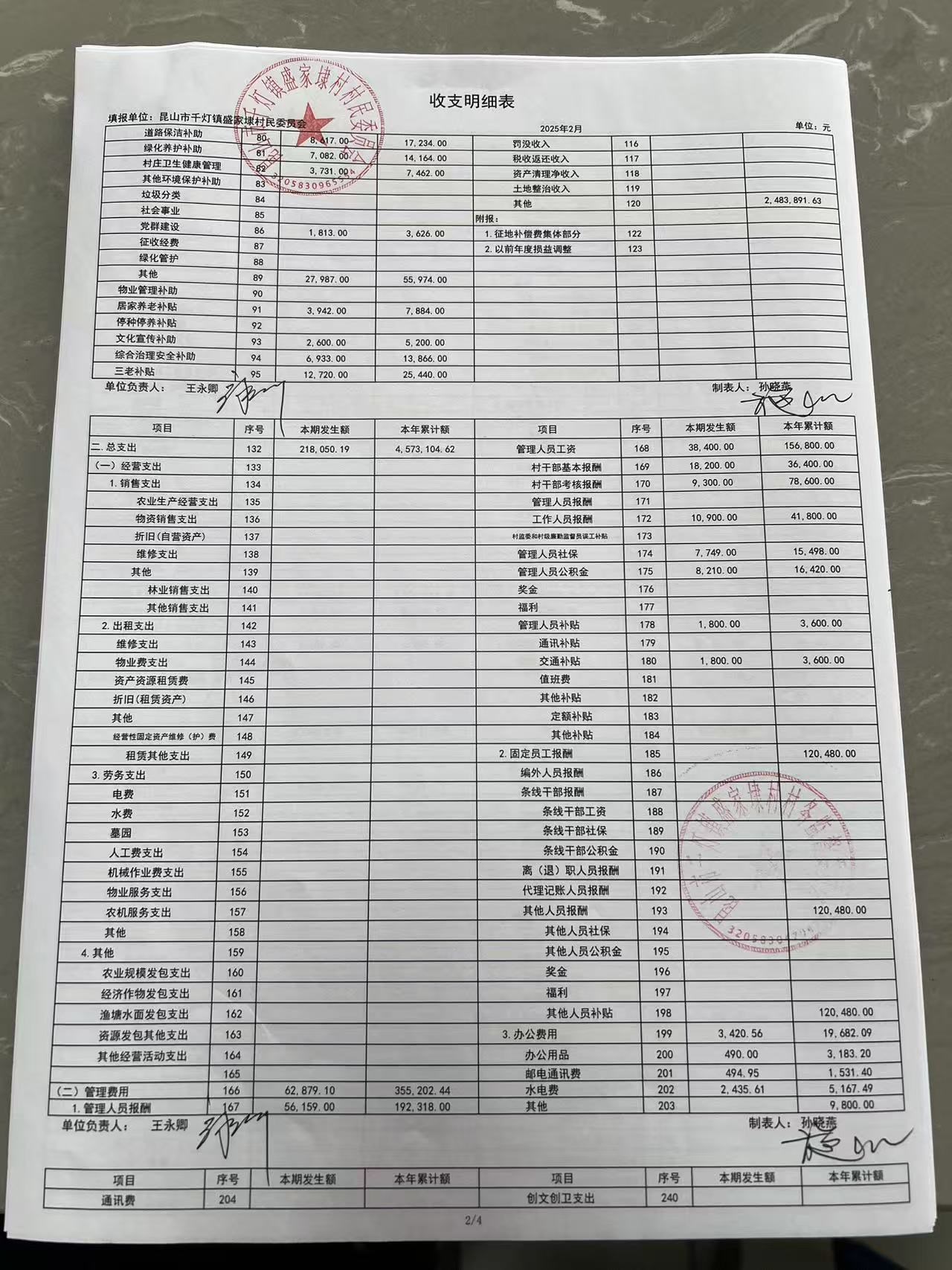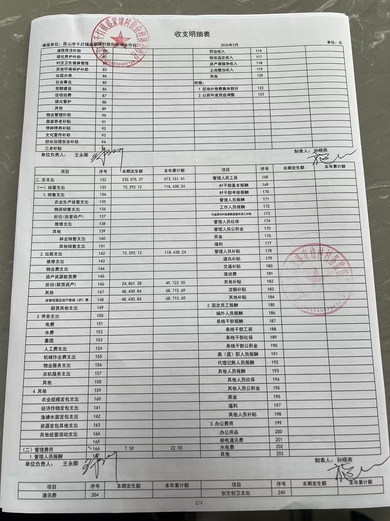 2025年2月份盛家埭村、股份經濟合作社定期公開