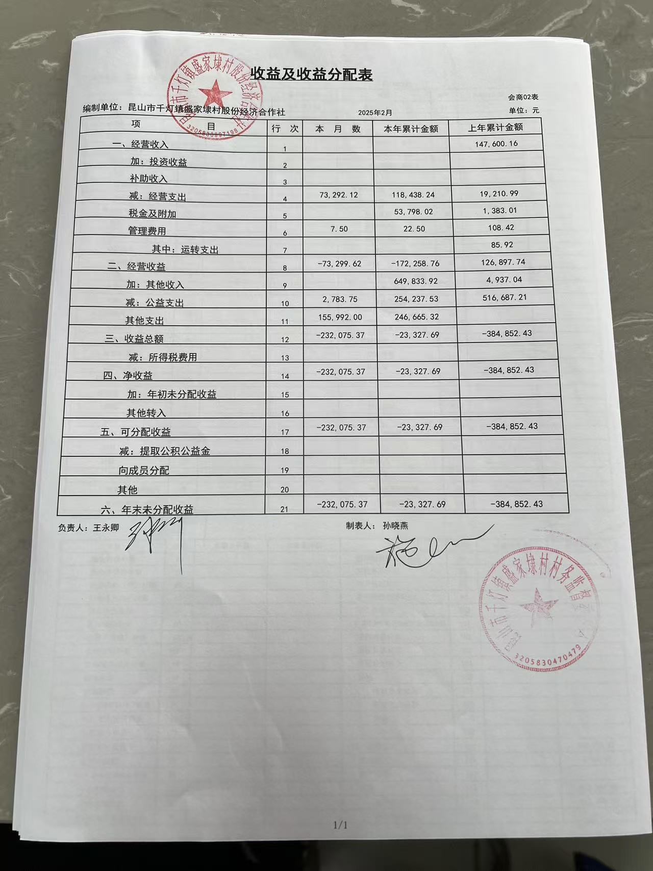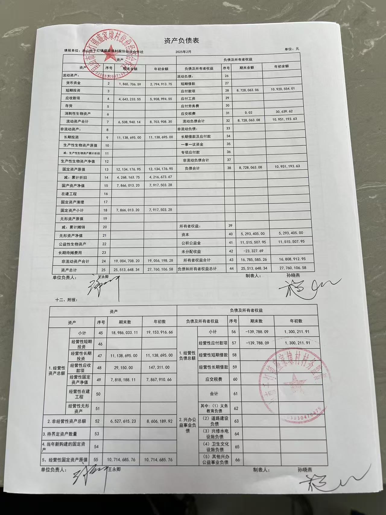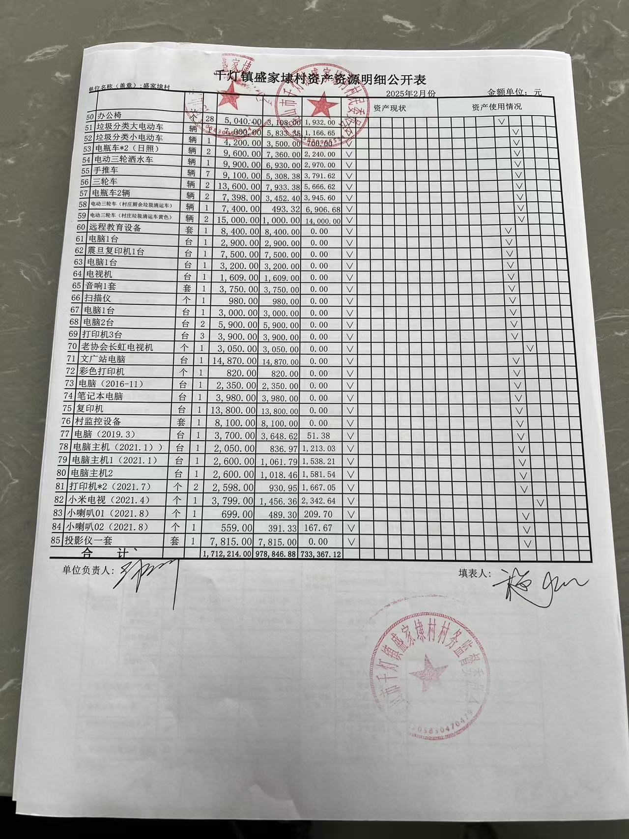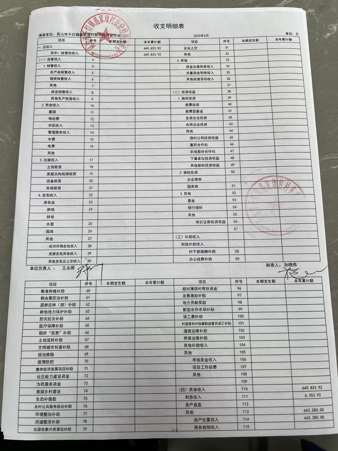 2025年2月份盛家埭村、股份經濟合作社定期公開