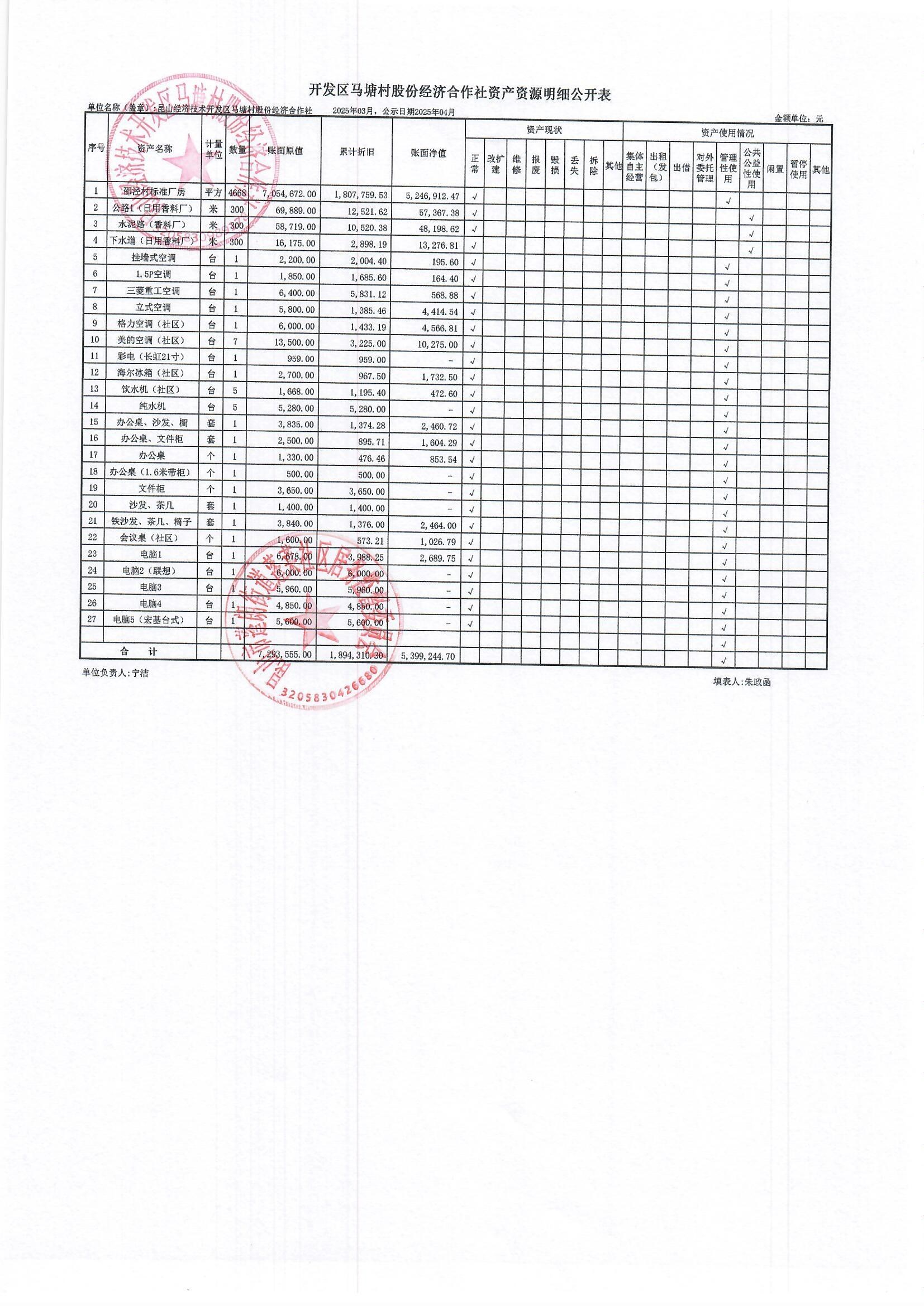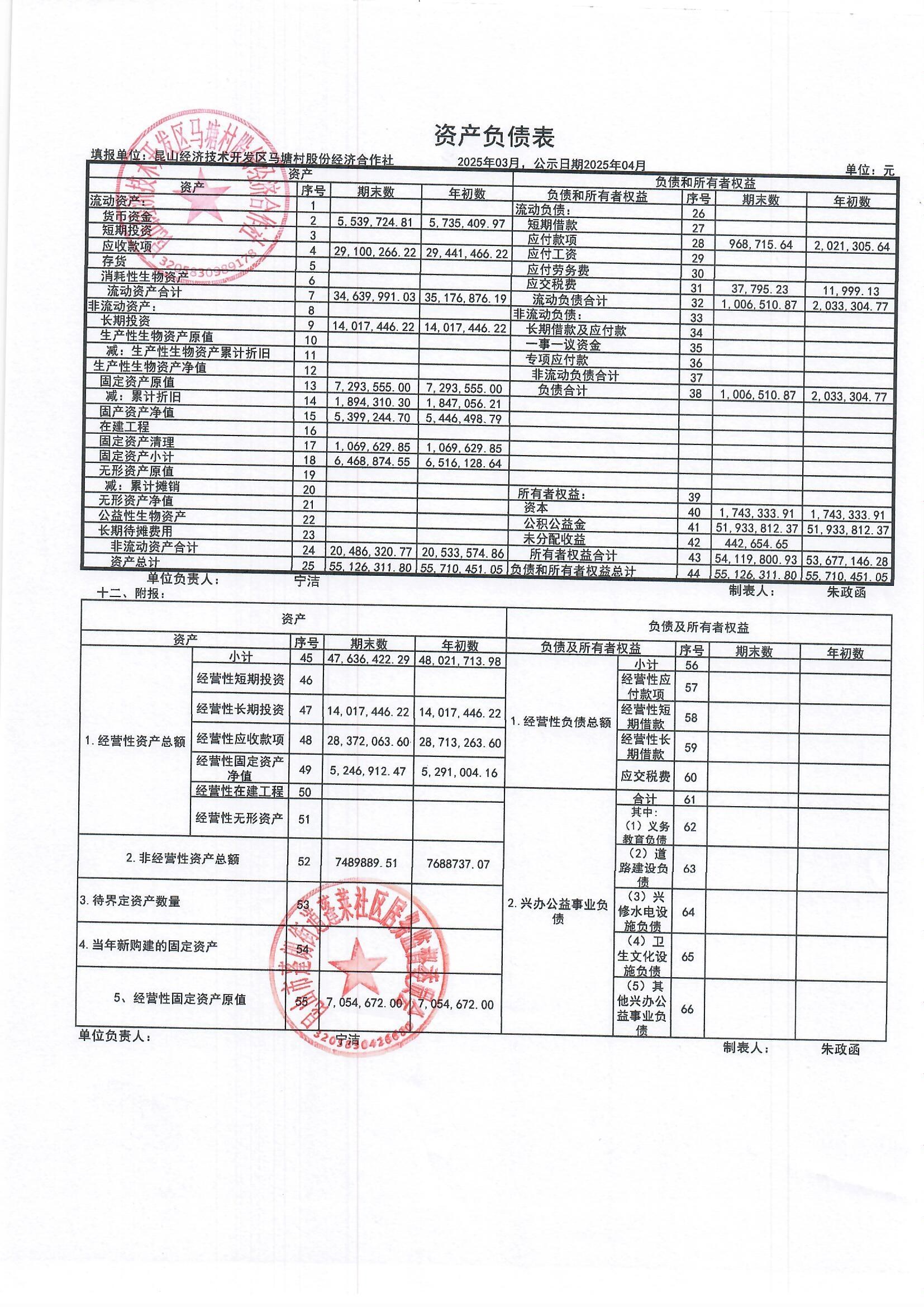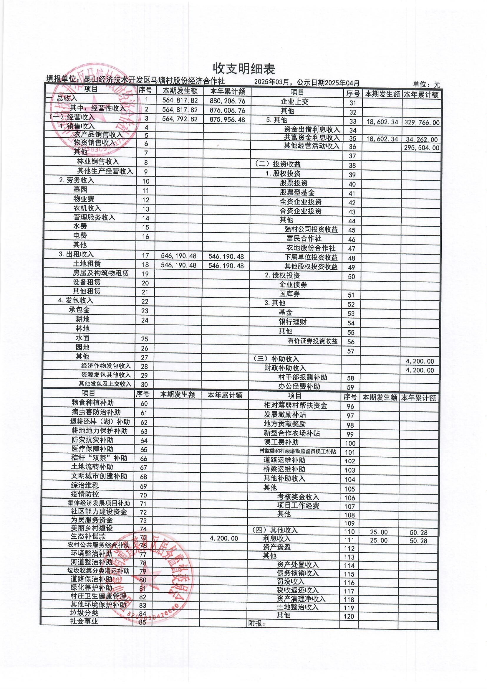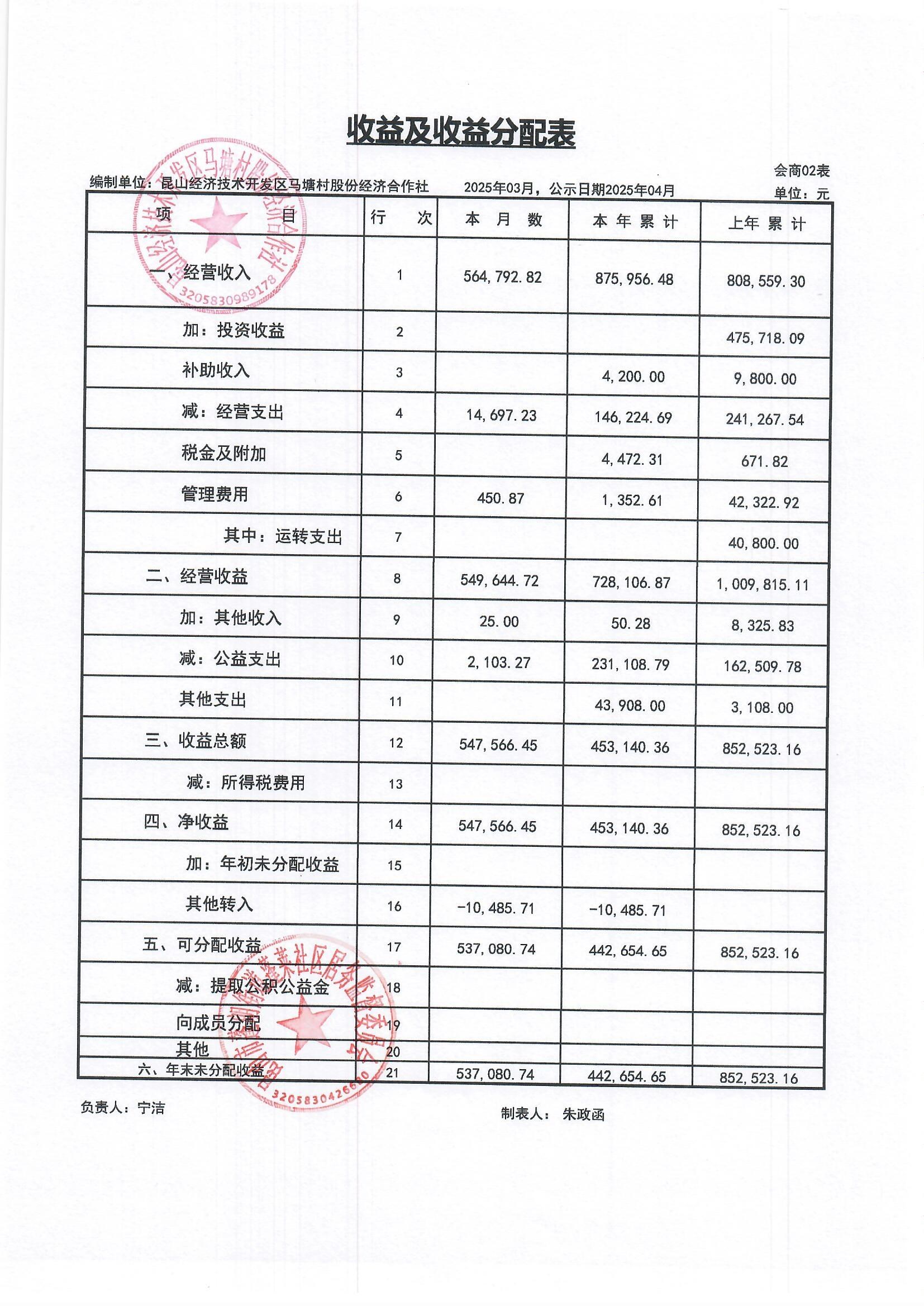 2025年3月(第一季度)財務(wù)公開(馬塘村股份經(jīng)濟合作社)