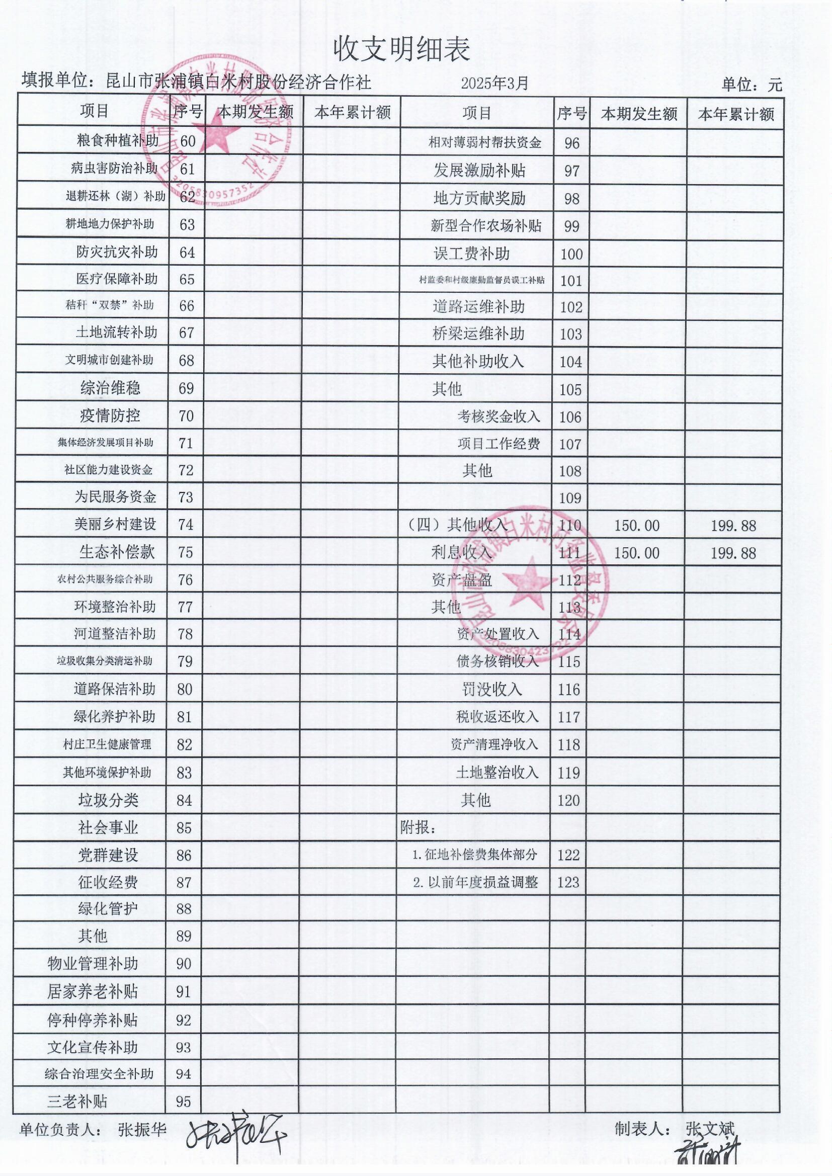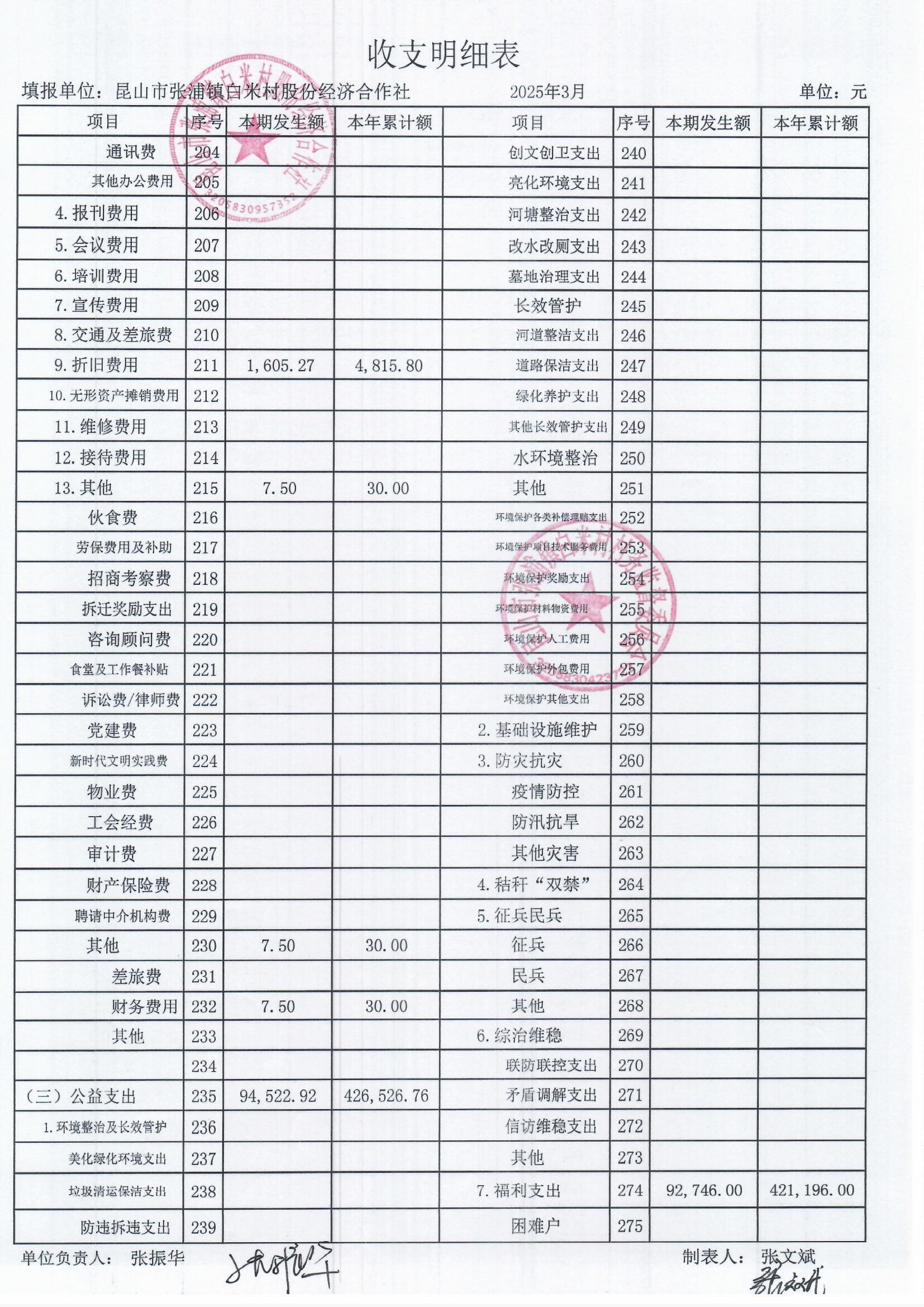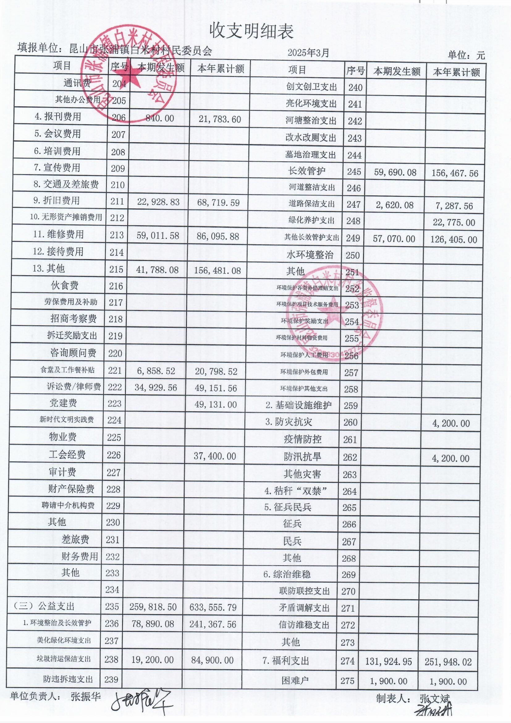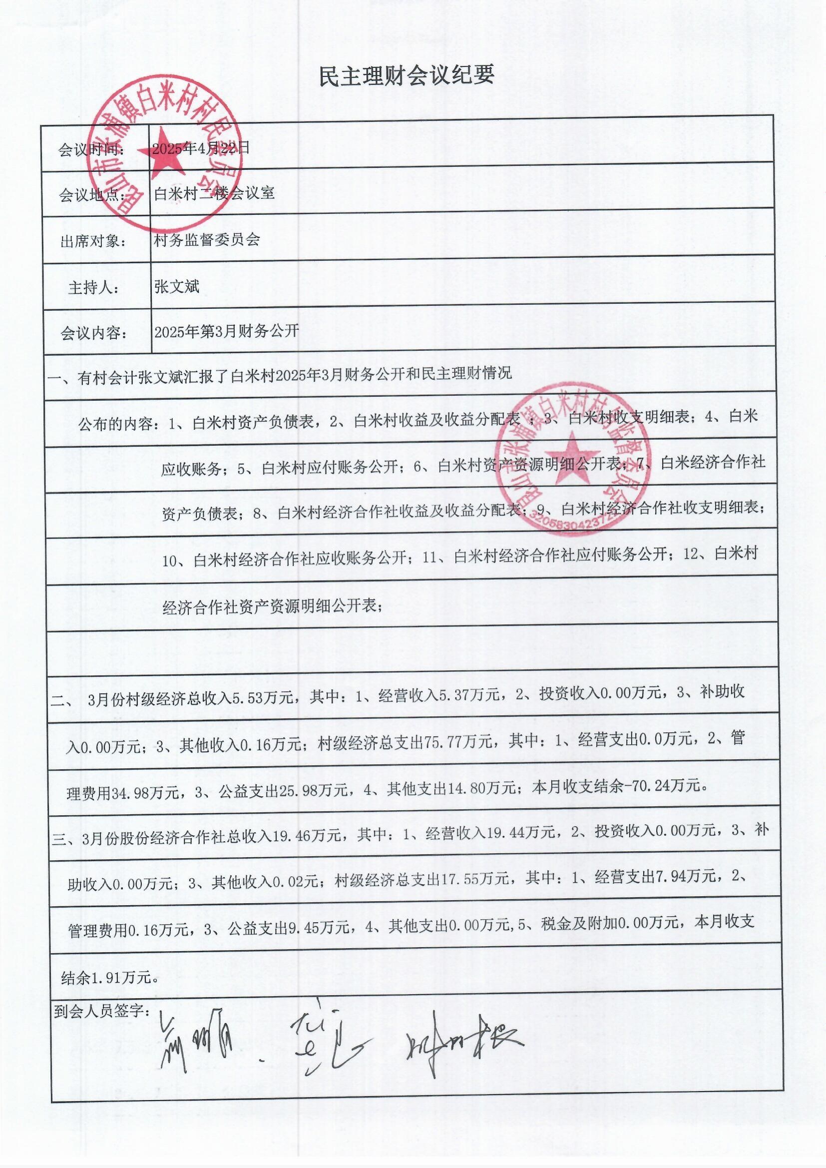 2025年3月白米村村民委員會和股份經(jīng)濟合作社財務(wù)公開和不定期公開