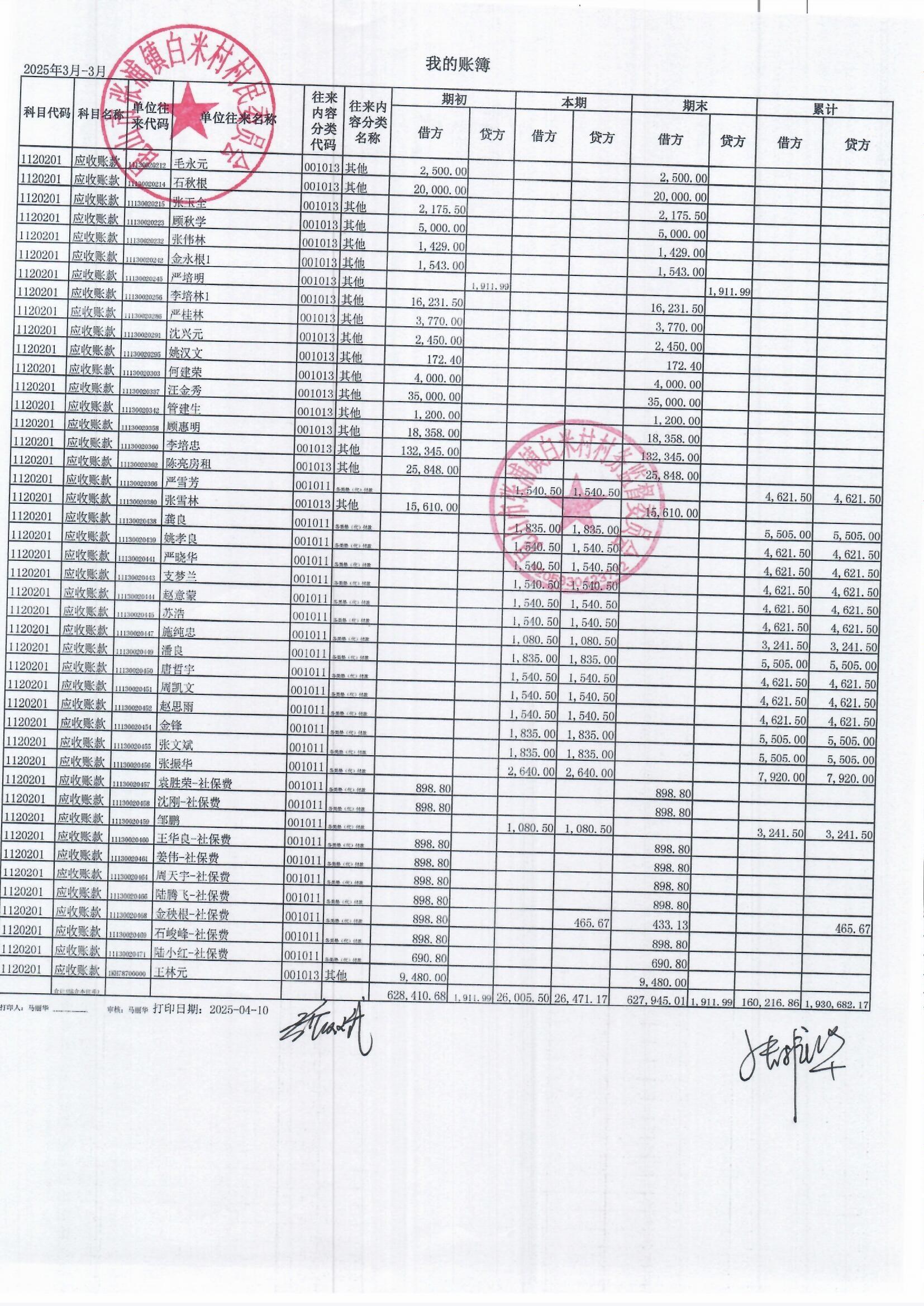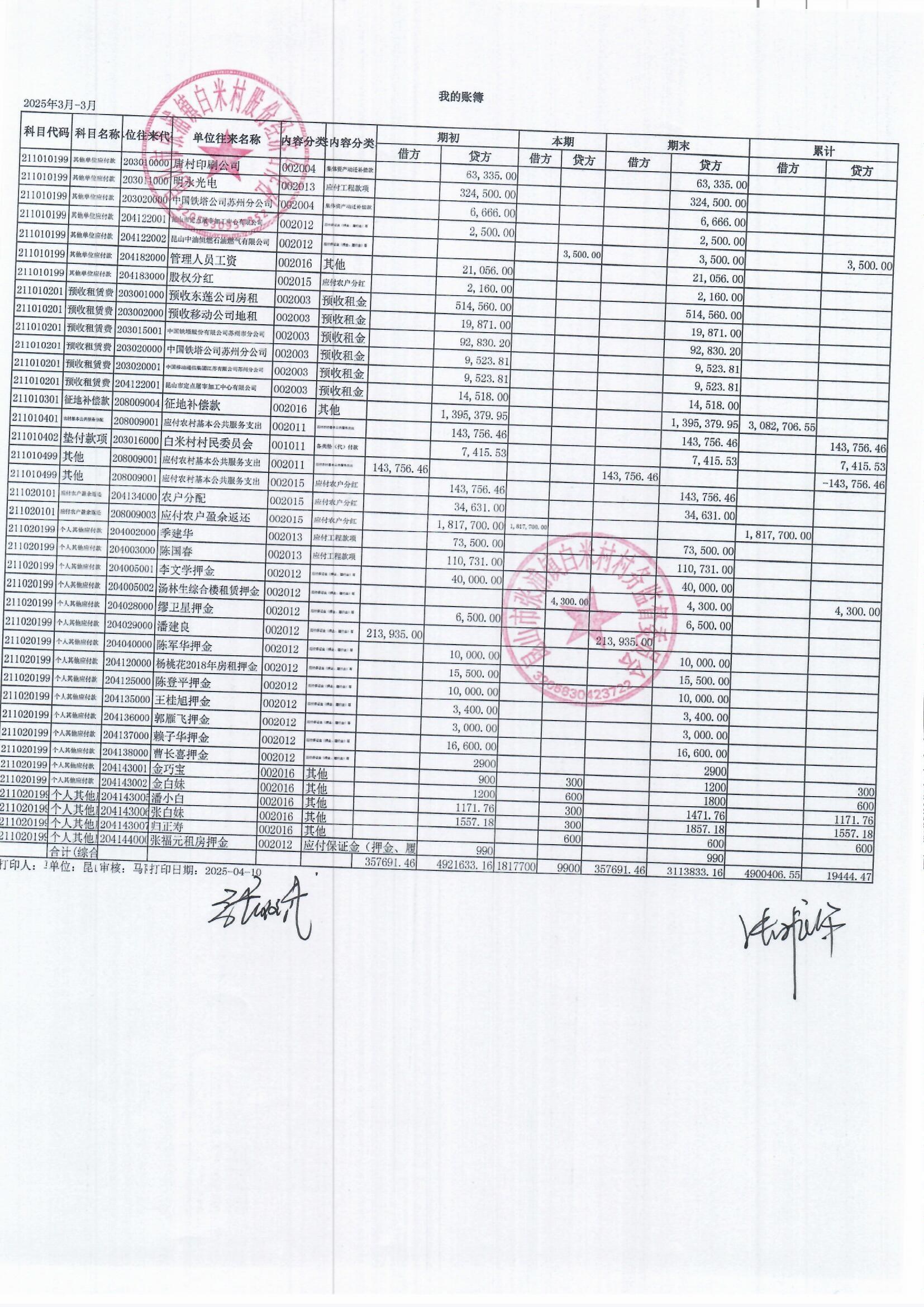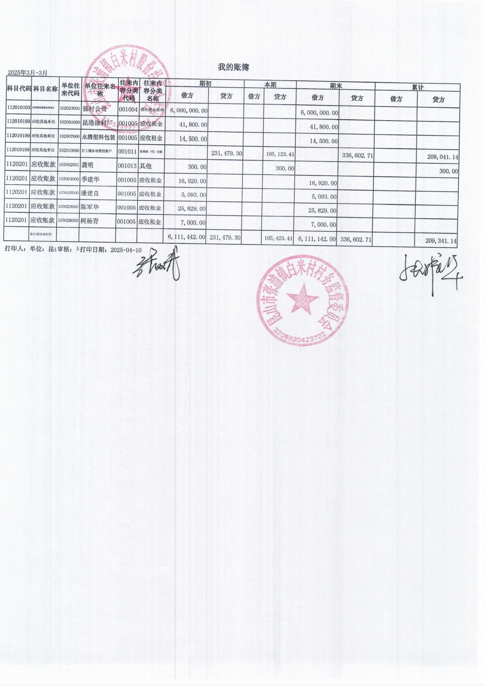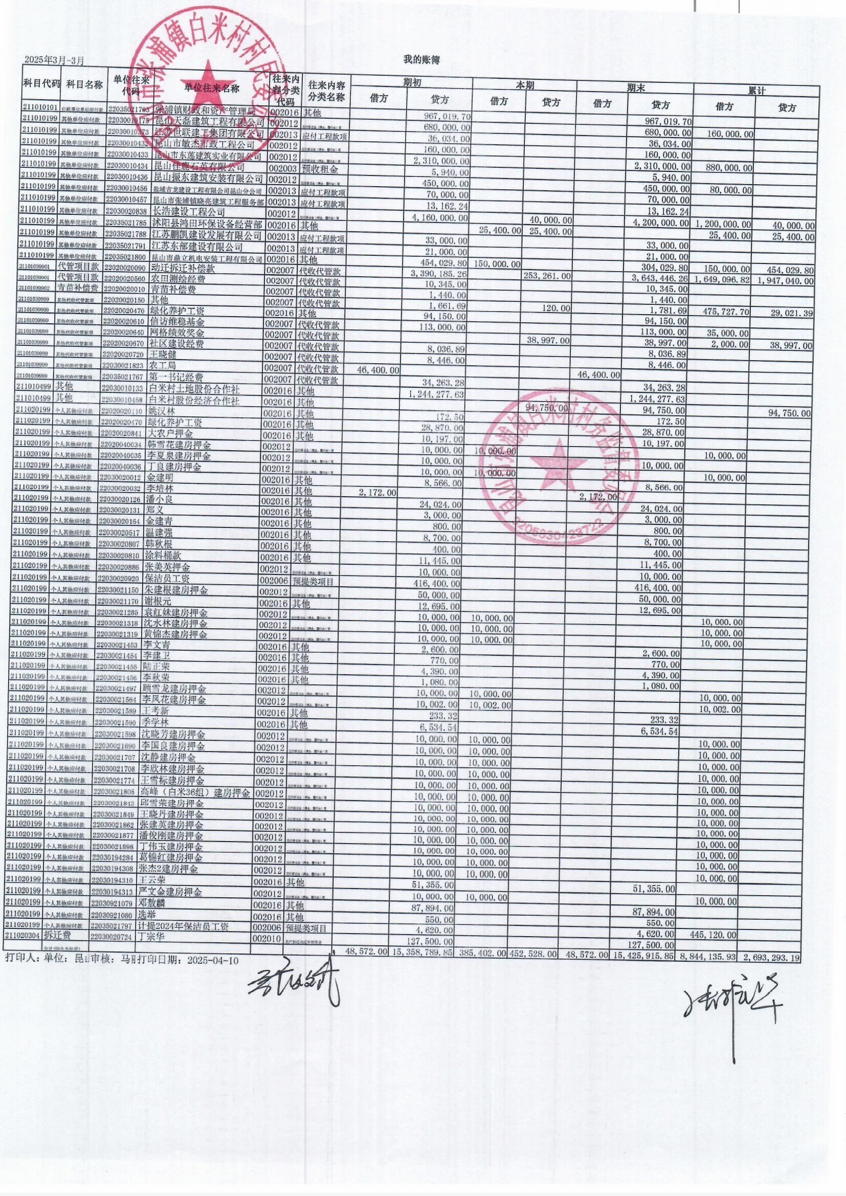 2025年3月白米村村民委員會和股份經(jīng)濟合作社財務(wù)公開和不定期公開