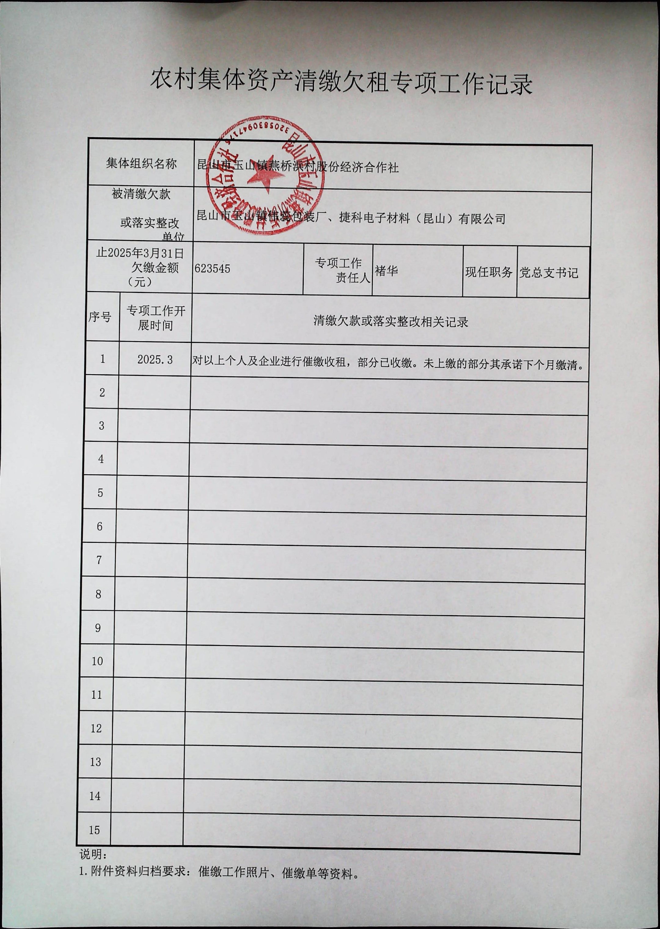 燕橋浜村集體資產(chǎn)清繳欠租一季度公開