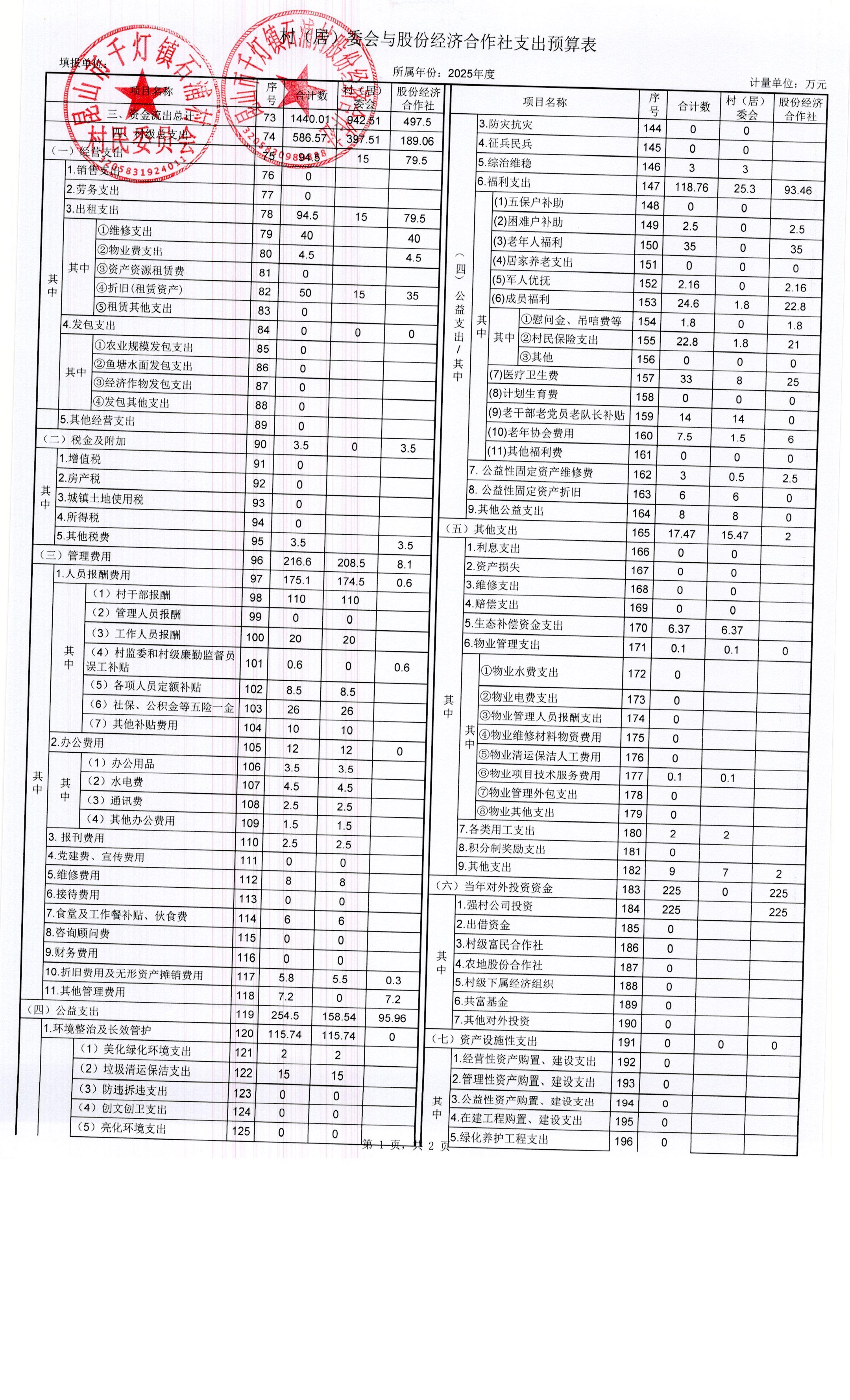 2025年村委會與社區(qū)合作社資金收支預(yù)算表