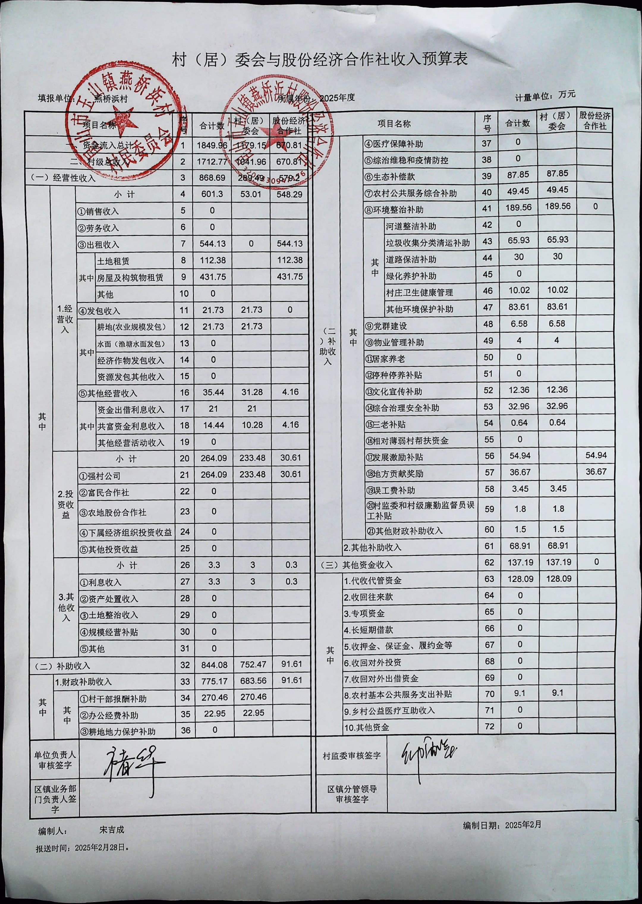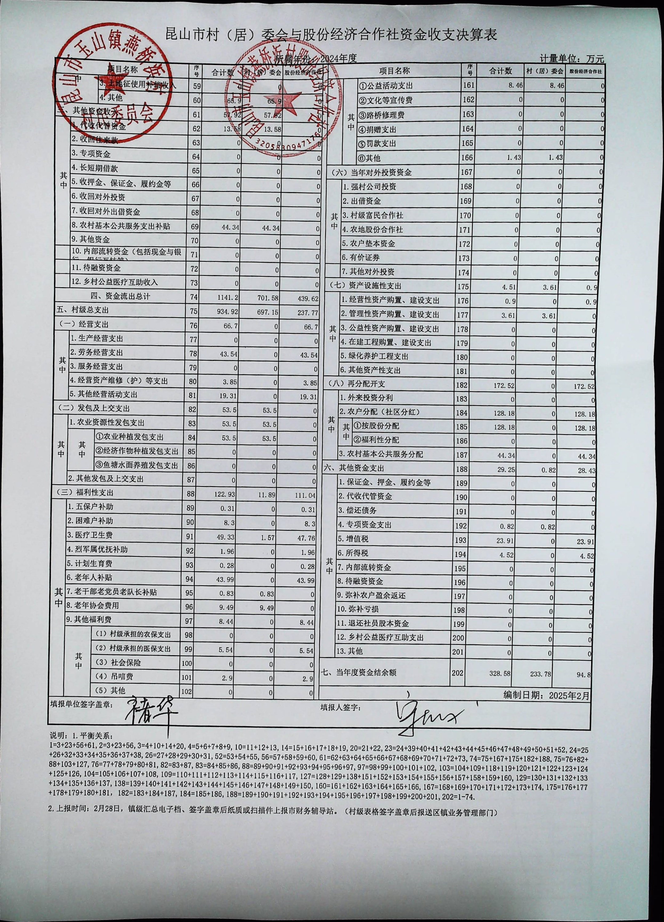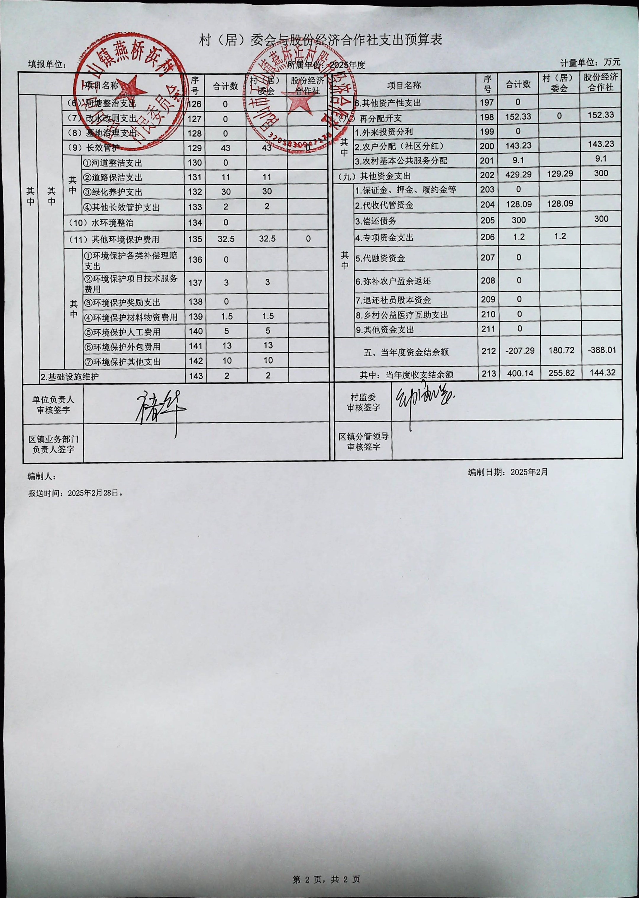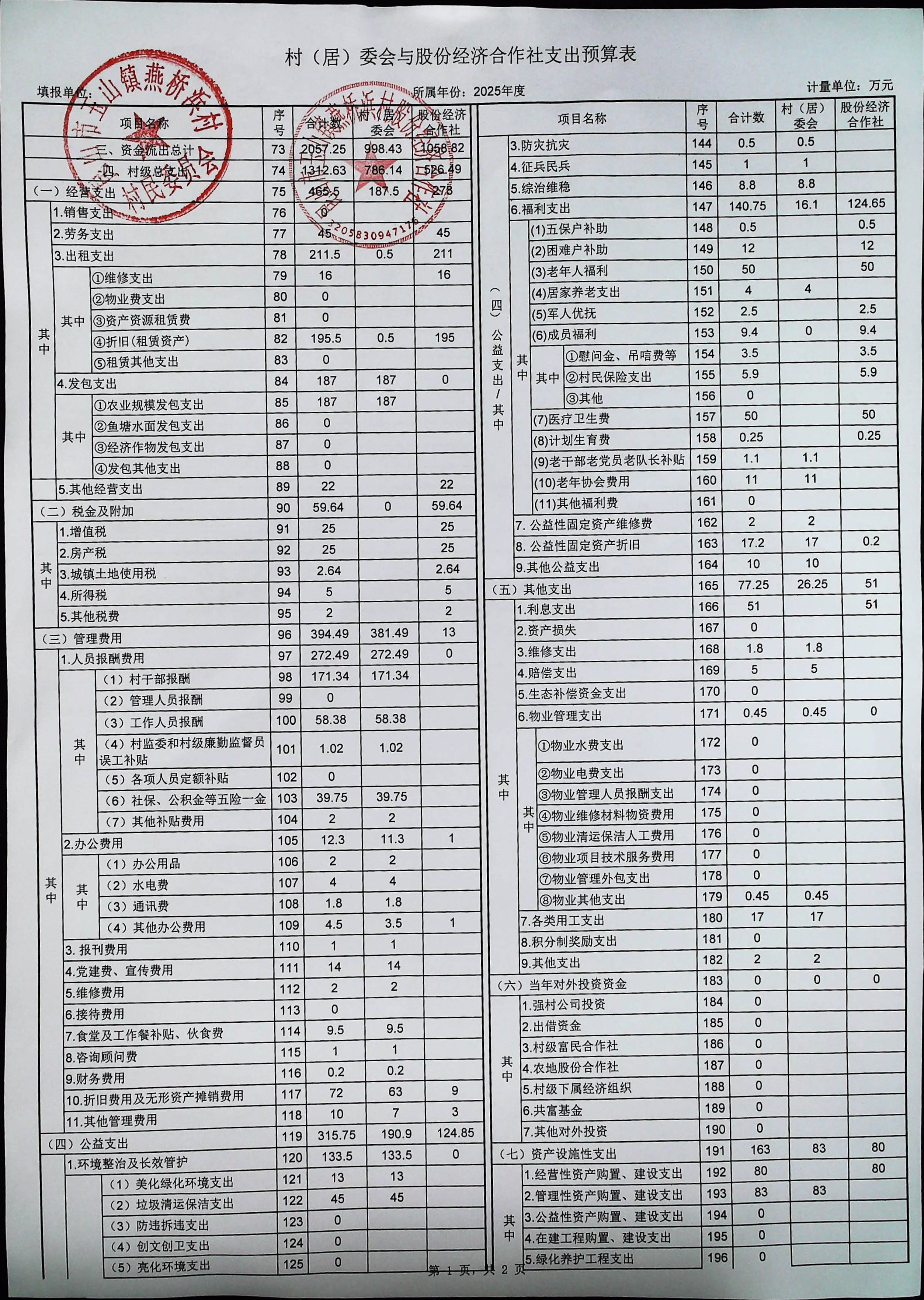 燕橋浜村2024年收支決算及2025年度收支預(yù)算