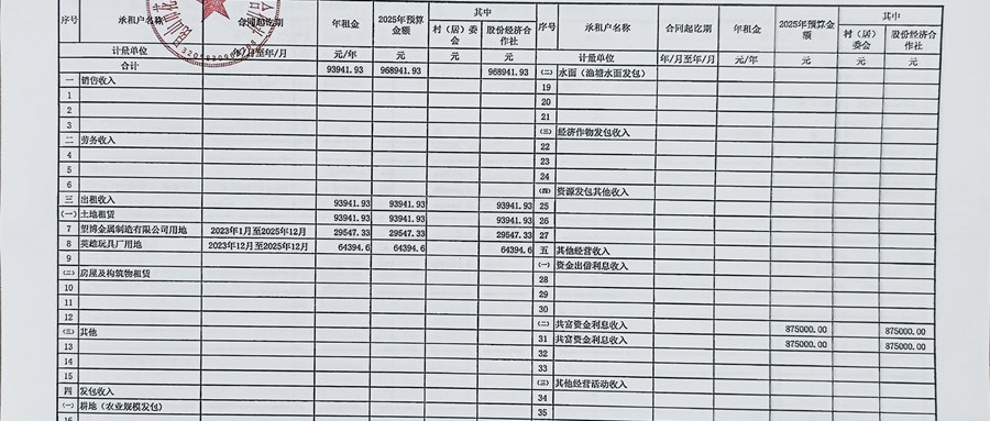 2025年星浜村股份經(jīng)濟合作社資金收支預(yù)算