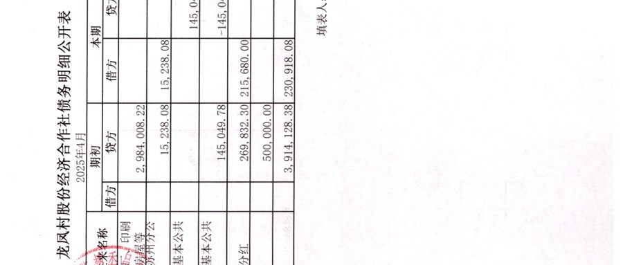 龍鳳村股份經(jīng)濟(jì)合作社2025年5月份財(cái)務(wù)公開