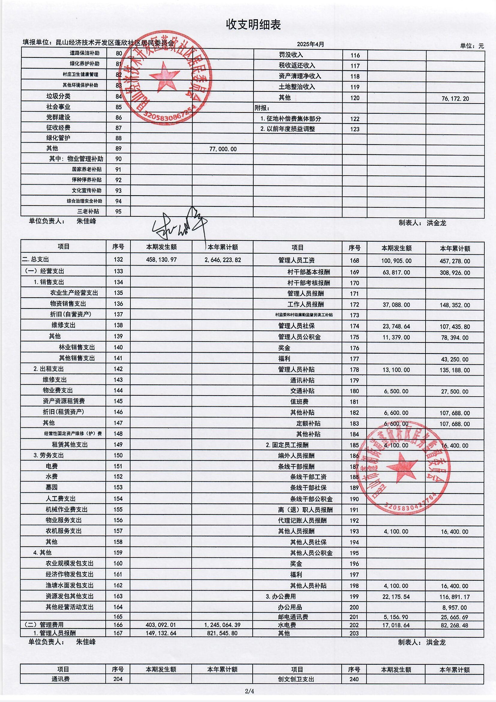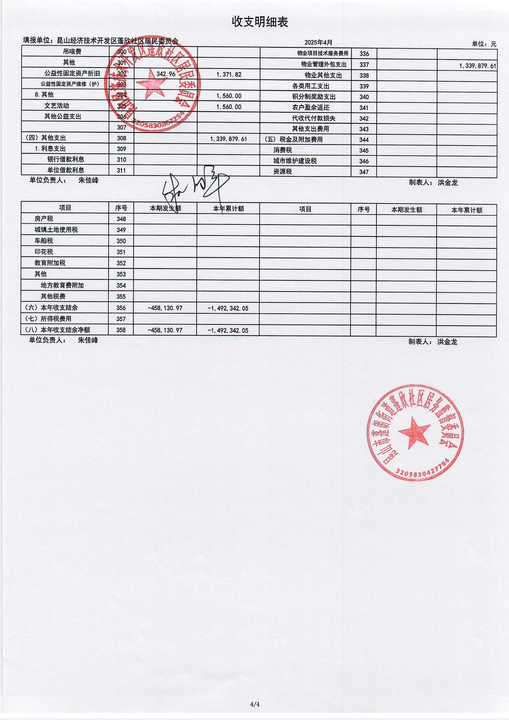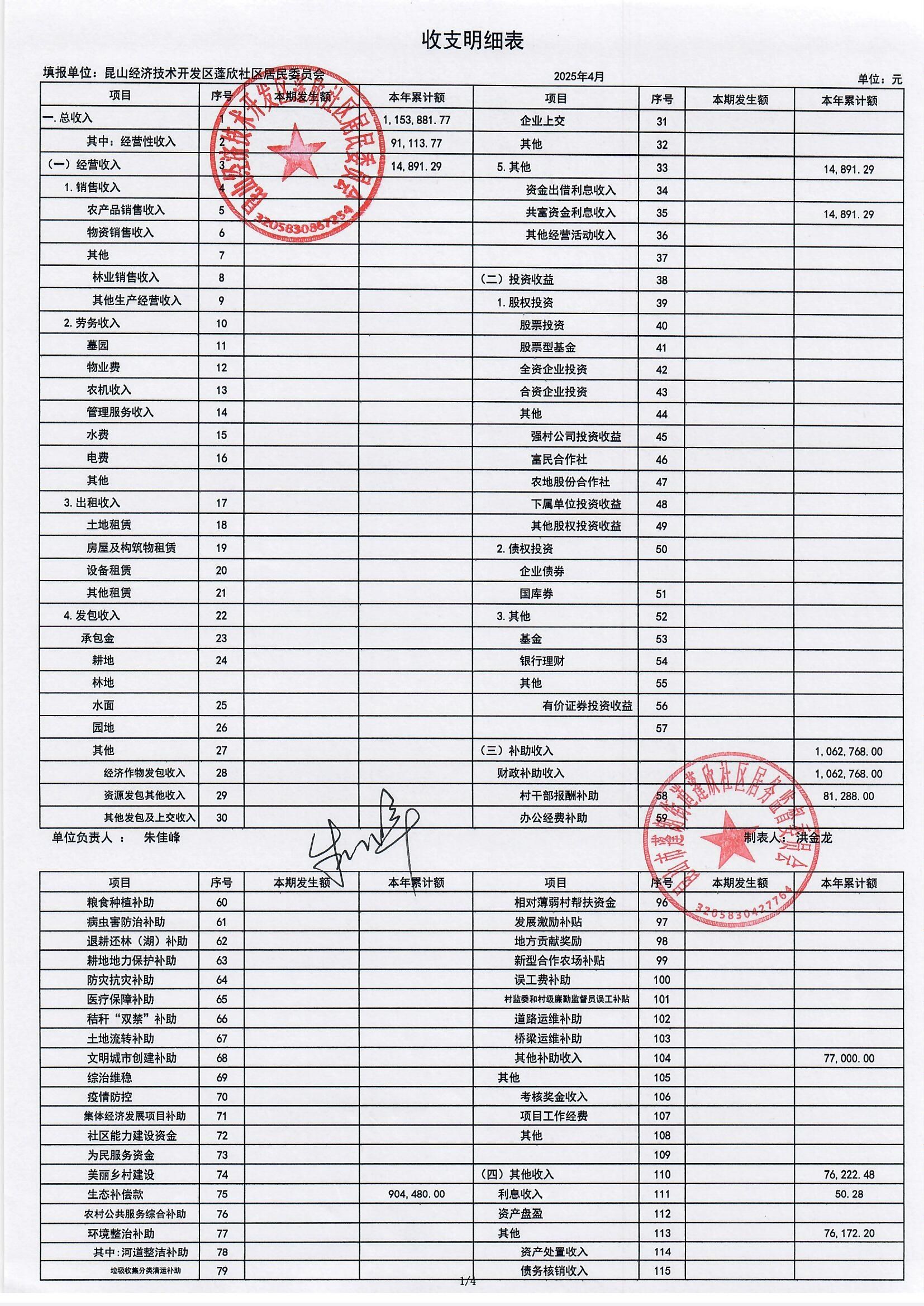 2025年4月份蓬欣社區(qū)財(cái)務(wù)公開(kāi)