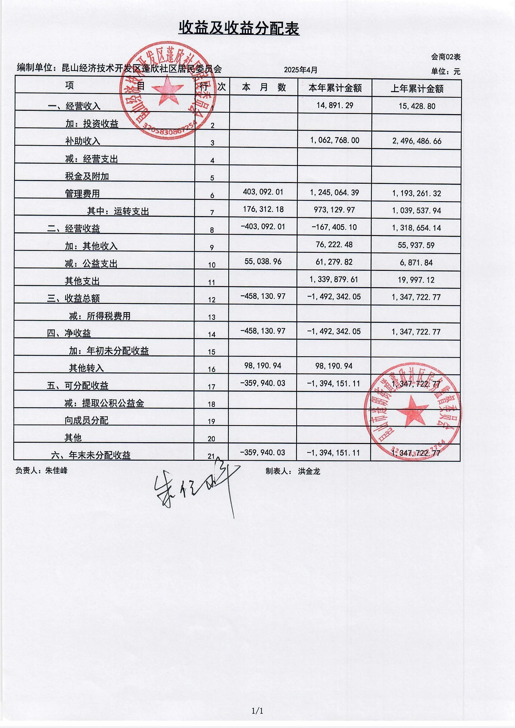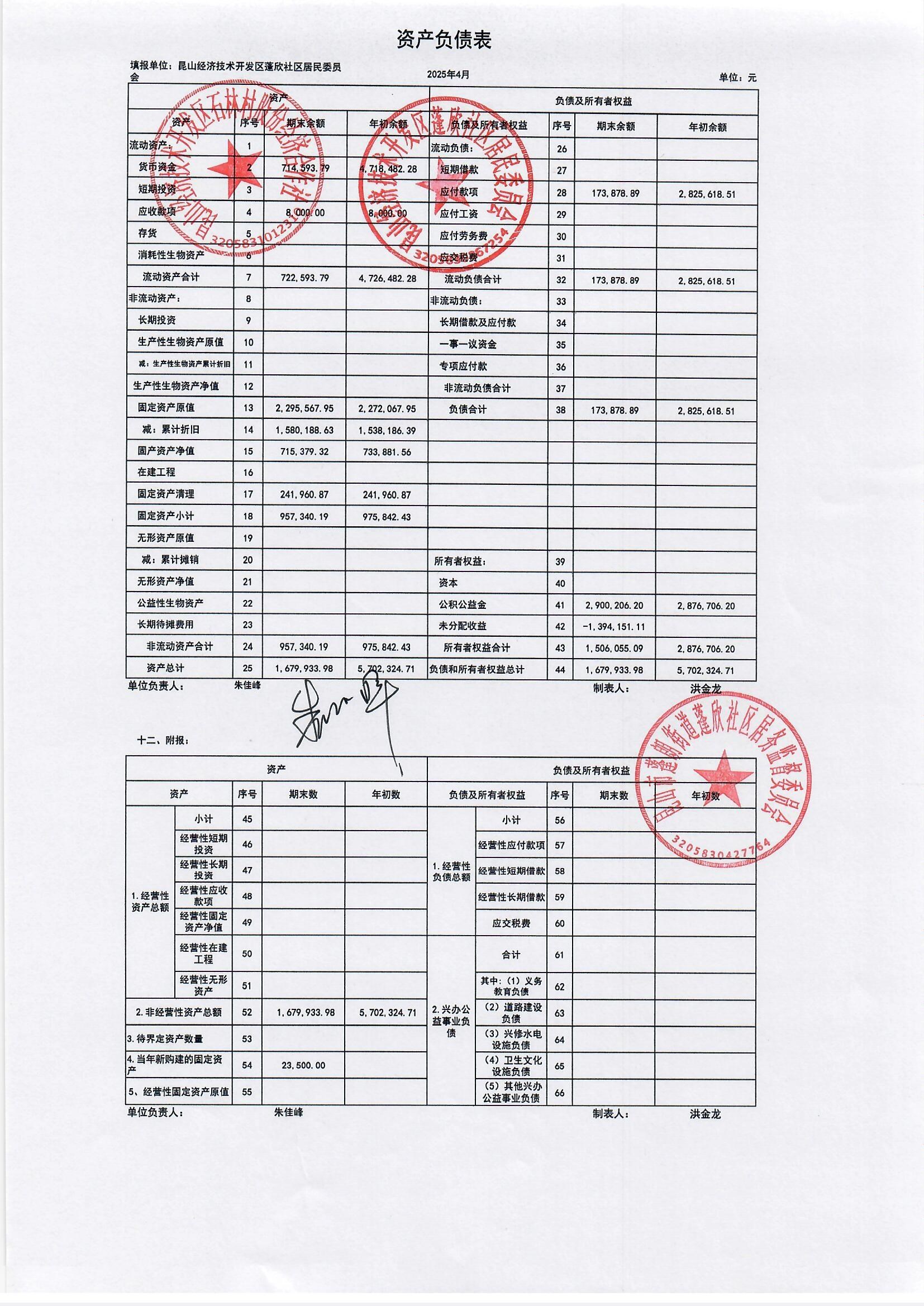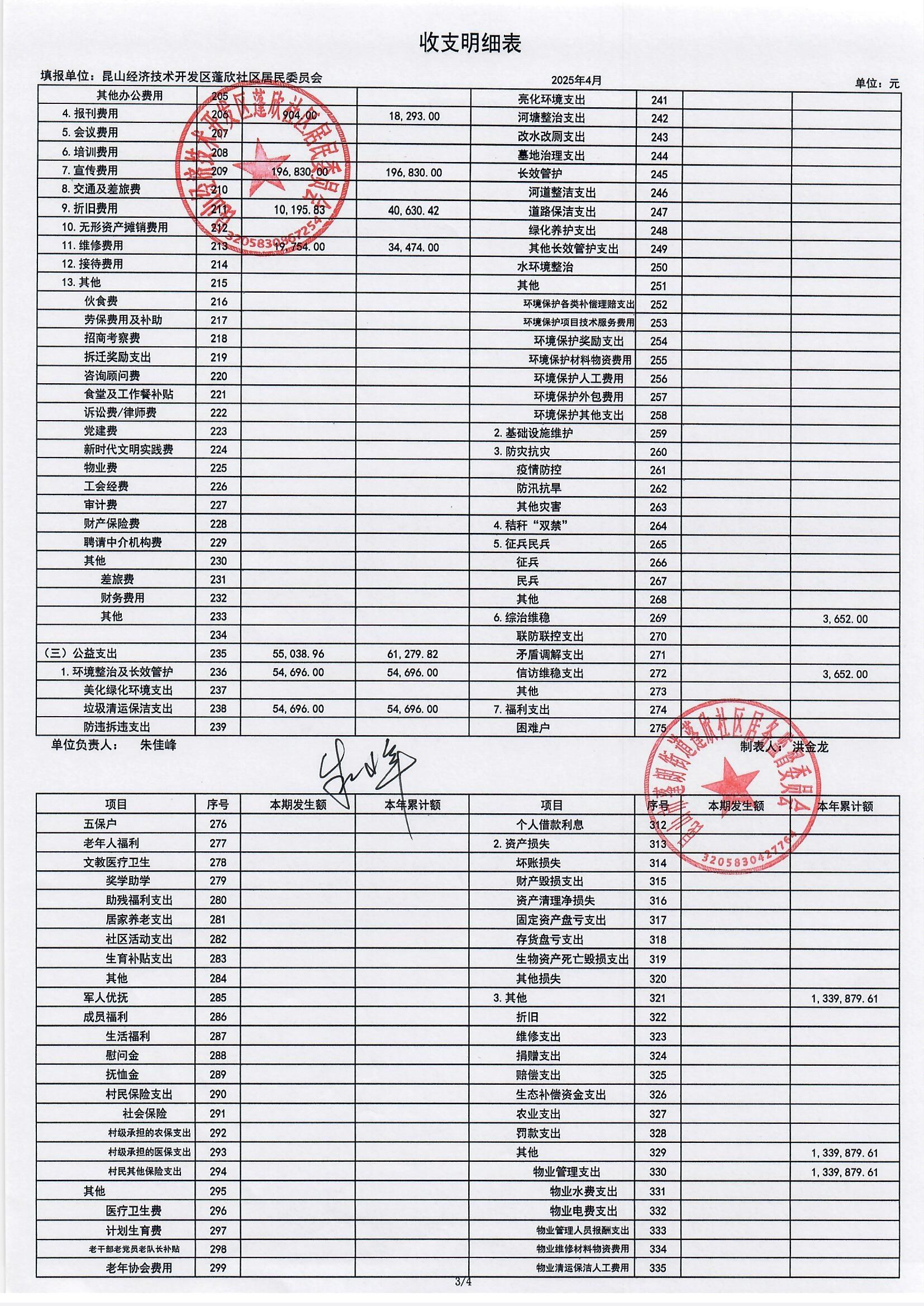 2025年4月份蓬欣社區(qū)財(cái)務(wù)公開(kāi)