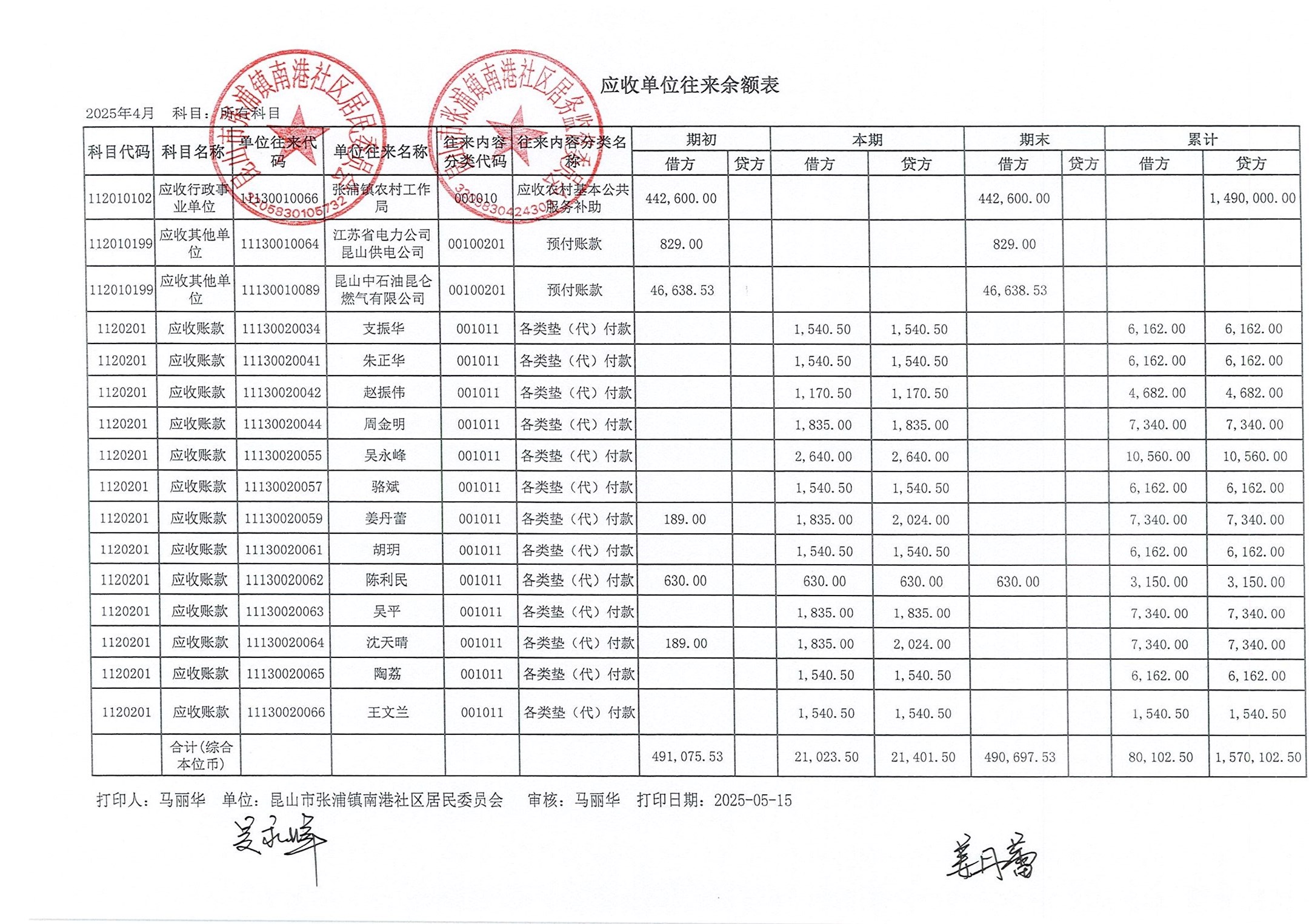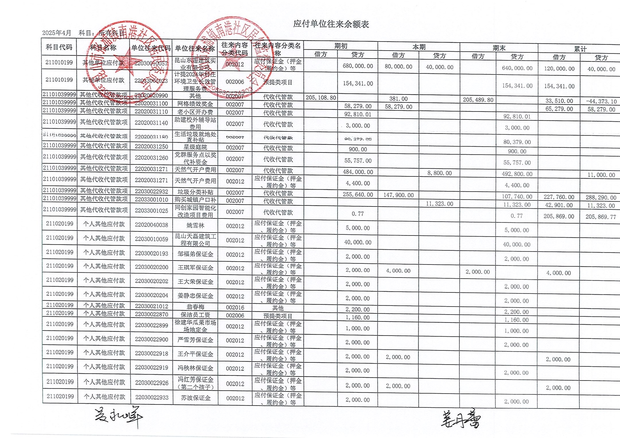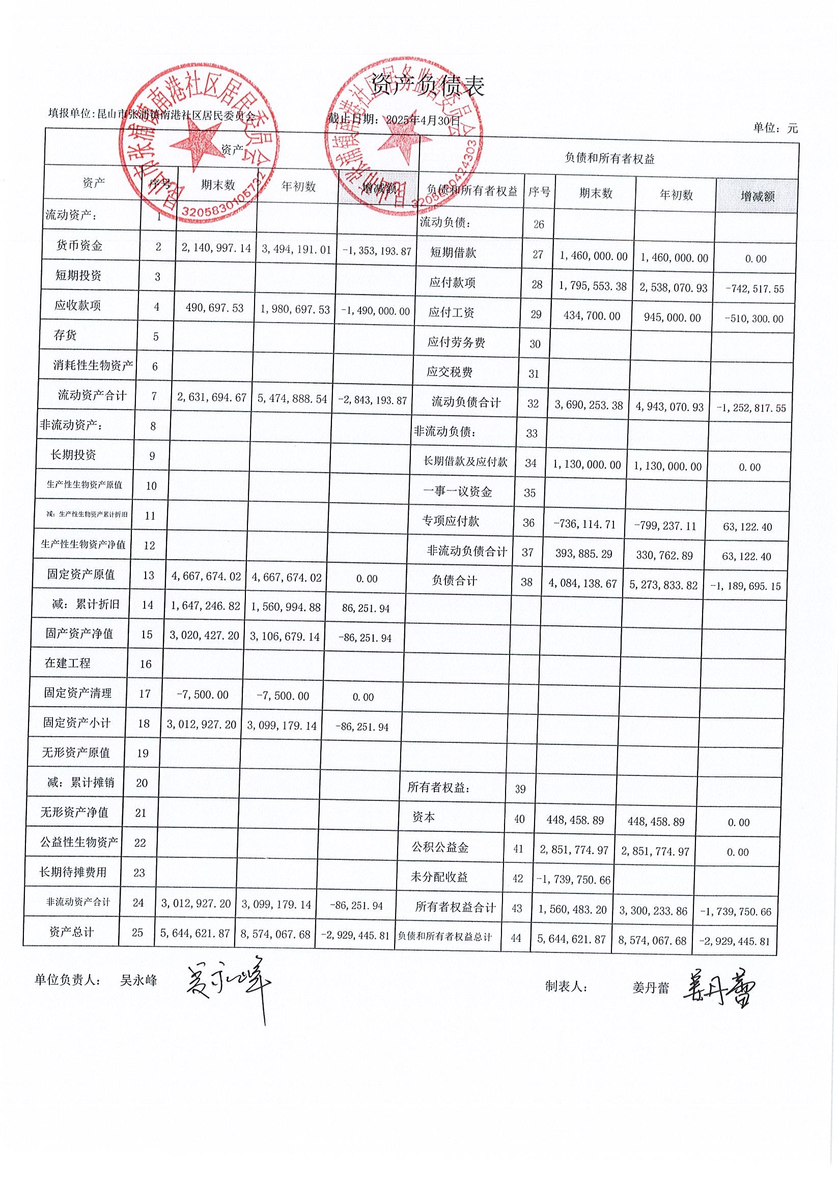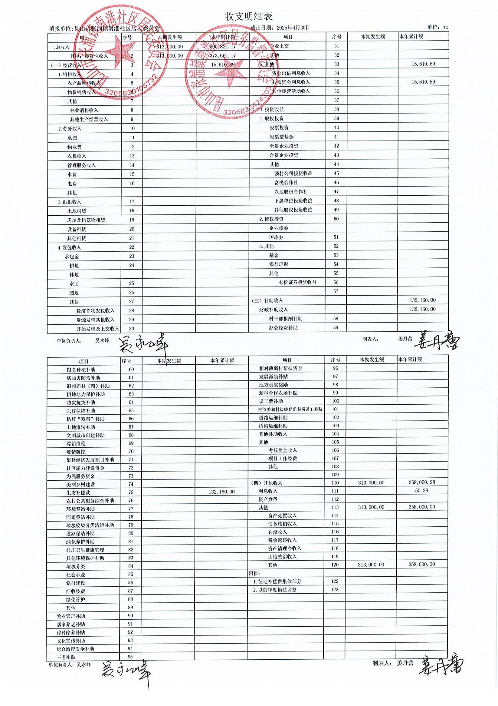 南港社區(qū)居委會2025年4月財務公開(定期公開)