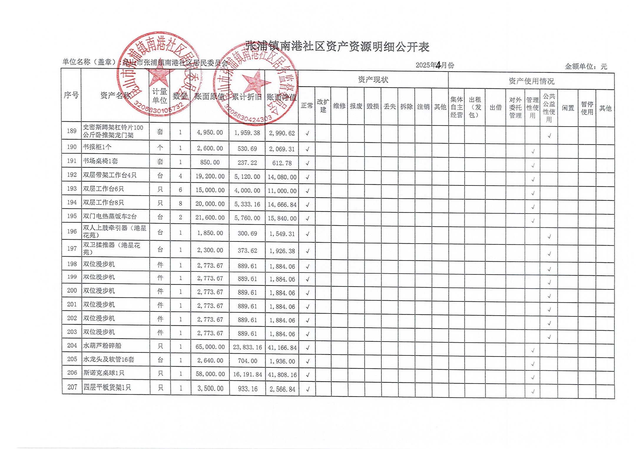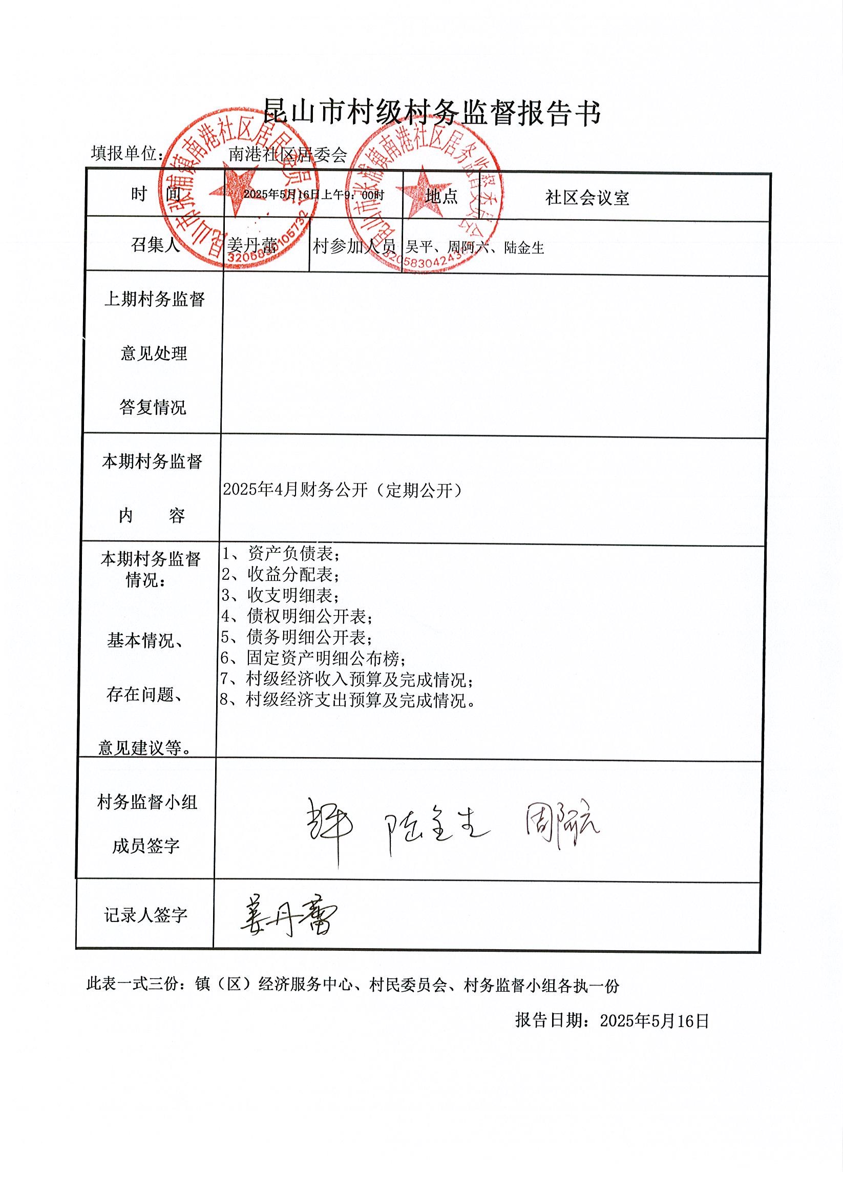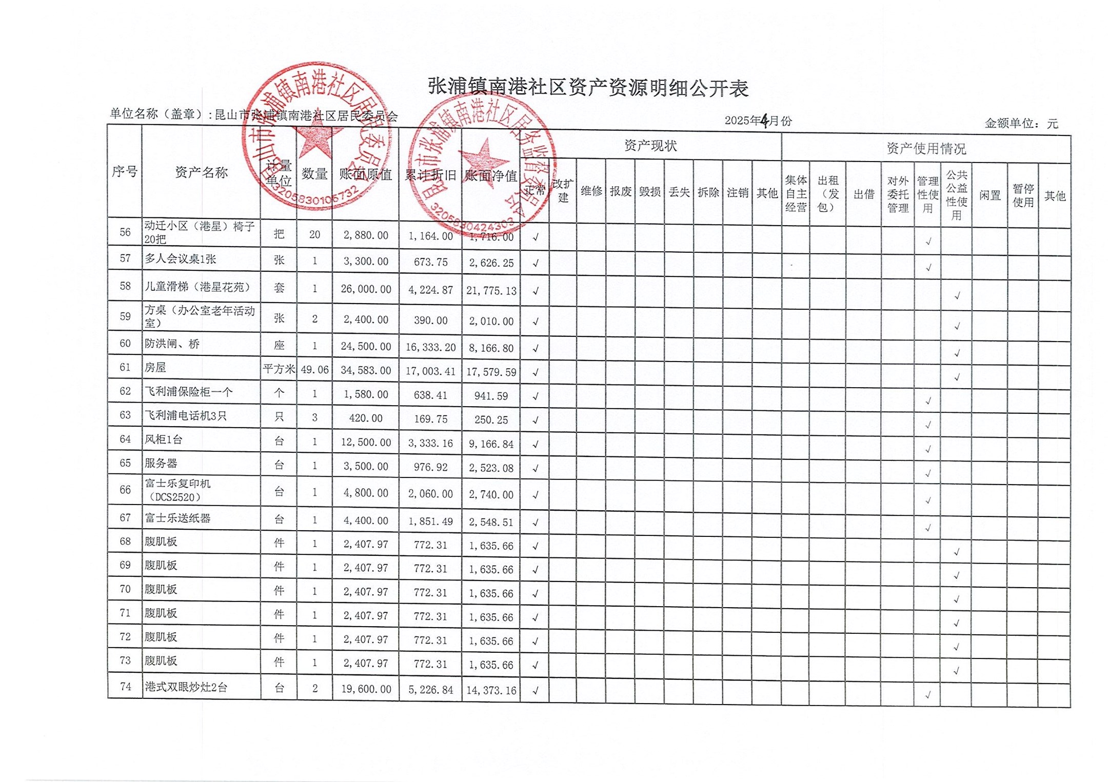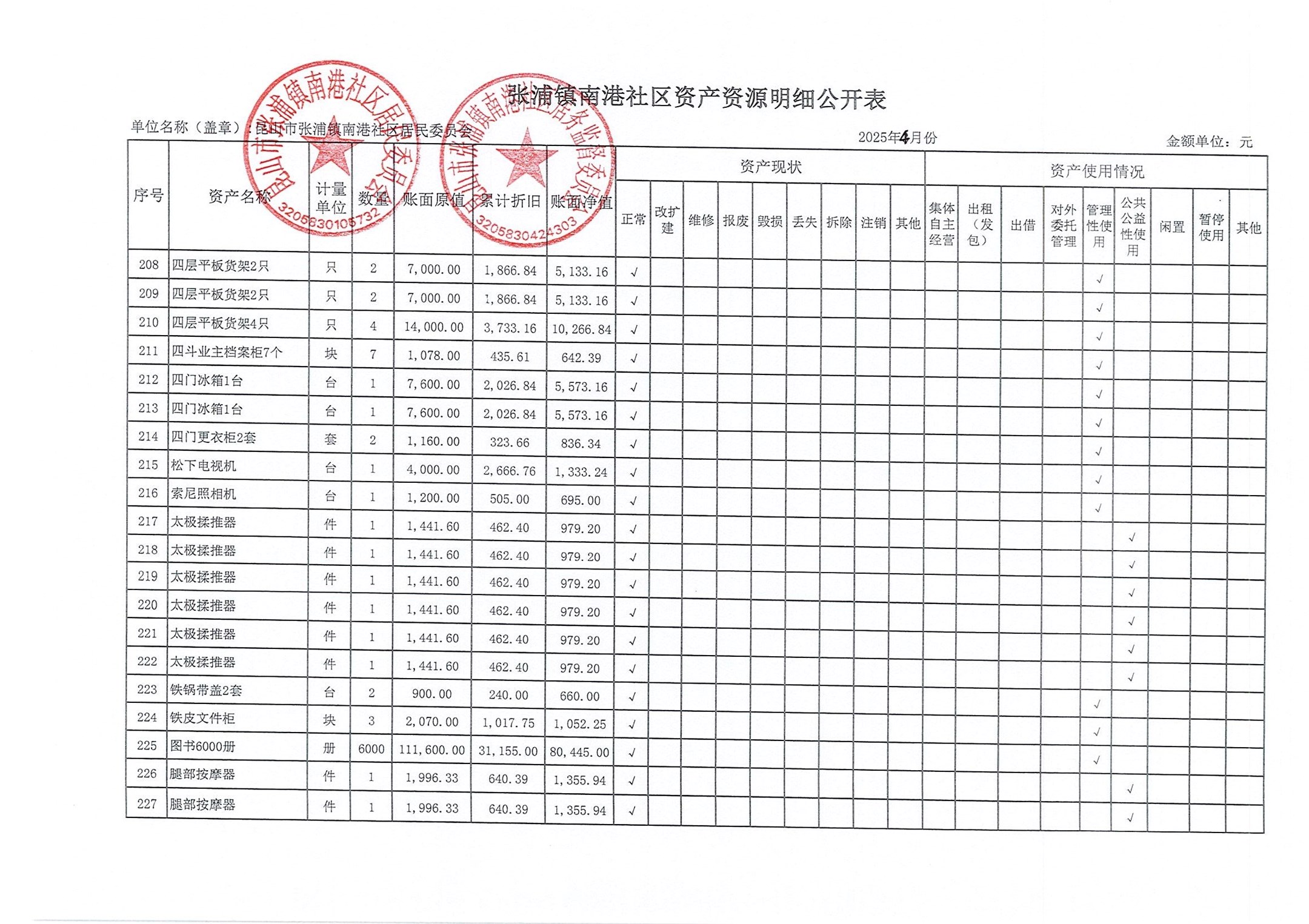 南港社區(qū)居委會2025年4月財務公開(定期公開)