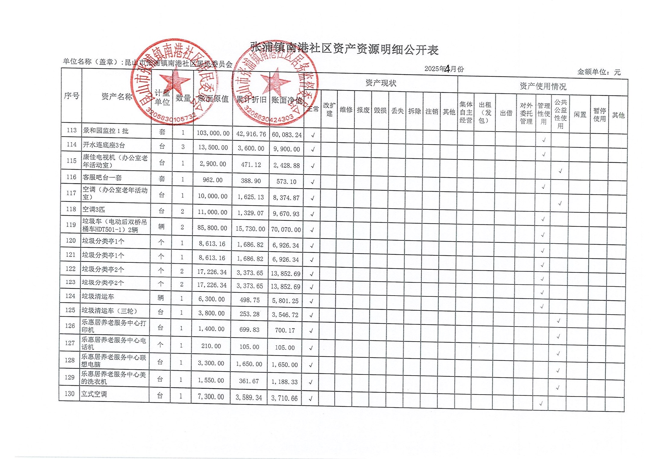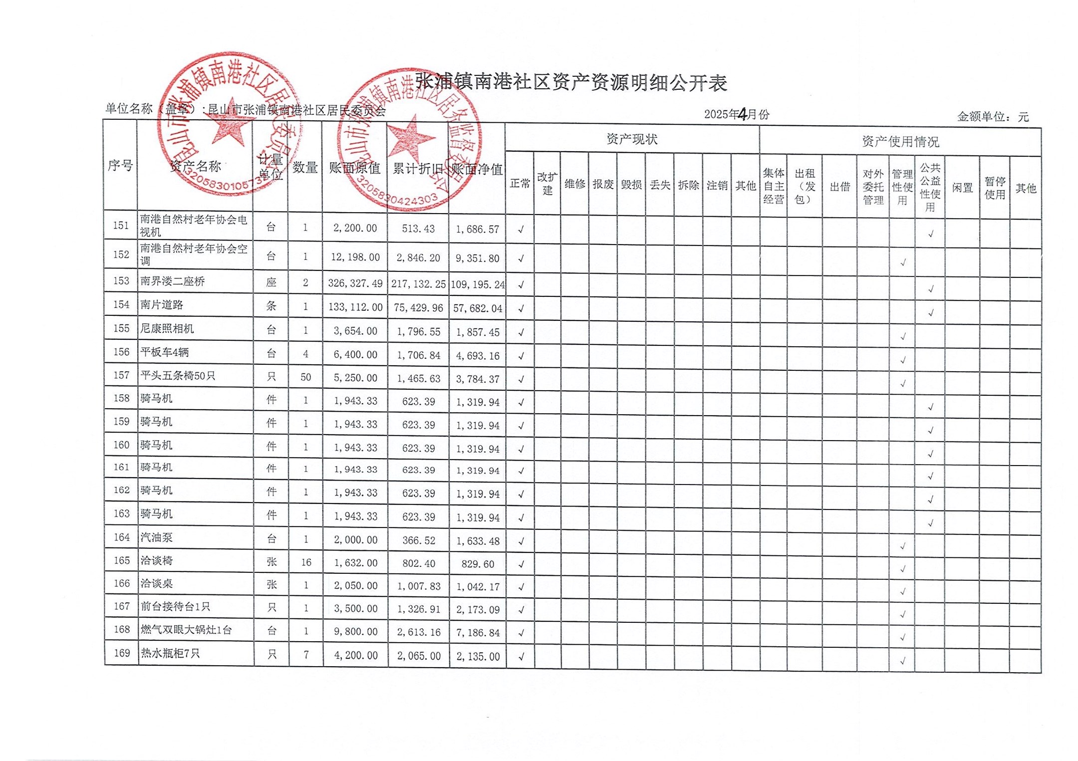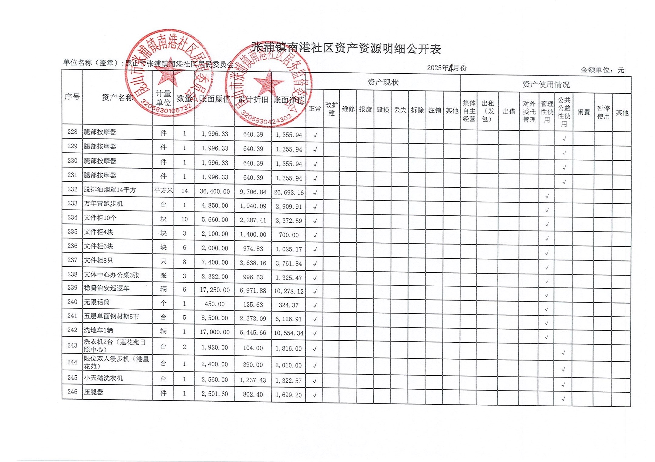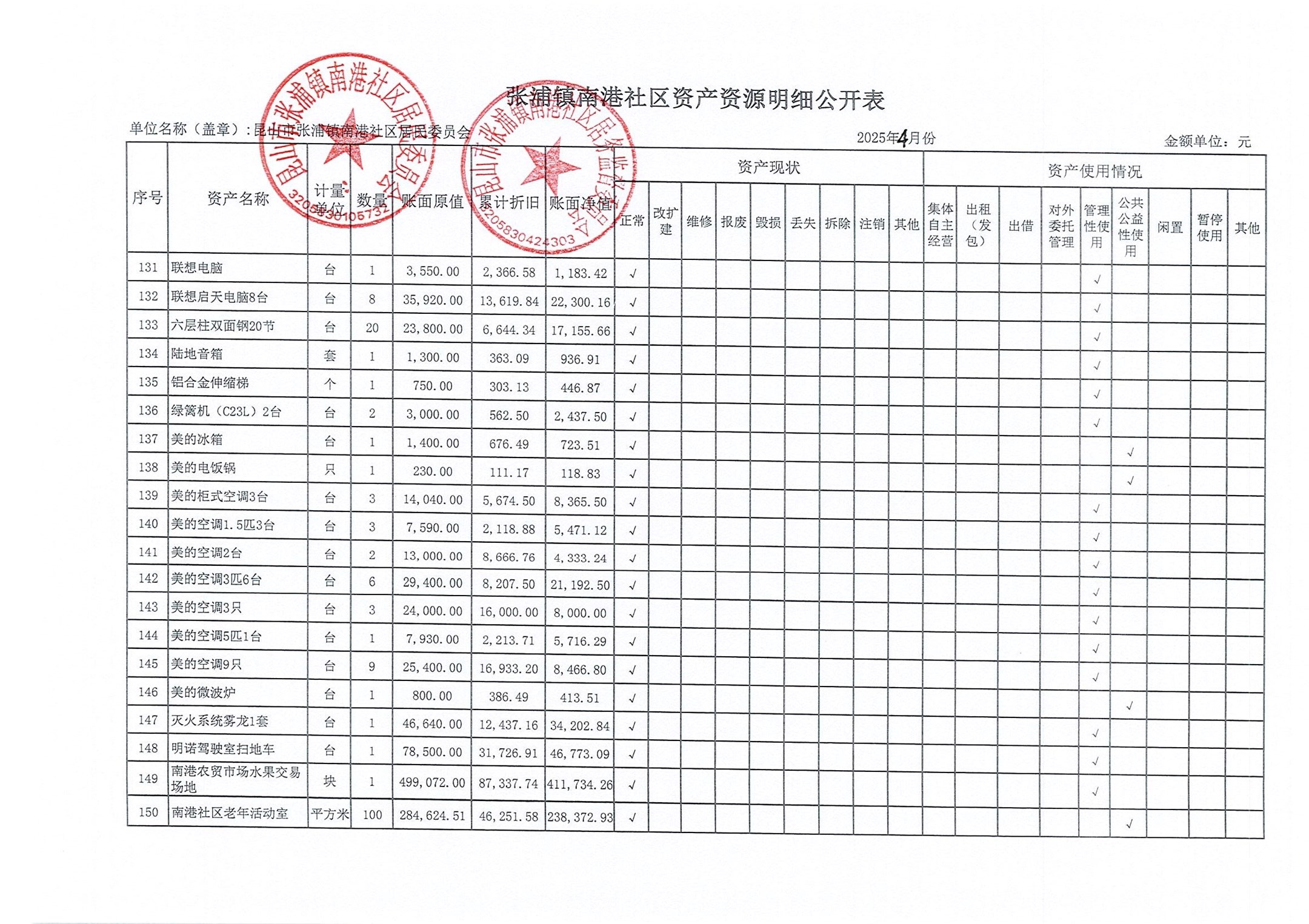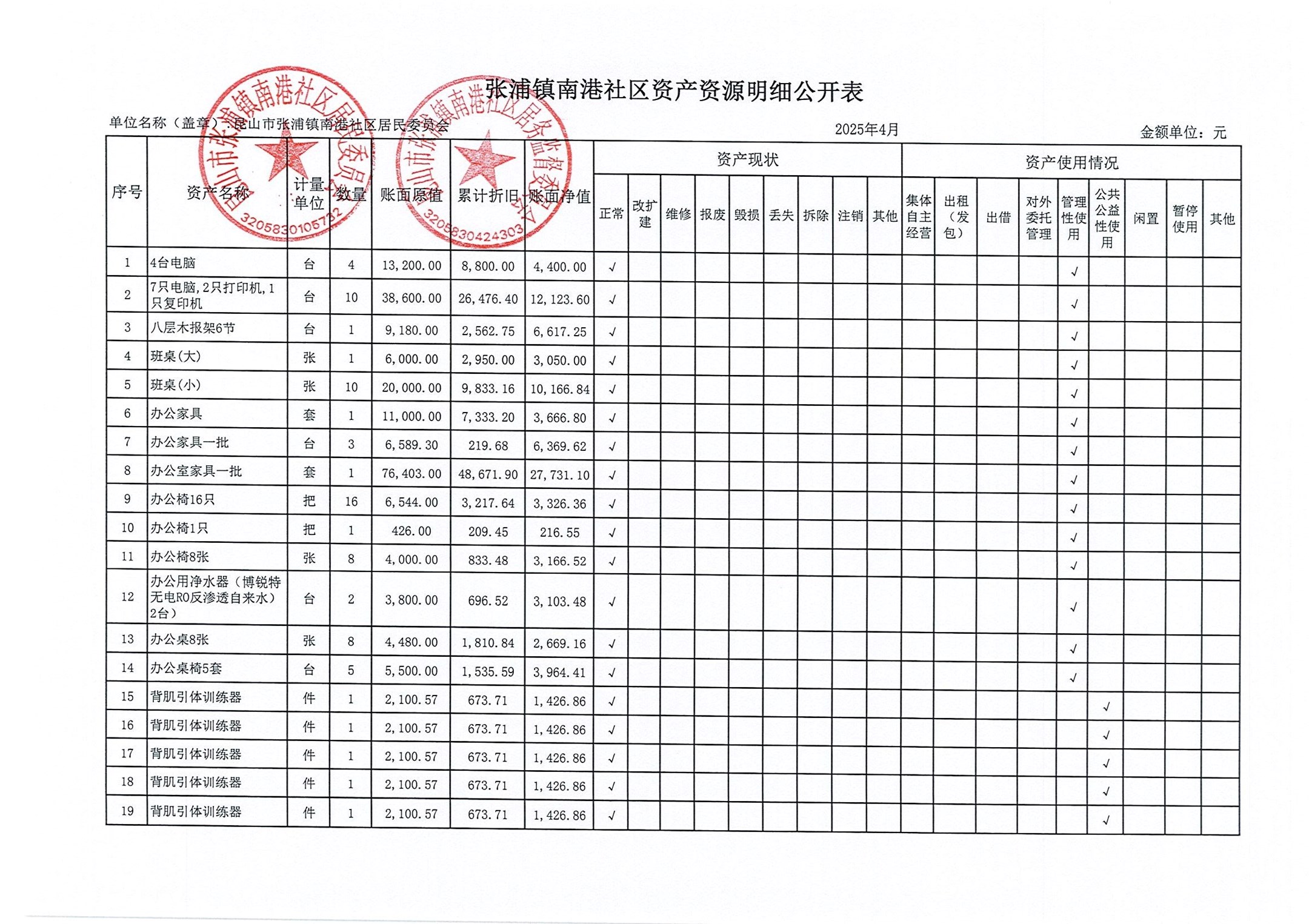南港社區(qū)居委會2025年4月財務公開(定期公開)