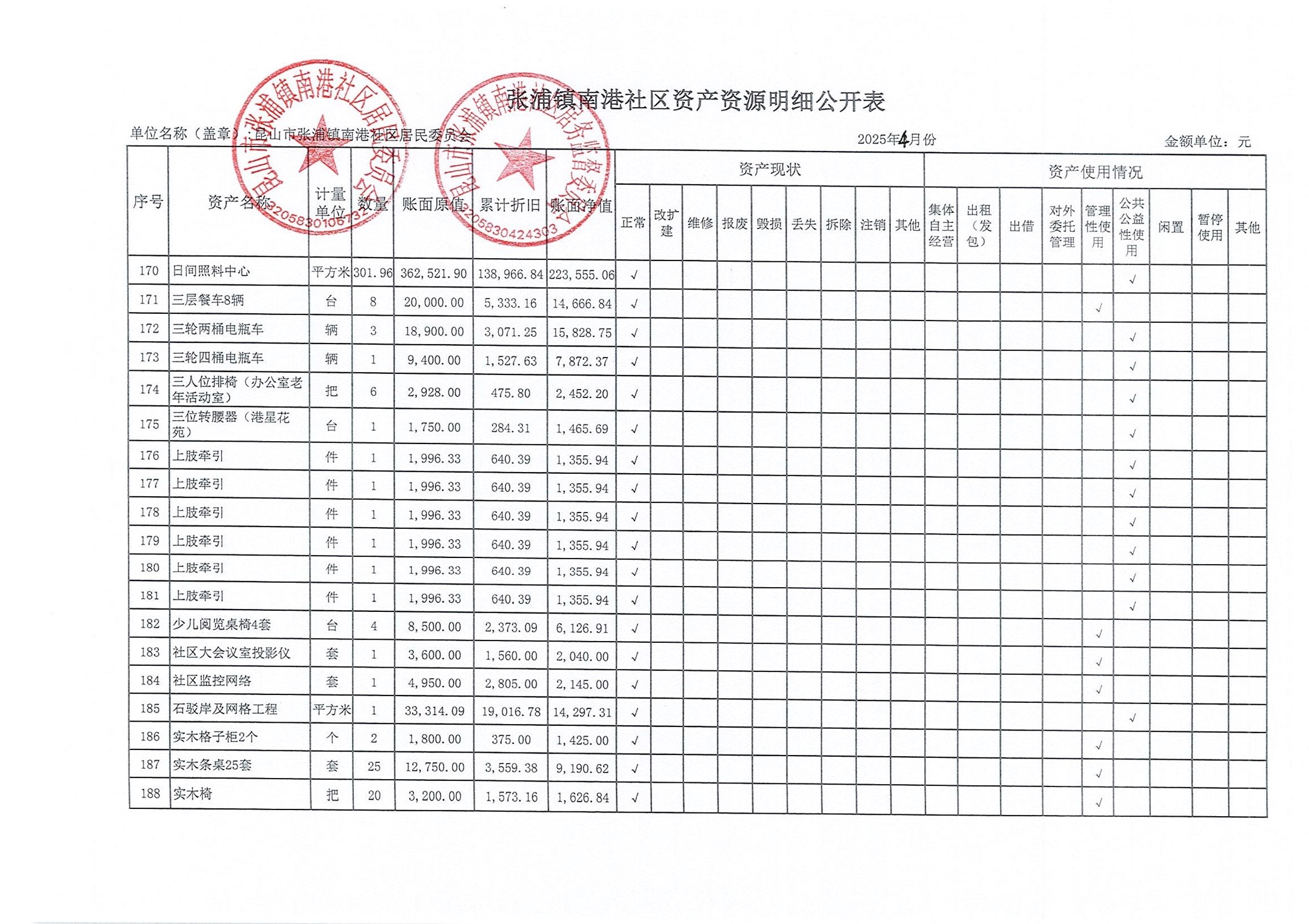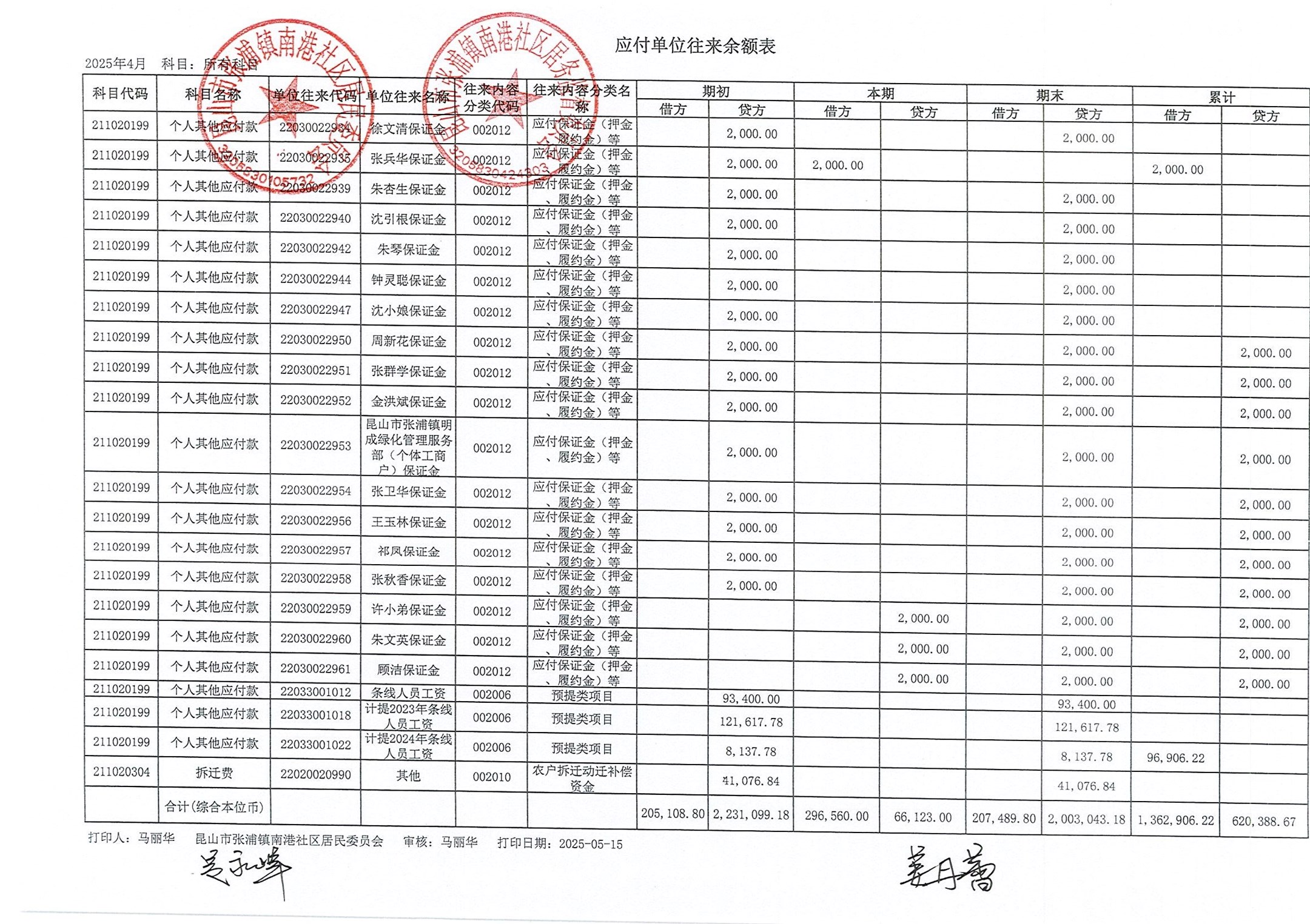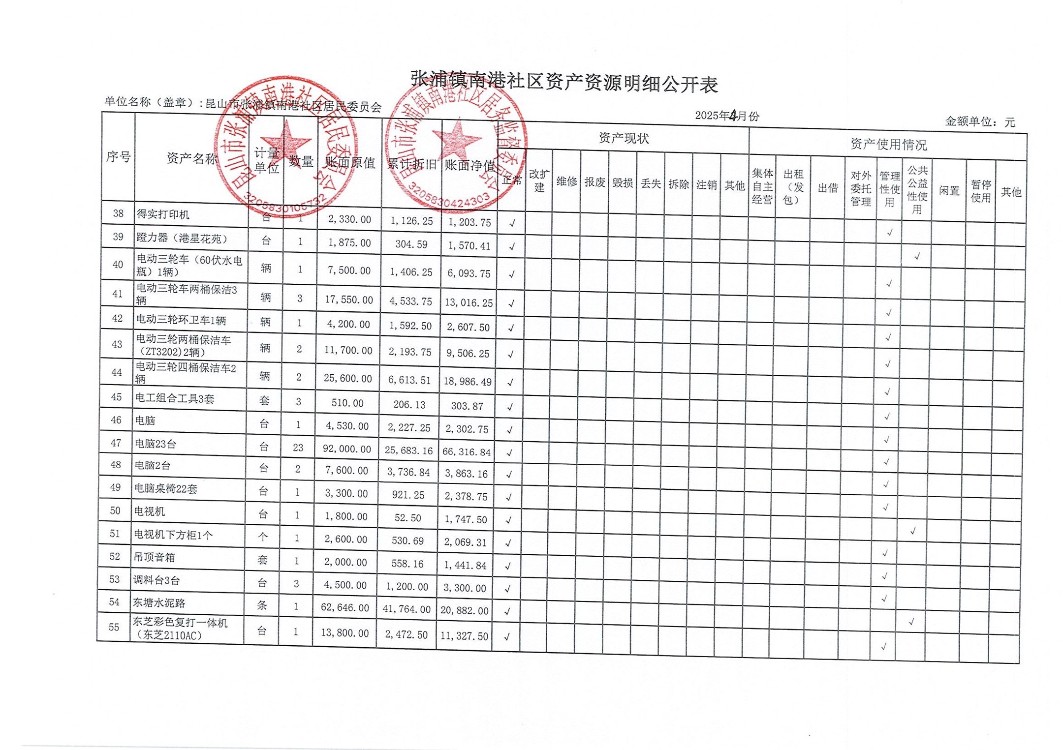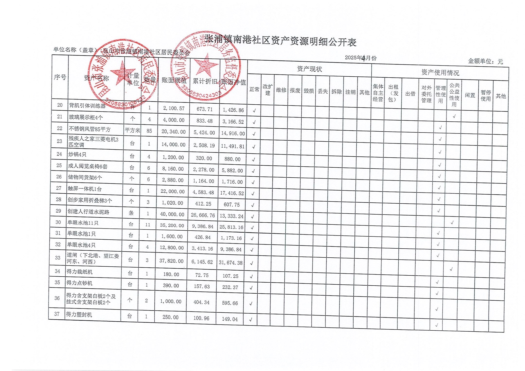 南港社區(qū)居委會2025年4月財務公開(定期公開)