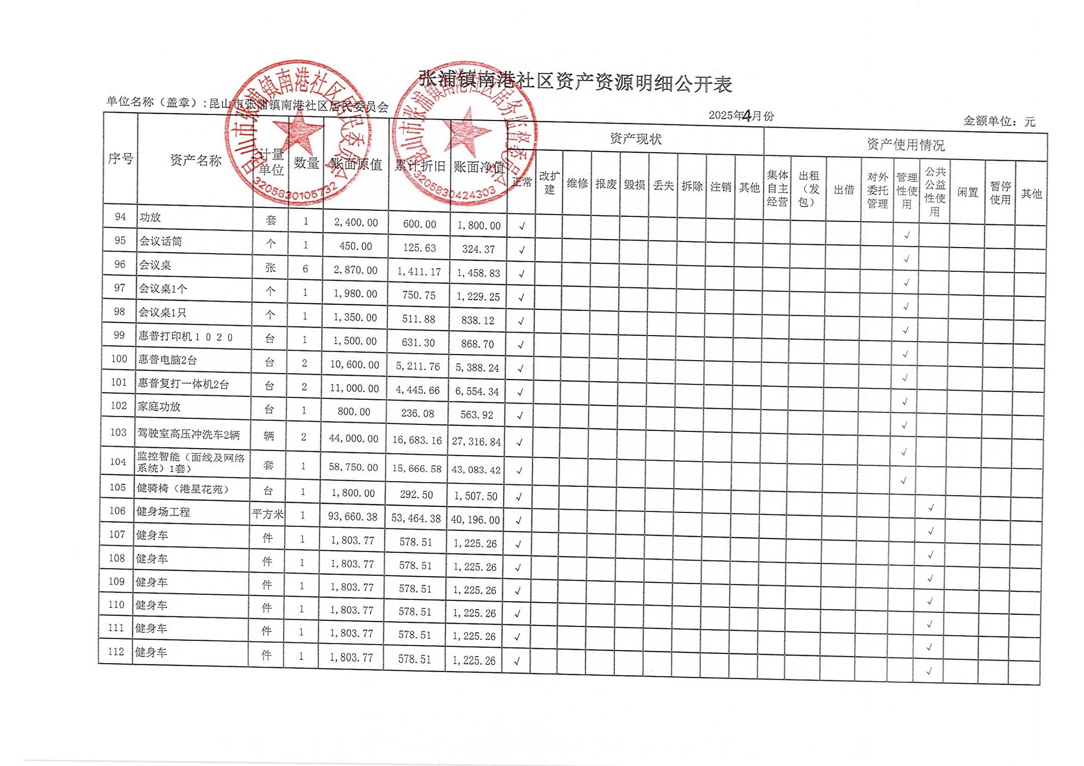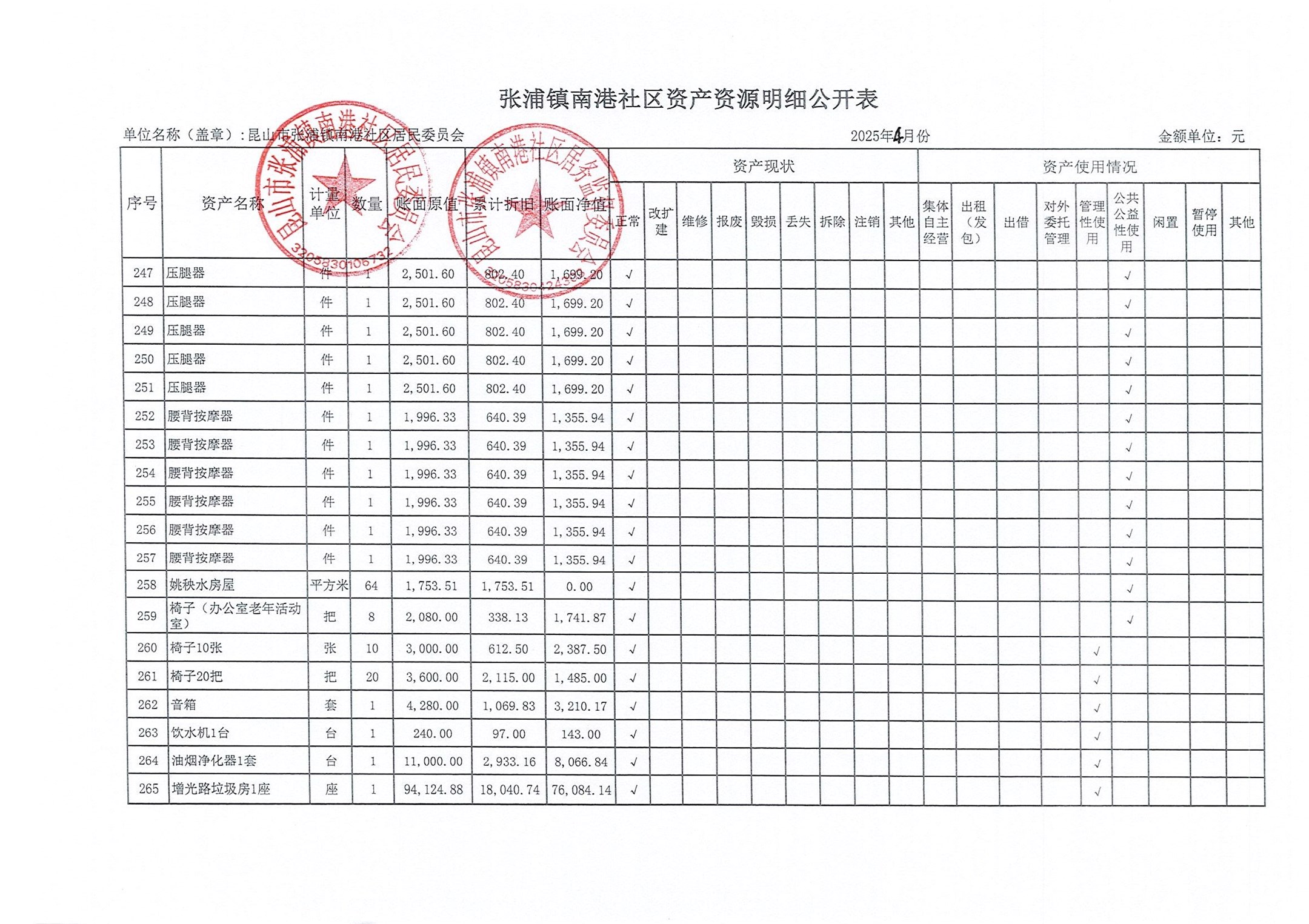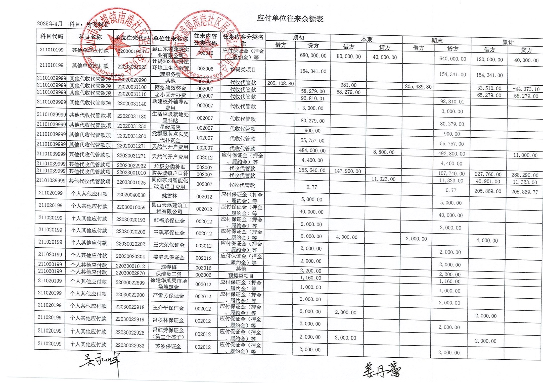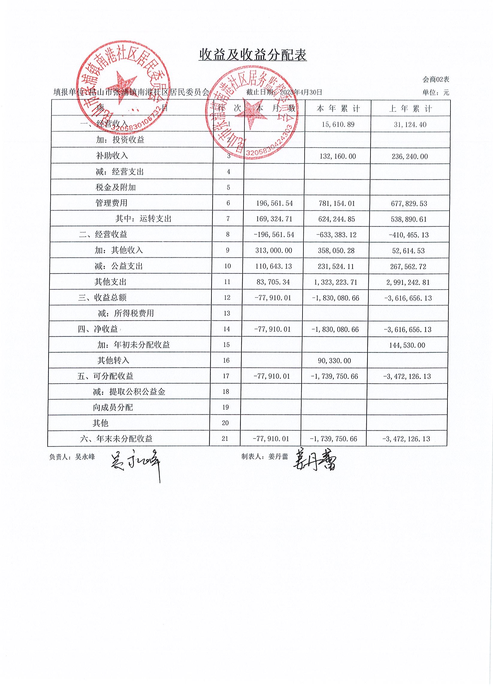 南港社區(qū)居委會2025年4月財務公開(定期公開)