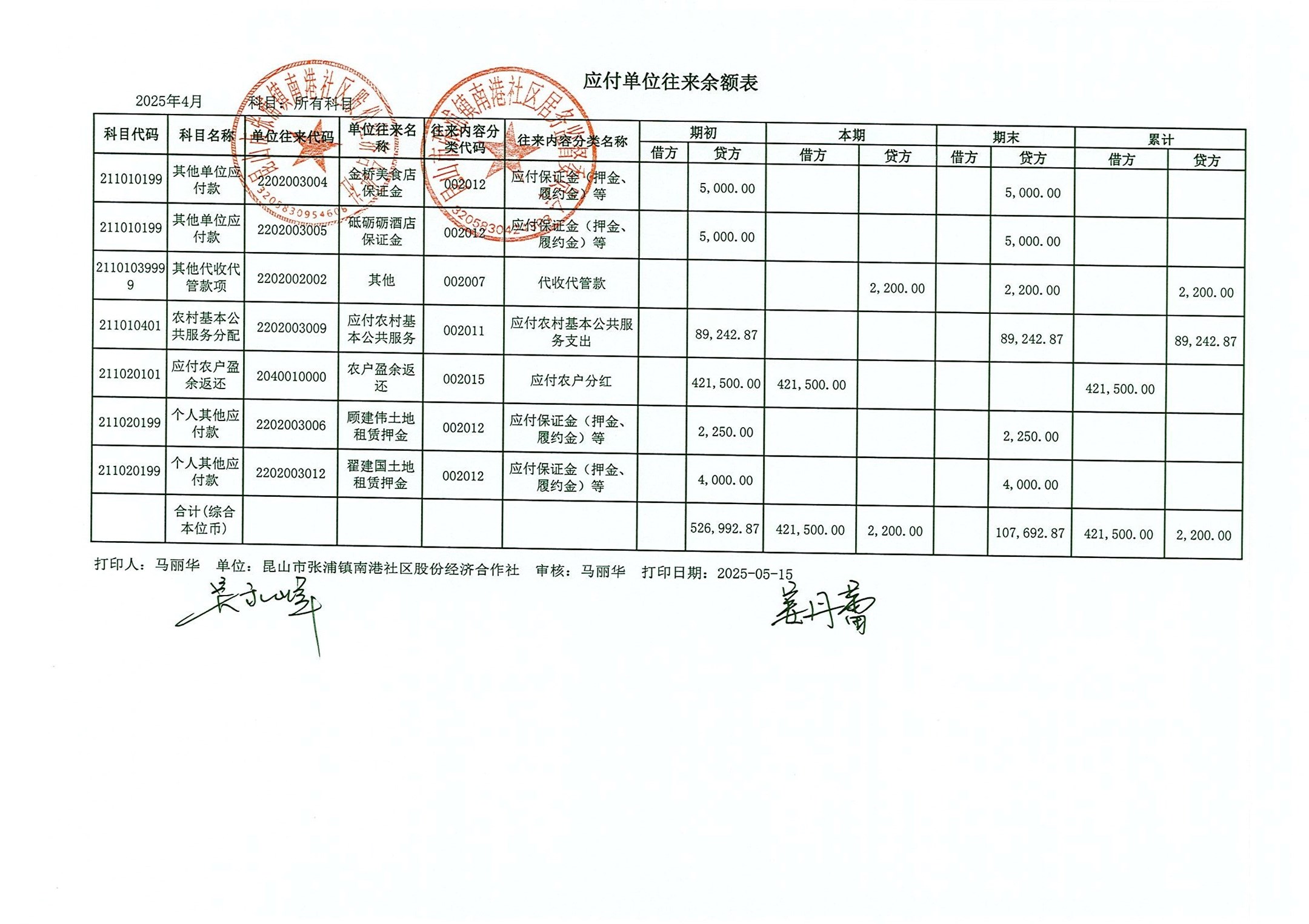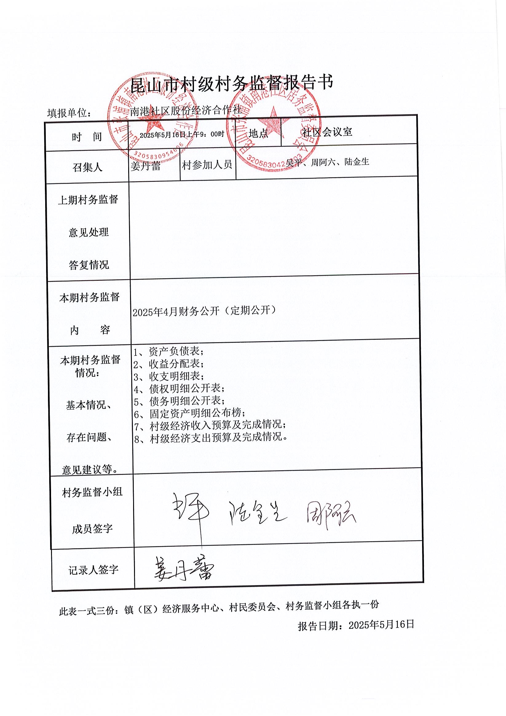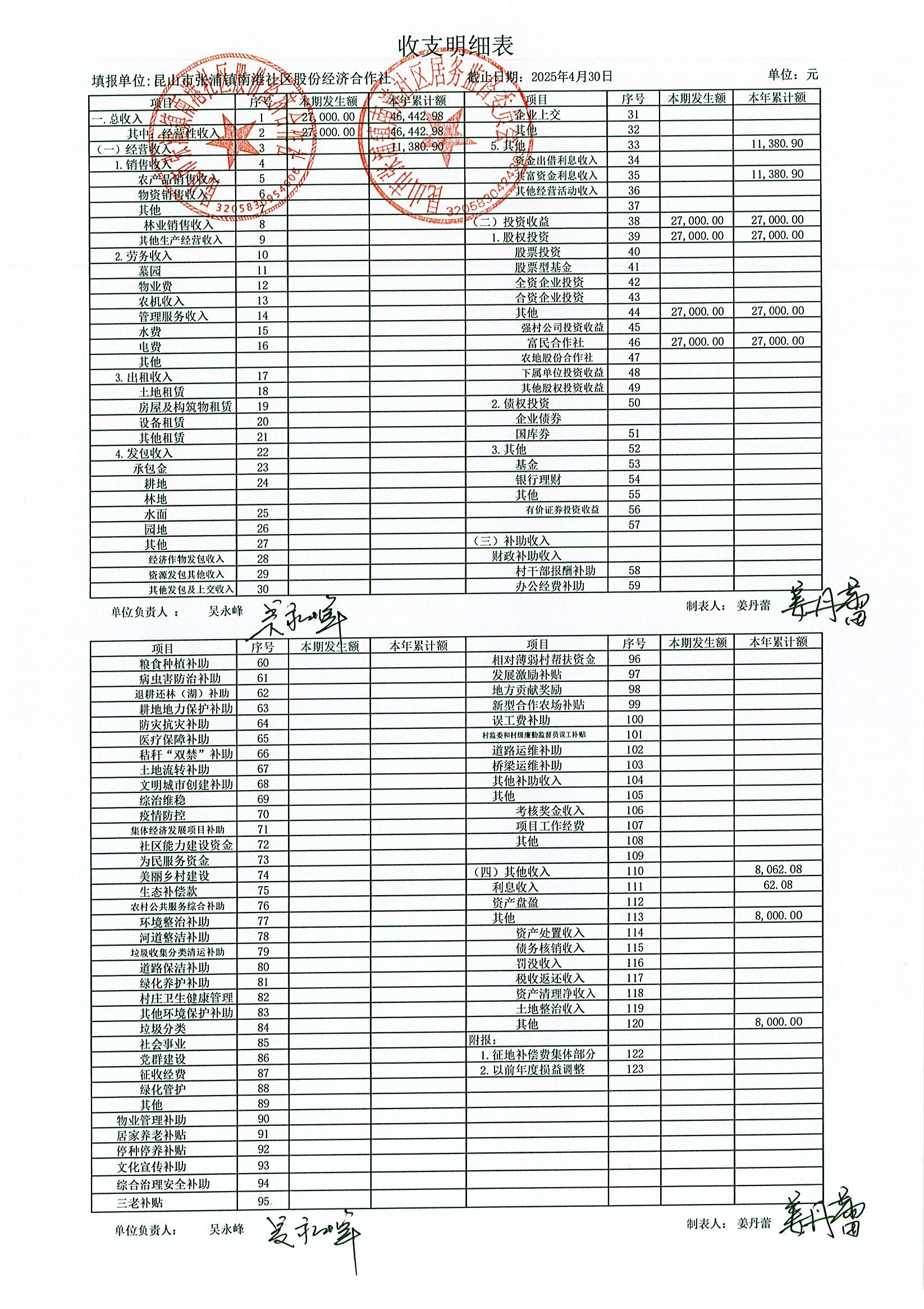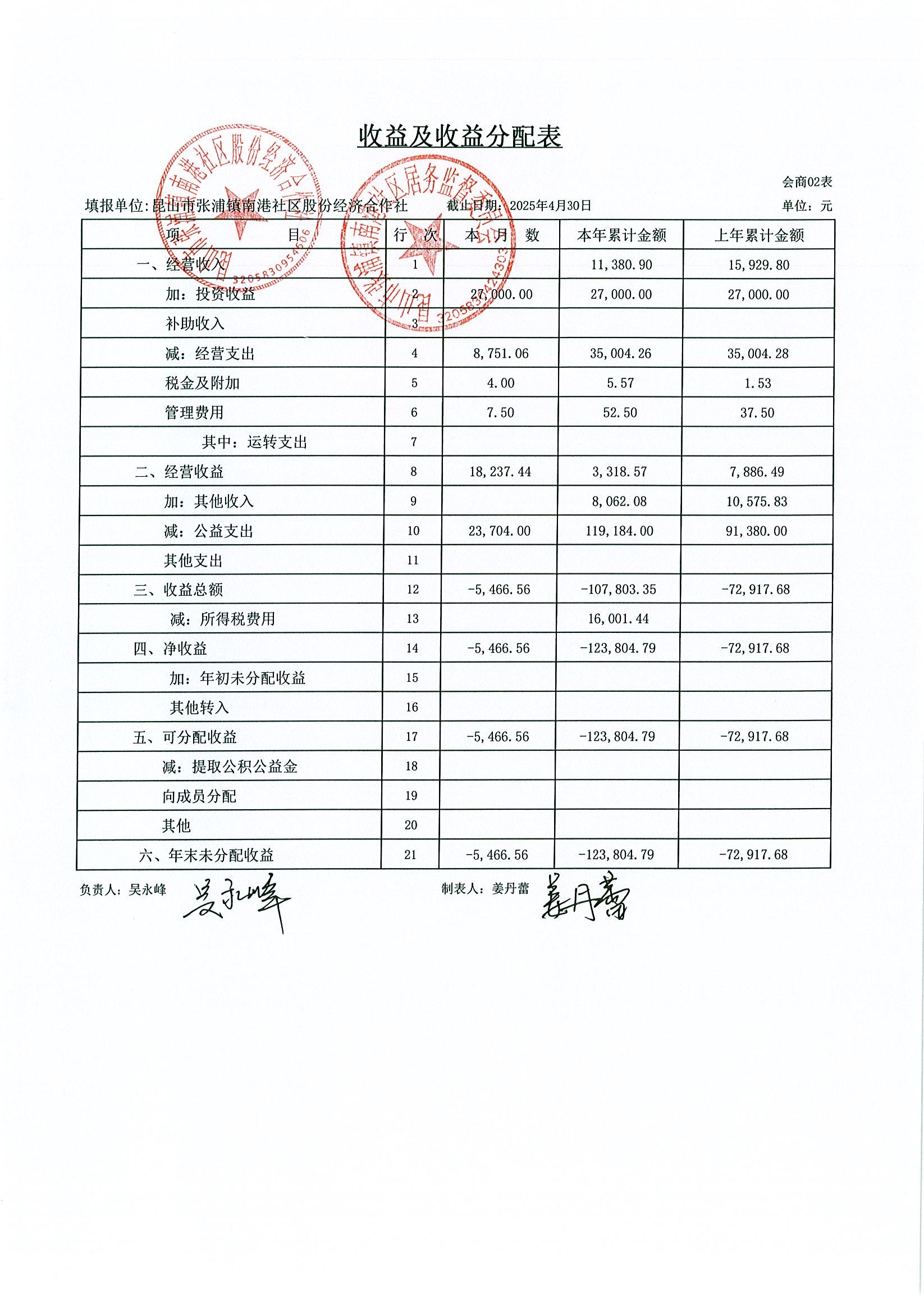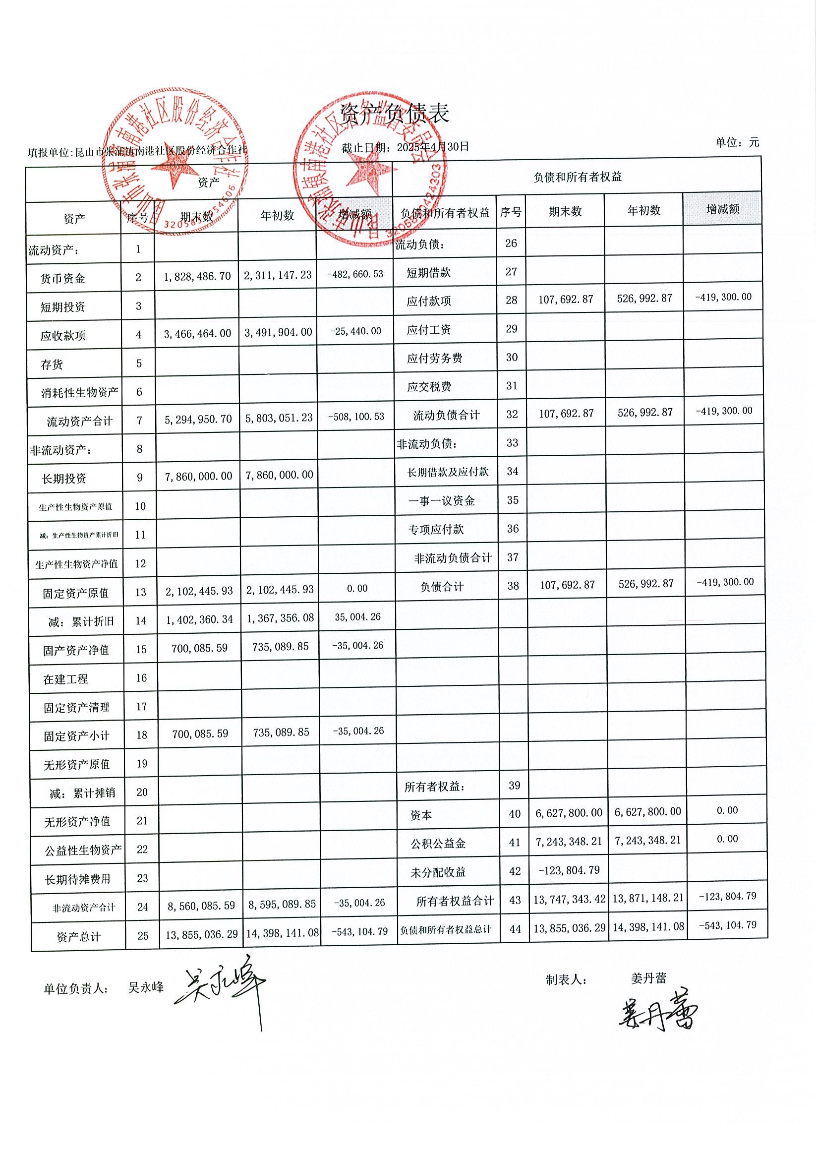 南港社區(qū)股份經(jīng)濟(jì)合作社2025年4月財務(wù)公開(定期公開)