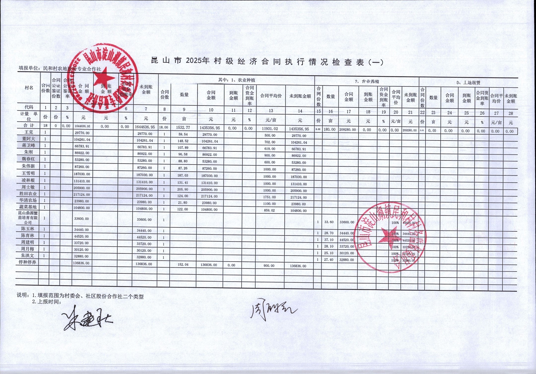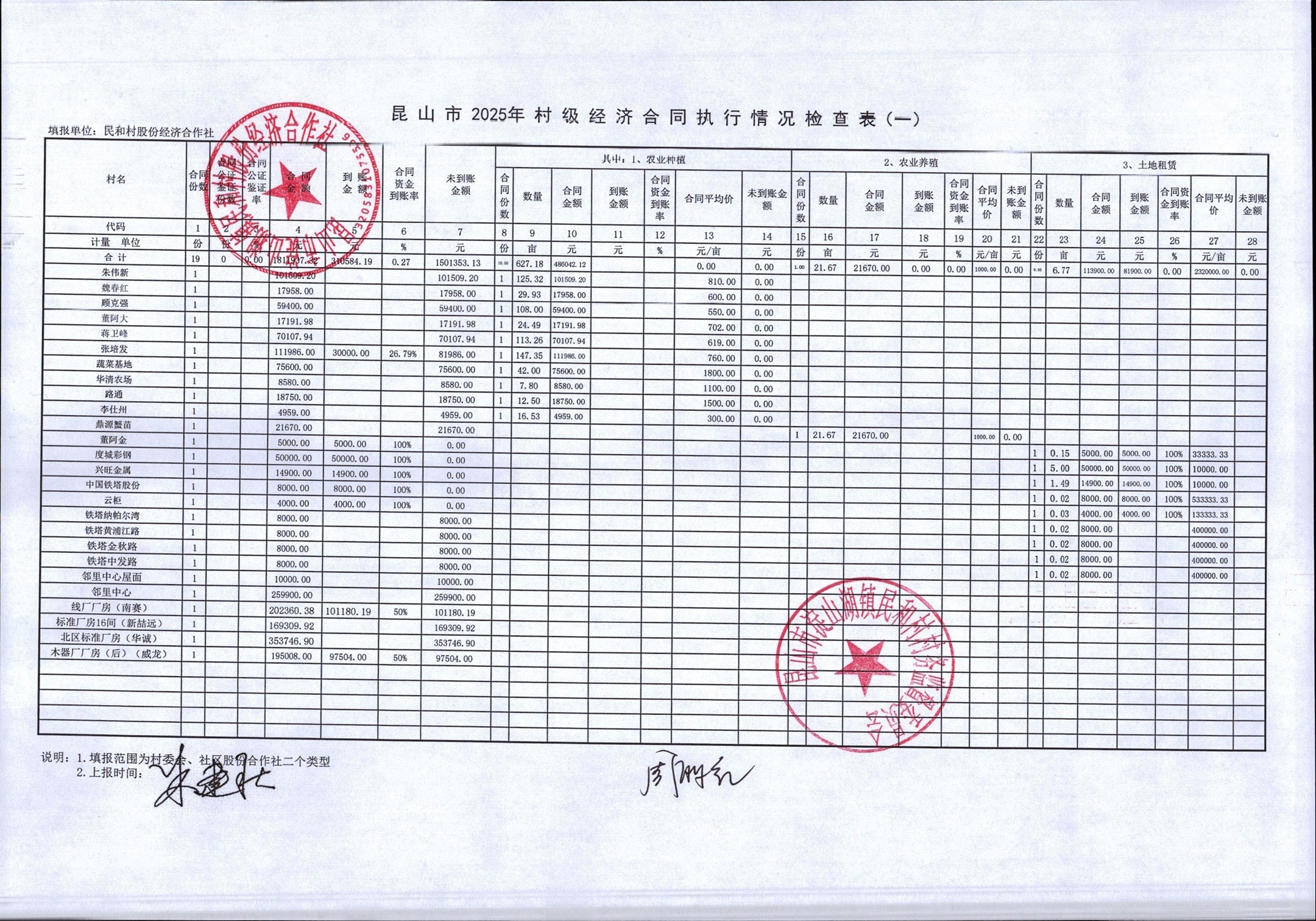 2025年第一季度民和村村級經(jīng)濟合同執(zhí)行情況表公示