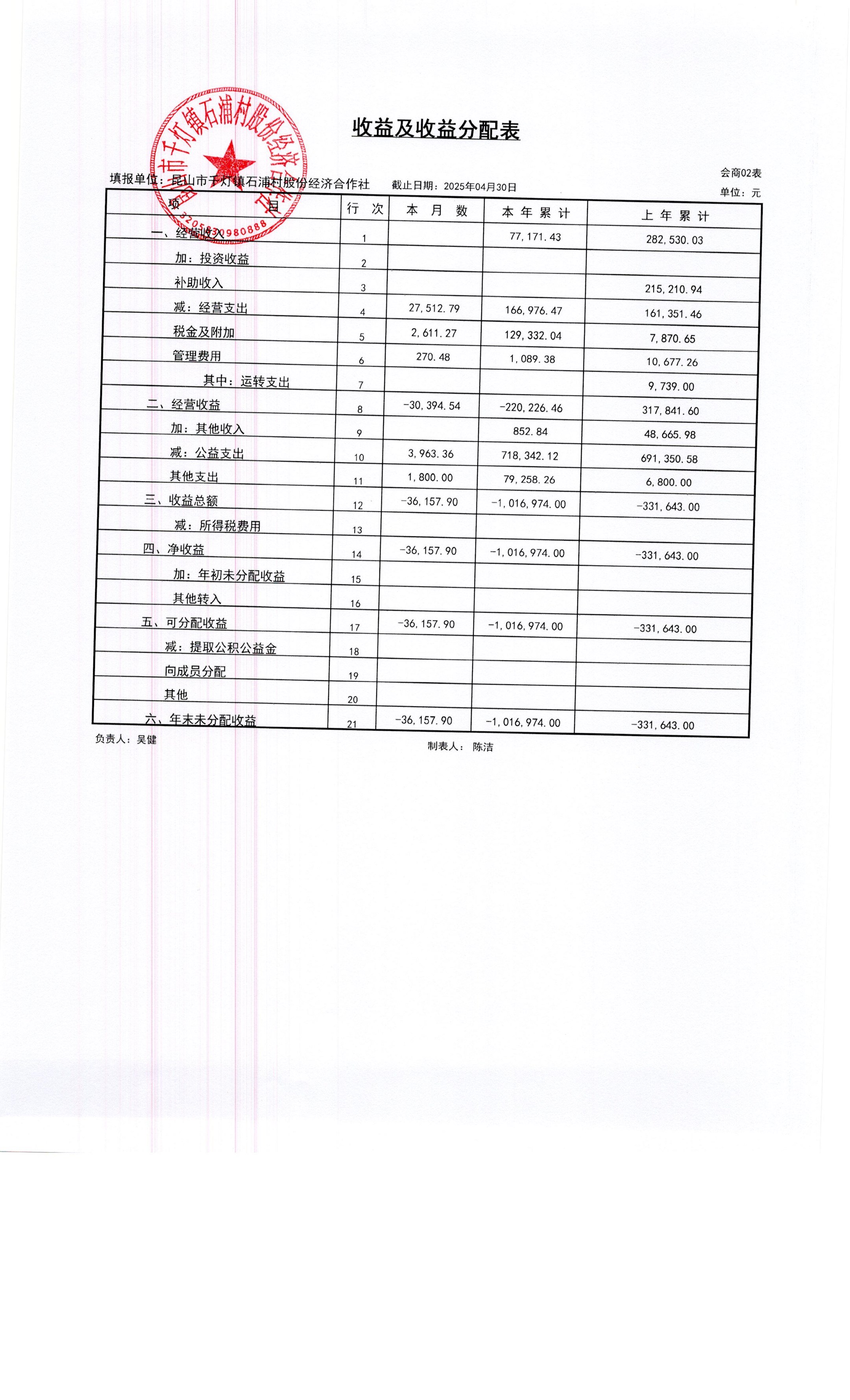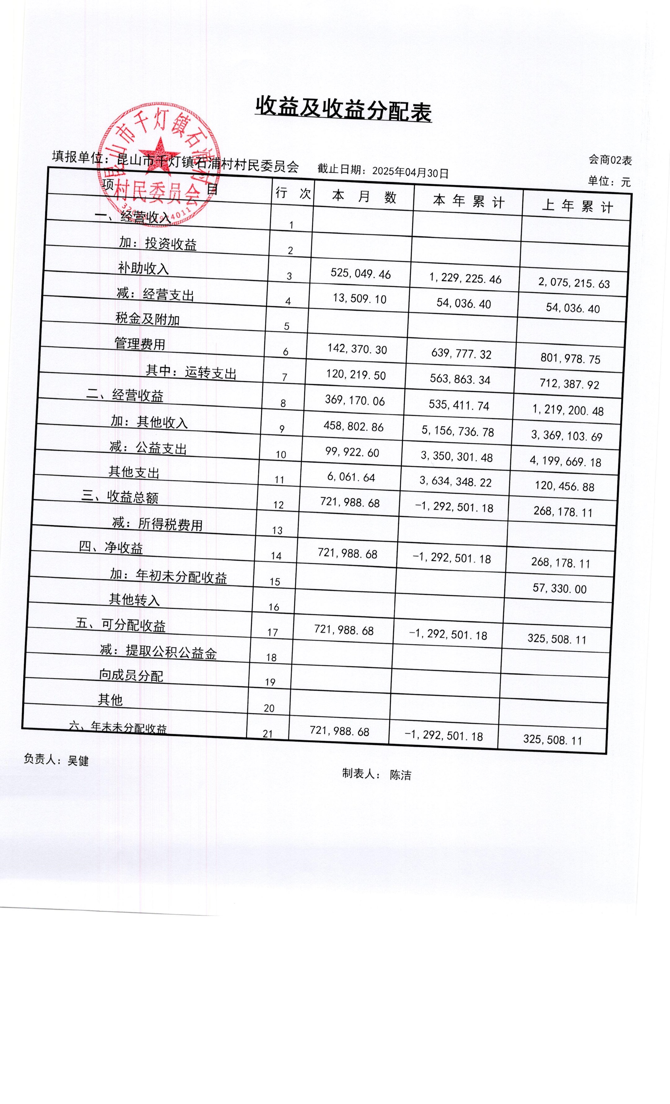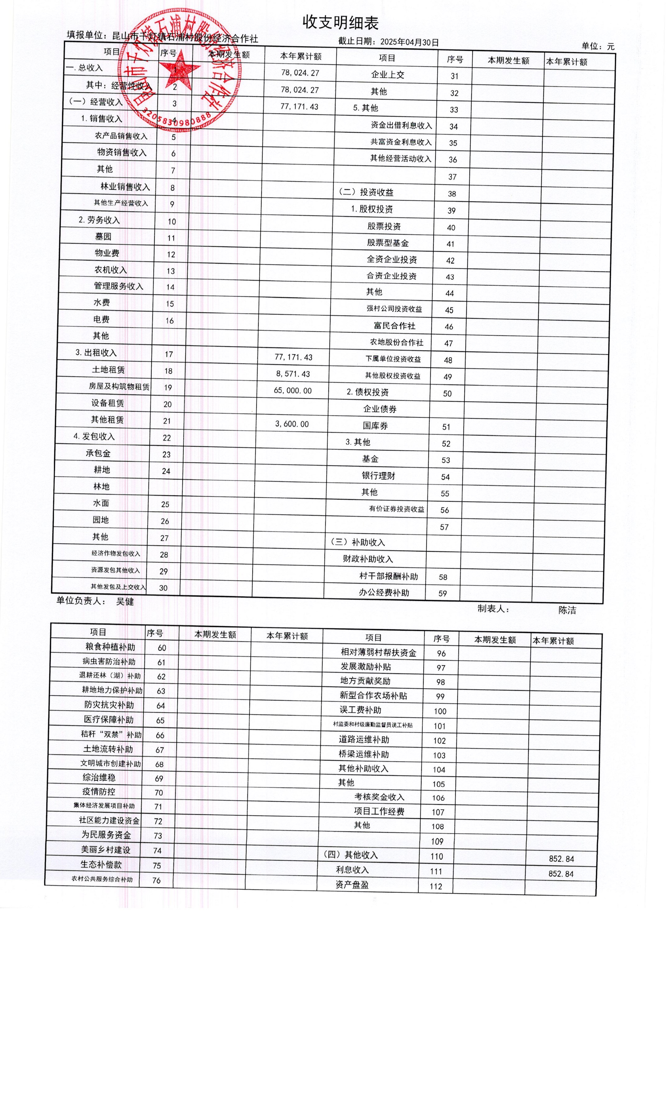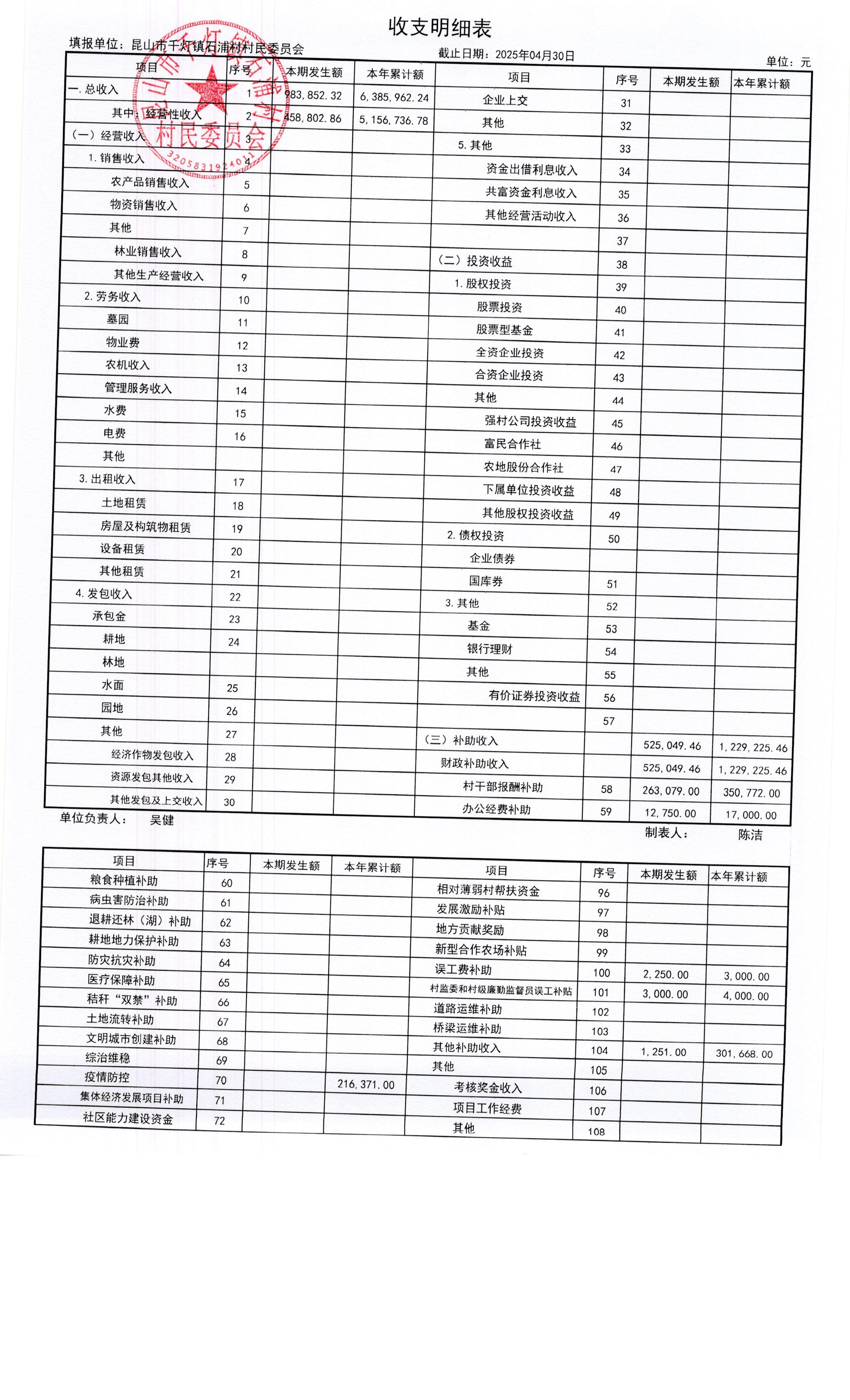2025年石浦村4月財(cái)務(wù)公開