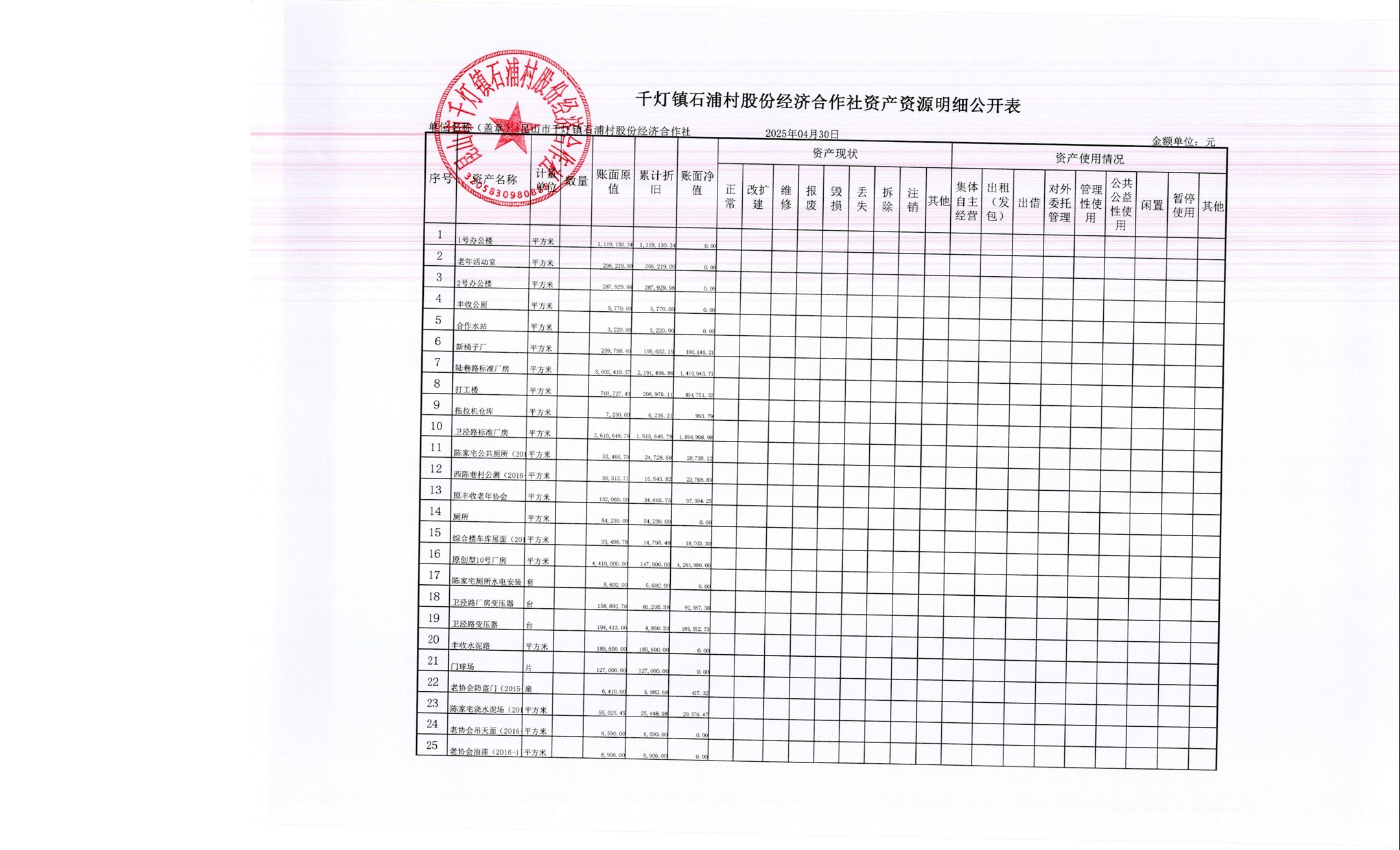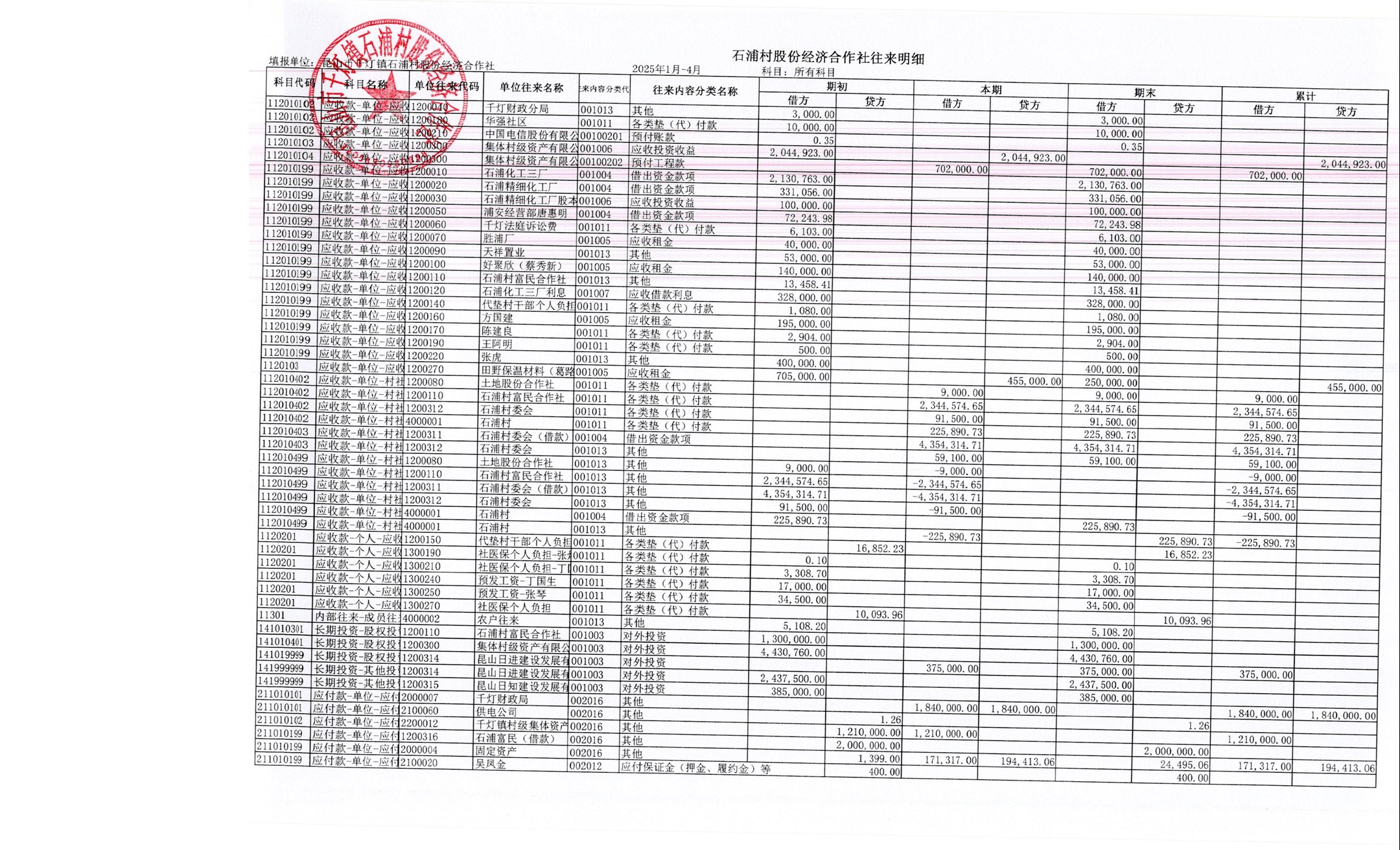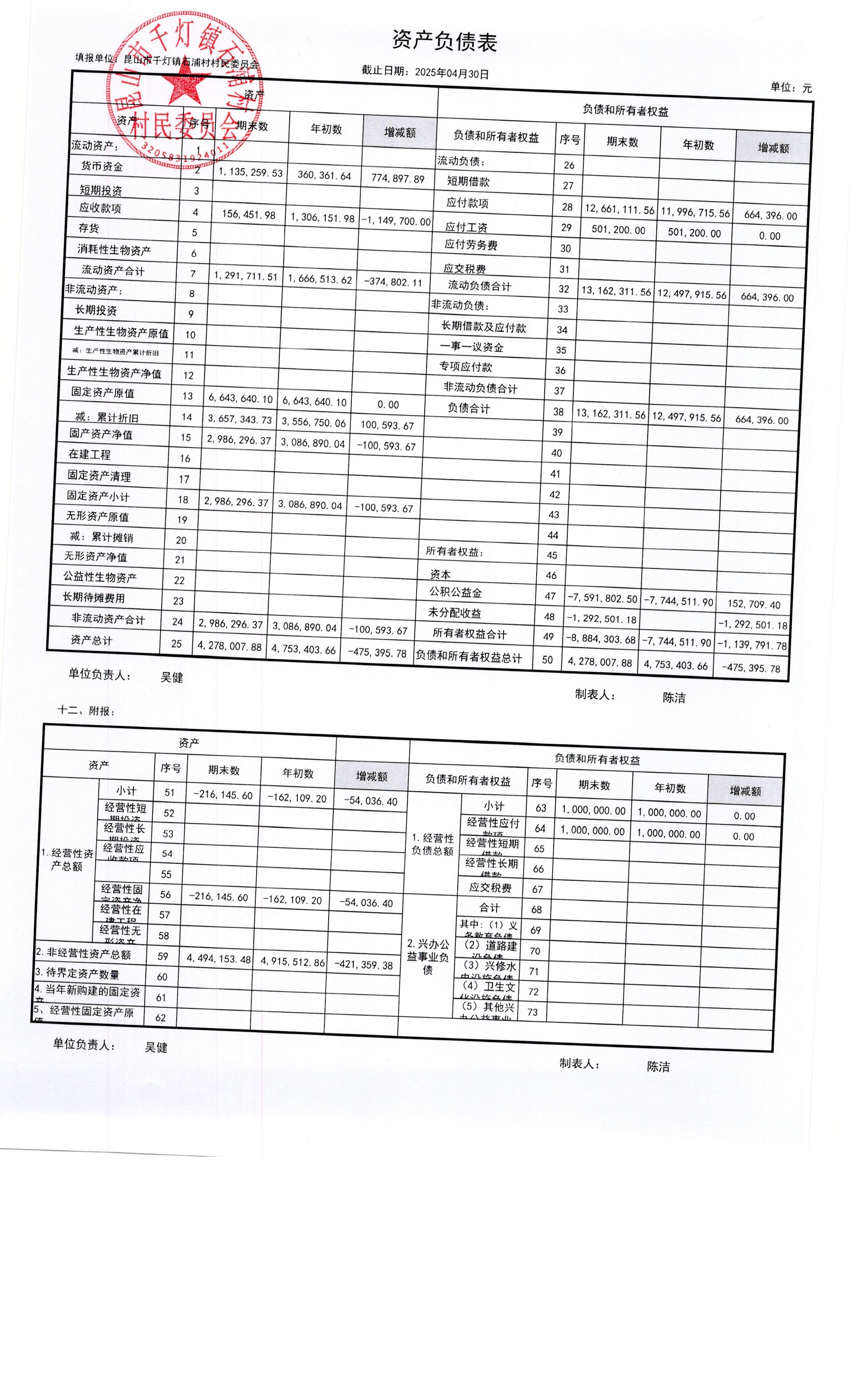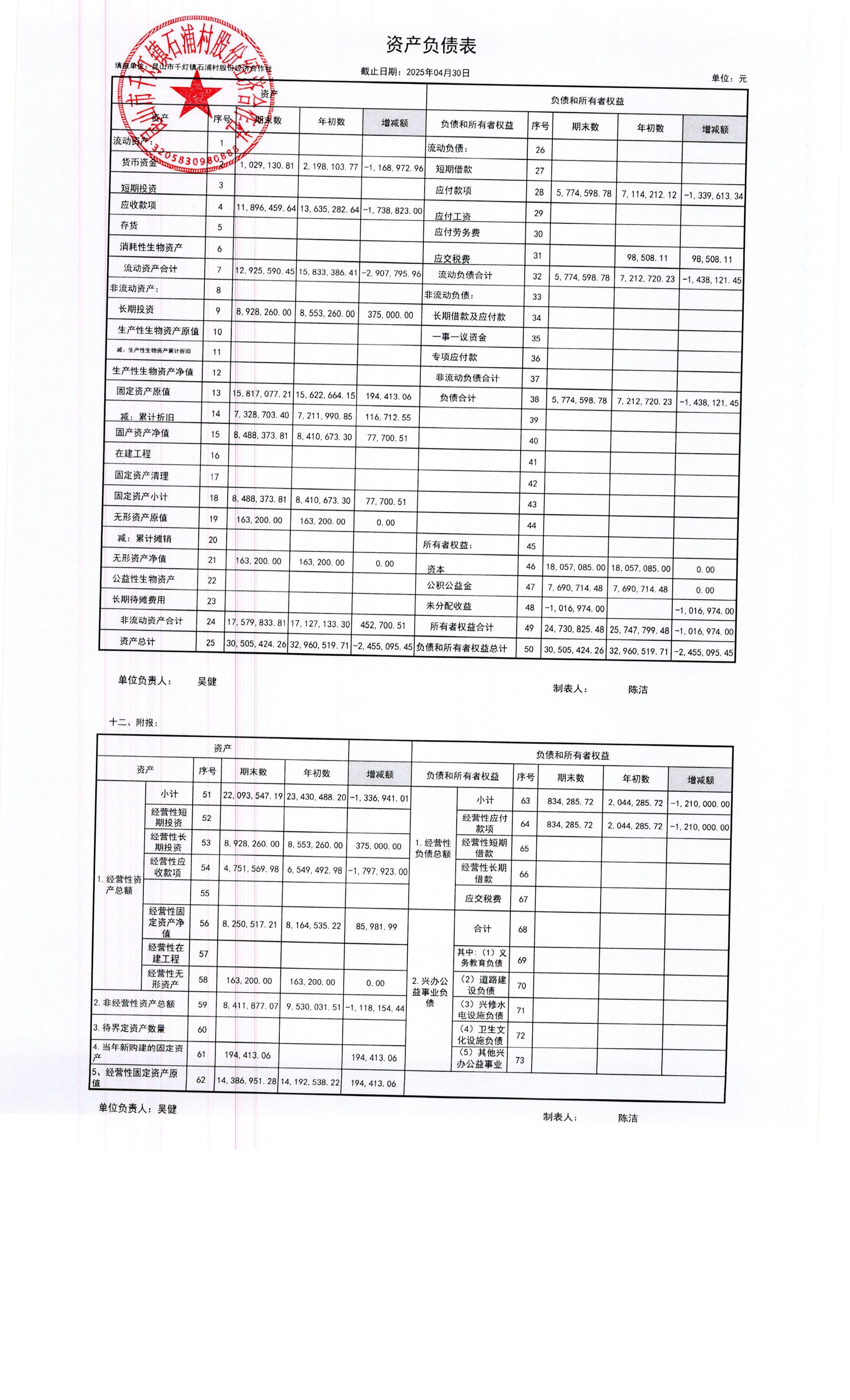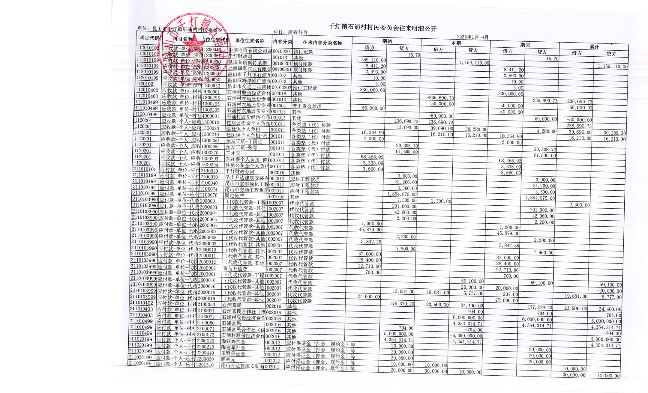 2025年石浦村4月財(cái)務(wù)公開