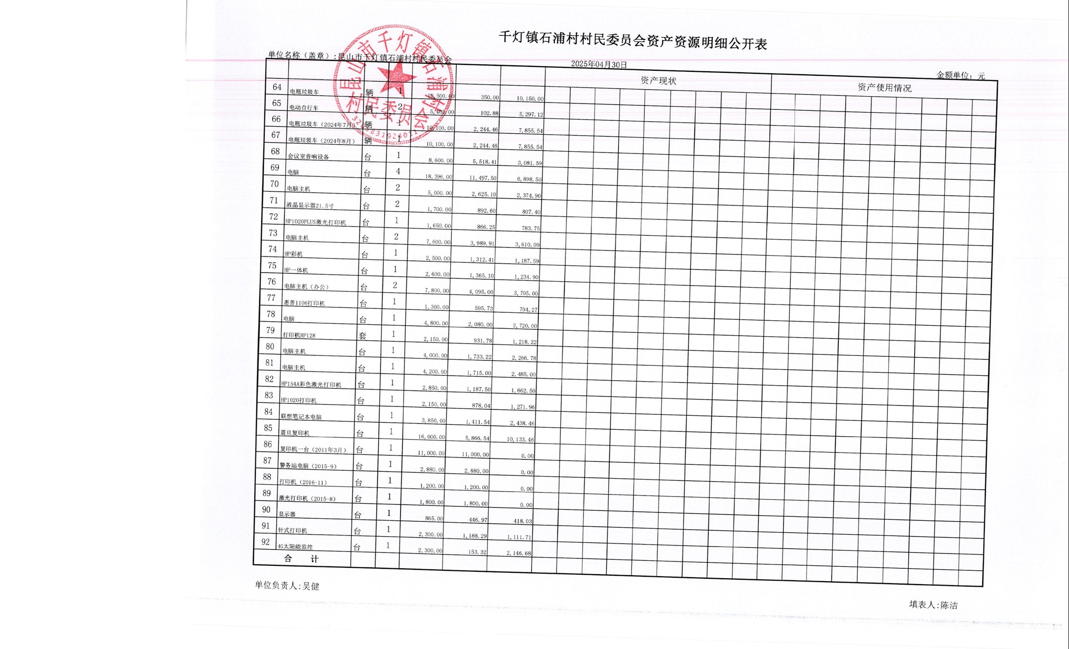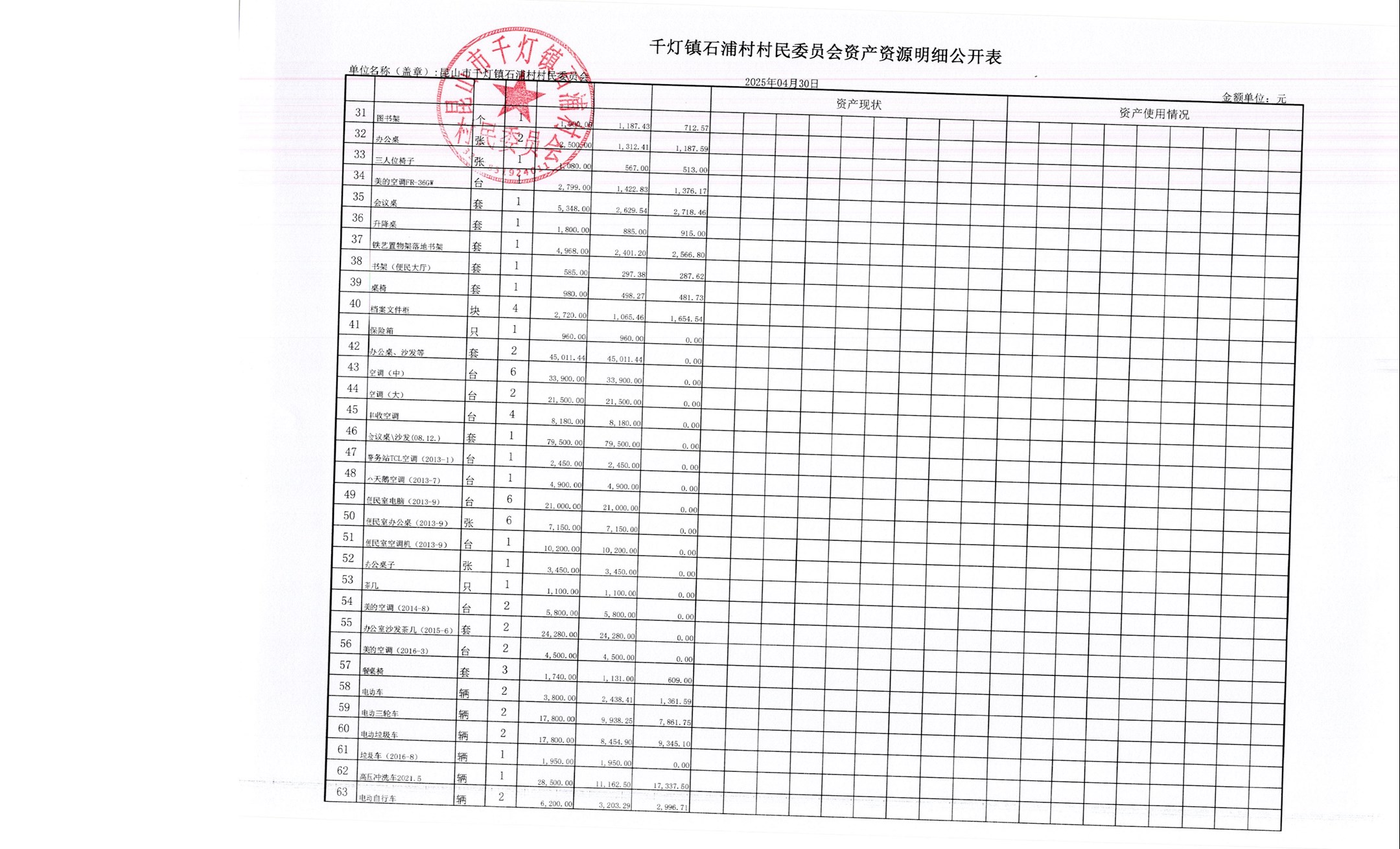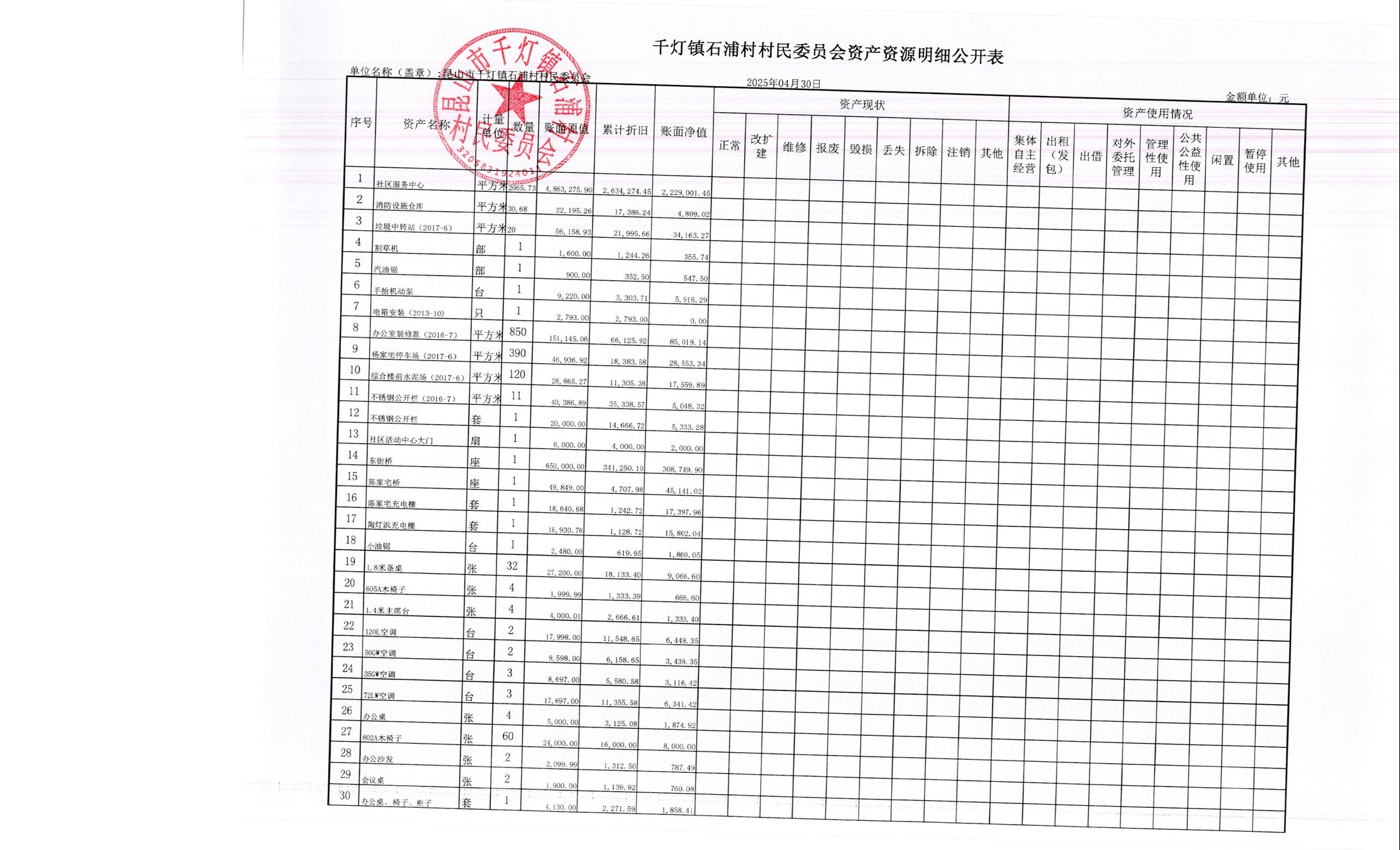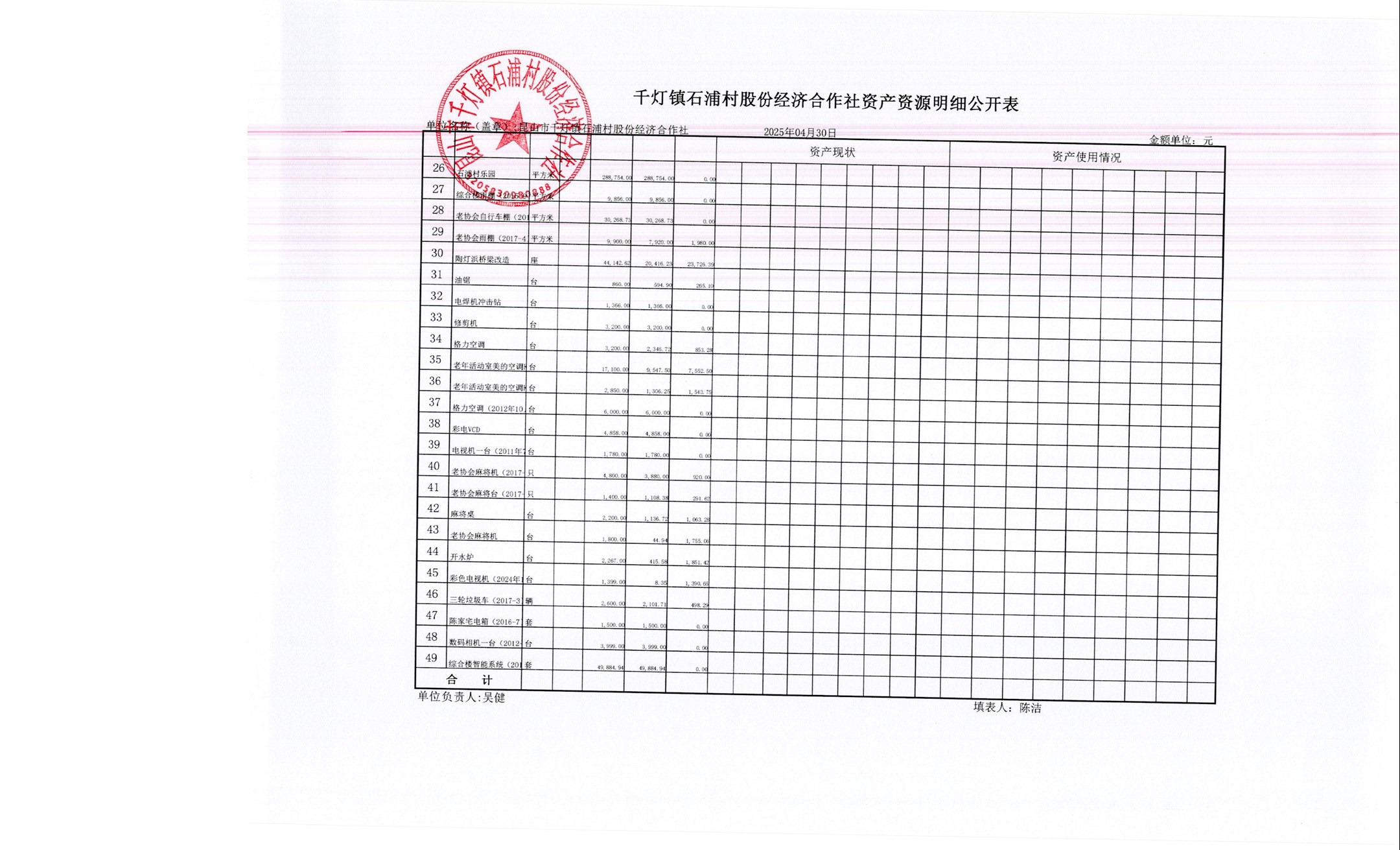 2025年石浦村4月財(cái)務(wù)公開