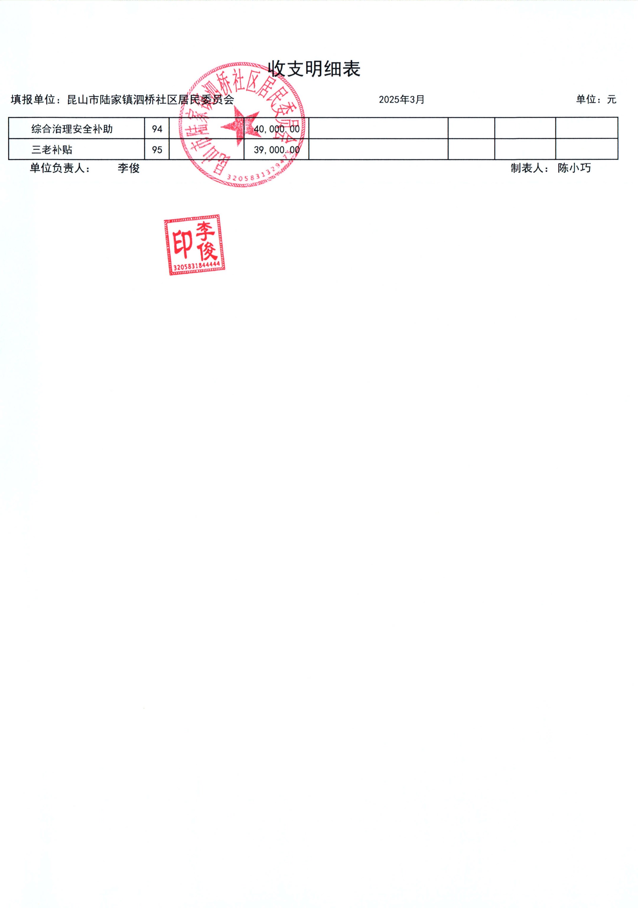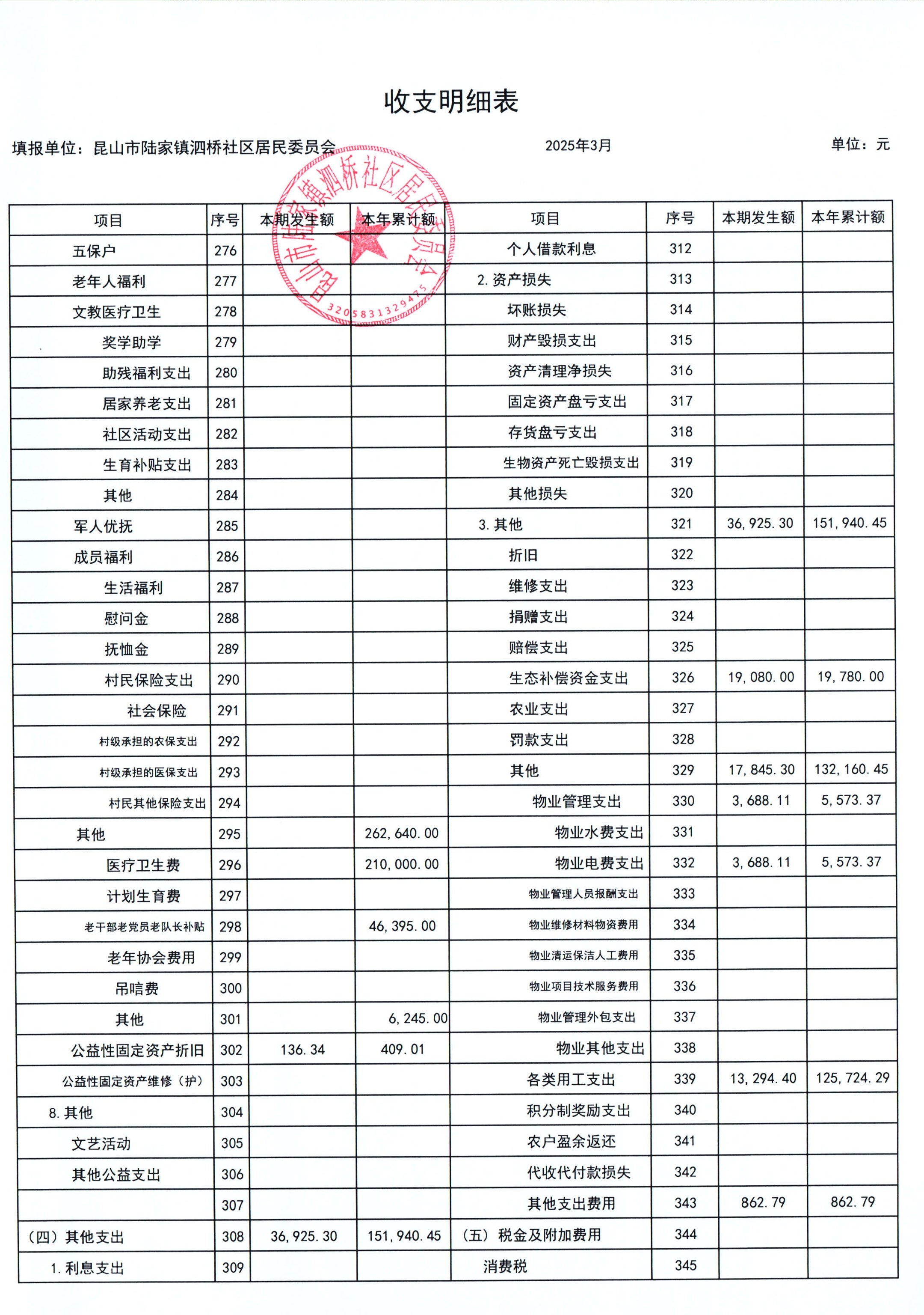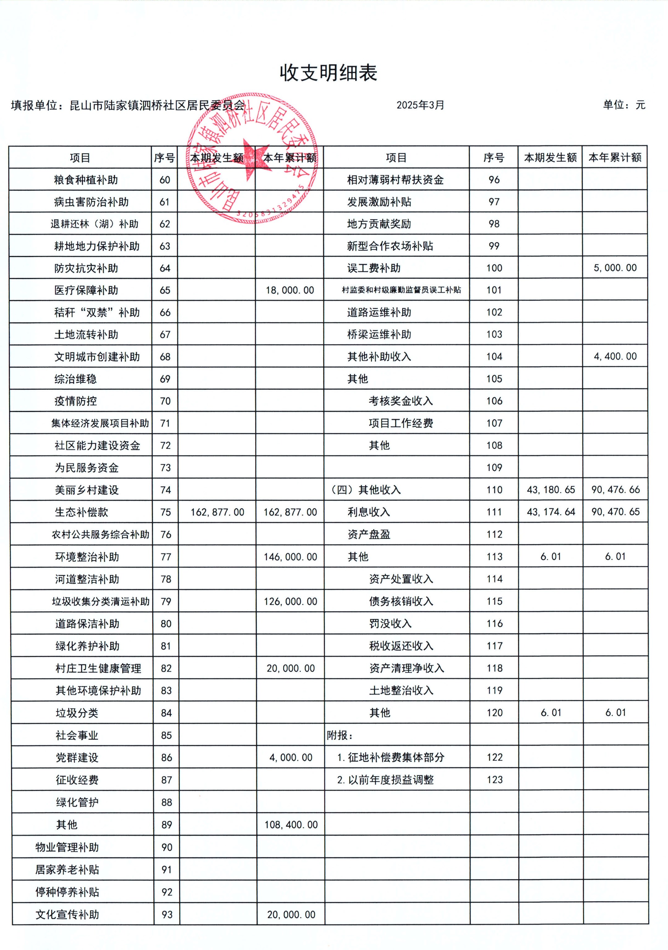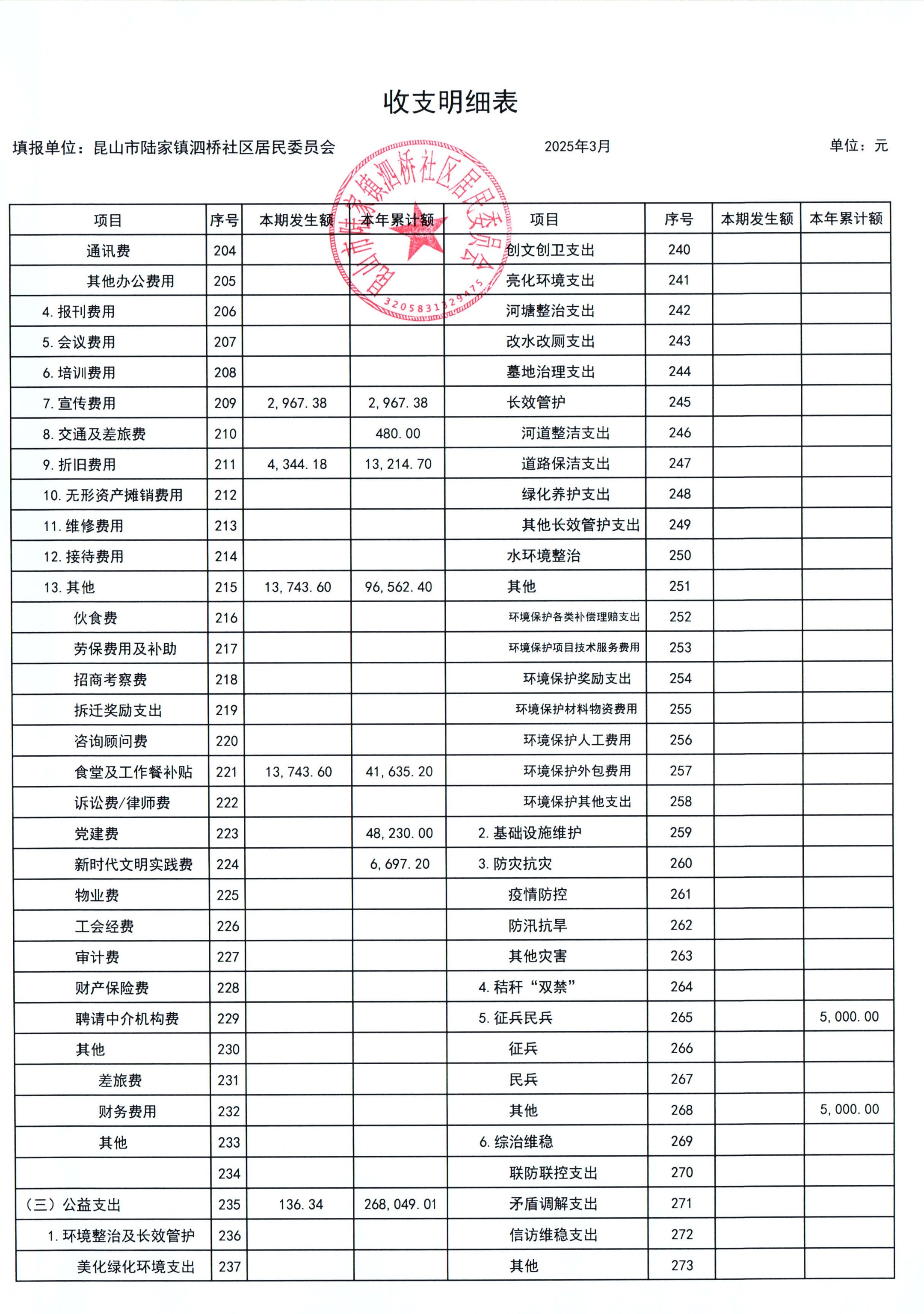 2025年泗橋社區(qū)居民委員會3月財務(wù)公開