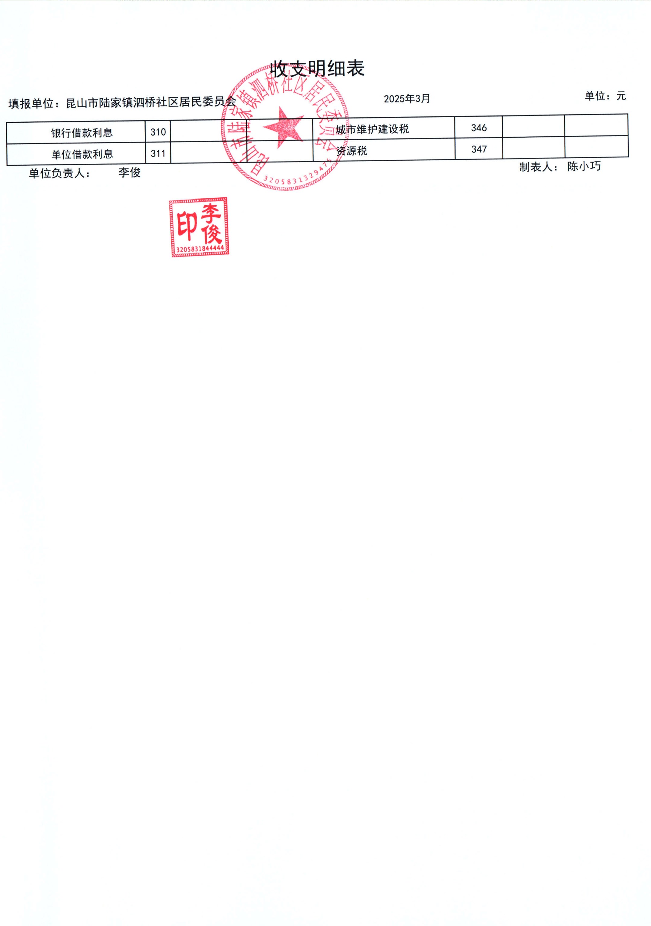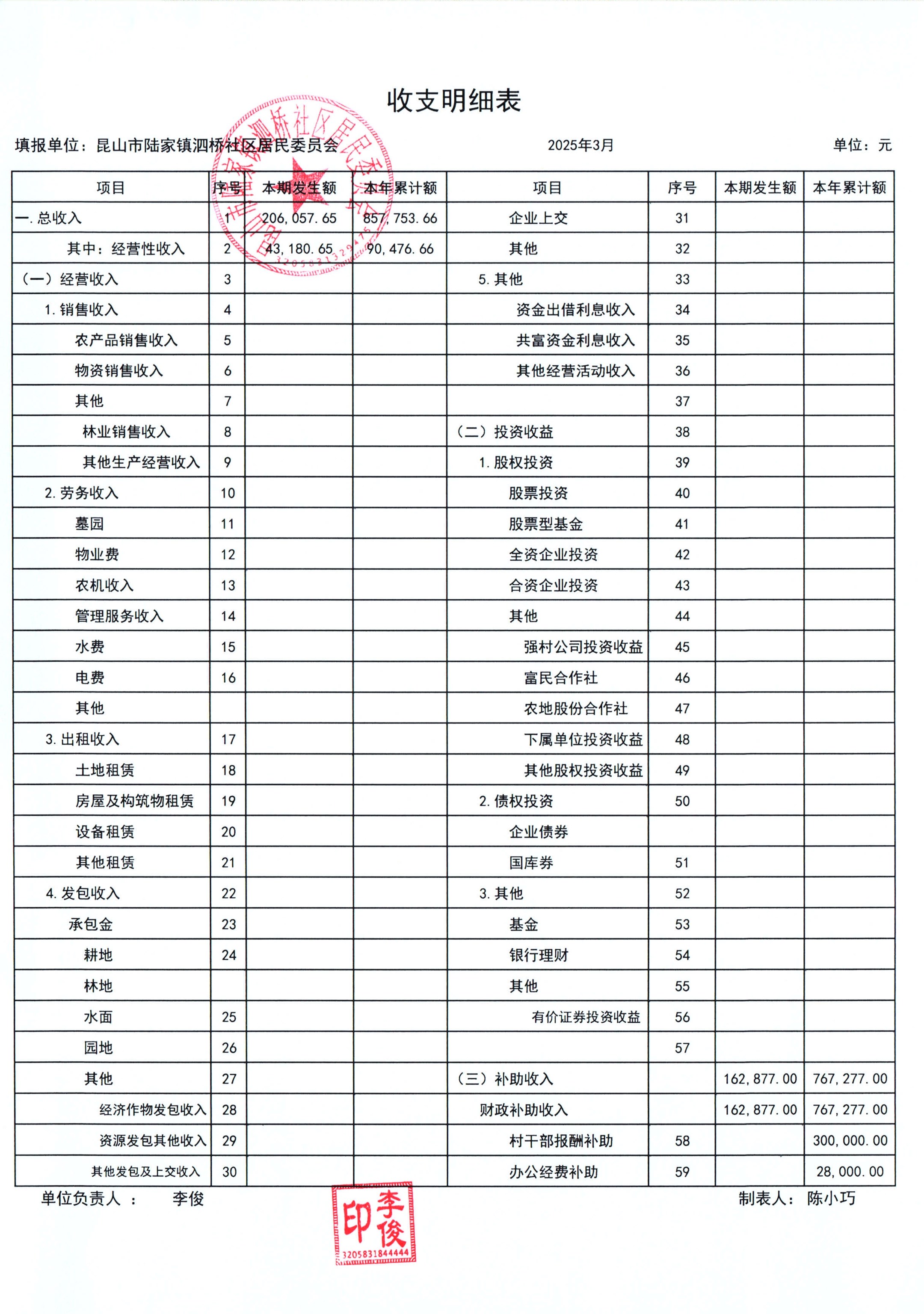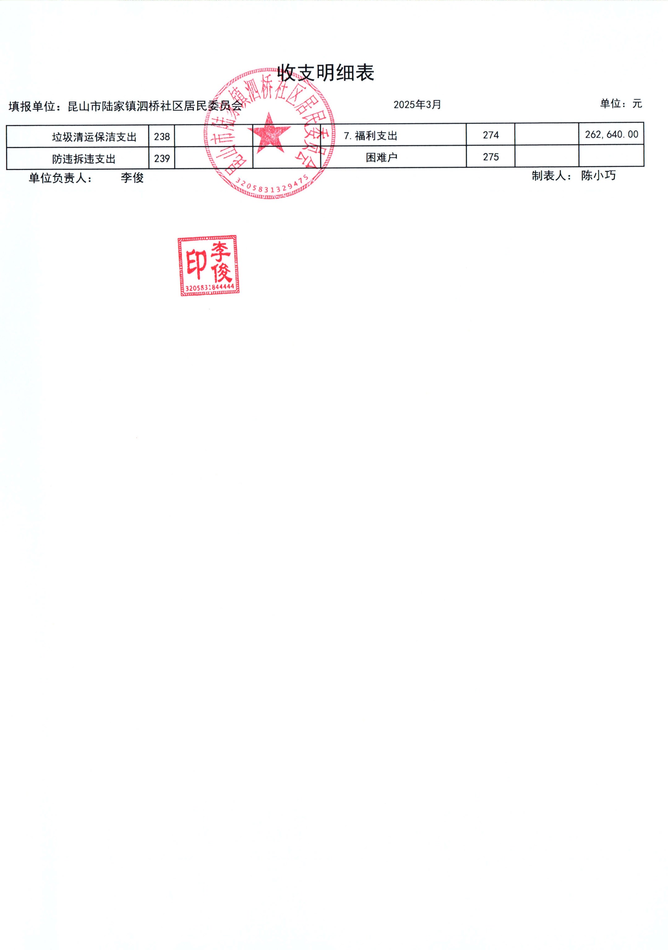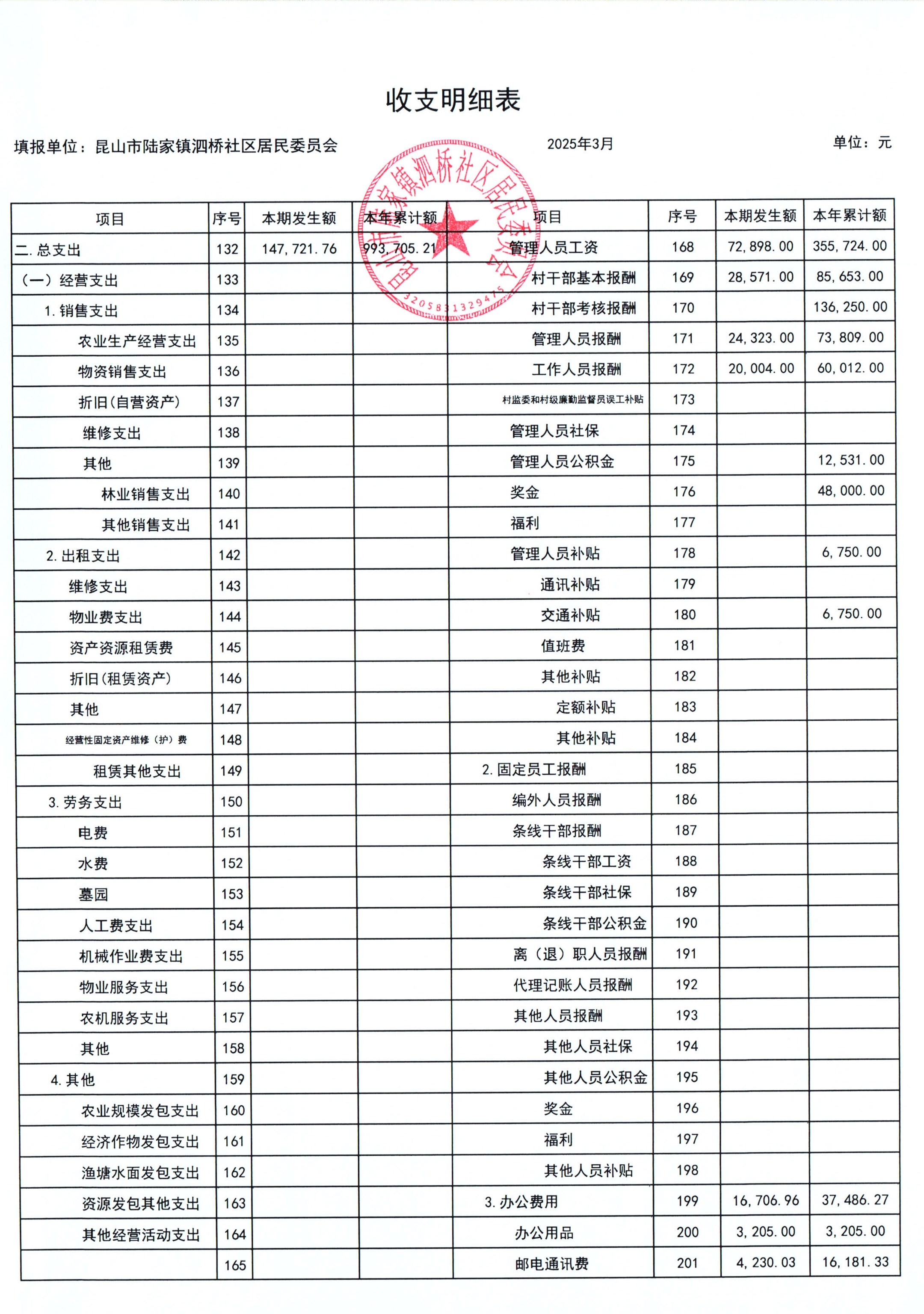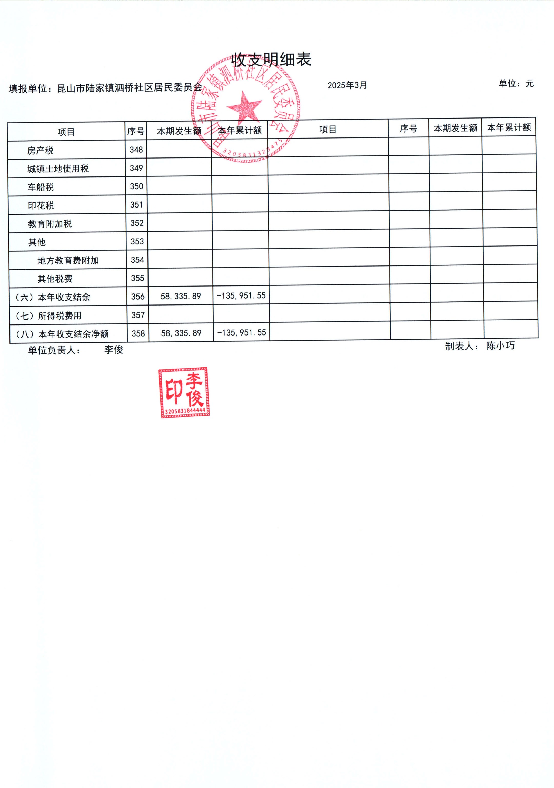 2025年泗橋社區(qū)居民委員會3月財務(wù)公開