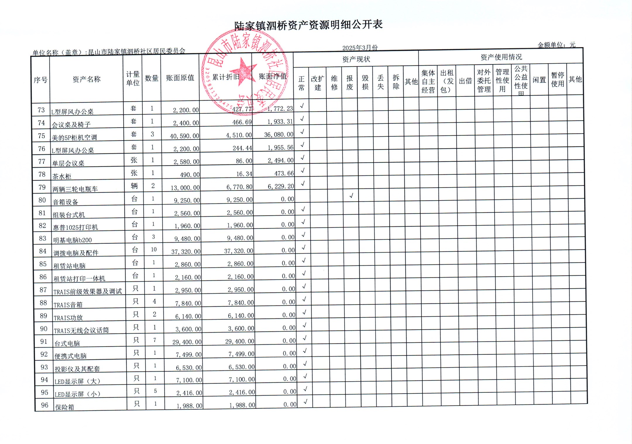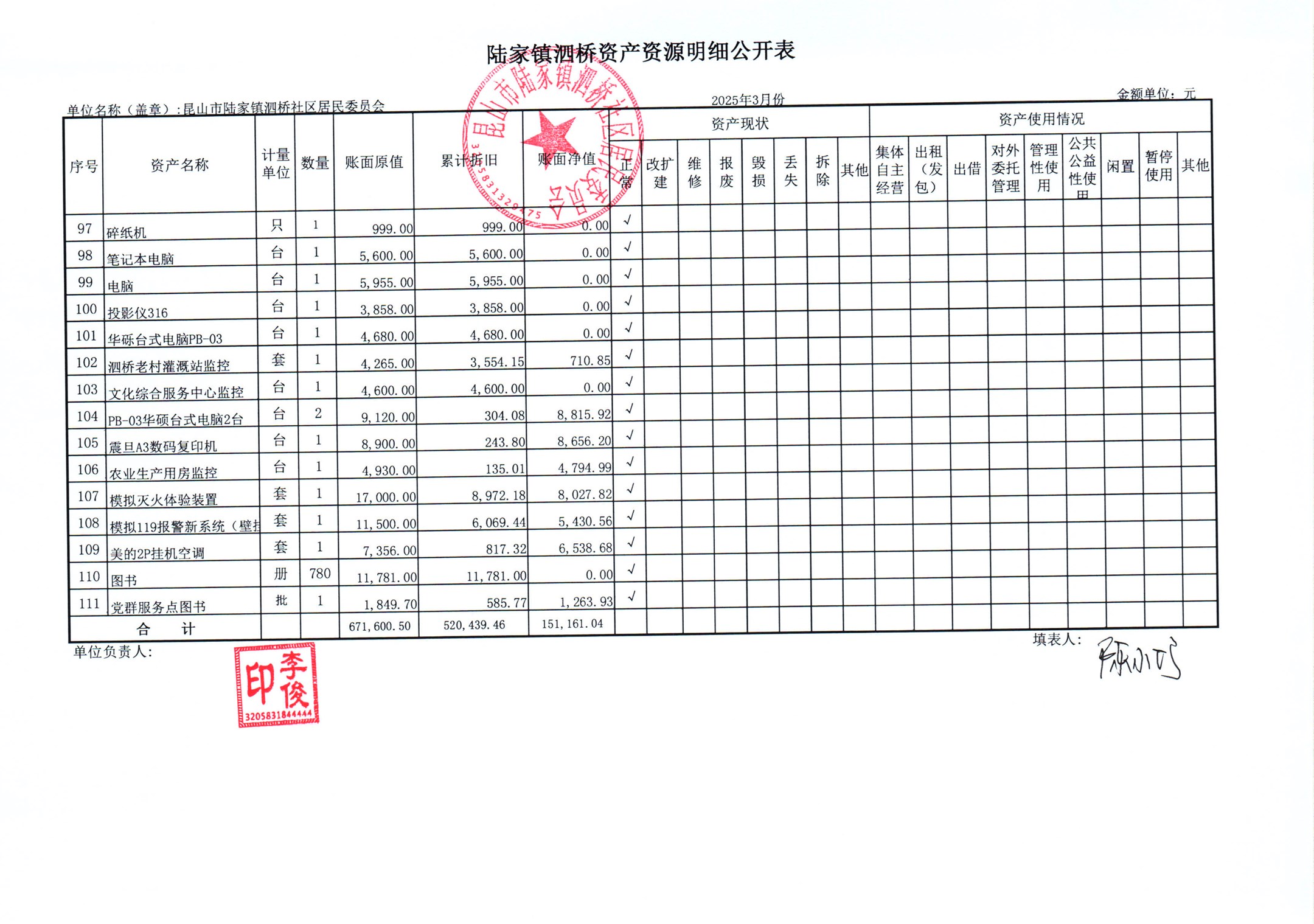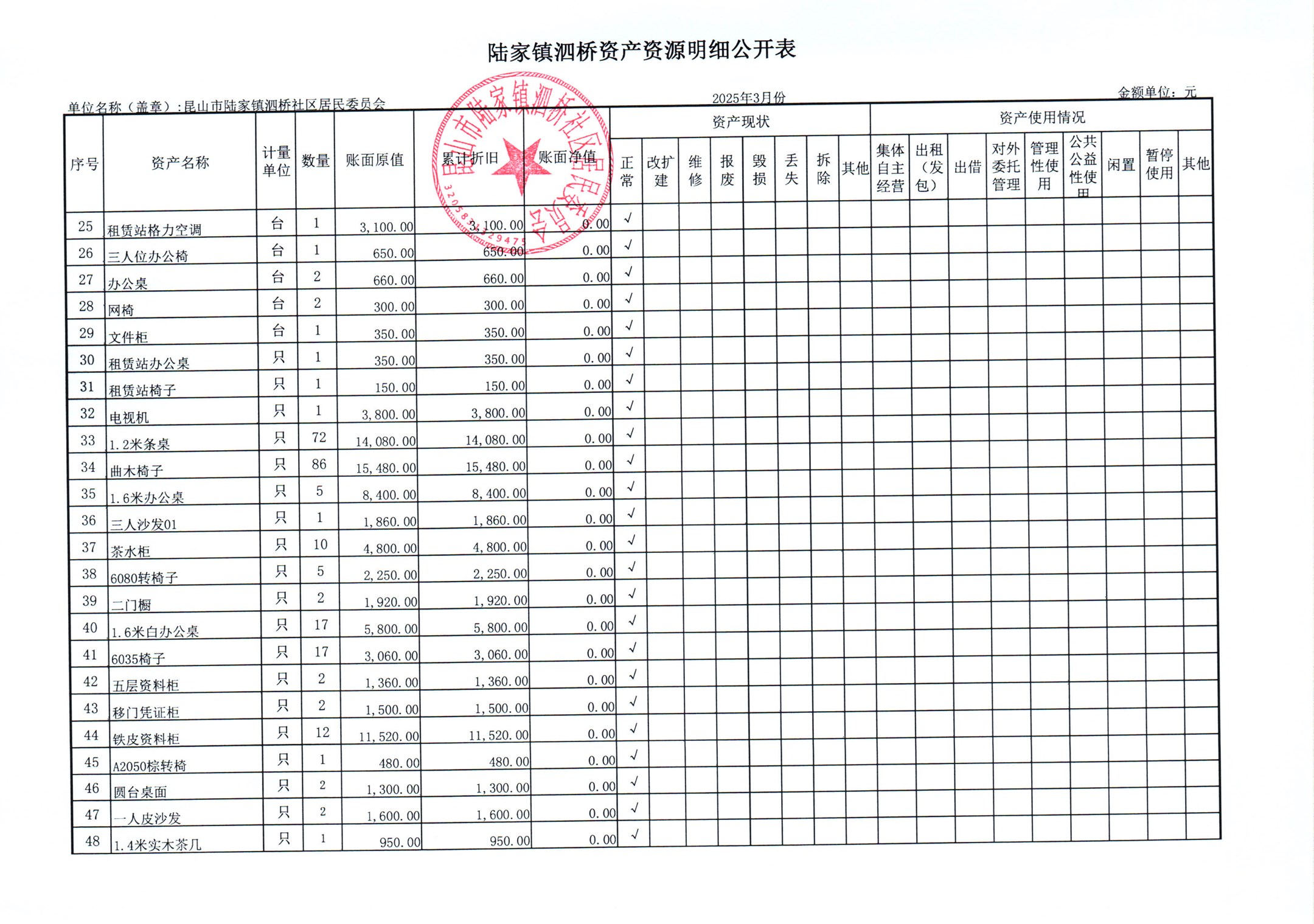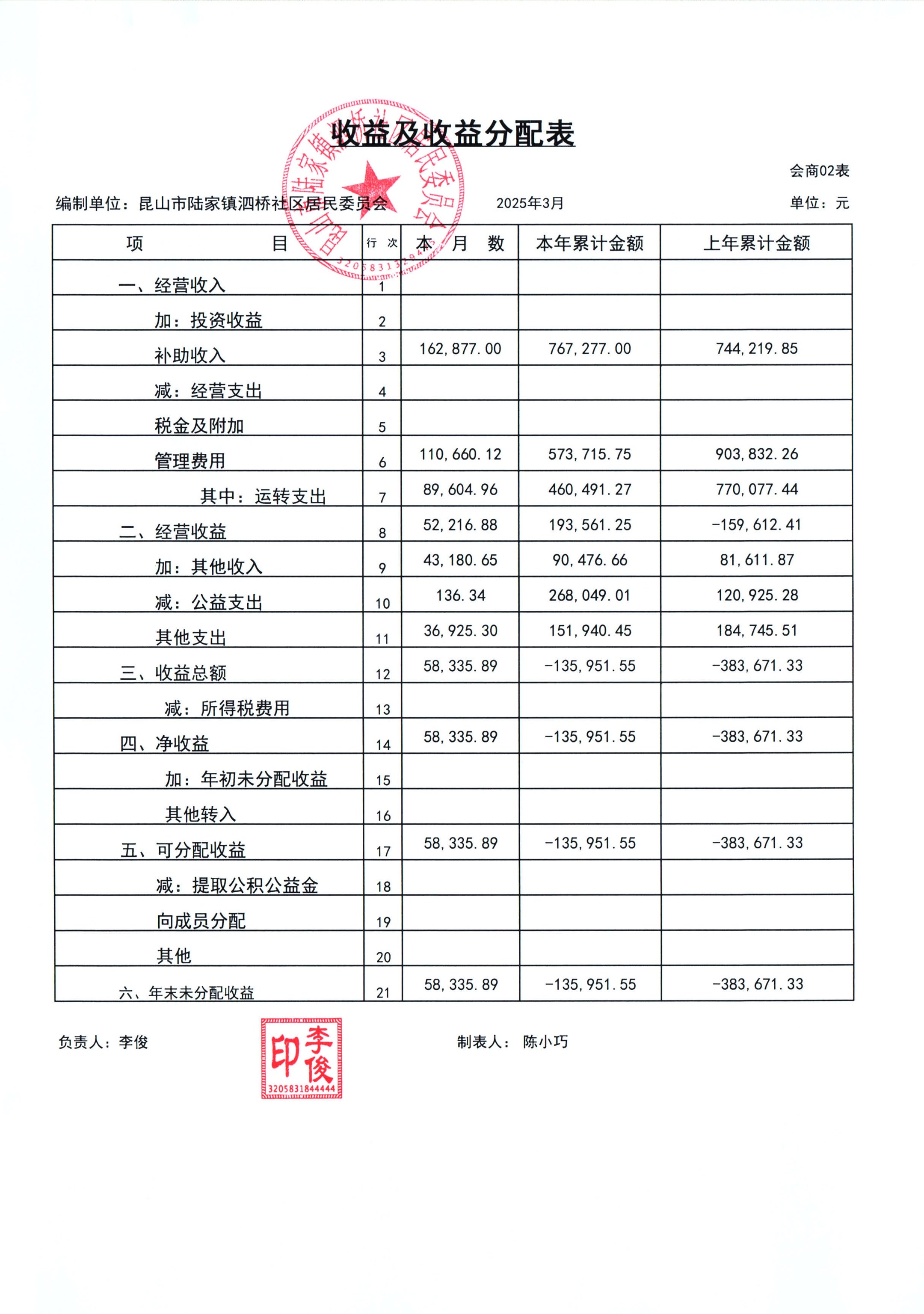 2025年泗橋社區(qū)居民委員會3月財務(wù)公開
