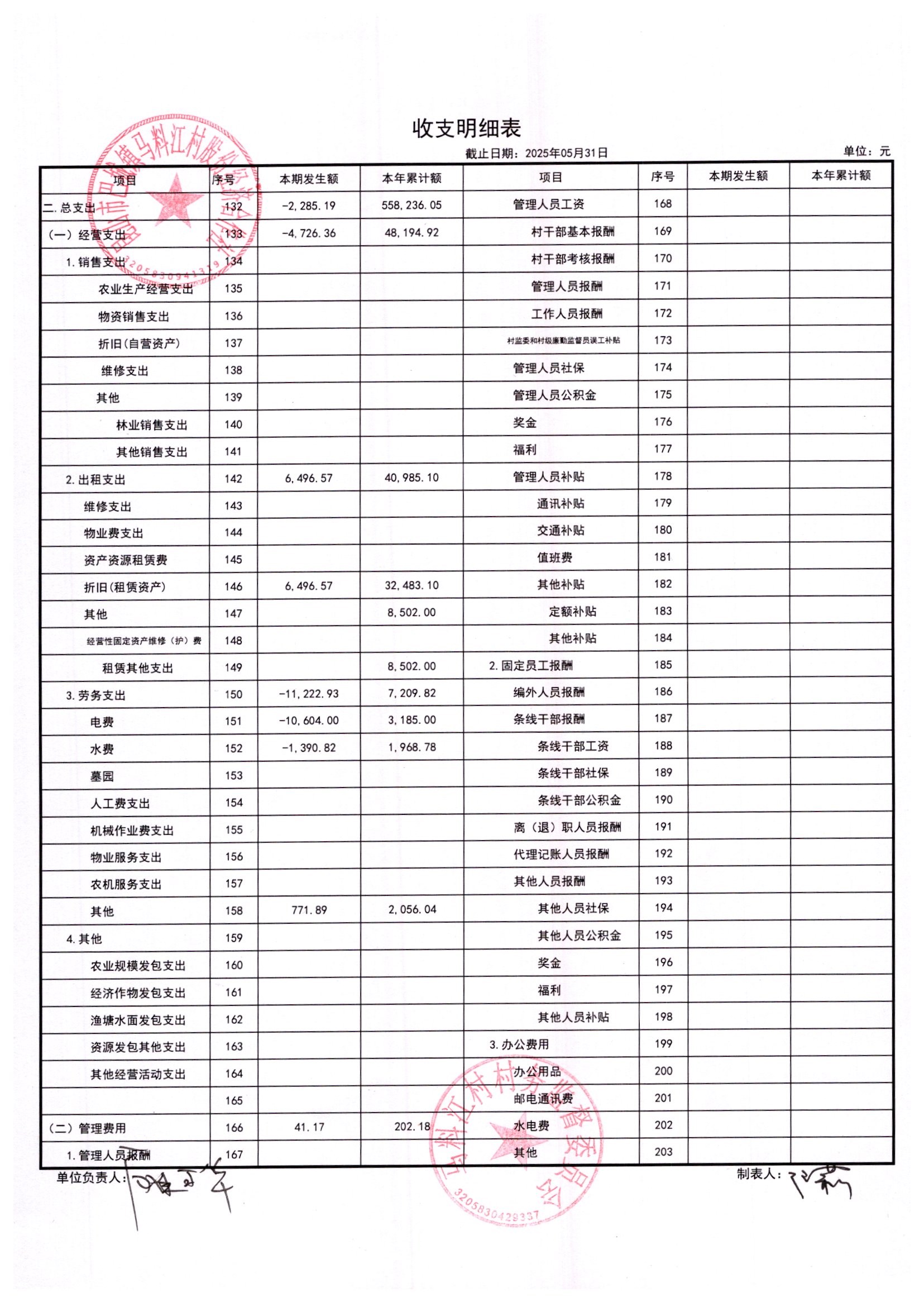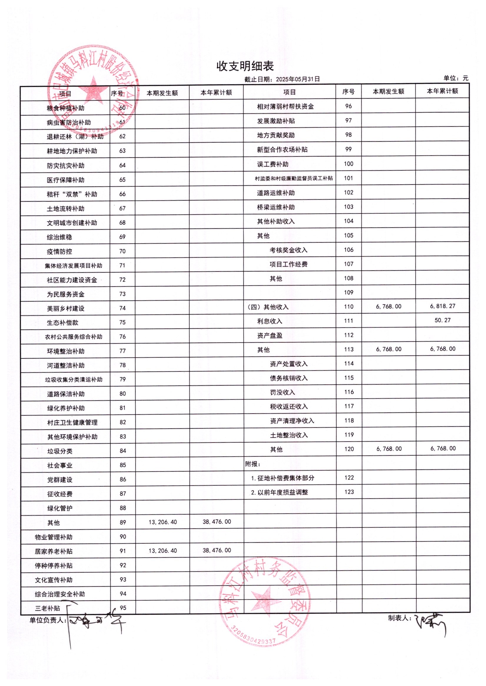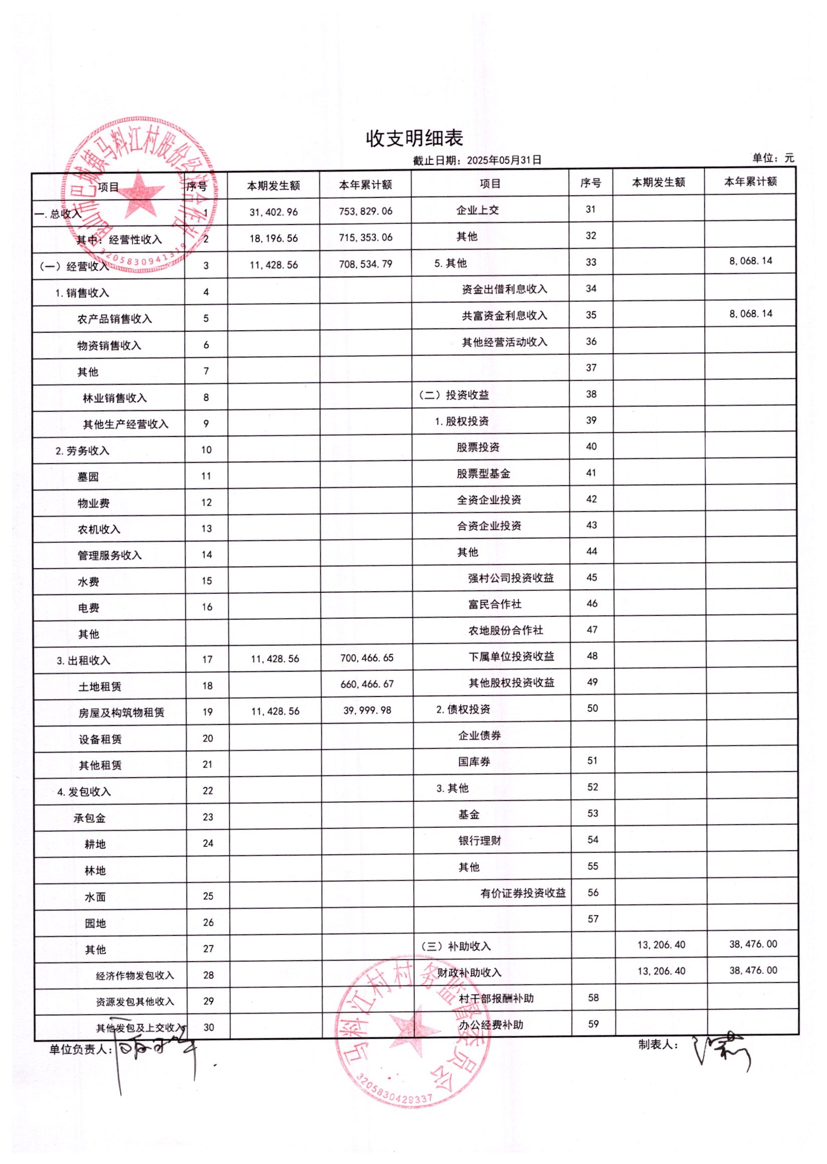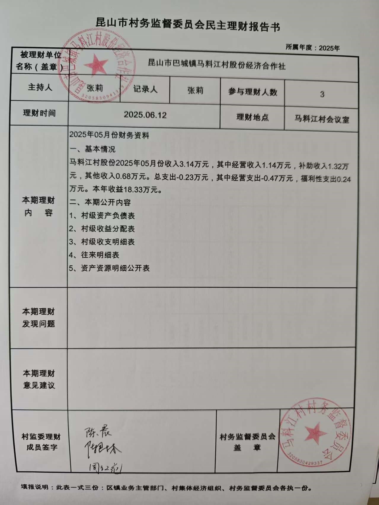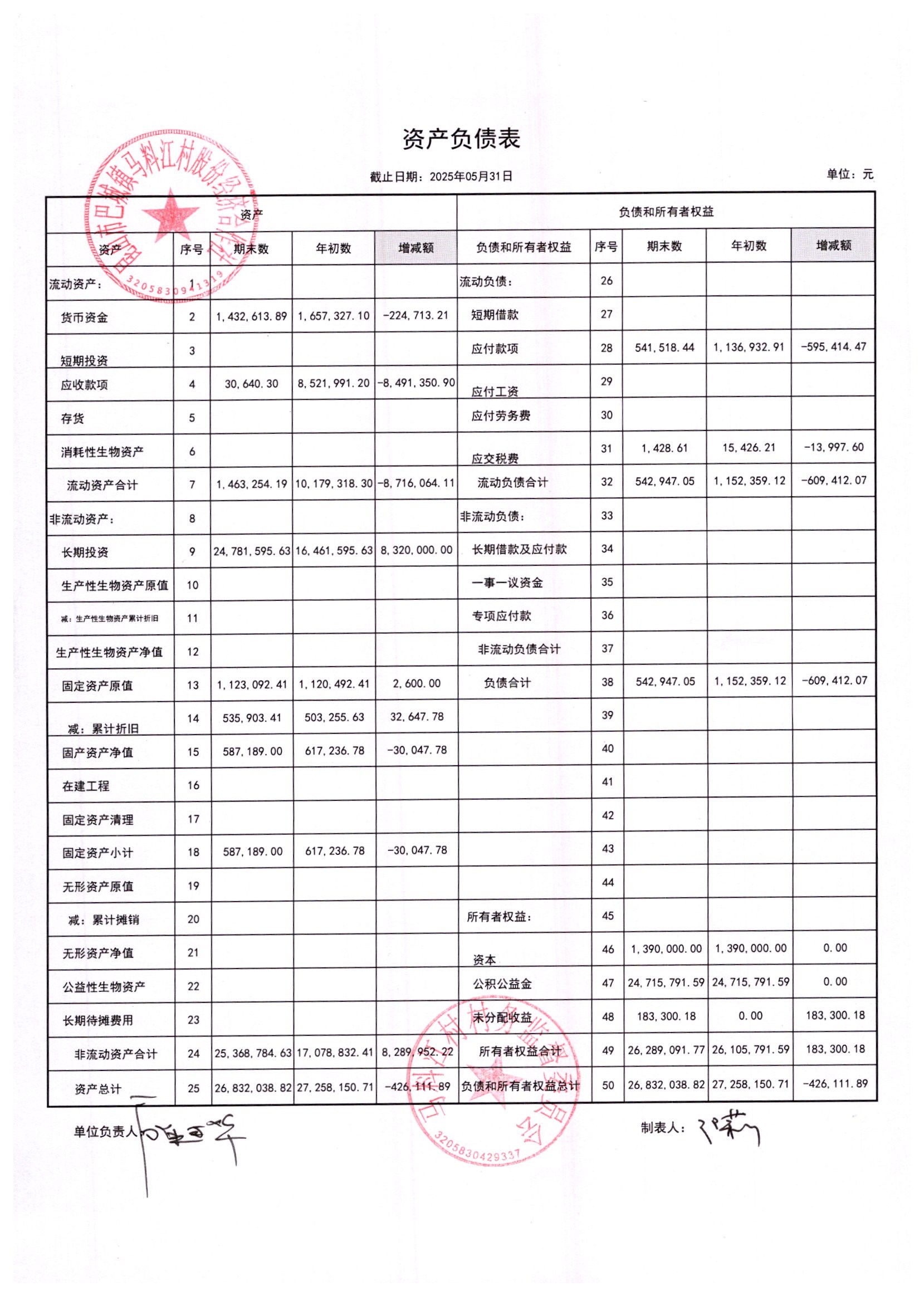 馬料江村股份-2025年06月份財務(wù)公開內(nèi)容