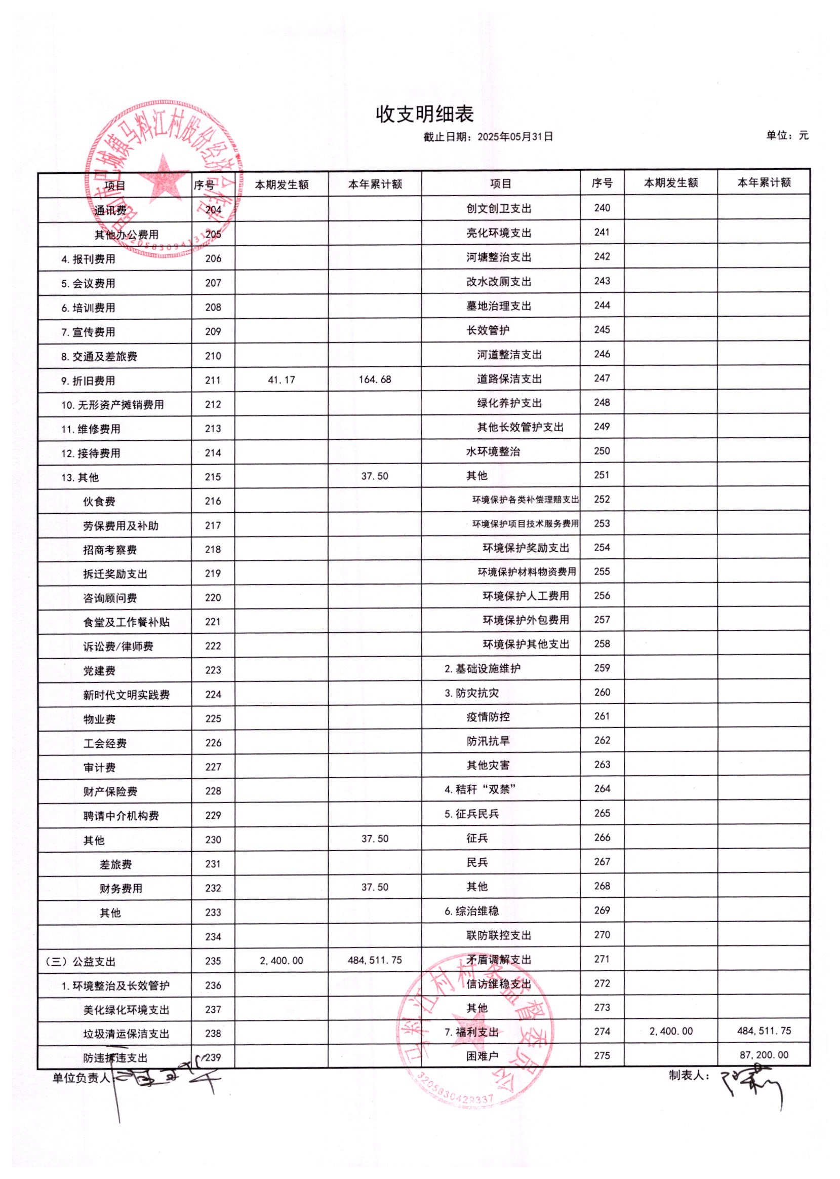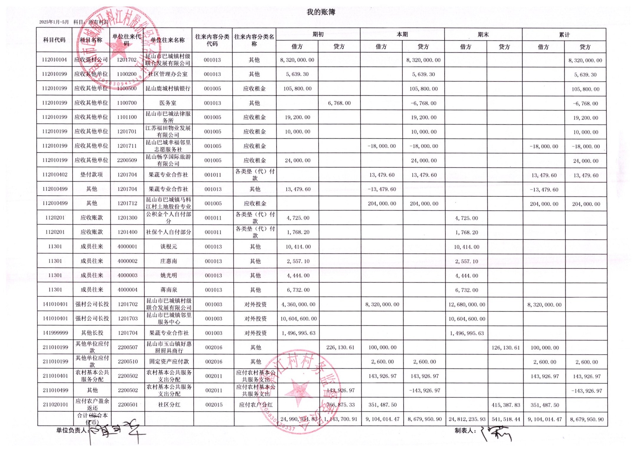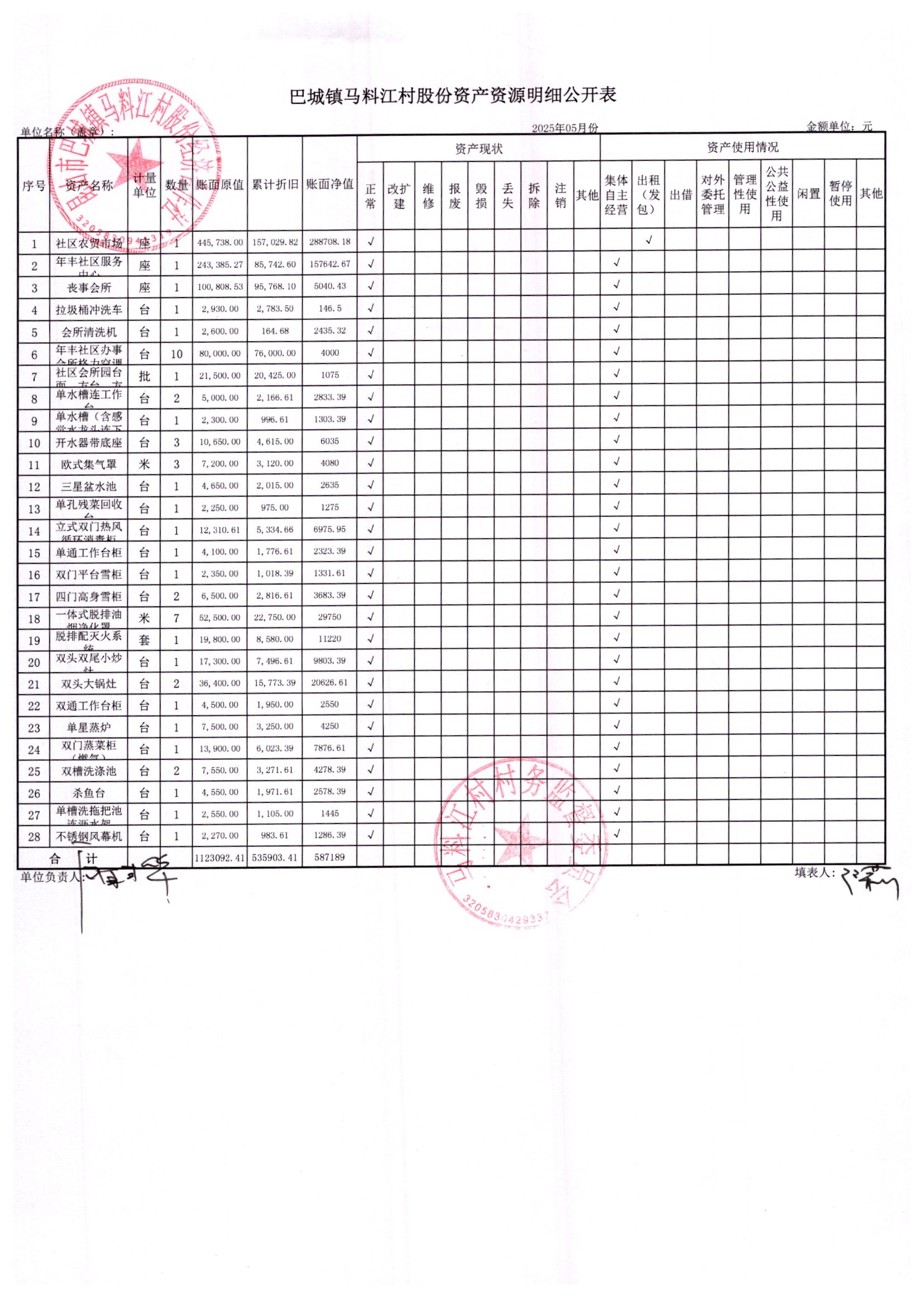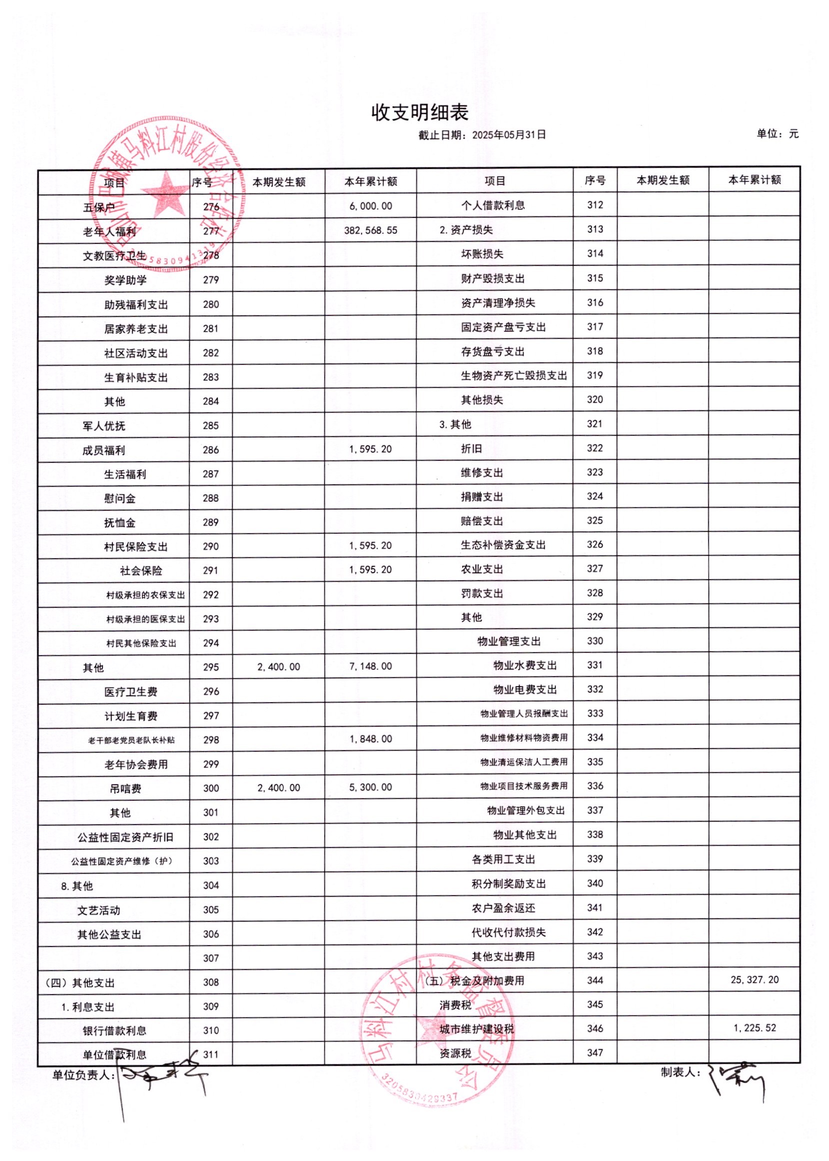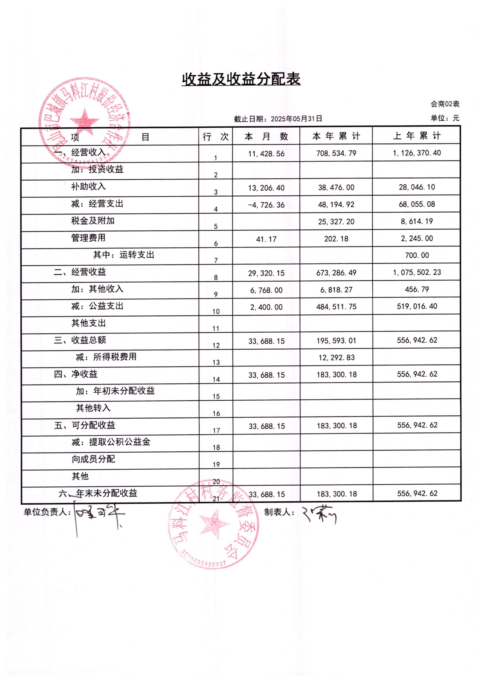 馬料江村股份-2025年06月份財務(wù)公開內(nèi)容