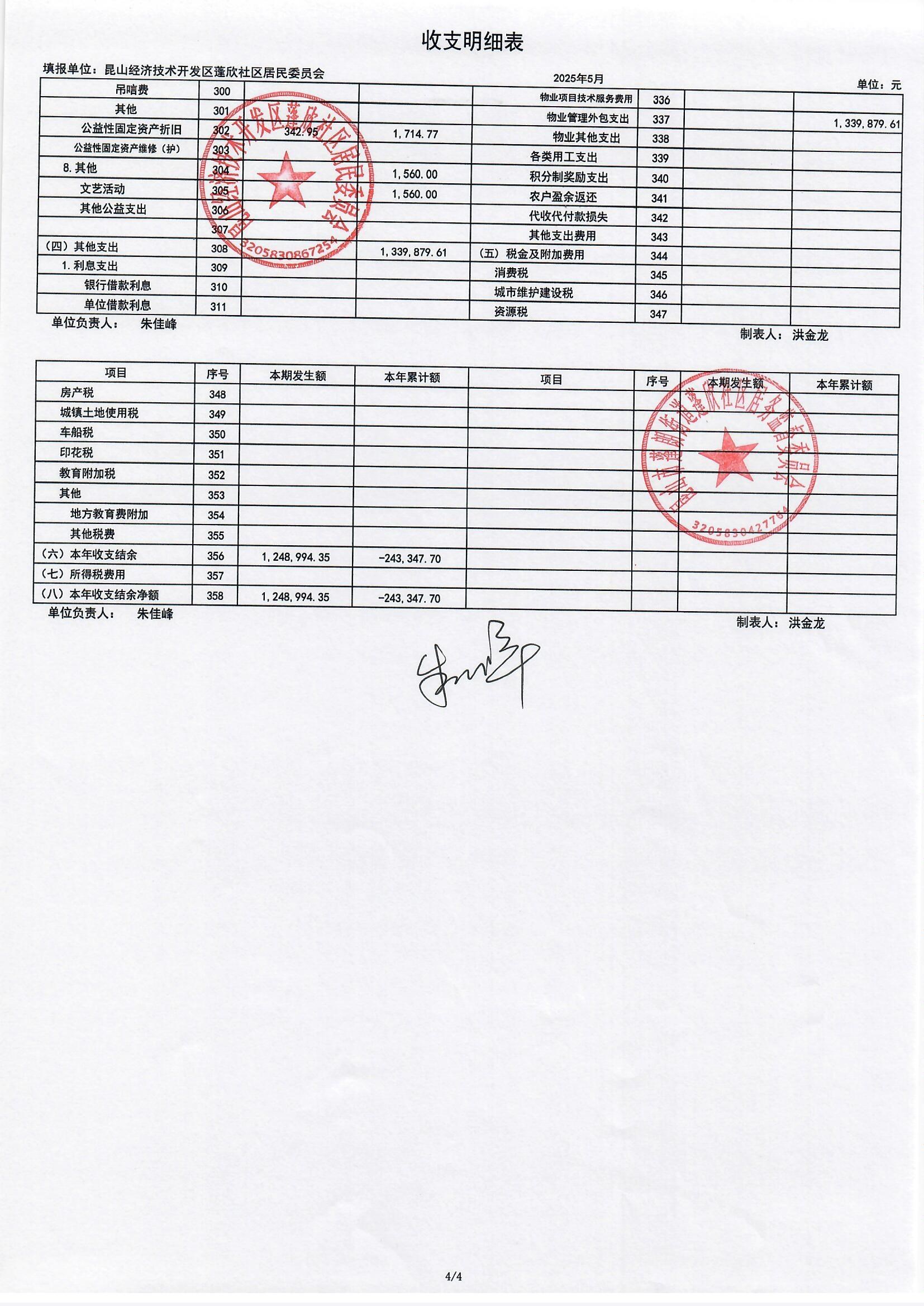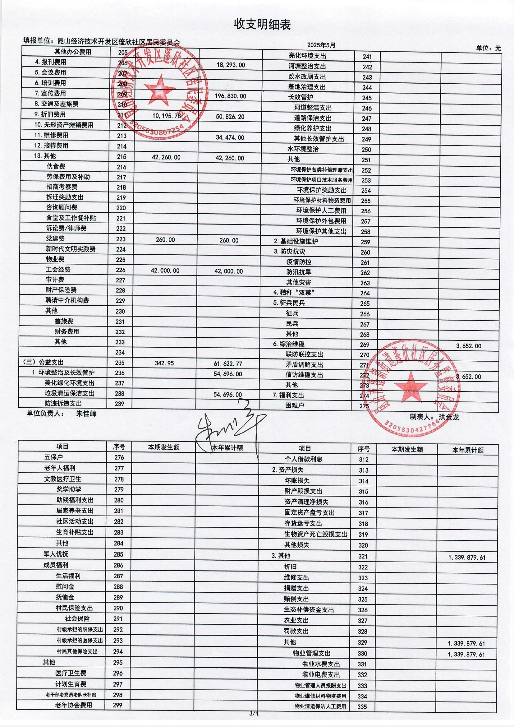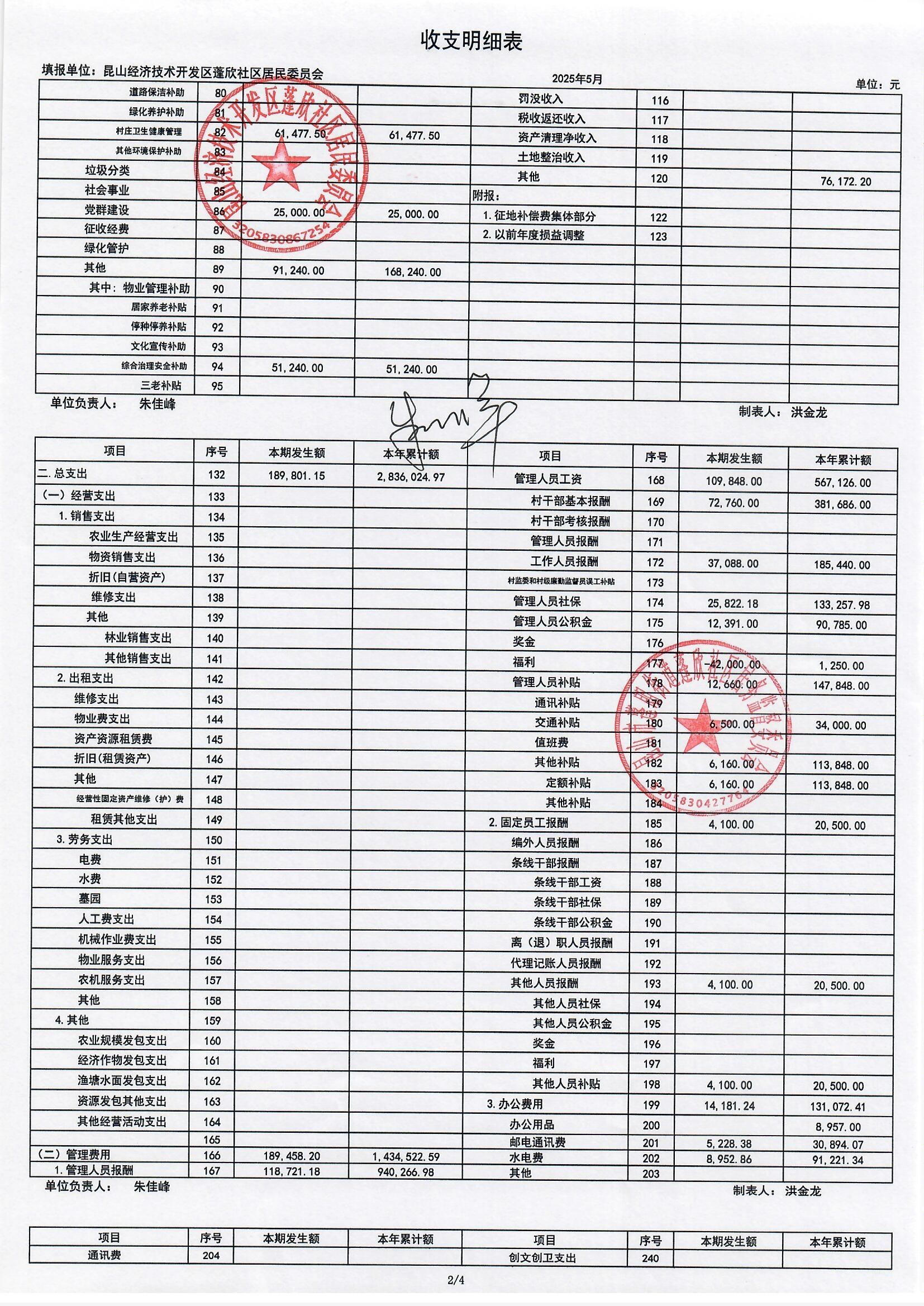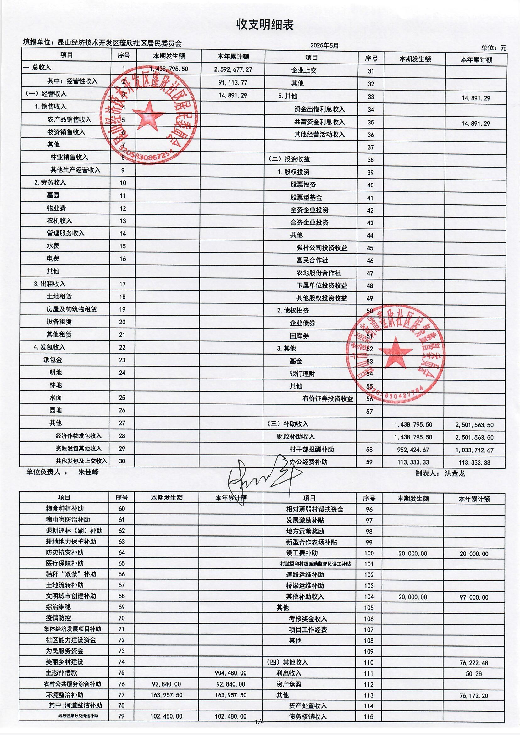2025年5月份蓬欣社區(qū)財務(wù)公開