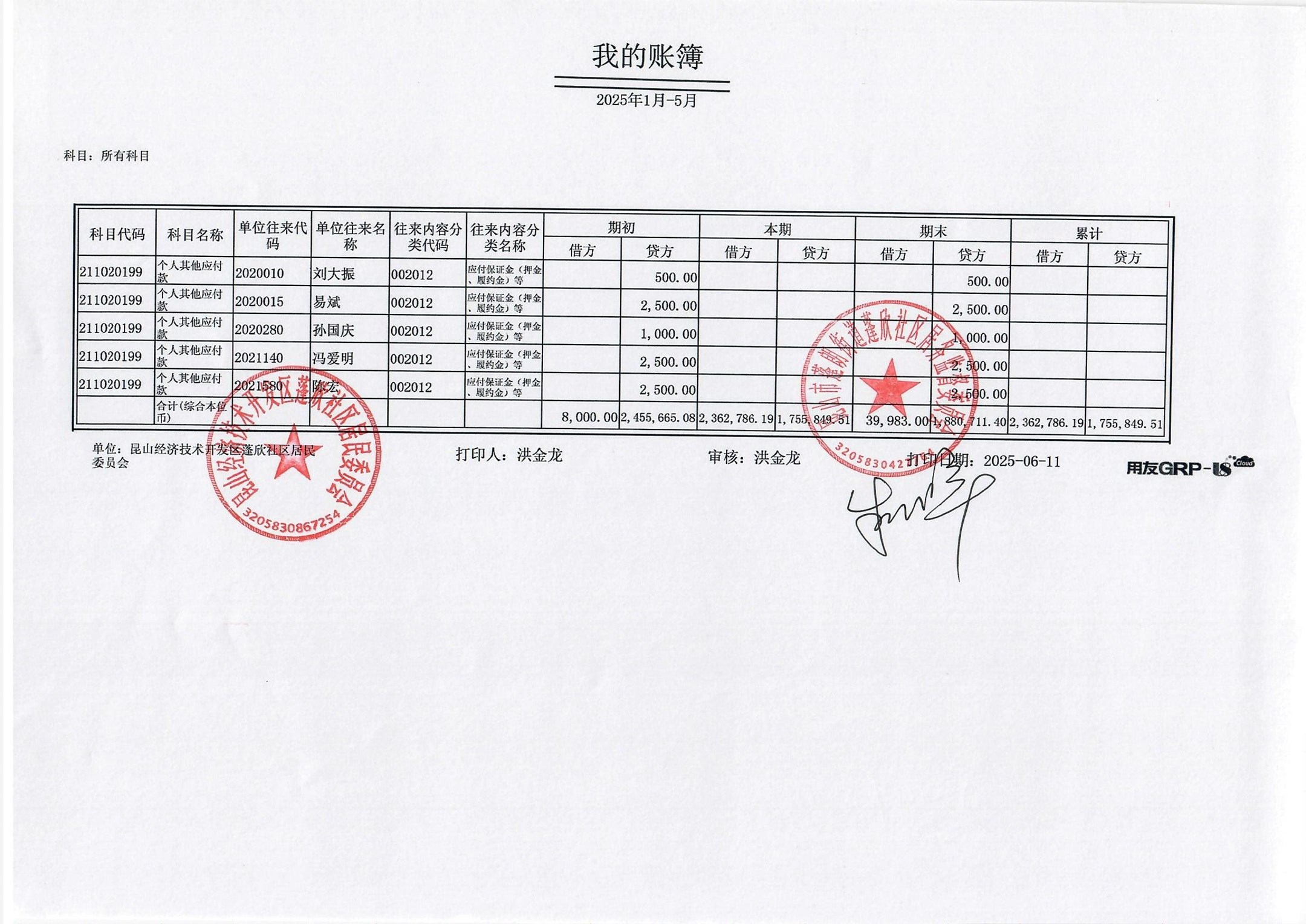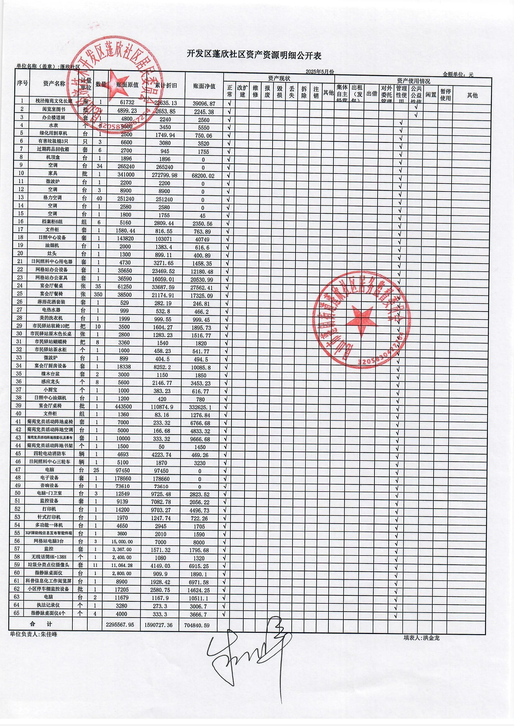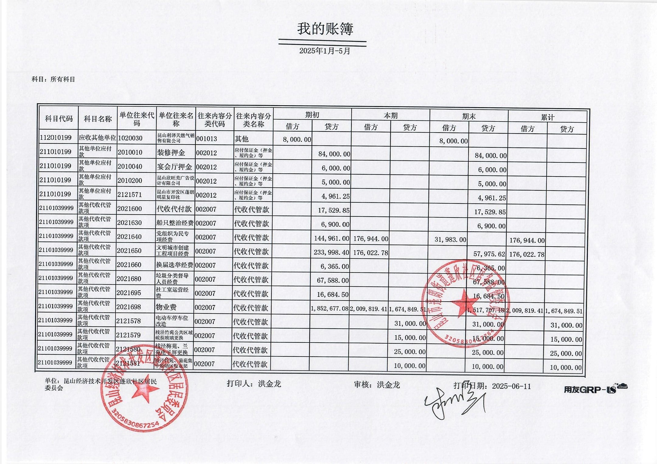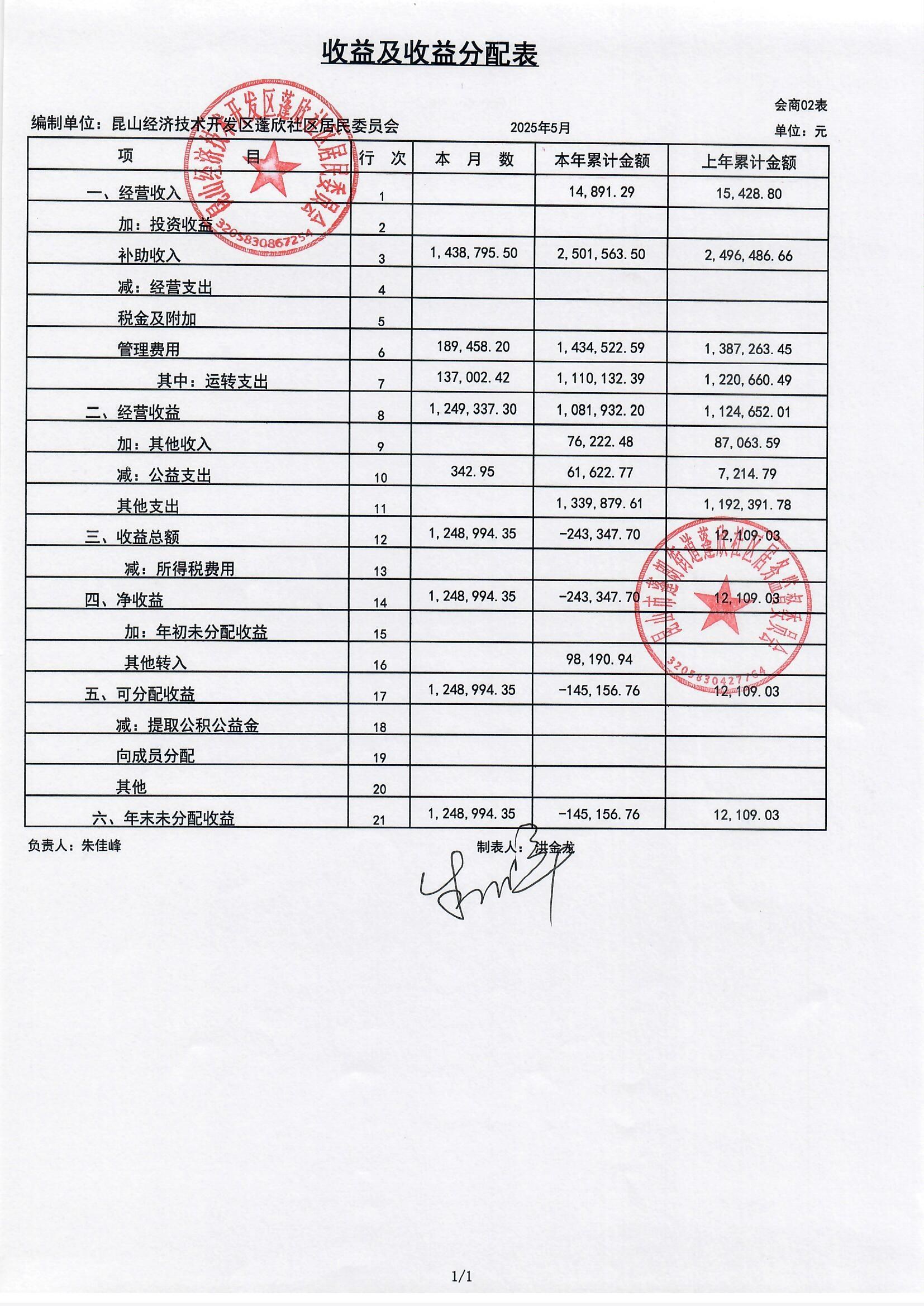 2025年5月份蓬欣社區(qū)財務(wù)公開