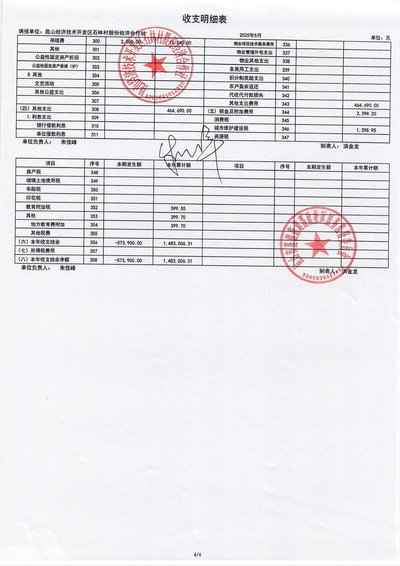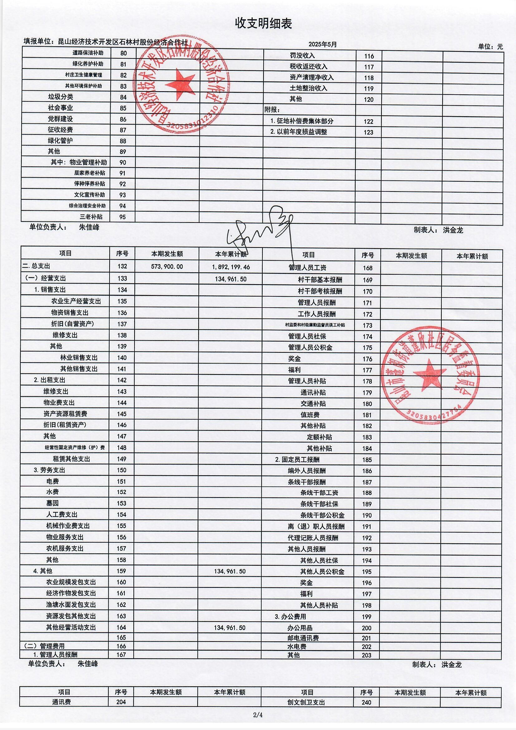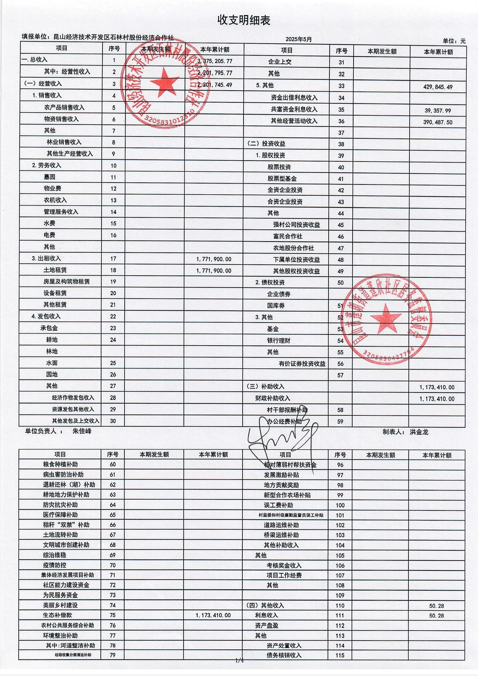 2025年5月份石林村股份經(jīng)濟合作社財務(wù)公開
