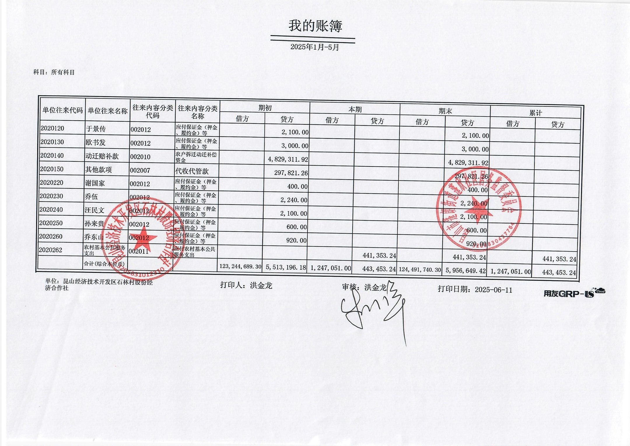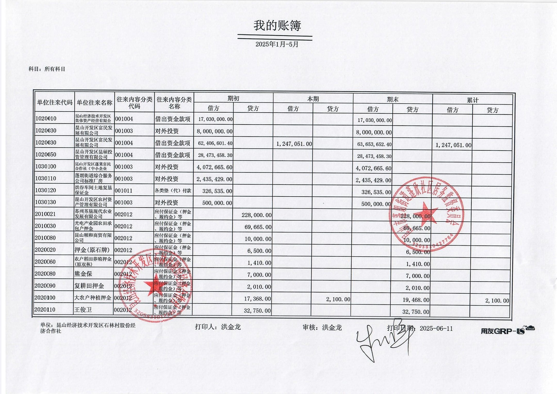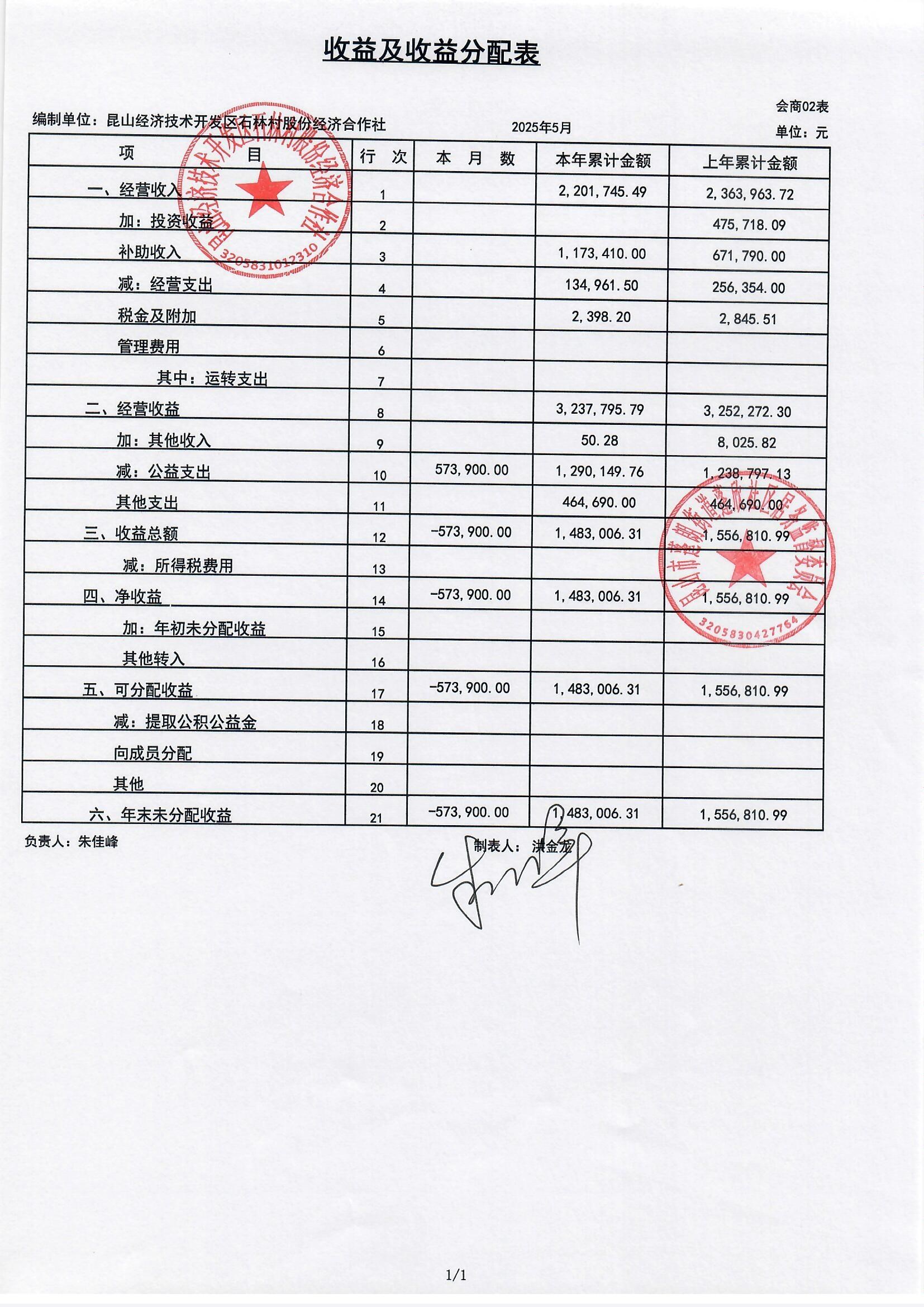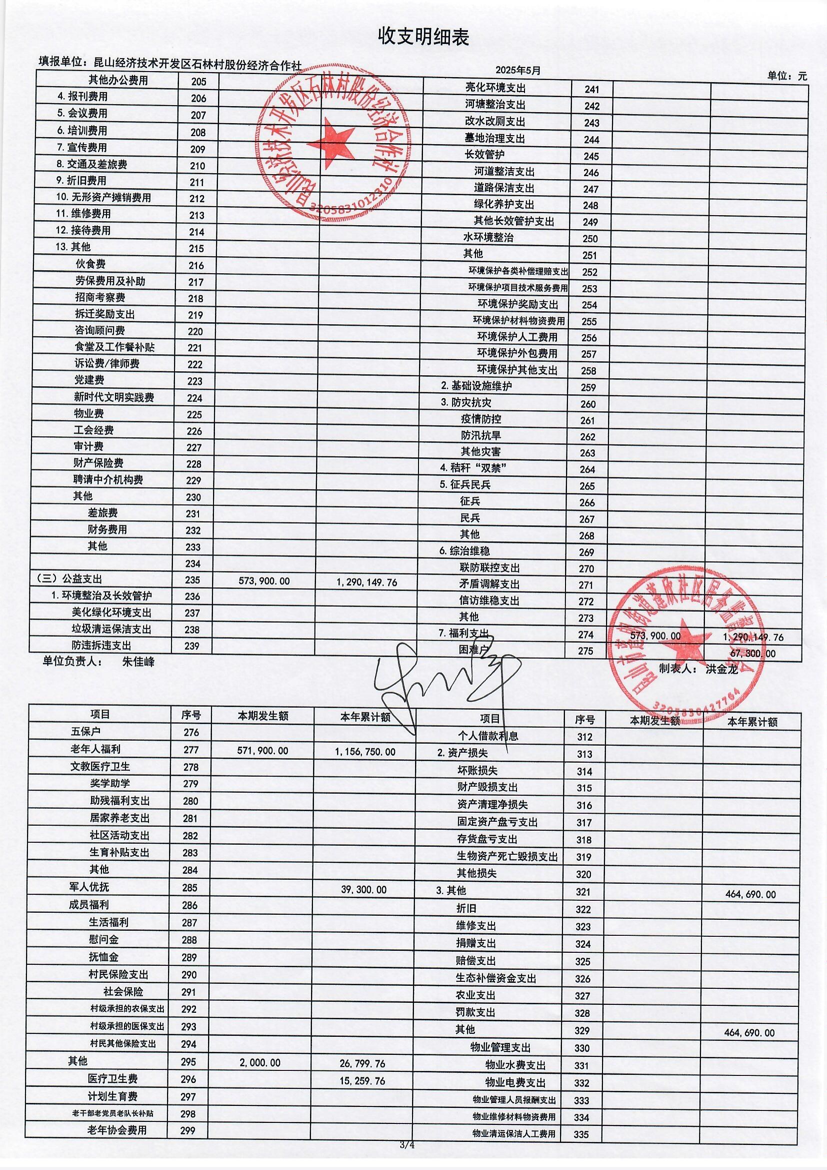 2025年5月份石林村股份經(jīng)濟合作社財務(wù)公開