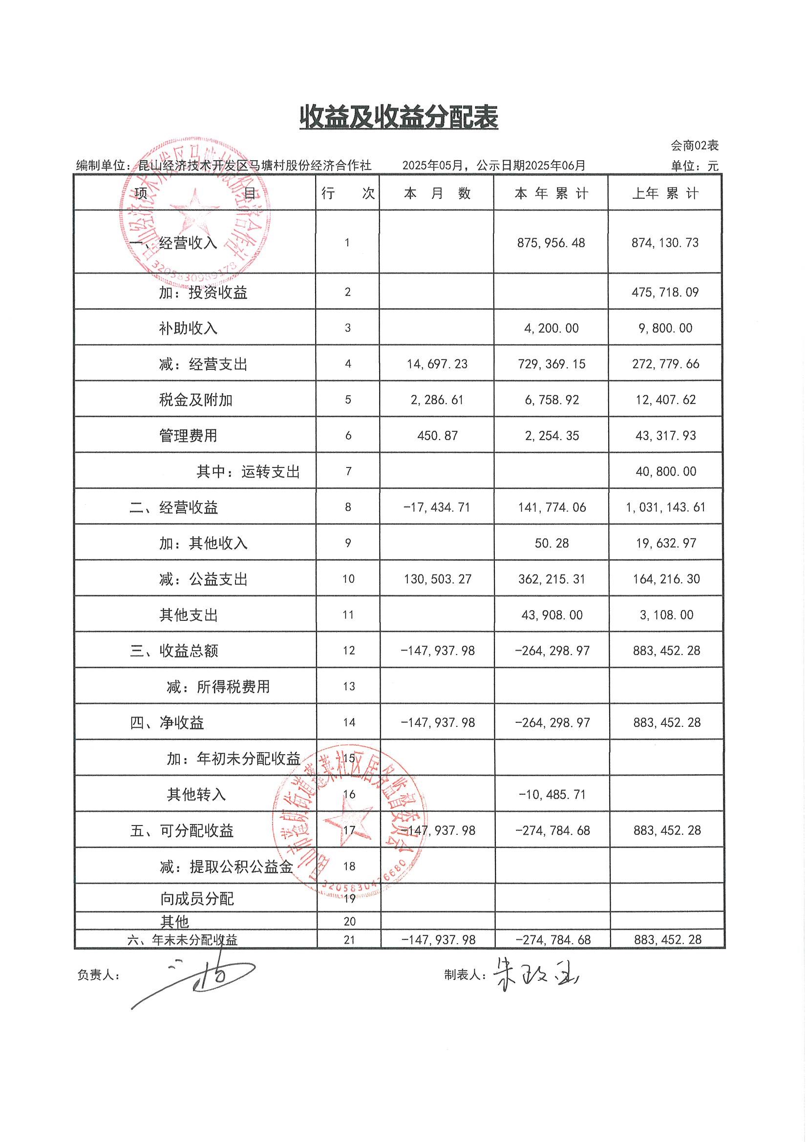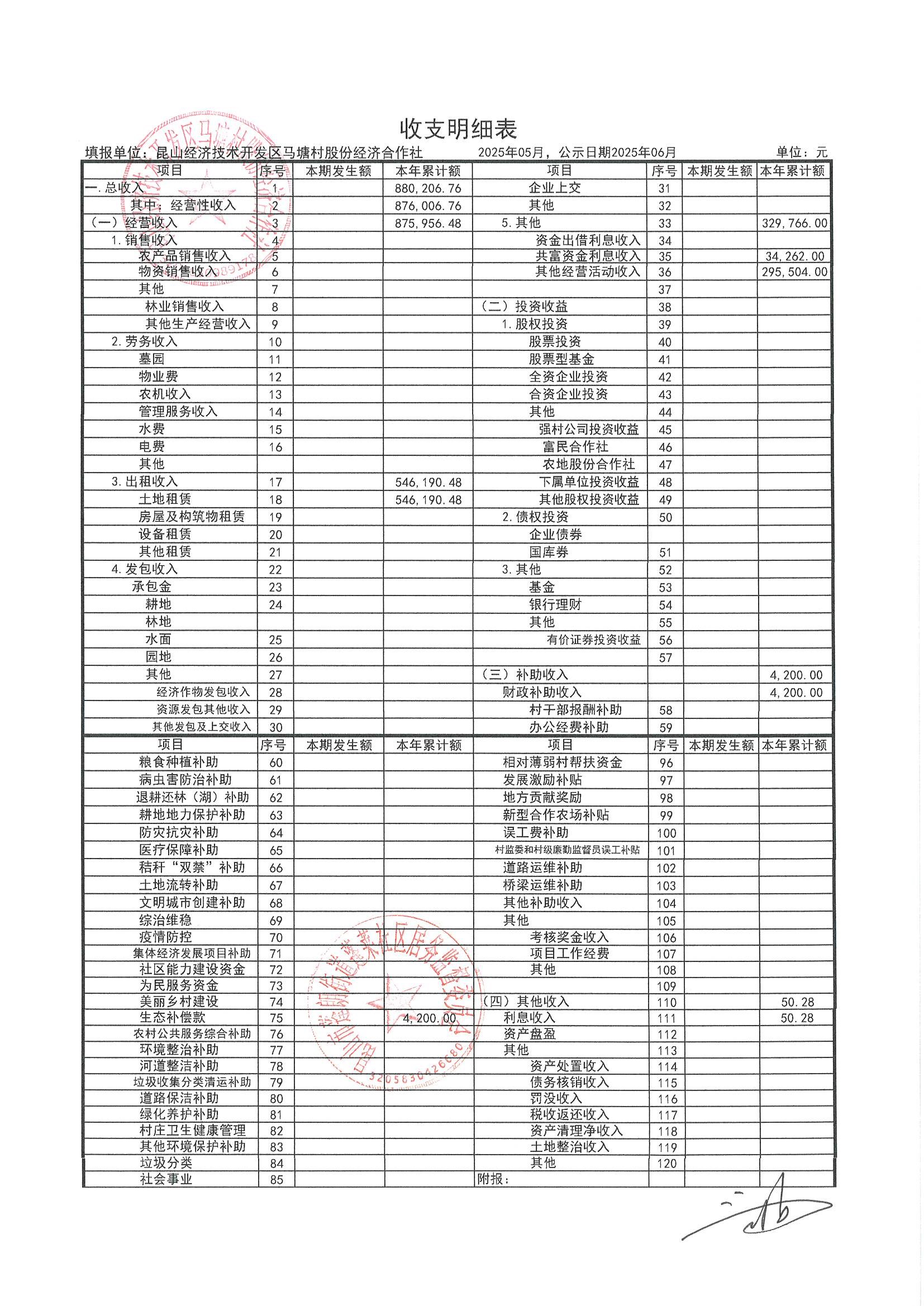 2025年5月財(cái)務(wù)公開(馬塘村股份經(jīng)濟(jì)合作社)