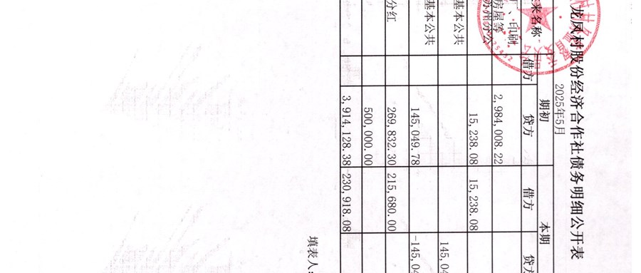 龍鳳村股份經(jīng)濟合作社2025年6月份財務(wù)公開