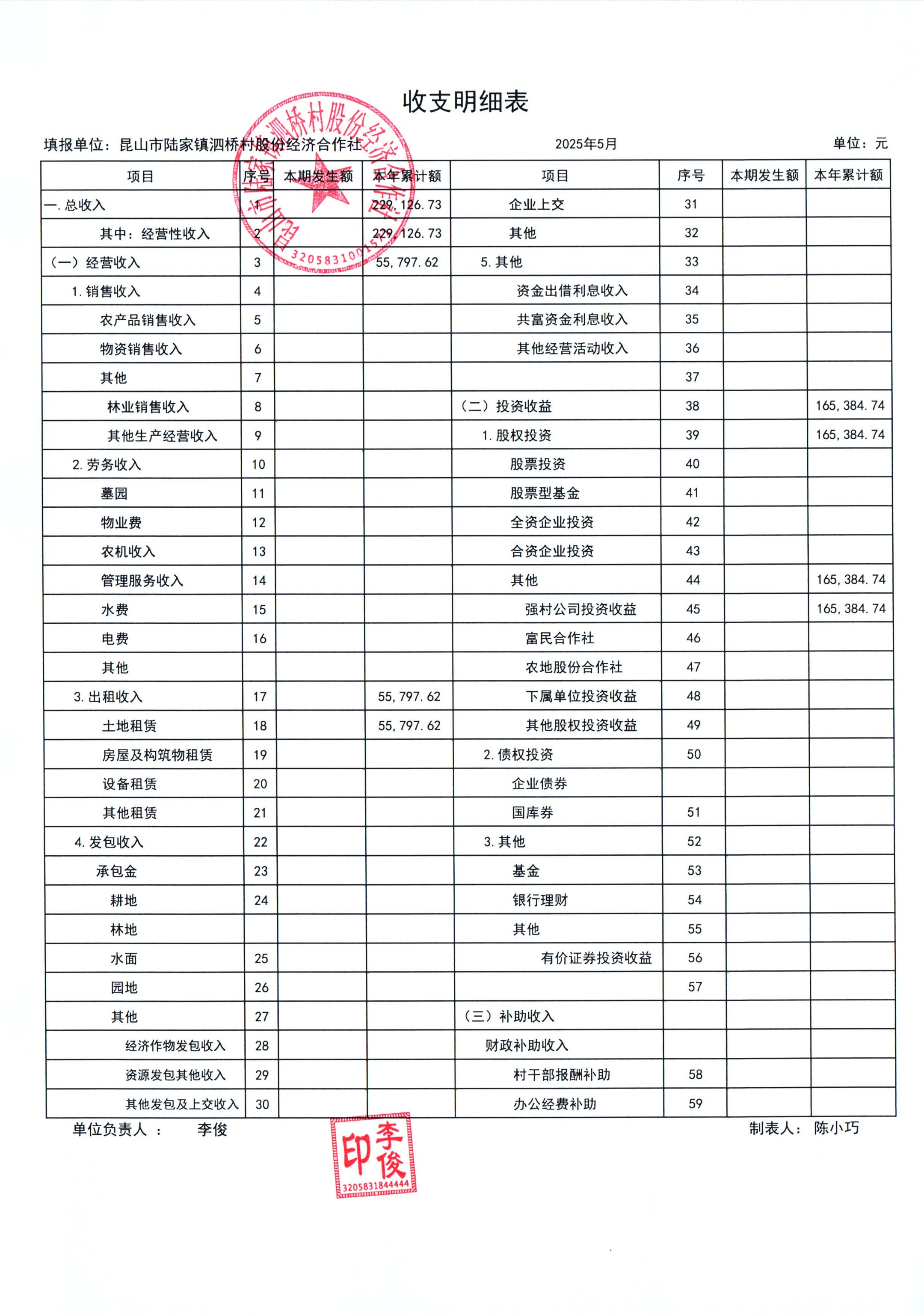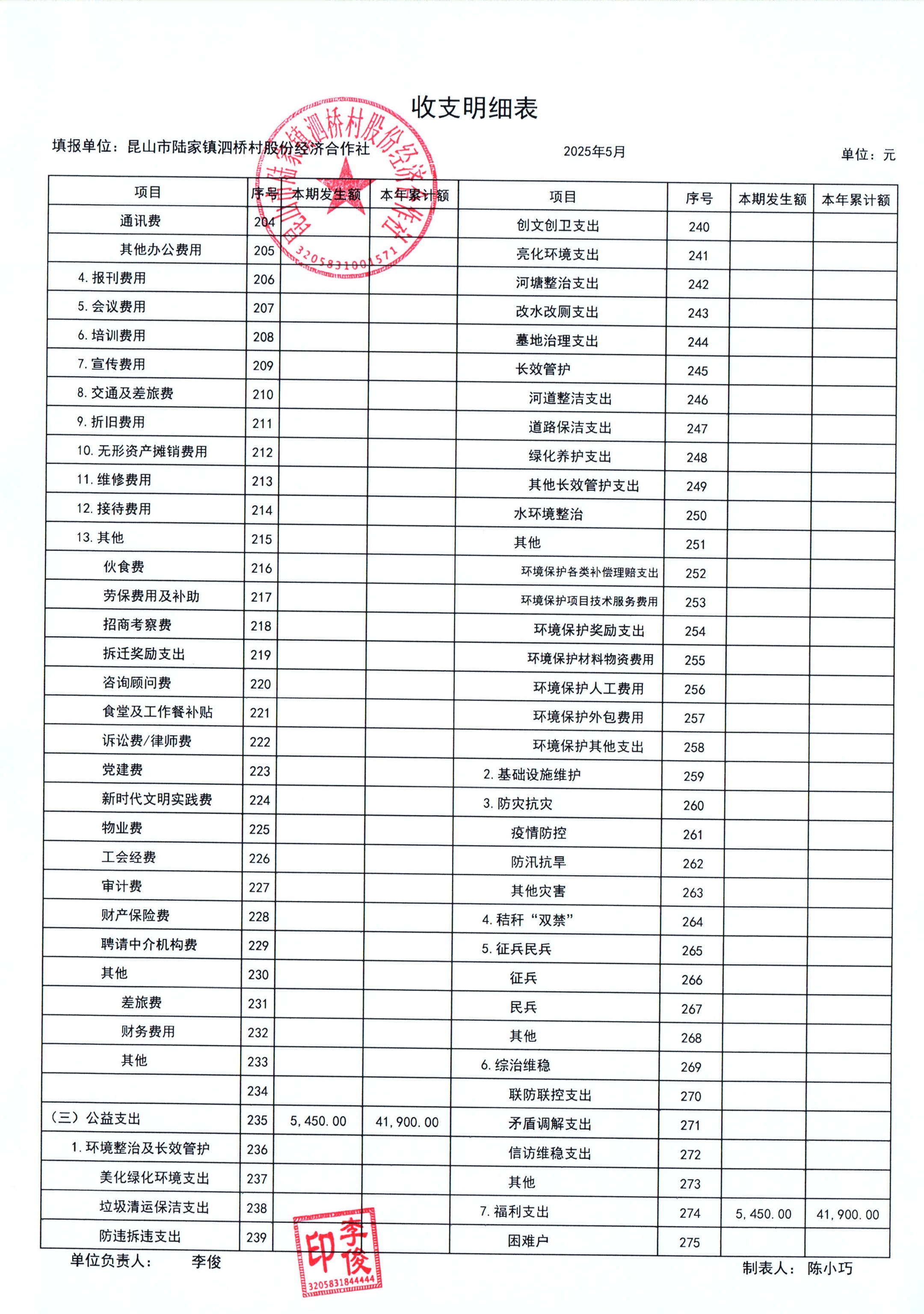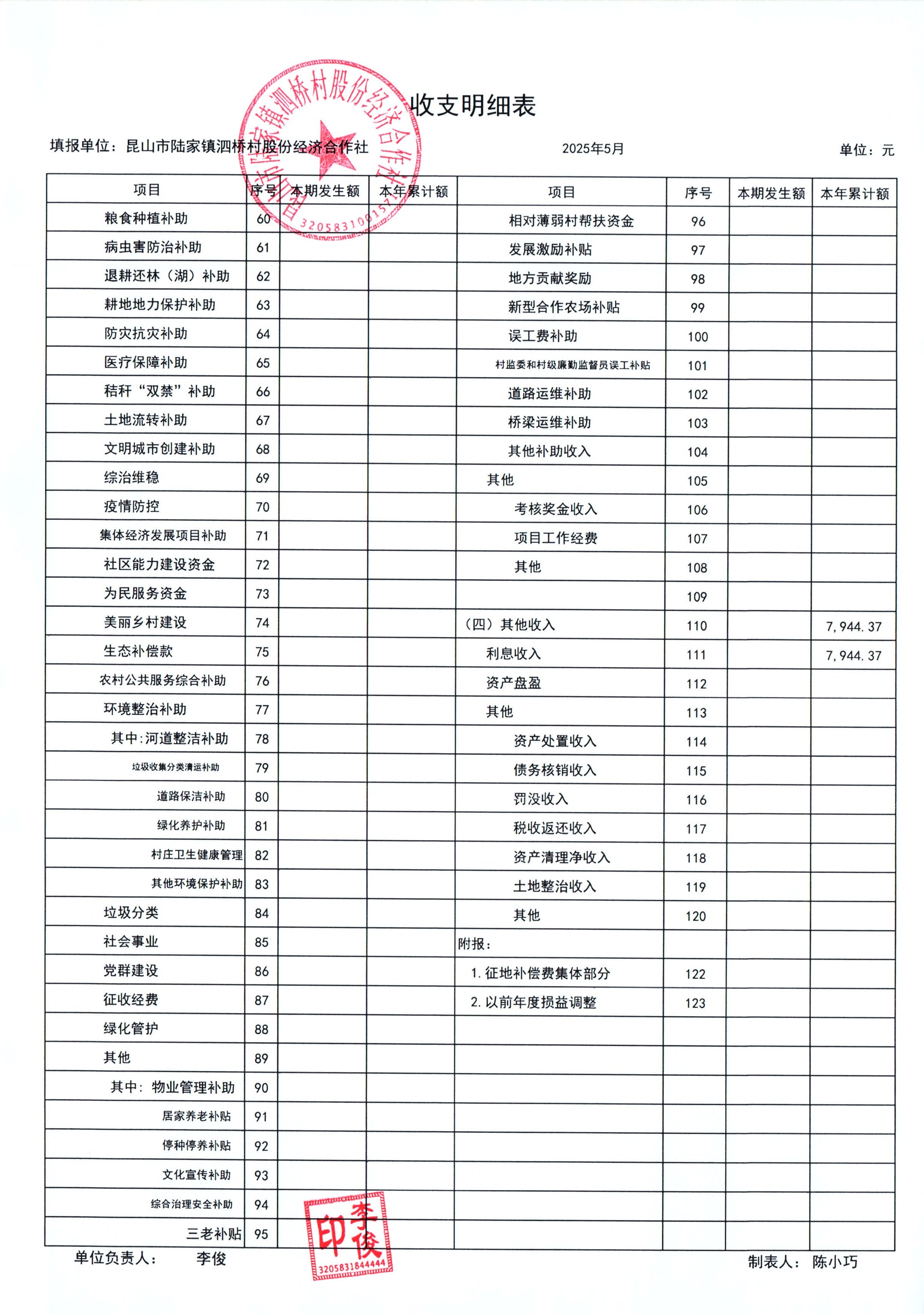 2025年泗橋村股份經(jīng)濟(jì)合作社5月財(cái)務(wù)公開