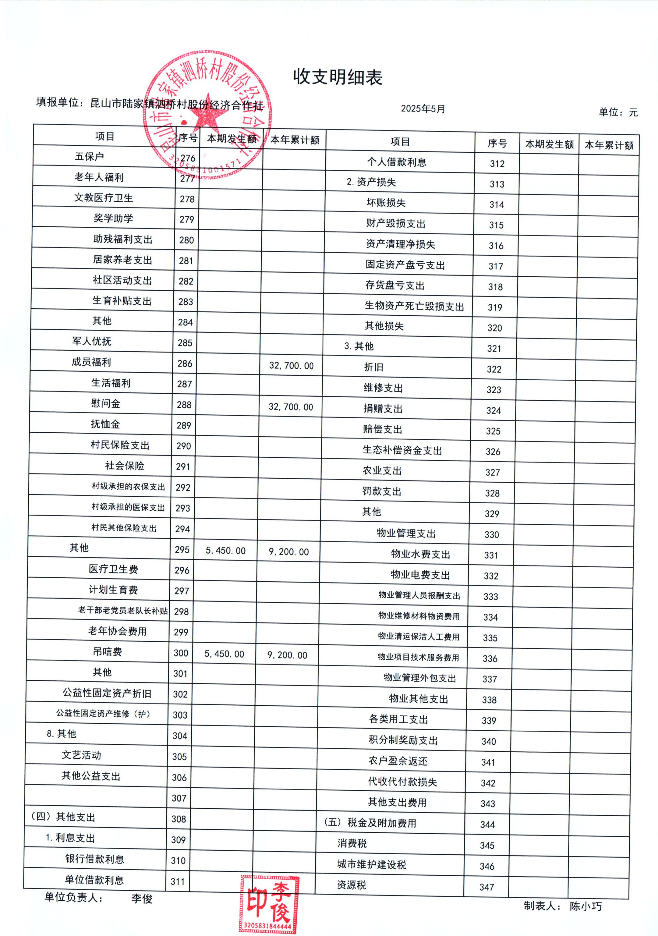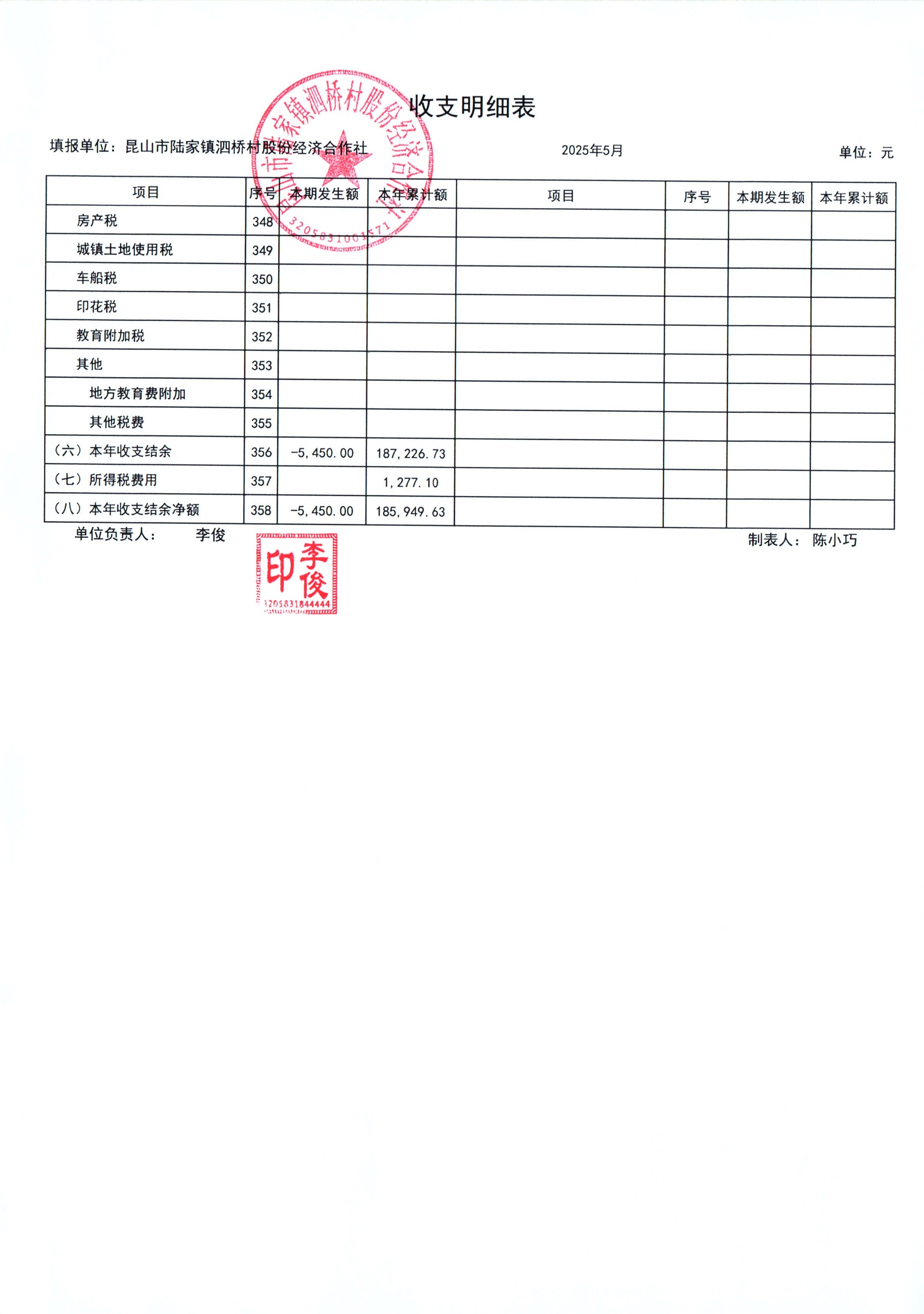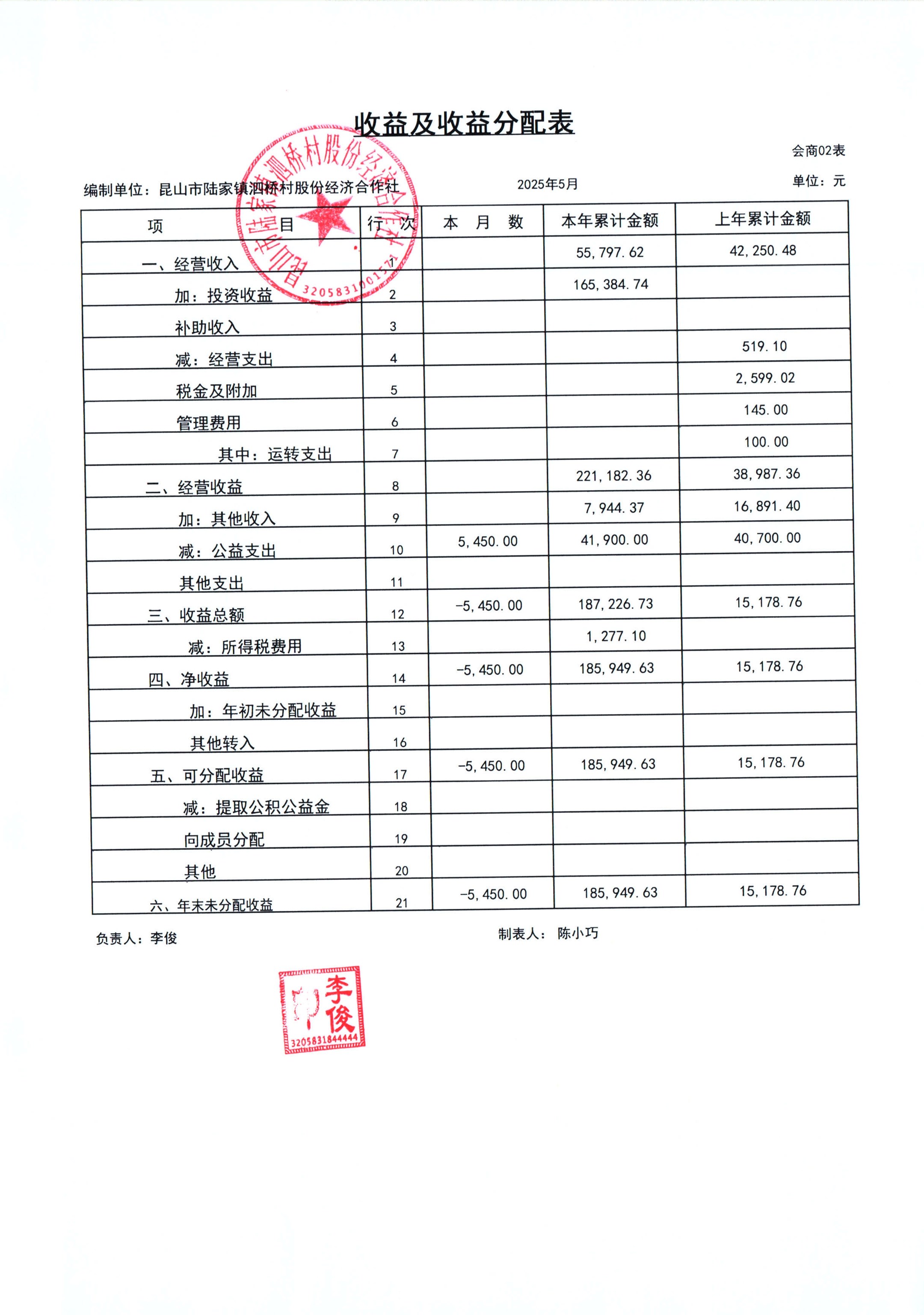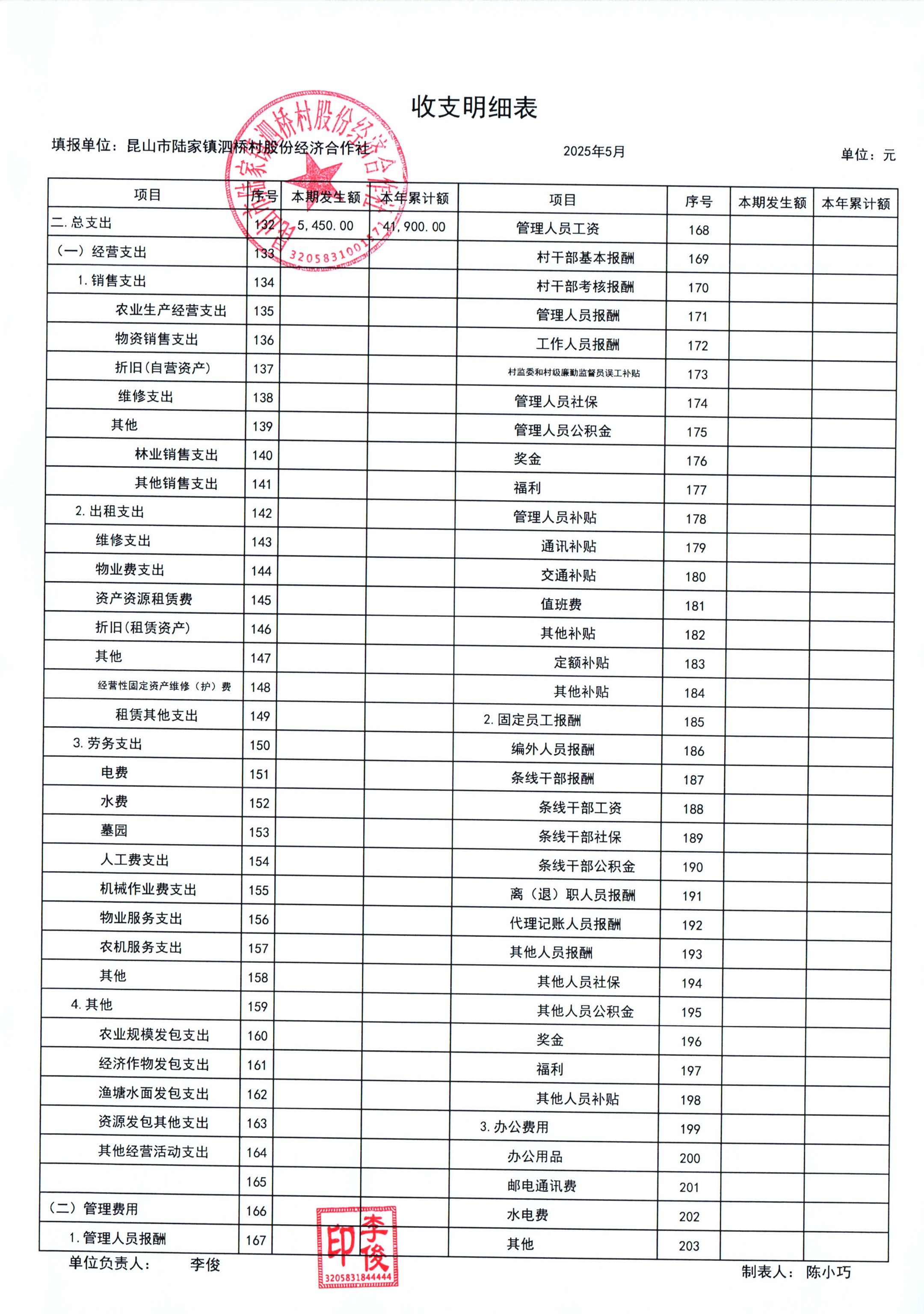 2025年泗橋村股份經(jīng)濟(jì)合作社5月財(cái)務(wù)公開