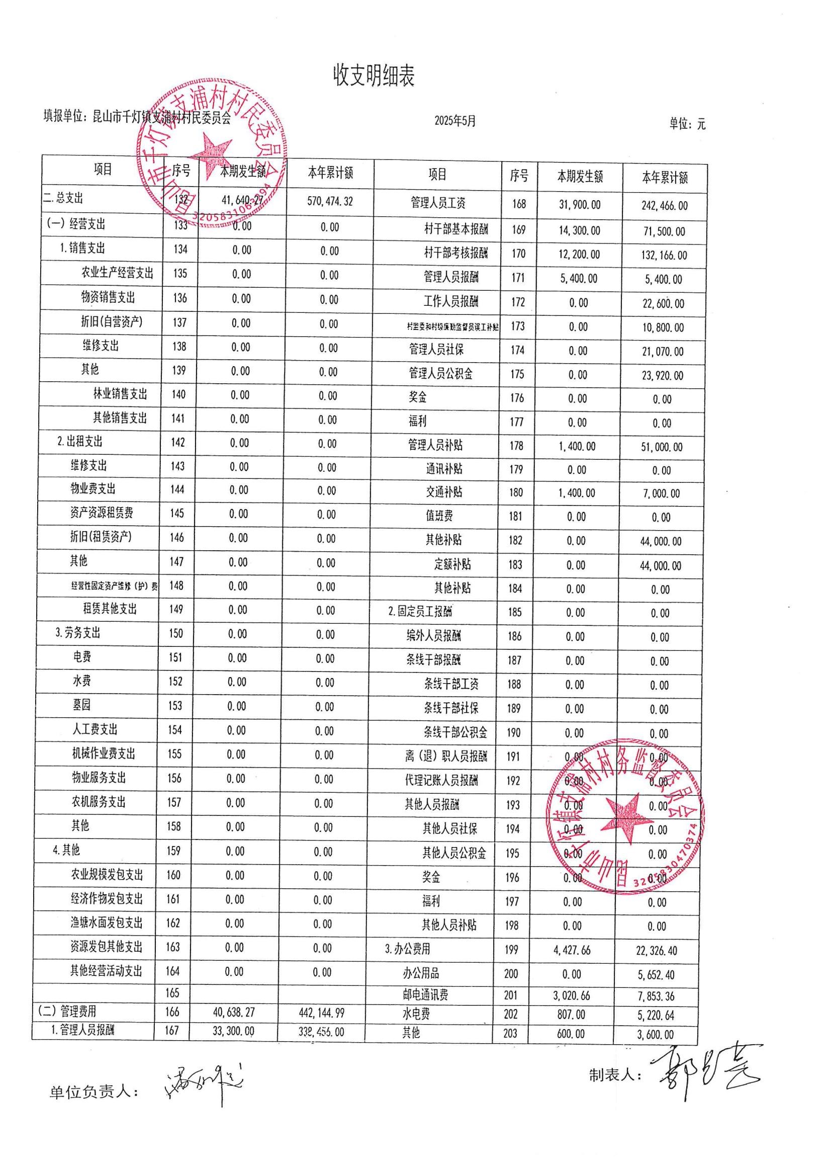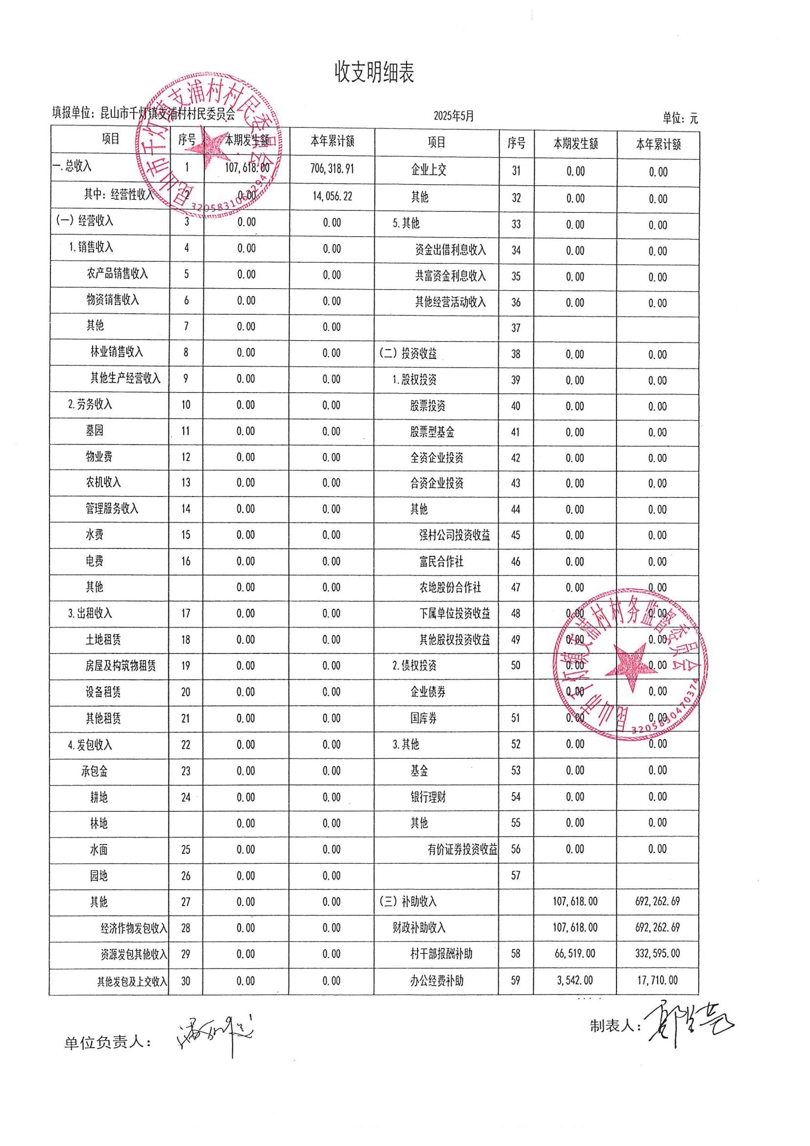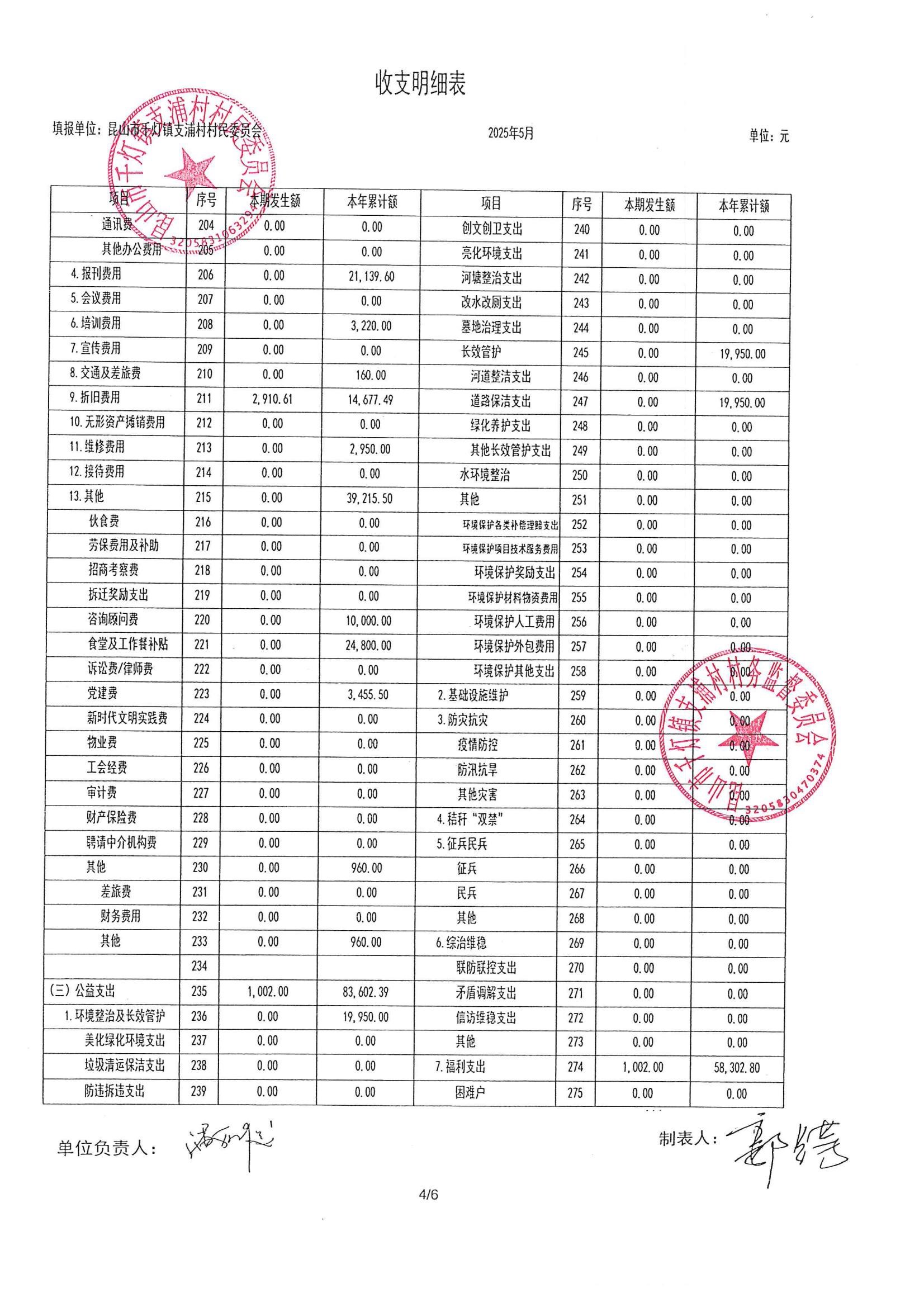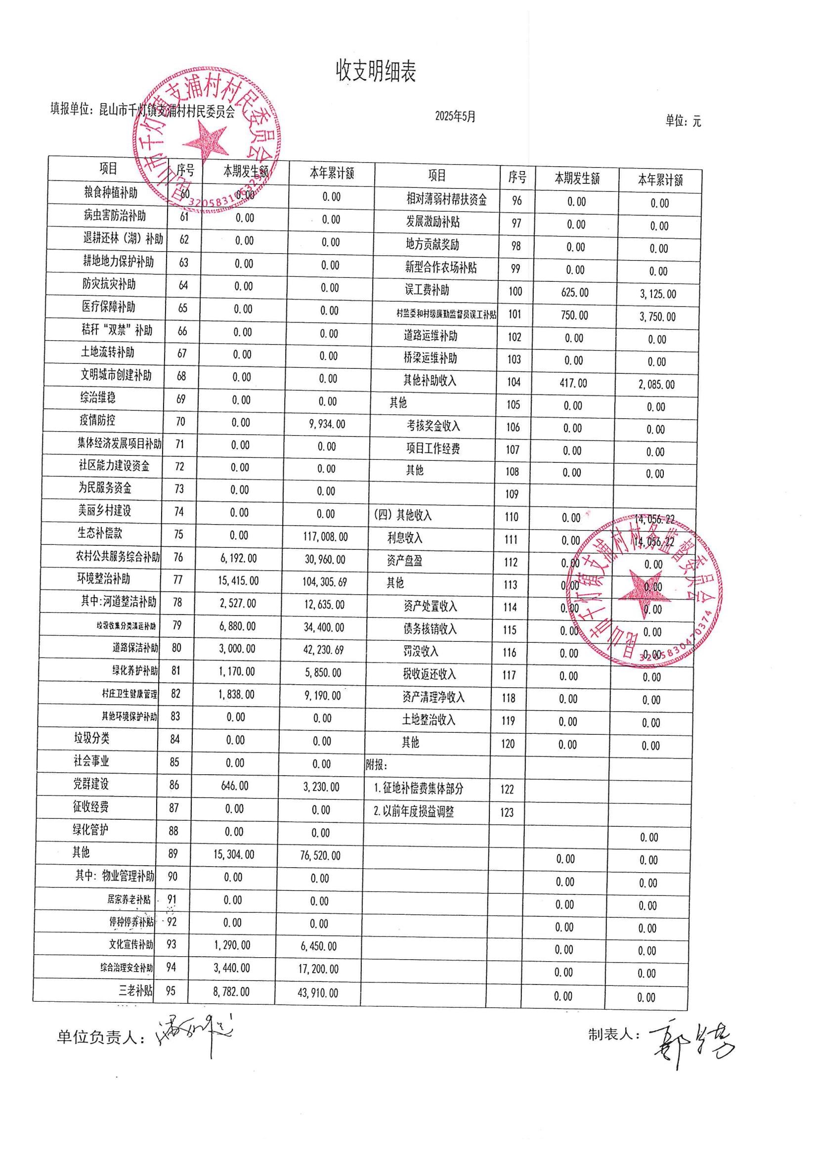 支浦村2025年5月份財(cái)務(wù)公開(kāi)