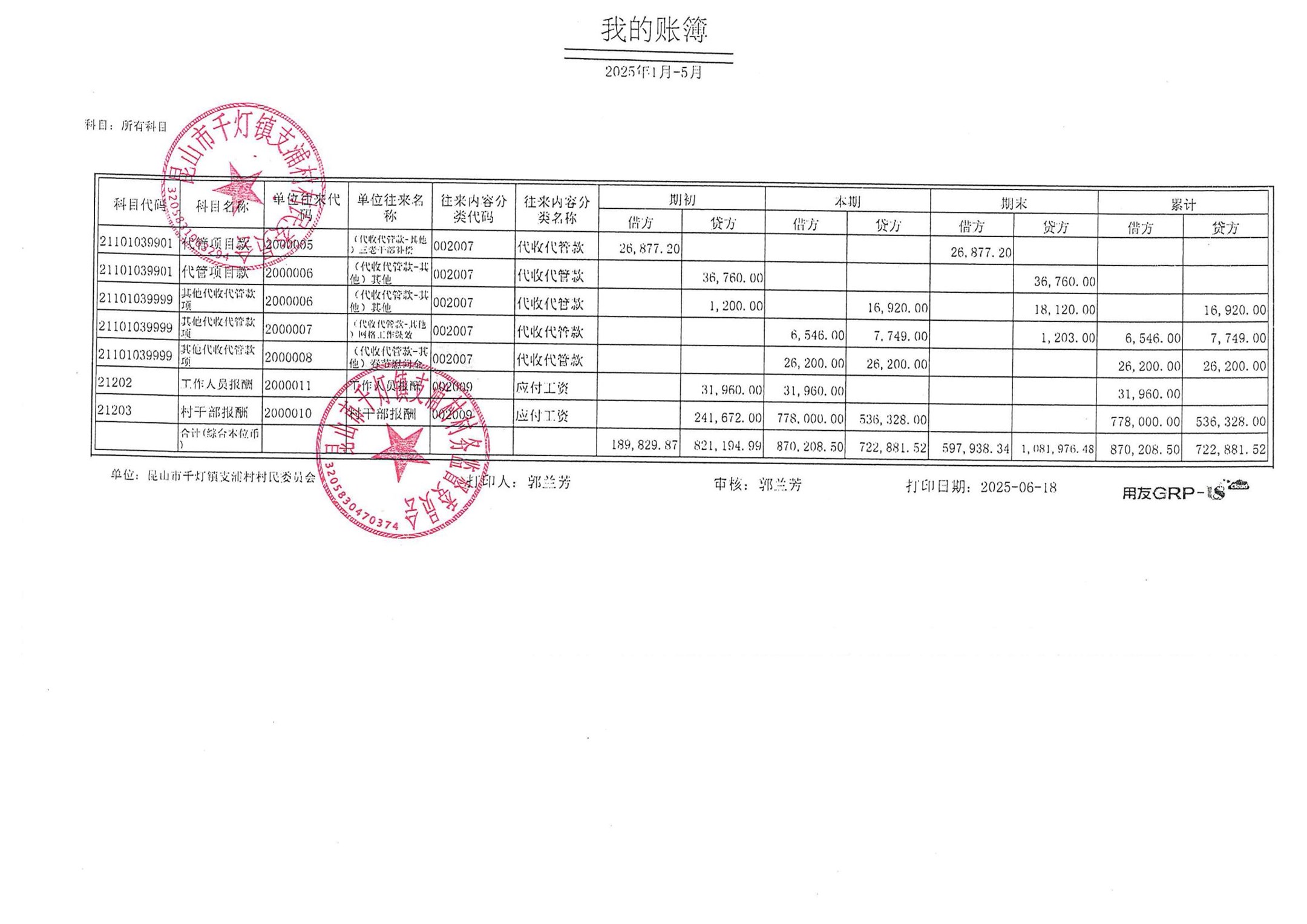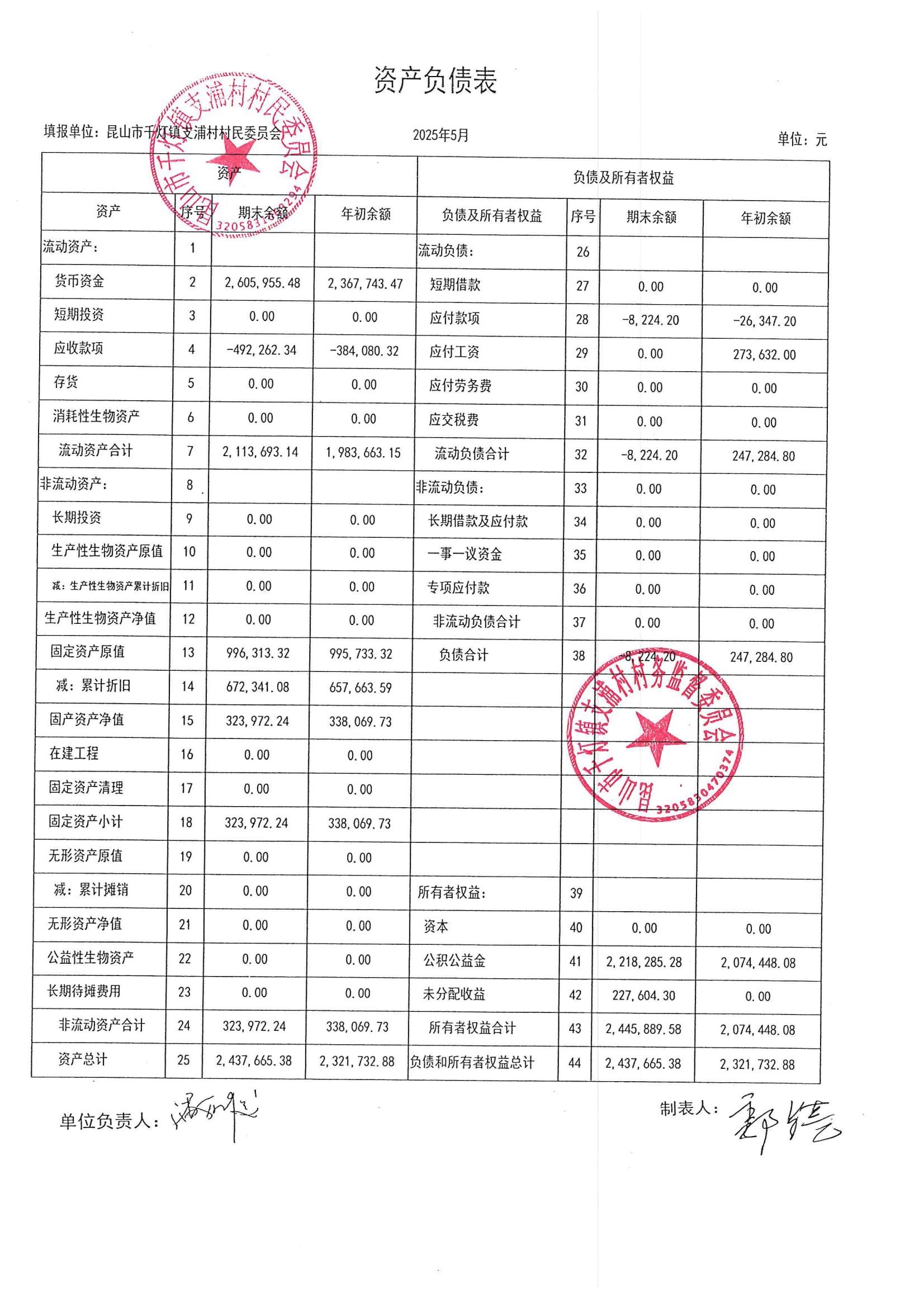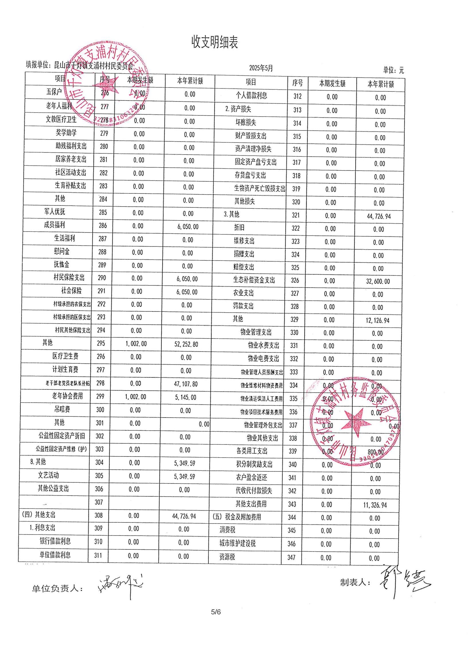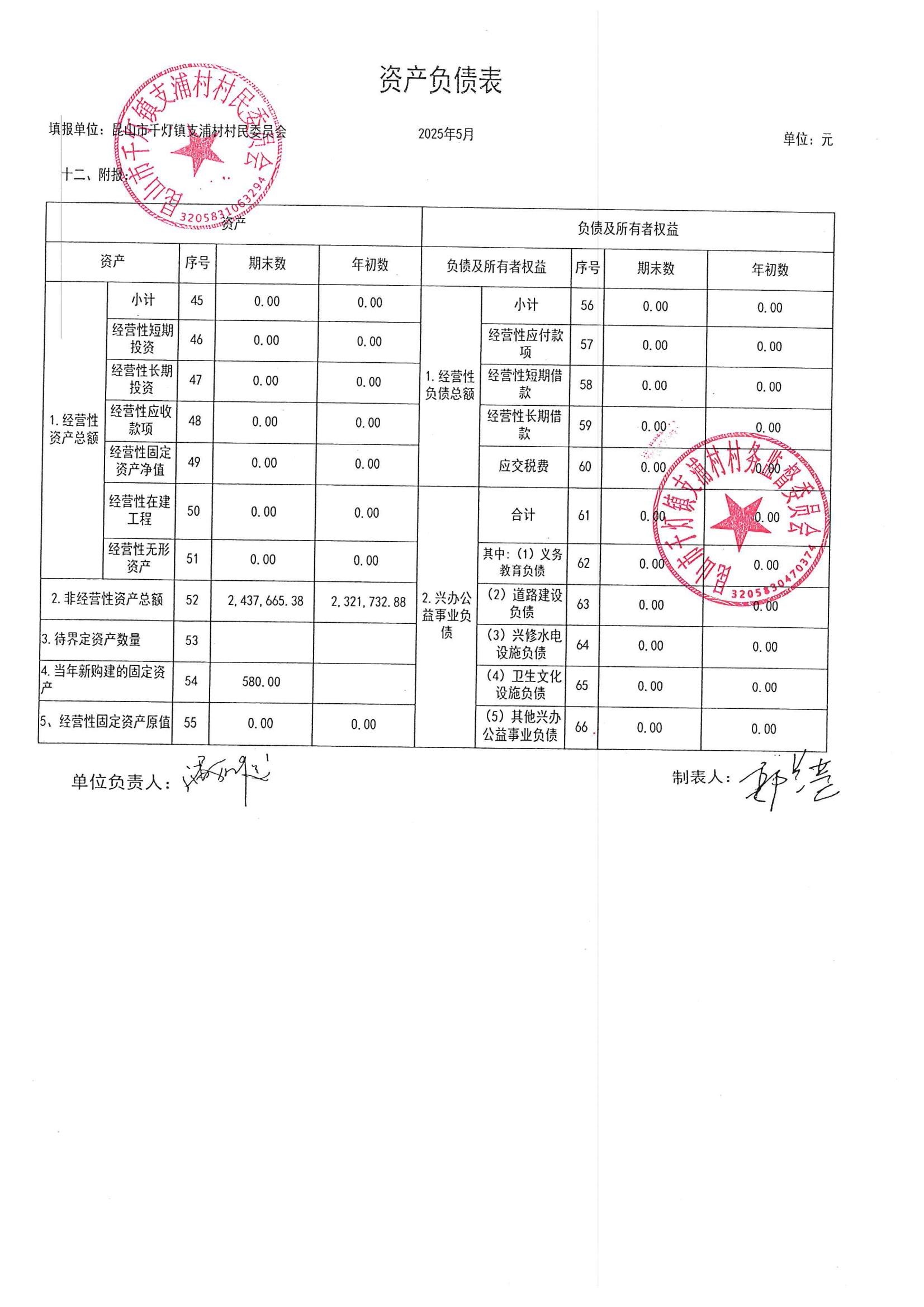 支浦村2025年5月份財(cái)務(wù)公開(kāi)