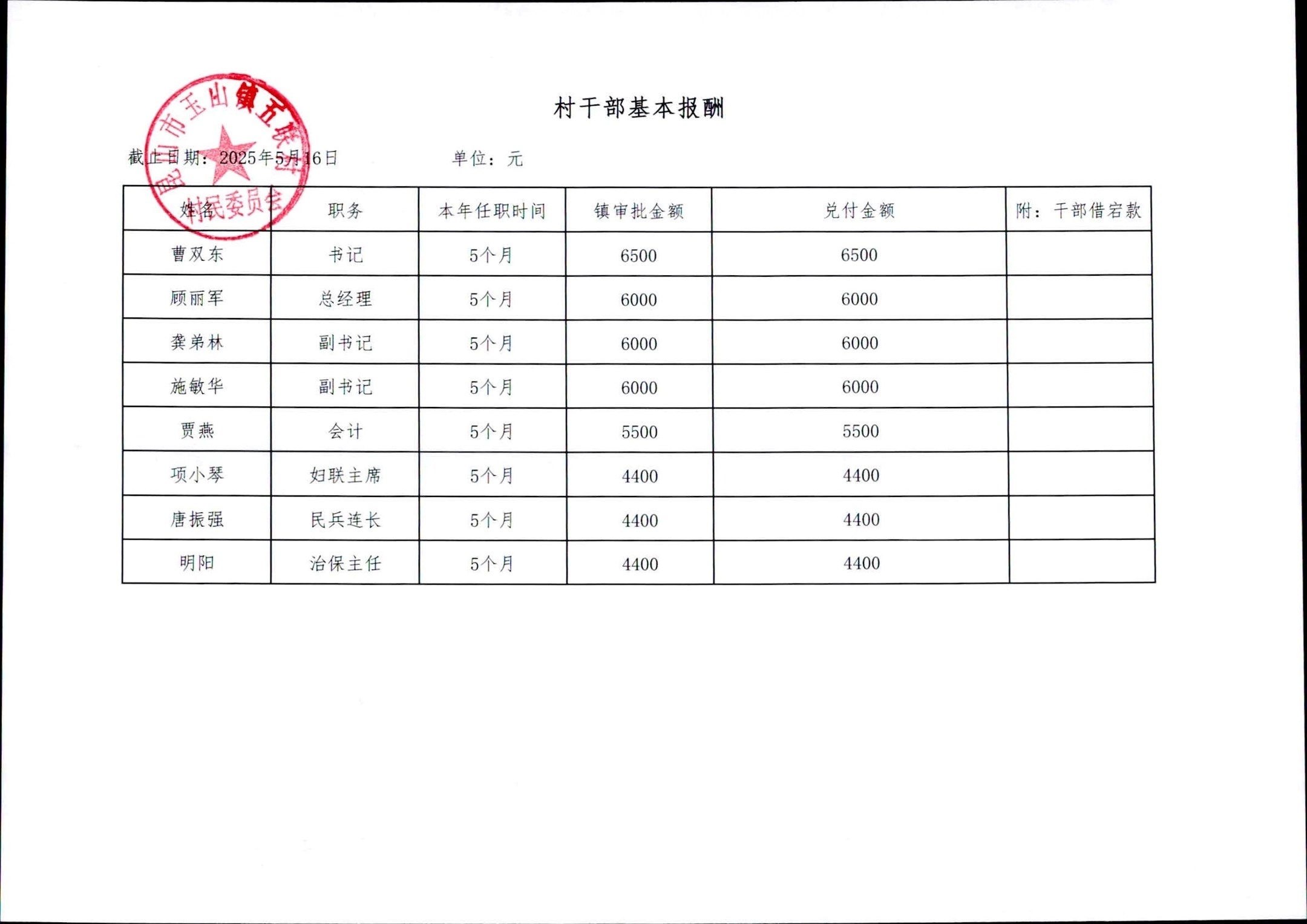 2025年5月份村干部基本報(bào)酬公開公示圖