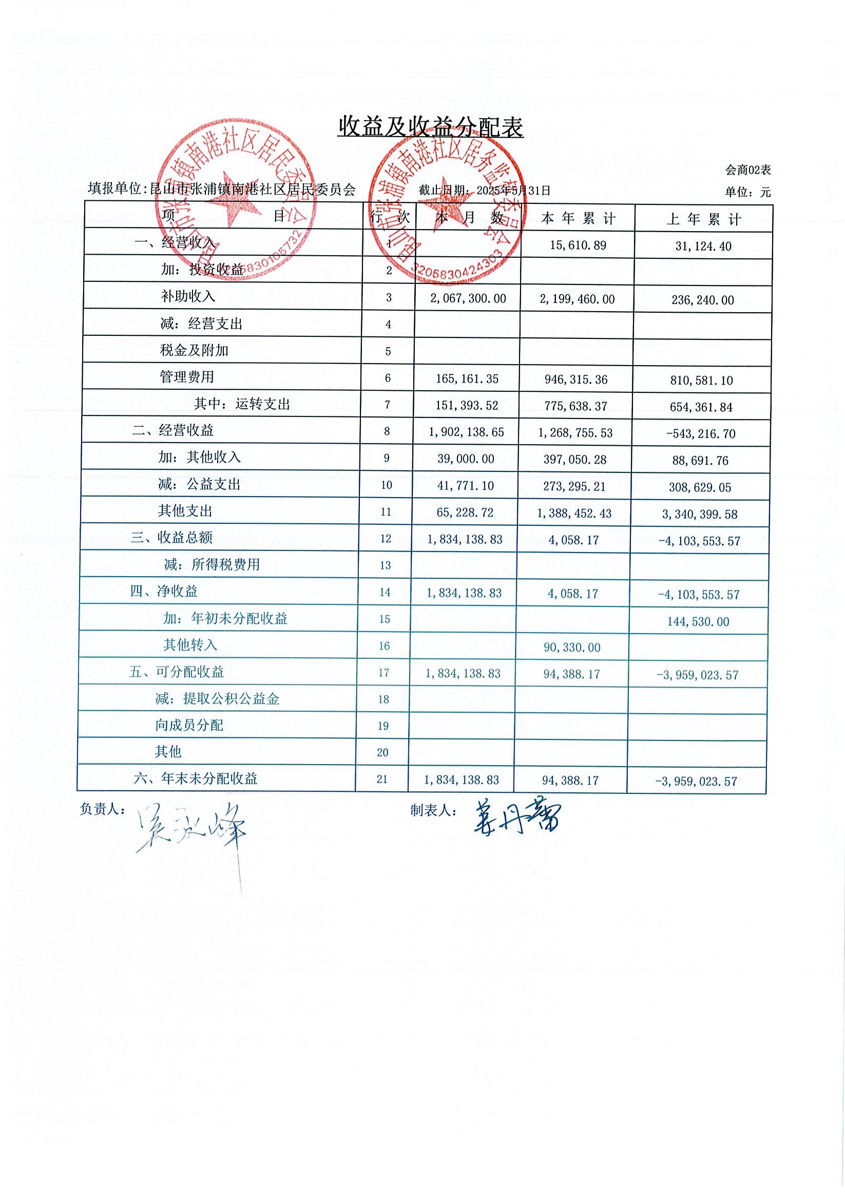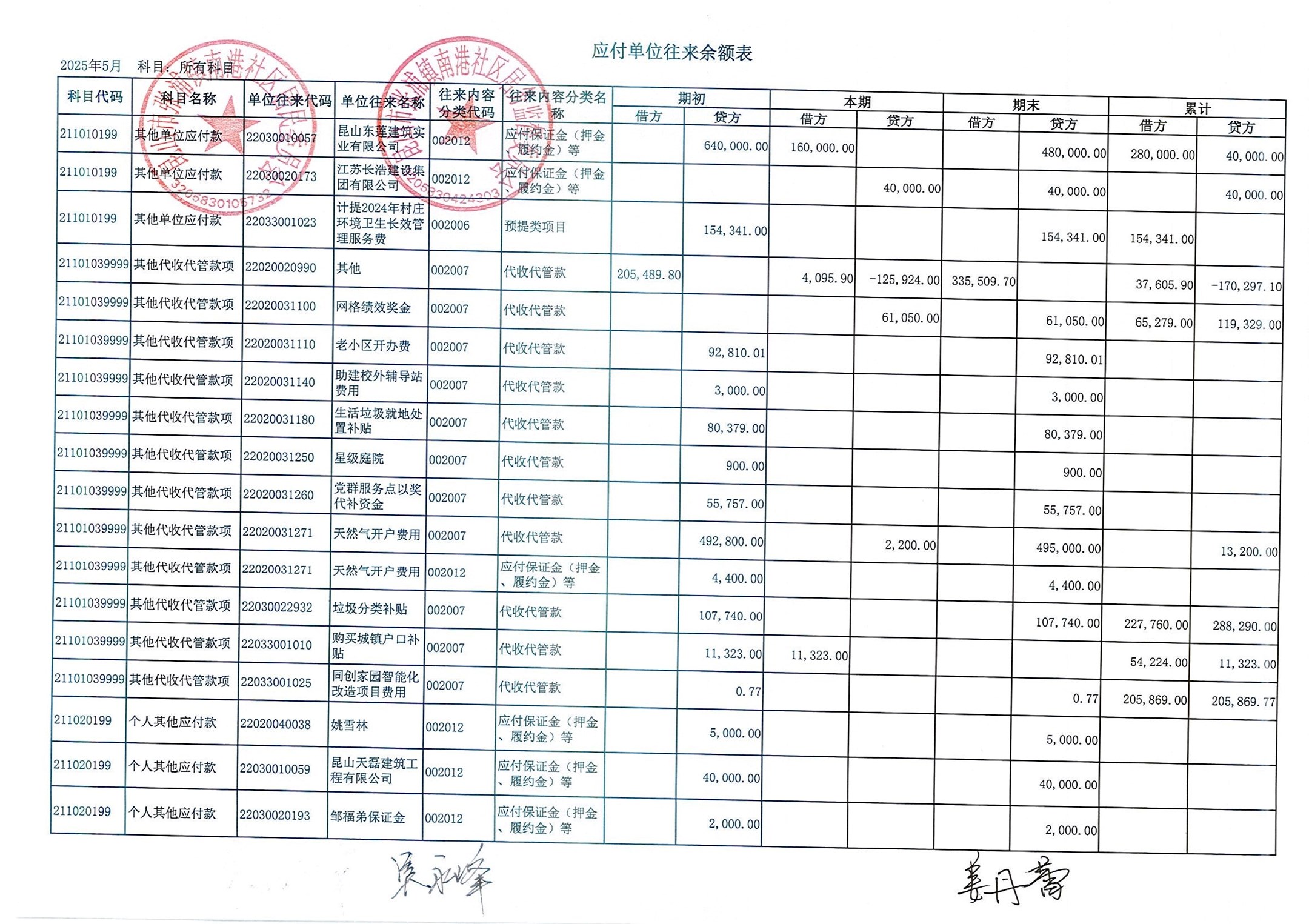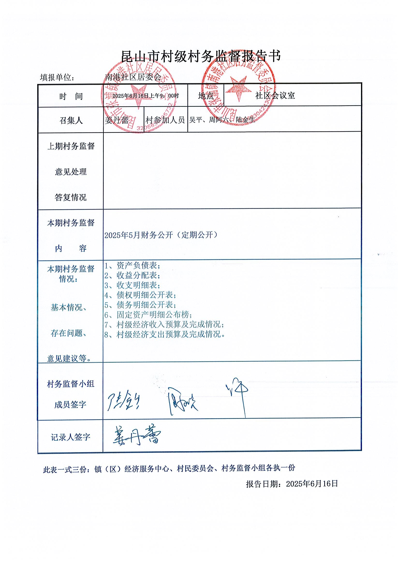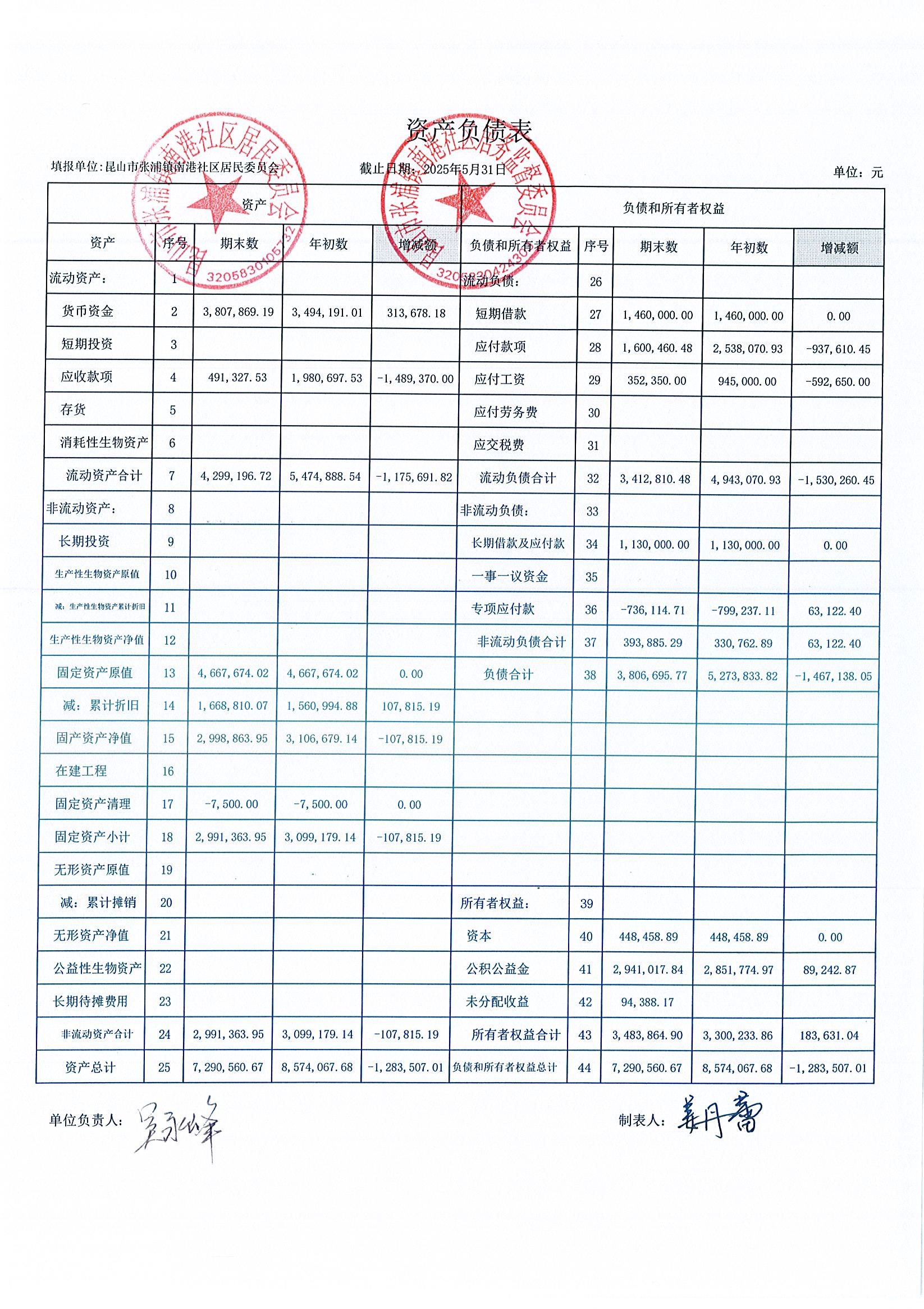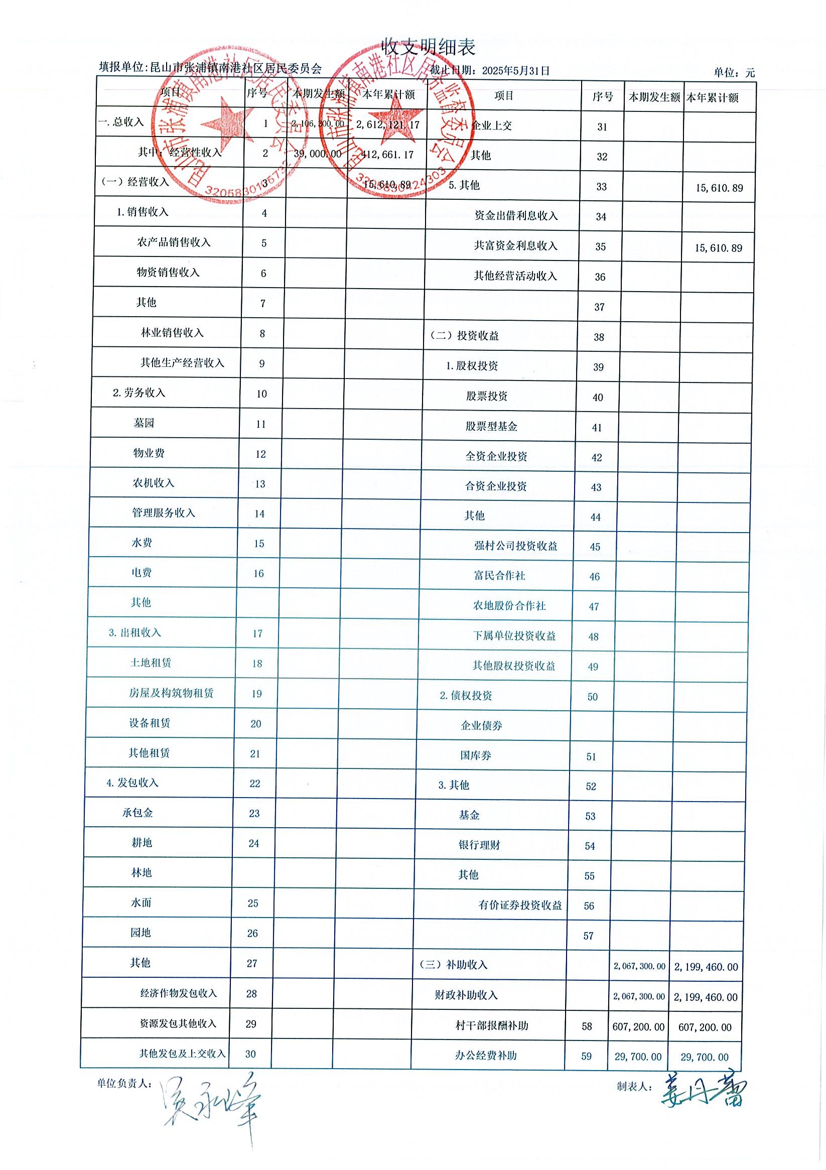 南港社區(qū)居委會2025年5月財務公開(定期公開)