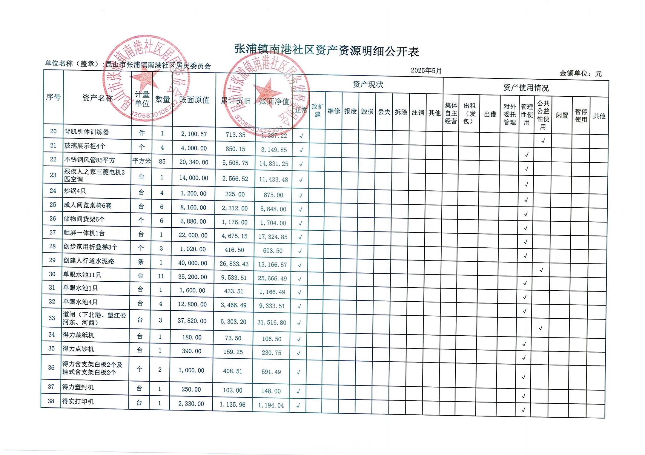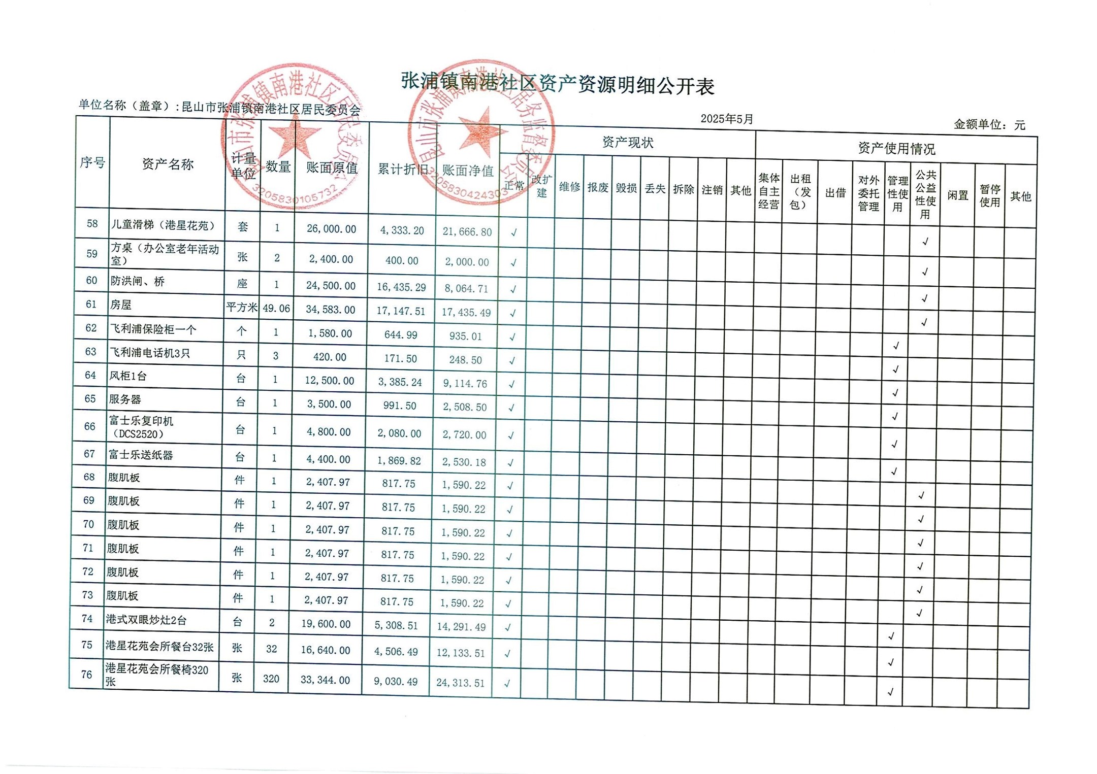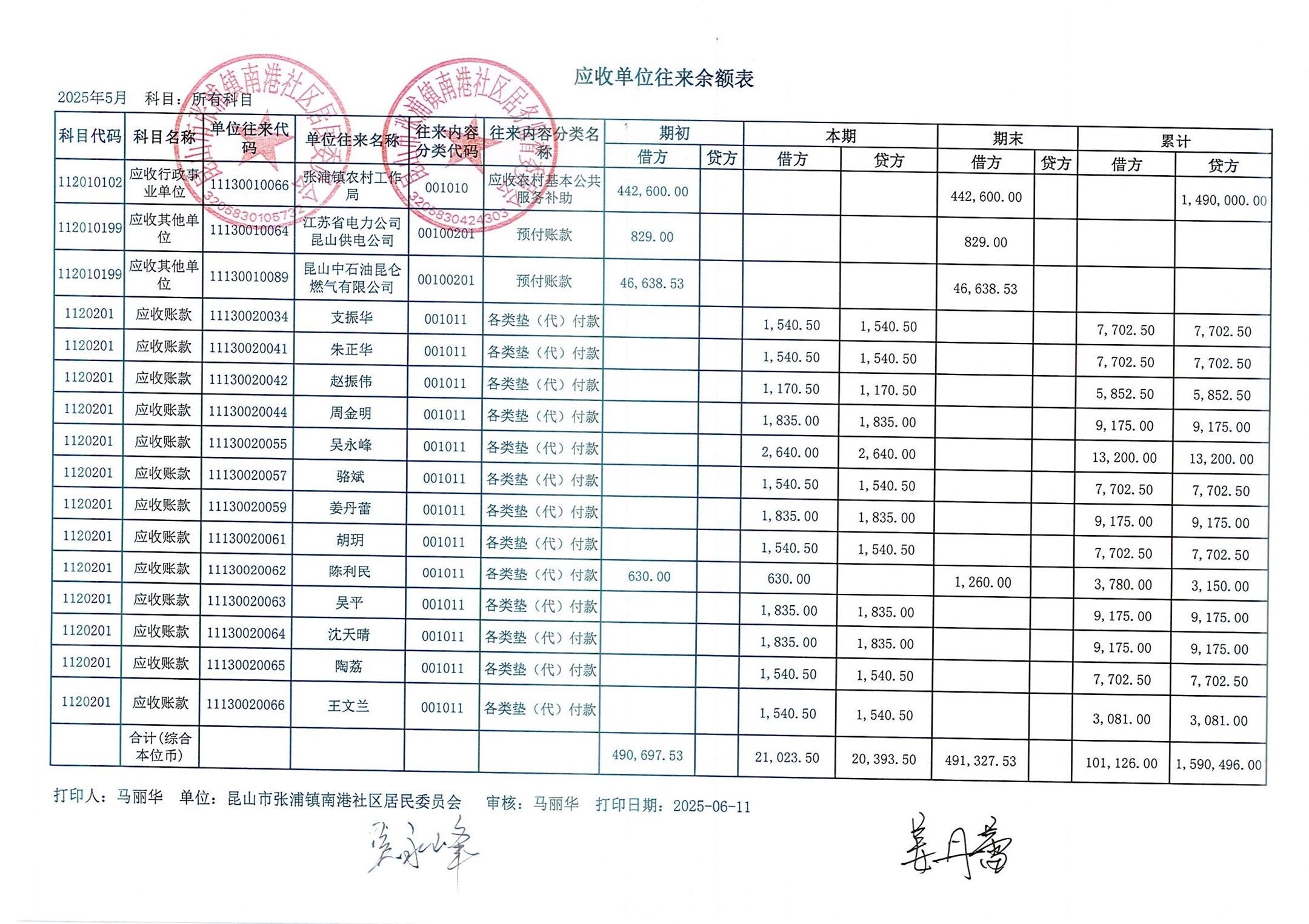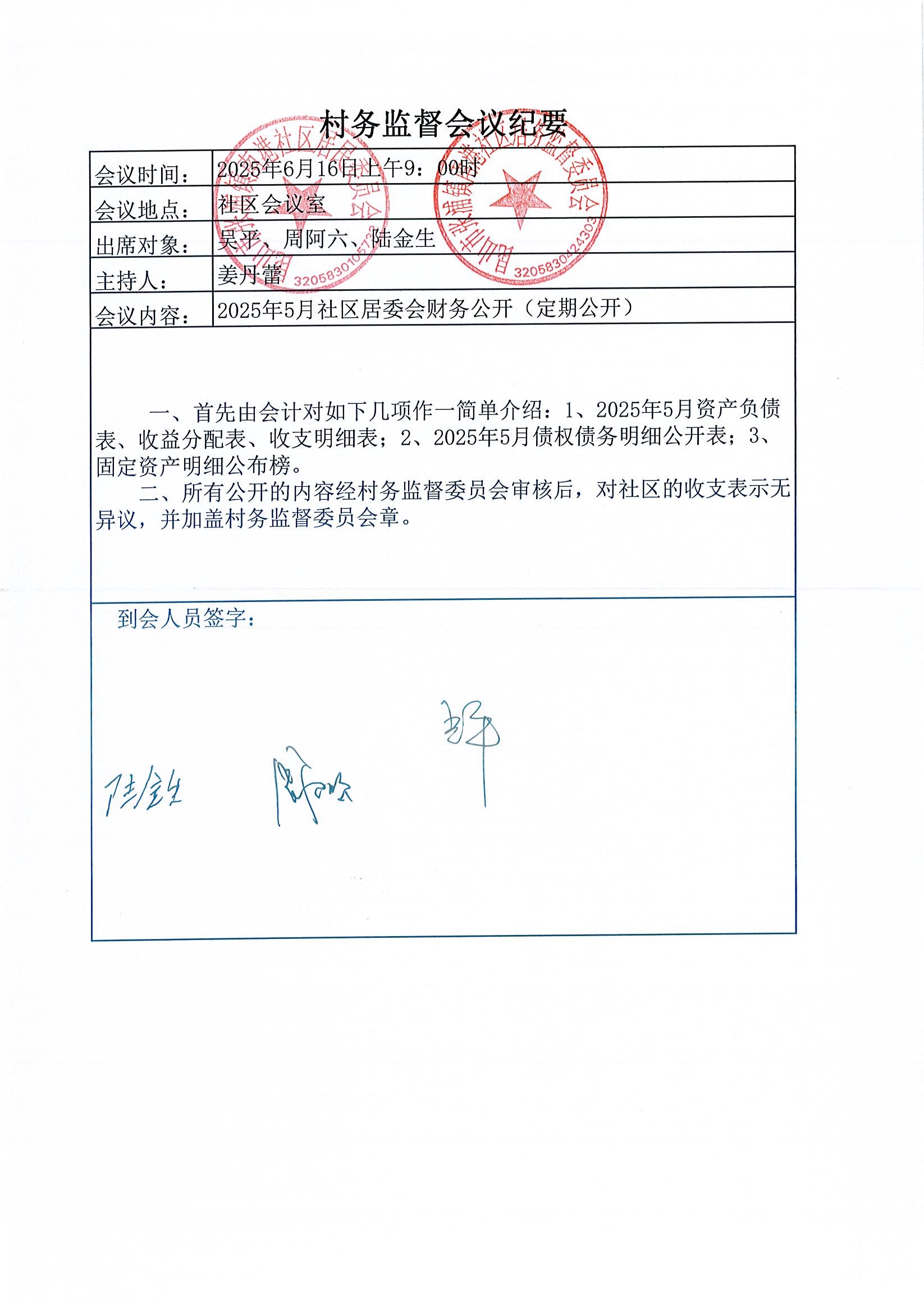 南港社區(qū)居委會2025年5月財務公開(定期公開)