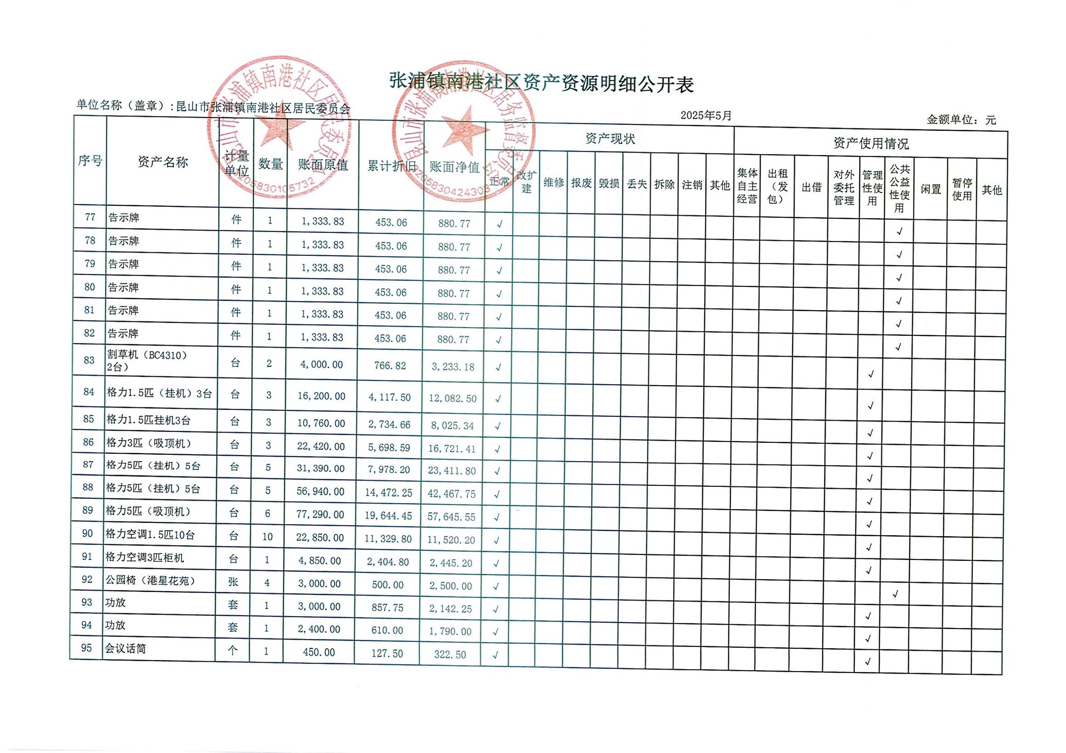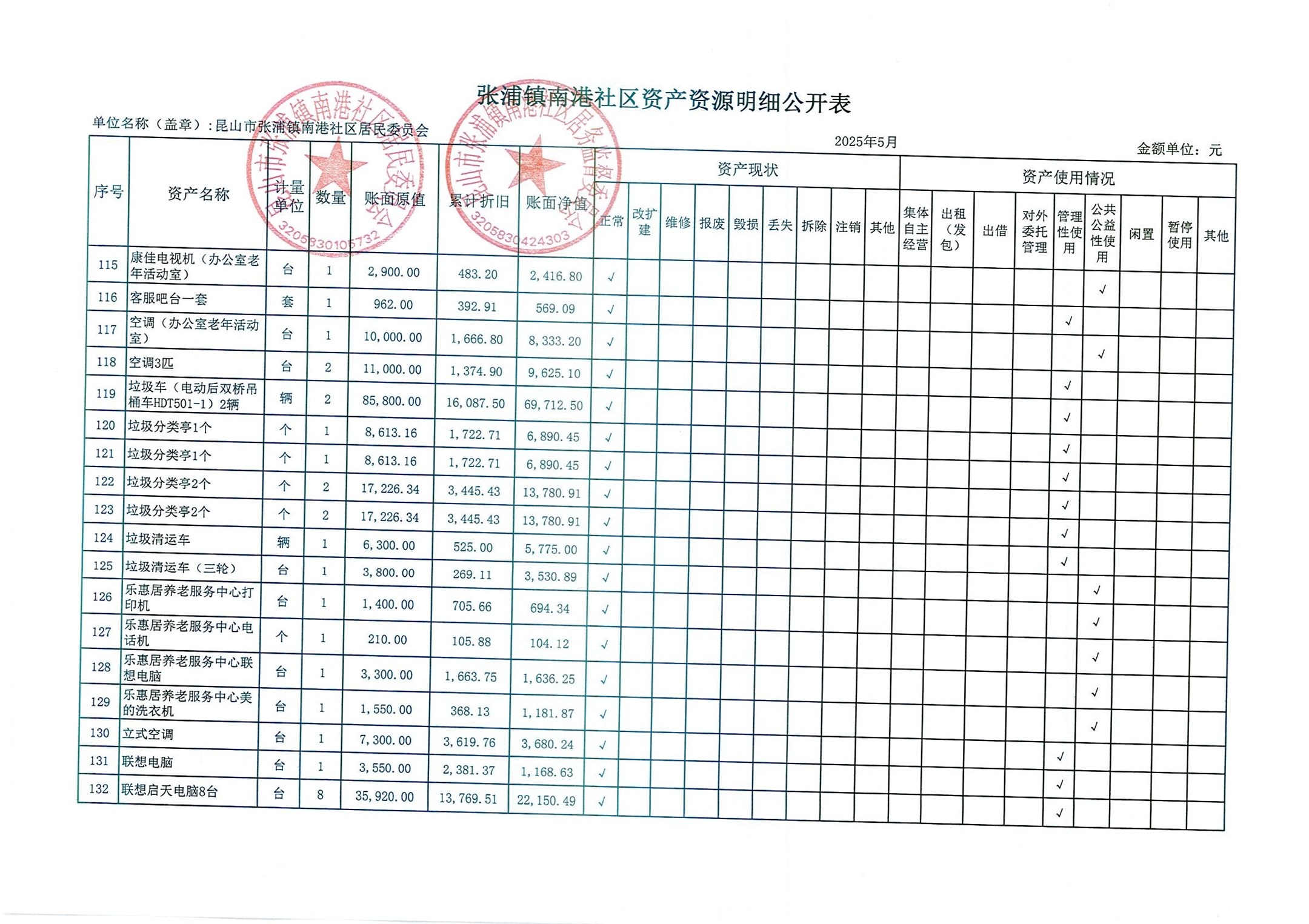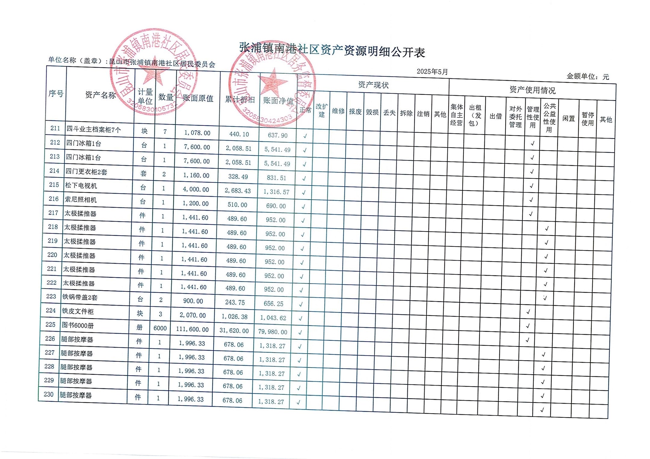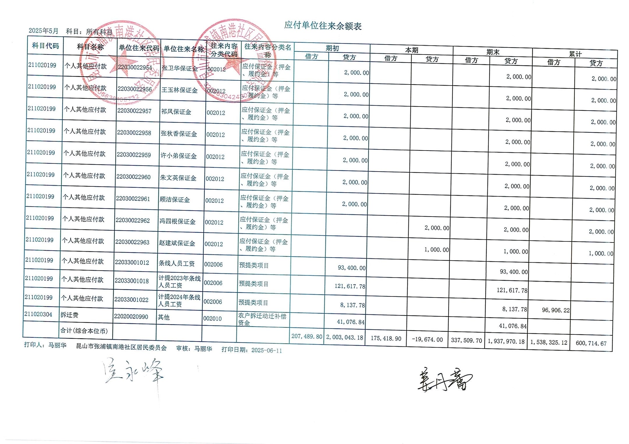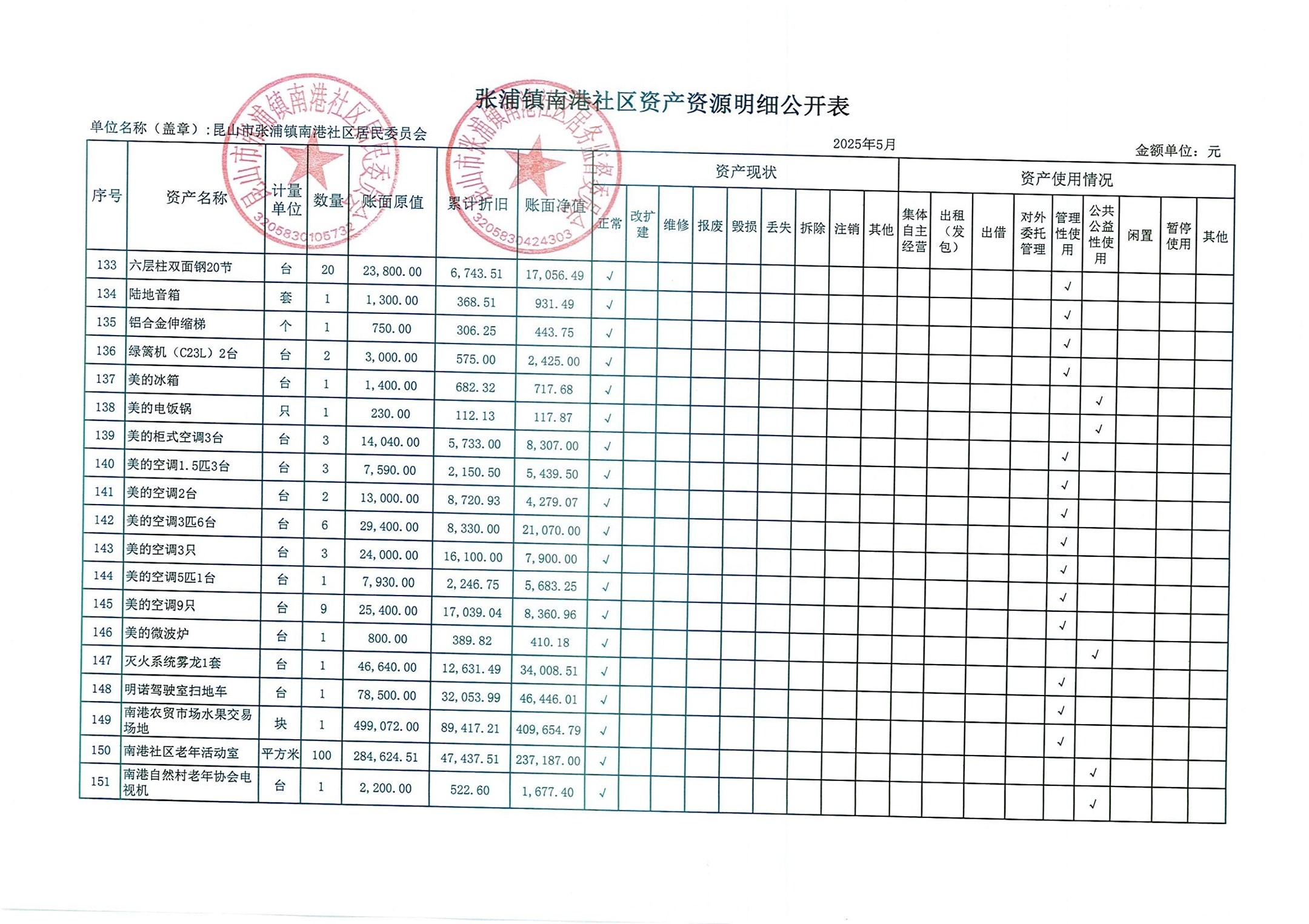 南港社區(qū)居委會2025年5月財務公開(定期公開)